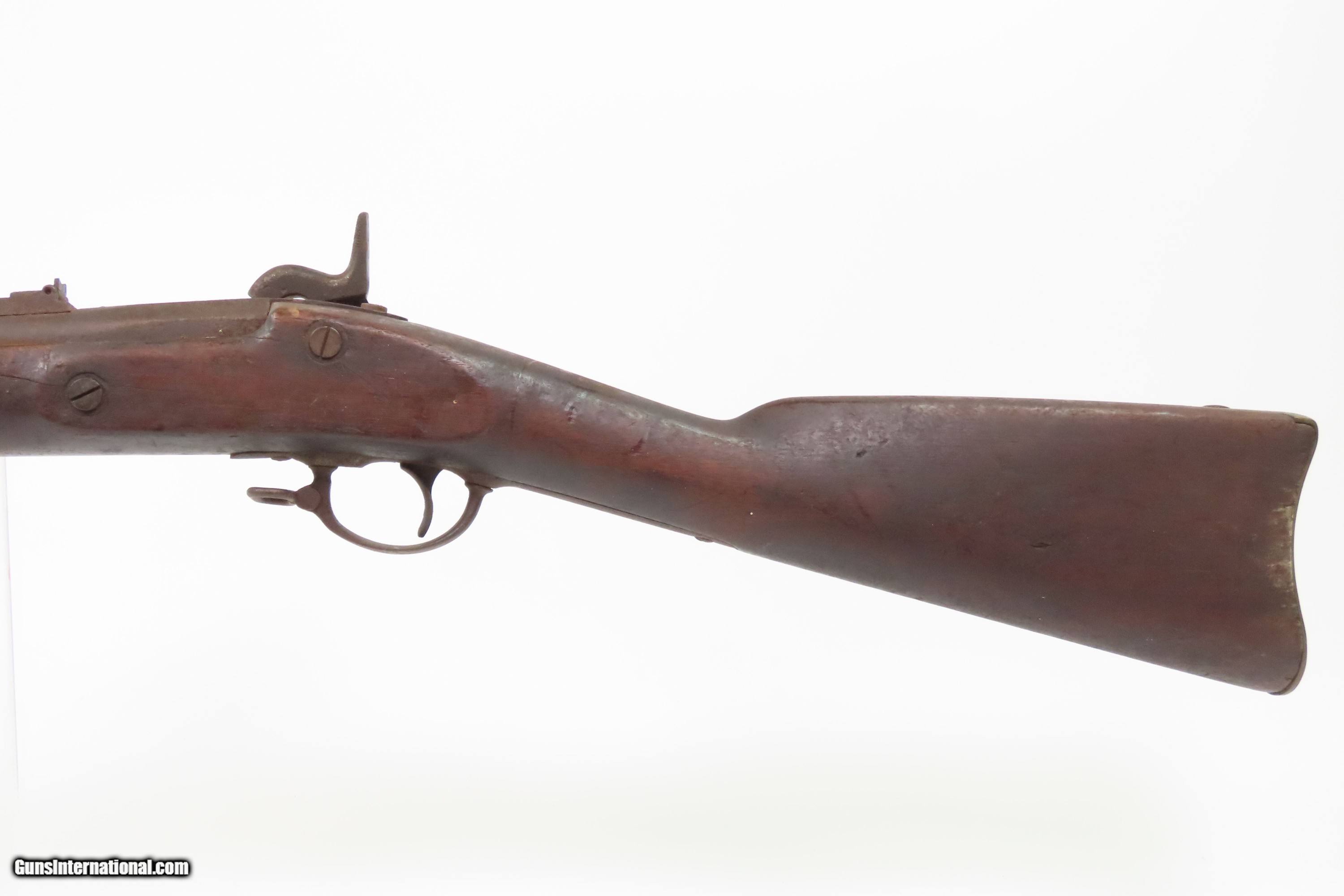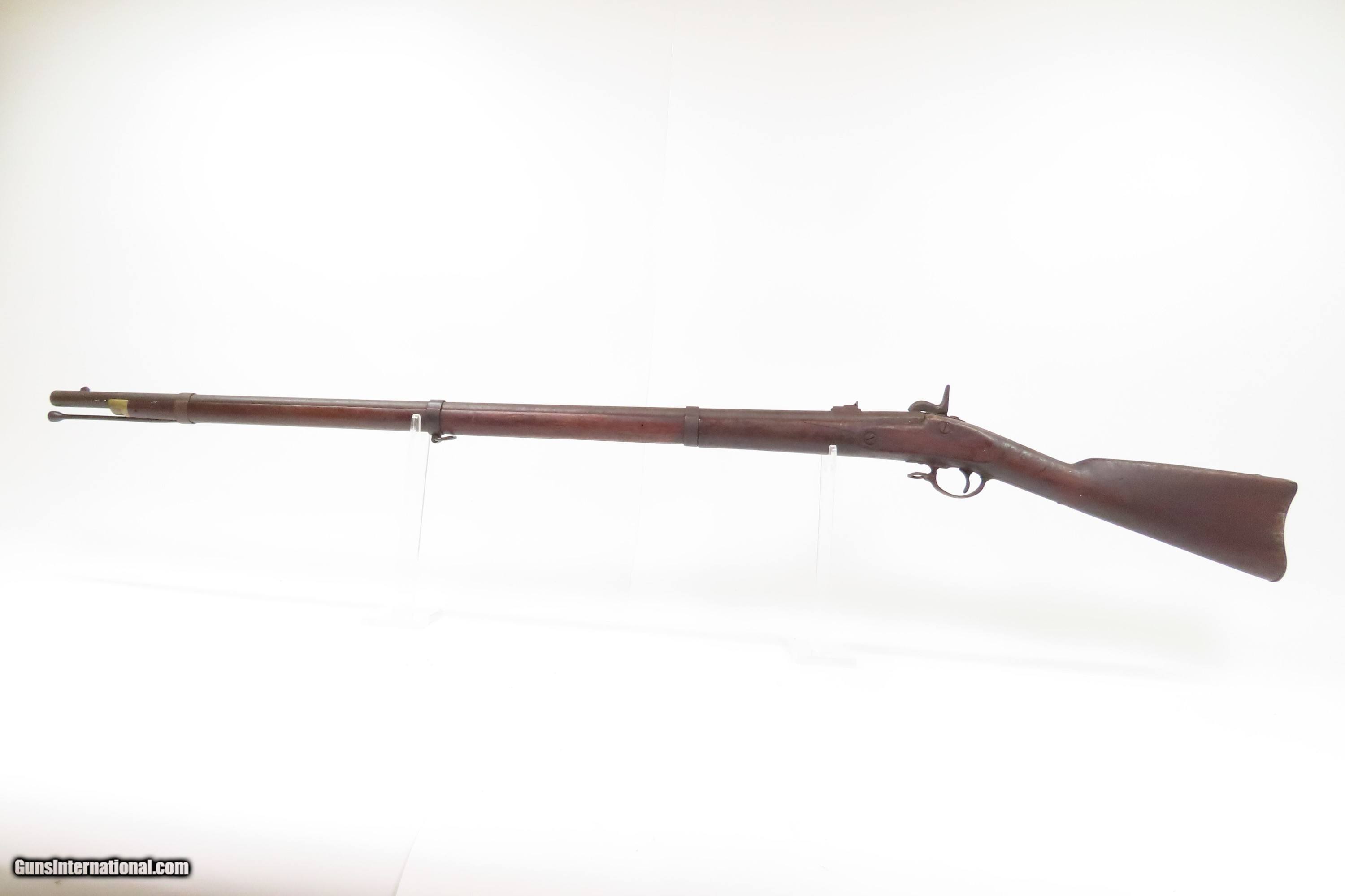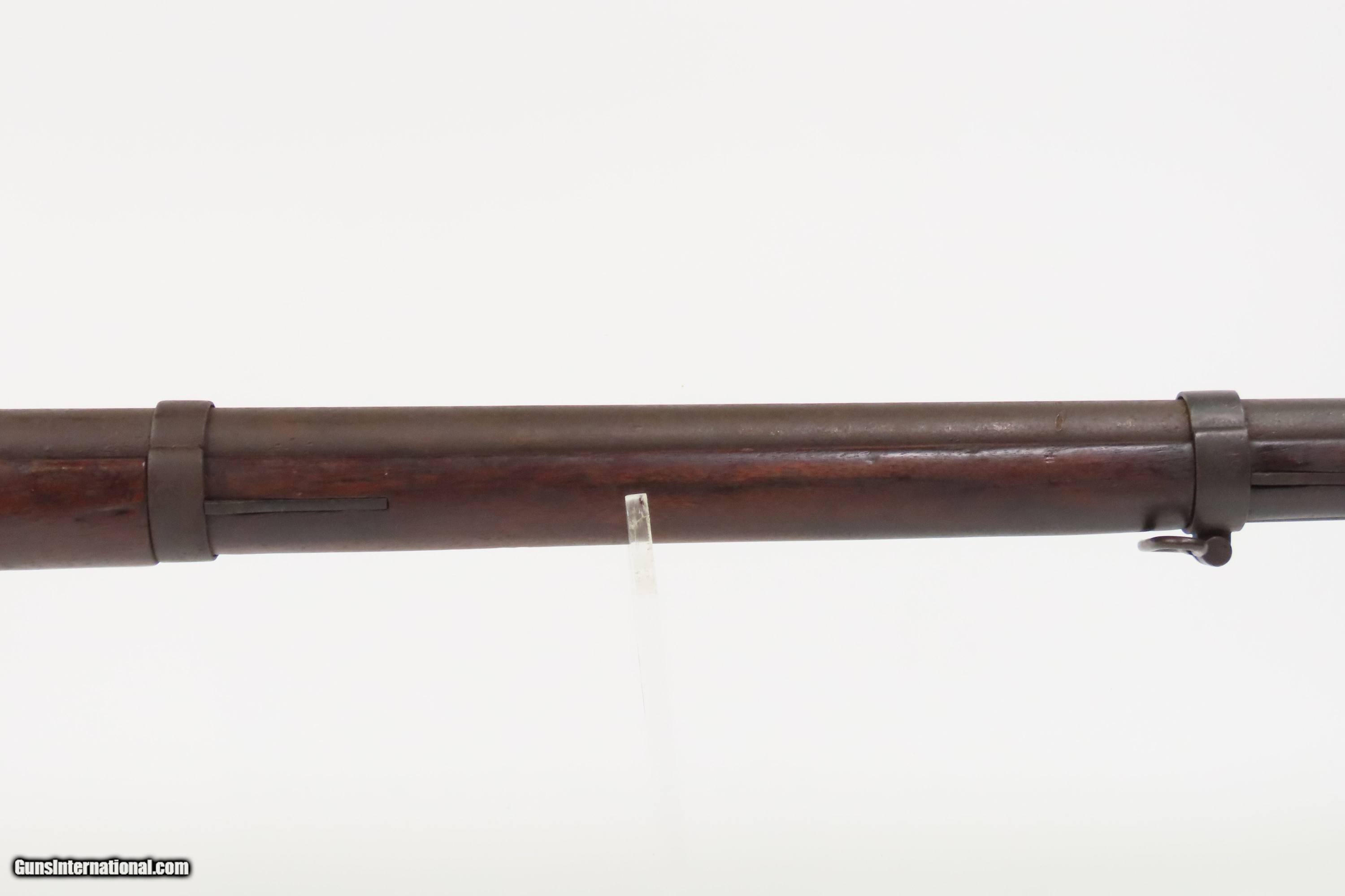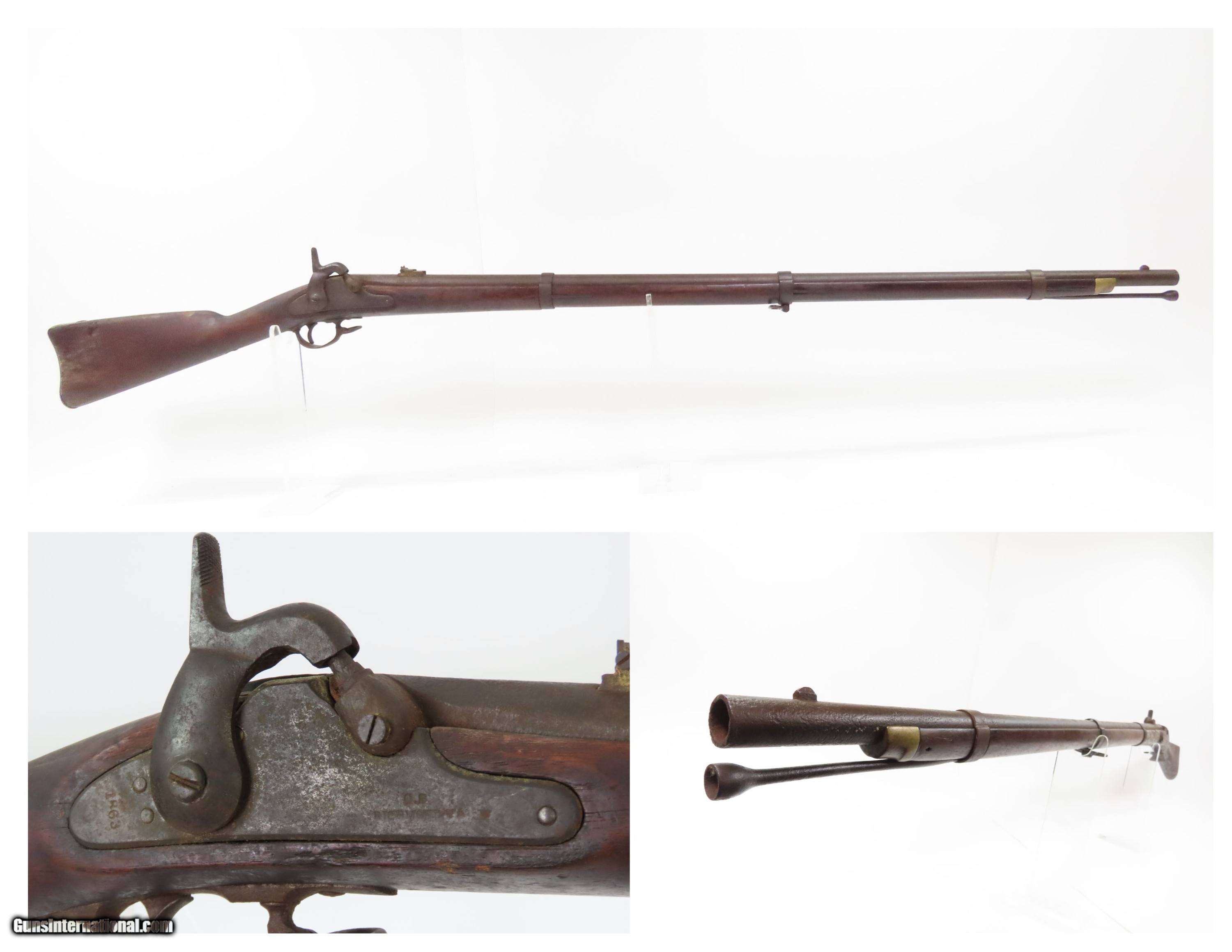 Description: 1863 Dated CONFEDERATE Antique C.S. RICHMOND Marked “HUMBPACK” Rifle-Musket Original Military Weapon for SOUTHERN INFANTRY Here we present an antique Confederate C.S. Richmond Armory Three Band Rifle-Musket, made in 1863 in Richmond, Virginia. At the start of the Civil War, the Confederacy lacked resources to produce small arms. Virginia allocated funds to modernize the Old State Armory in Richmond with English-made machinery, but the Union blockade prevented delivery. In April 1861, Stonewall Jackson captured Harper's Ferry, salvaging machinery and 33,993 black walnut stocks for Springfield Model 1855 muskets. The machinery was transported via rail and wagon to Richmond and Strasburg, with rifling equipment sent to Fayetteville Arsenal. Originally established in 1798, Virginia’s Manufactory of Arms operated until 1821. Reopened as the Richmond Armory during the war, it utilized captured machinery from Harper's Ferry. The resulting rifle-muskets, identifiable by their hump-back lock plates made from the captured U.S. Model 1855 Maynard lock components, were the most common longarms in Confederate infantry, often used with percussion caps directly on the nipple. This rifled musket features the Richmond lock marked “C.S./RICHMOND,VA.” and dated “1863”. The lock inletting is correct and there is no provision for the Maynard system to be used. The stock is as it should be and not inspector marked. End of the tulip head ramrod is solid. The overall condition is very good. Original dark patina. Strong action. The stock is solid with a crack through the front lock screw which has slight movement.. Stable crack in the stock on the underside, behind the rear barrel band. Legible markings on the lock and obfuscated markings on the breech. The sight adjustments are frozen in place. Dark bore. Here is an exceedingly rare, highly sought-after Confederate made rifle-musket! Own the original! This is a legitimate antique and not a reproduction. Barrel is 40 inches. Caliber: .58 Percussion Overall condition as seen in photos. Very Fast. Very Safe. FREE SHIPPING WORLDWIDE. Delivered directly to your door by express mail! Guaranteed AUTHENTIC & Includes CERTIFICATE OF AUTHENTICITY. ancestryguns $2400 #250327 SOLD Antique: Yes |