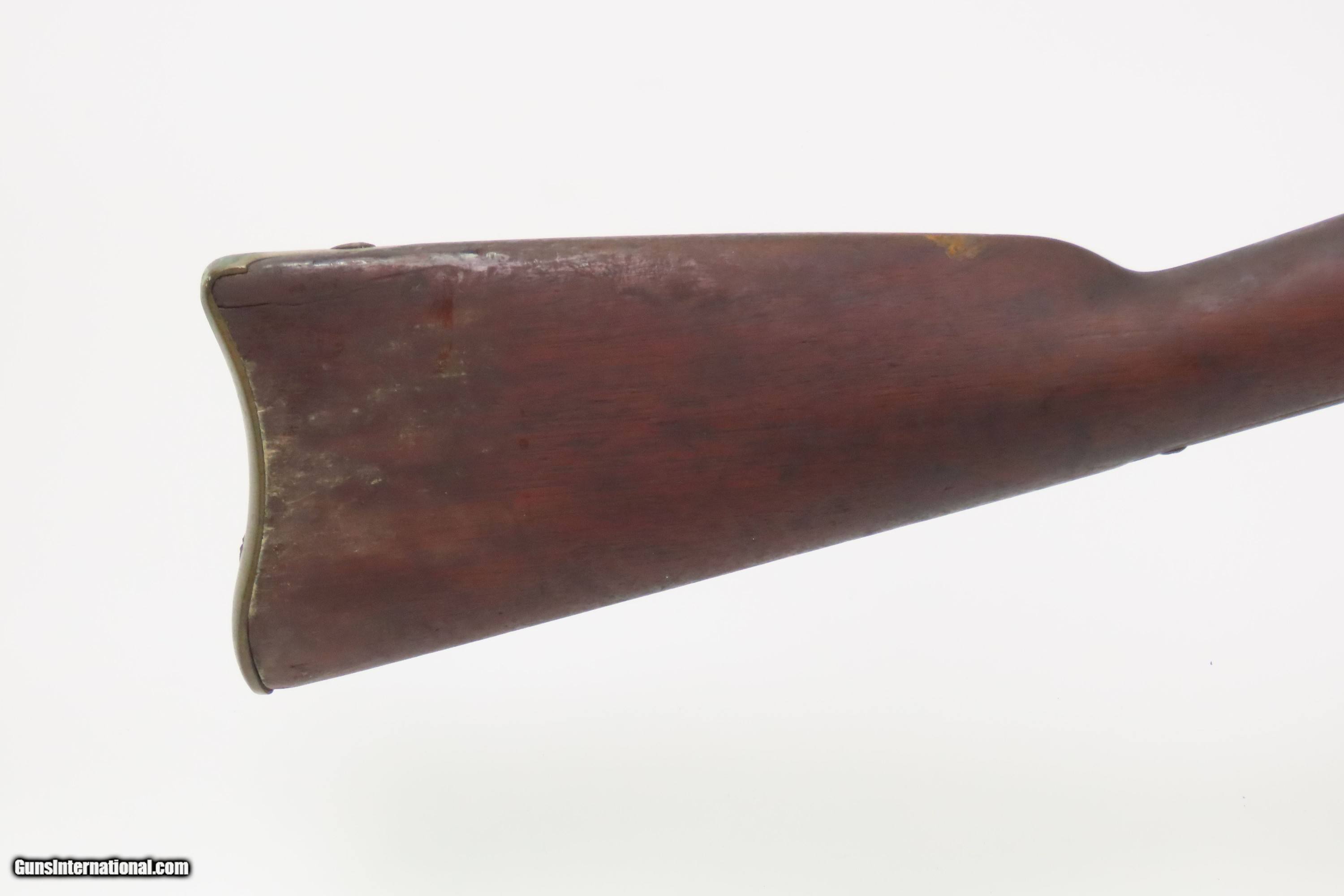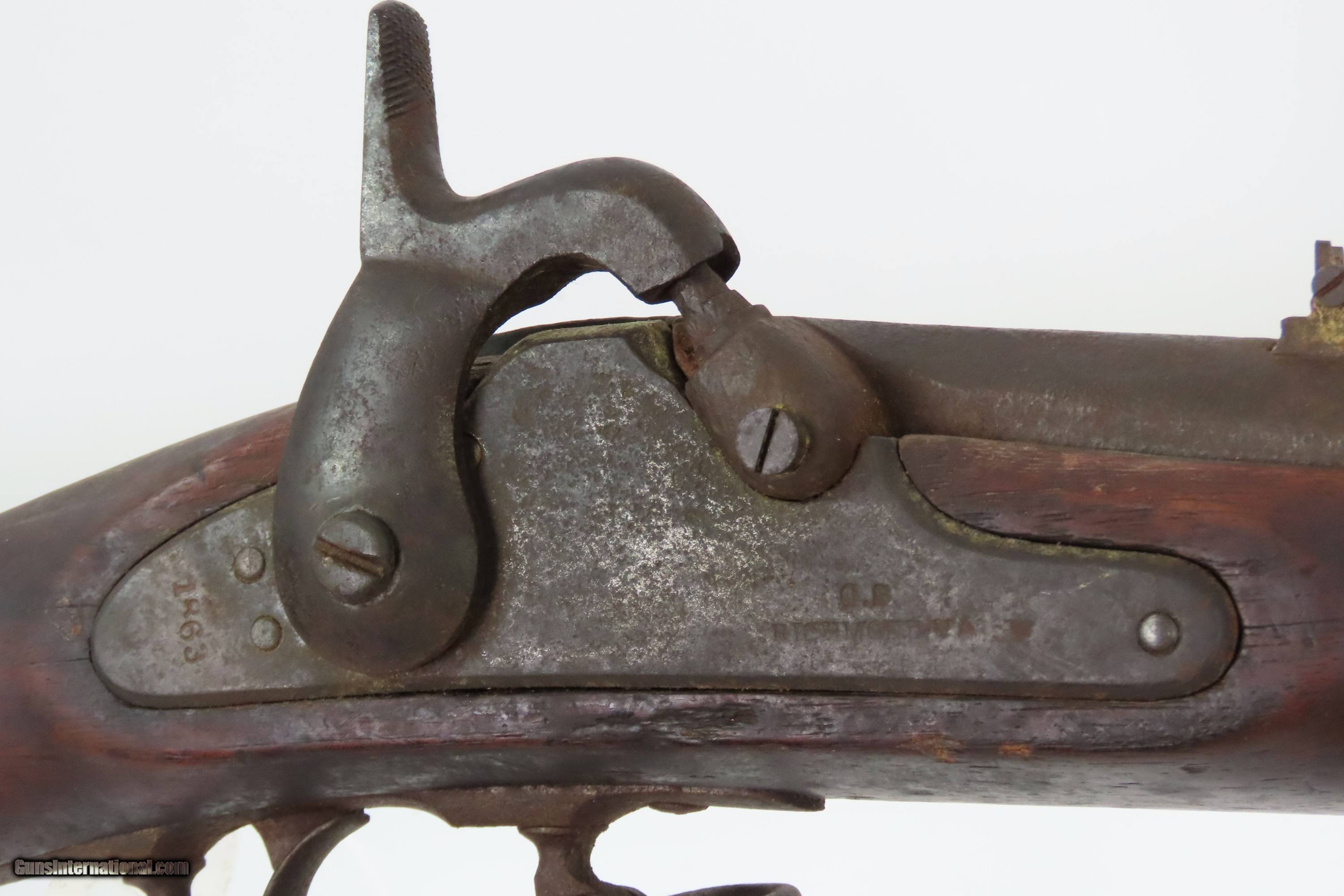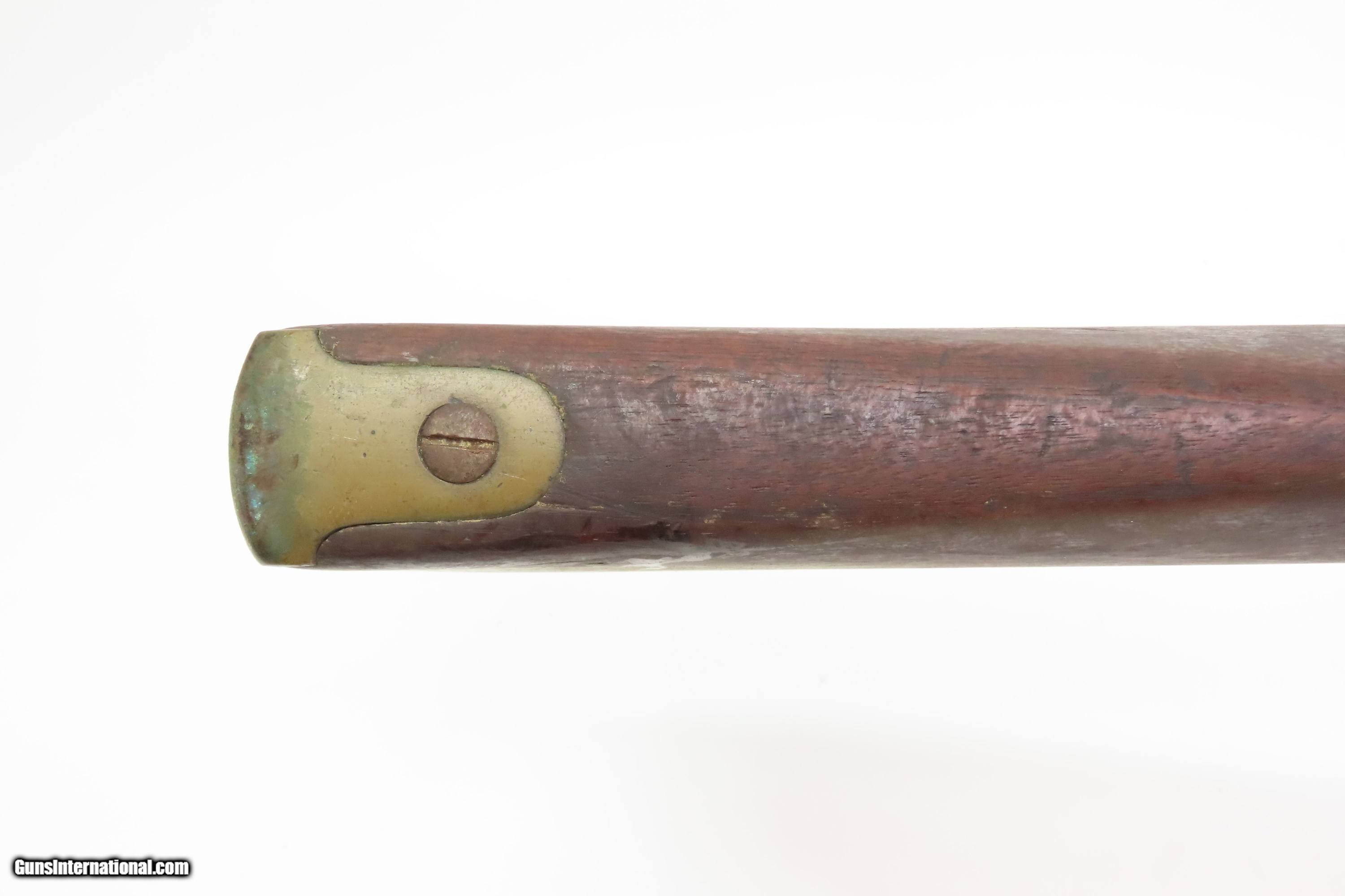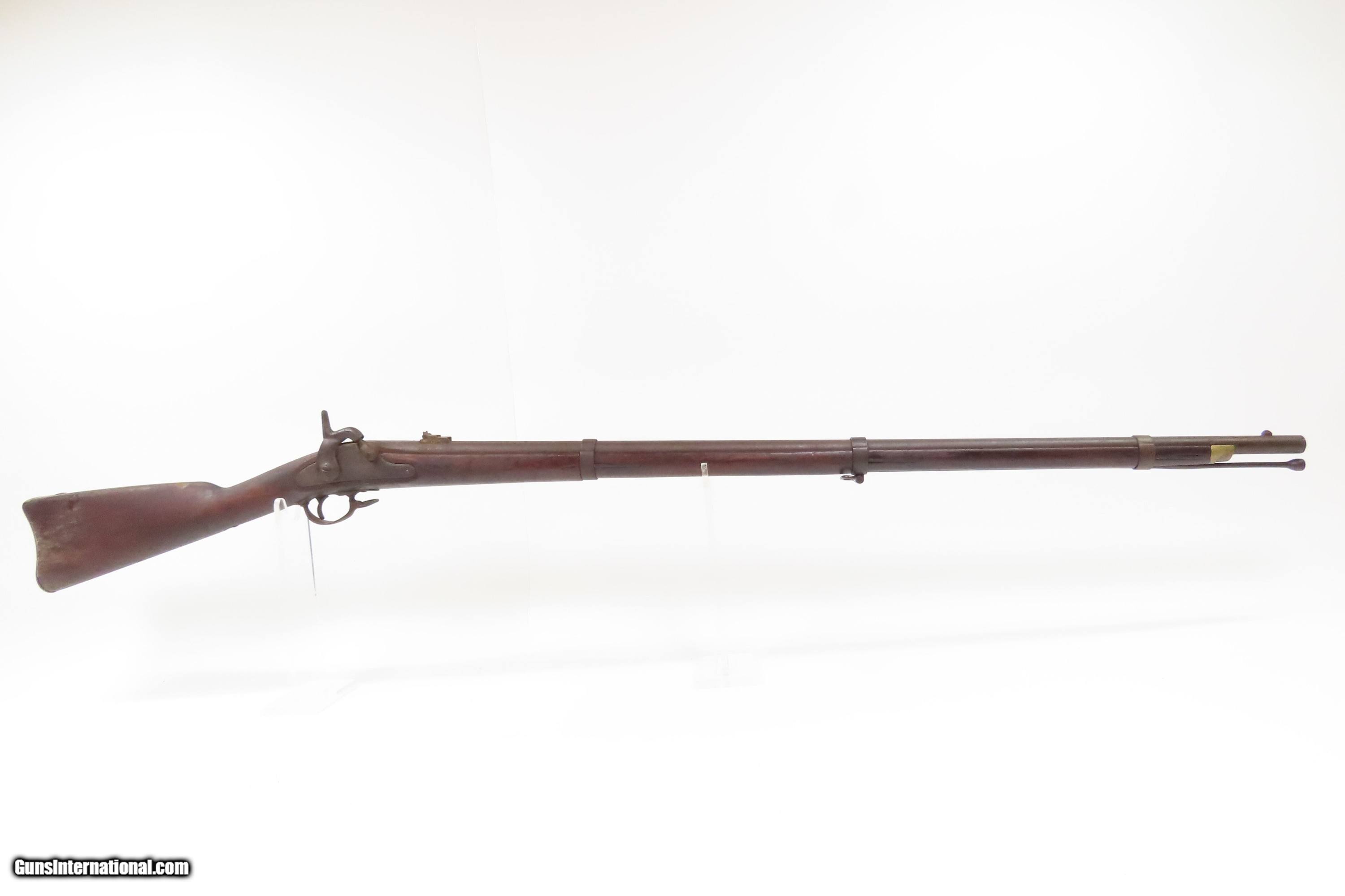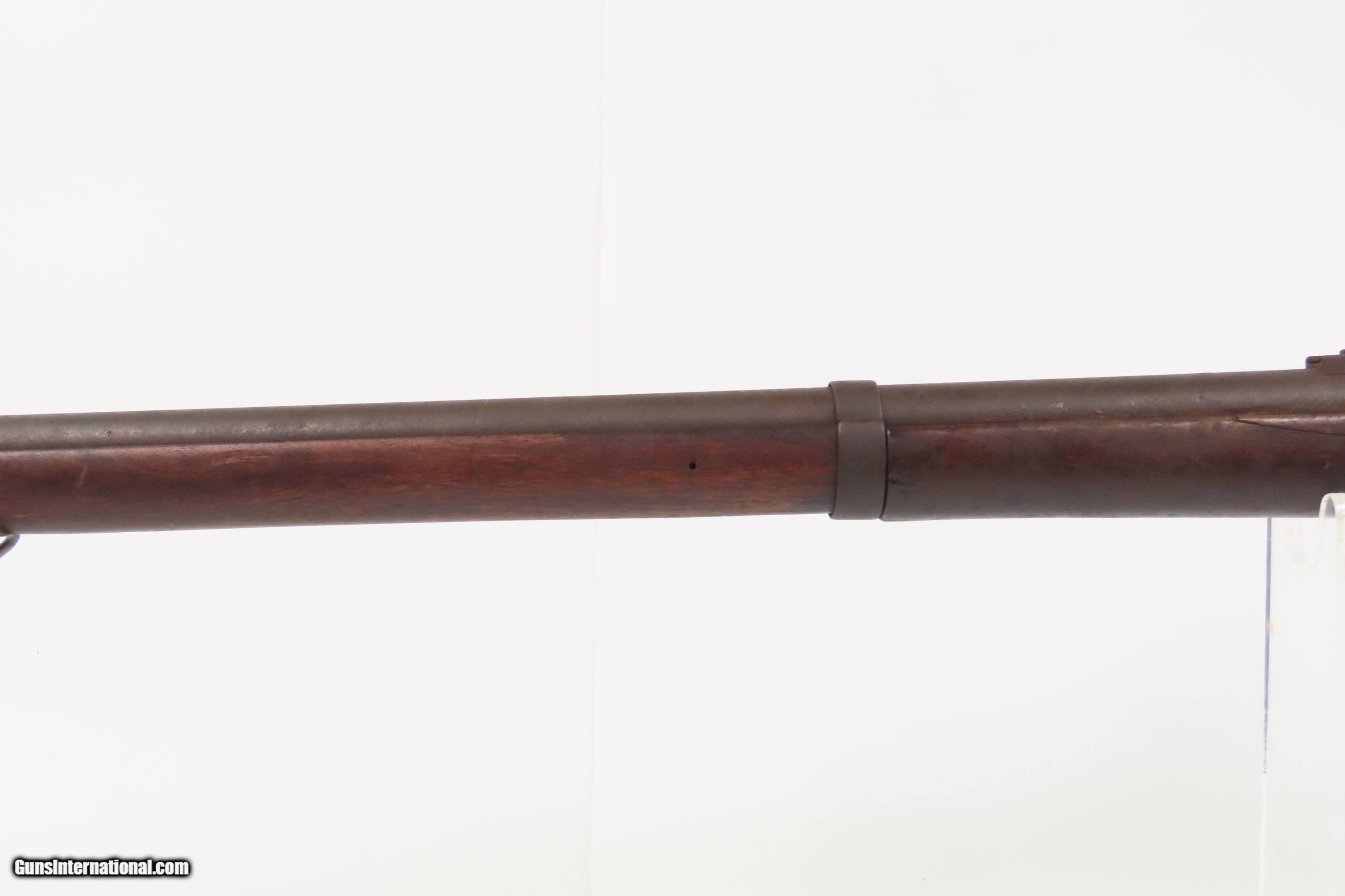 Description: 1863 Dated CONFEDERATE Antique C.S. RICHMOND Marked “HUMBPACK” Rifle-Musket Original Military Weapon for SOUTHERN INFANTRY Here we present an antique Confederate C.S. Richmond Armory Three Band Rifle-Musket, made in 1863 in Richmond, Virginia. At the start of the Civil War, the Confederacy lacked resources to produce small arms. Virginia allocated funds to modernize the Old State Armory in Richmond with English-made machinery, but the Union blockade prevented delivery. In April 1861, Stonewall Jackson captured Harper's Ferry, salvaging machinery and 33,993 black walnut stocks for Springfield Model 1855 muskets. The machinery was transported via rail and wagon to Richmond and Strasburg, with rifling equipment sent to Fayetteville Arsenal. Originally established in 1798, Virginia’s Manufactory of Arms operated until 1821. Reopened as the Richmond Armory during the war, it utilized captured machinery from Harper's Ferry. The resulting rifle-muskets, identifiable by their hump-back lock plates made from the captured U.S. Model 1855 Maynard lock components, were the most common longarms in Confederate infantry, often used with percussion caps directly on the nipple. This rifled musket features the Richmond lock marked “C.S./RICHMOND,VA.” and dated “1863”. The lock inletting is correct and there is no provision for the Maynard system to be used. The stock is as it should be and not inspector marked. End of the tulip head ramrod is solid. The overall condition is very good. Original dark patina. Strong action. The stock is solid with a crack through the front lock screw which has slight movement.. Stable crack in the stock on the underside, behind the rear barrel band. Legible markings on the lock and obfuscated markings on the breech. The sight adjustments are frozen in place. Dark bore. Here is an exceedingly rare, highly sought-after Confederate made rifle-musket! Own the original! This is a legitimate antique and not a reproduction. Barrel is 40 inches. Caliber: .58 Percussion Overall condition as seen in photos. Very Fast. Very Safe. FREE SHIPPING WORLDWIDE. Delivered directly to your door by express mail! Guaranteed AUTHENTIC & Includes CERTIFICATE OF AUTHENTICITY. ancestryguns $2400 #250327 SOLD Antique: Yes |