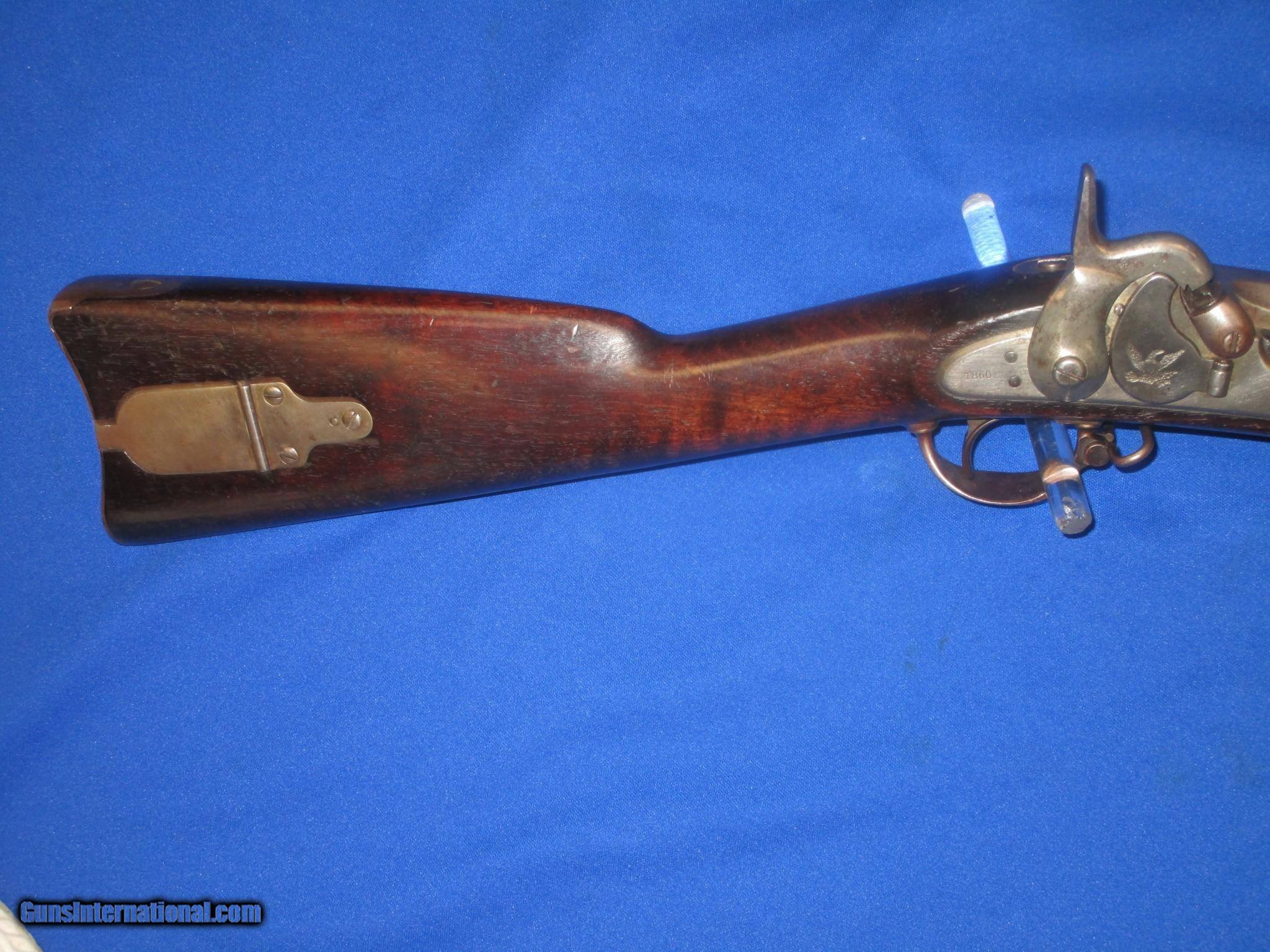 A Scarce U.S. Civil War Springfield Model 1855 Percussion Rifle Musket With Patchbox And Dated 1860 In Very Nice Untouched Condition!