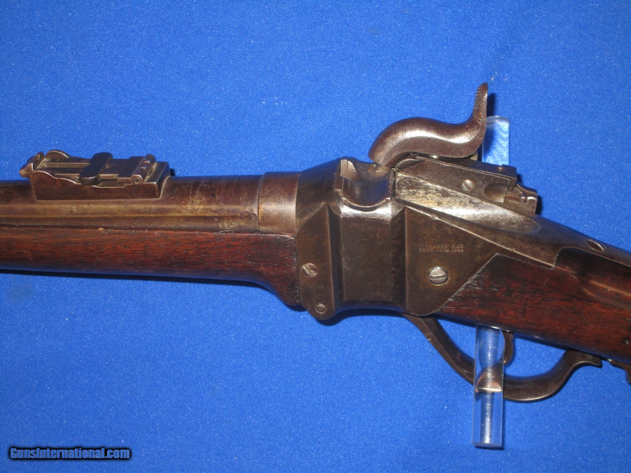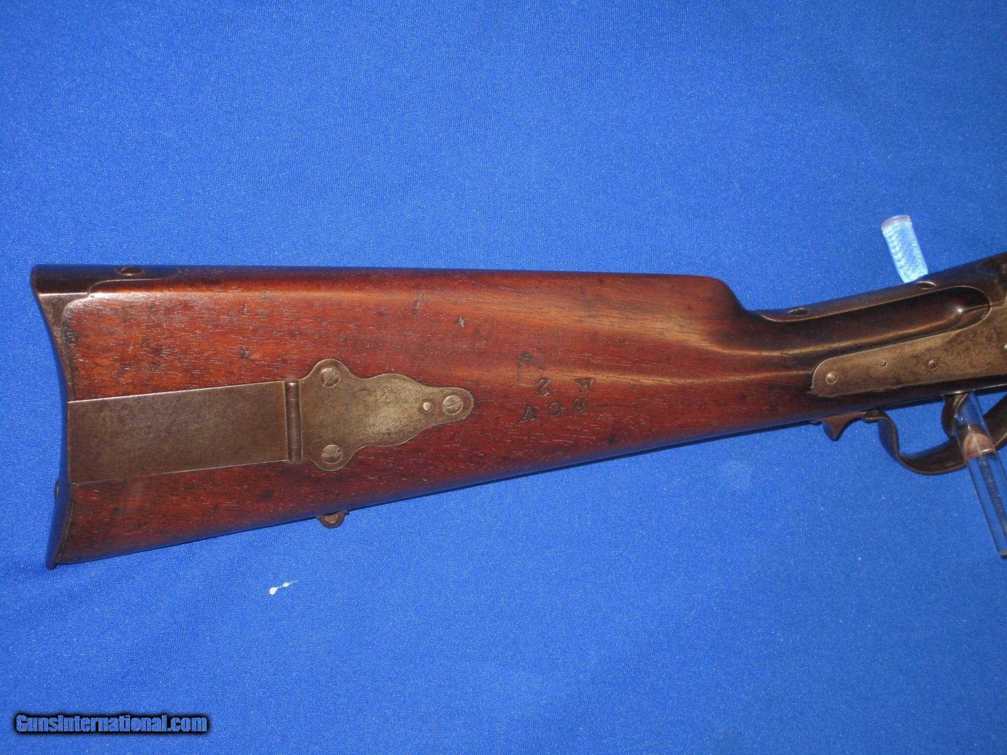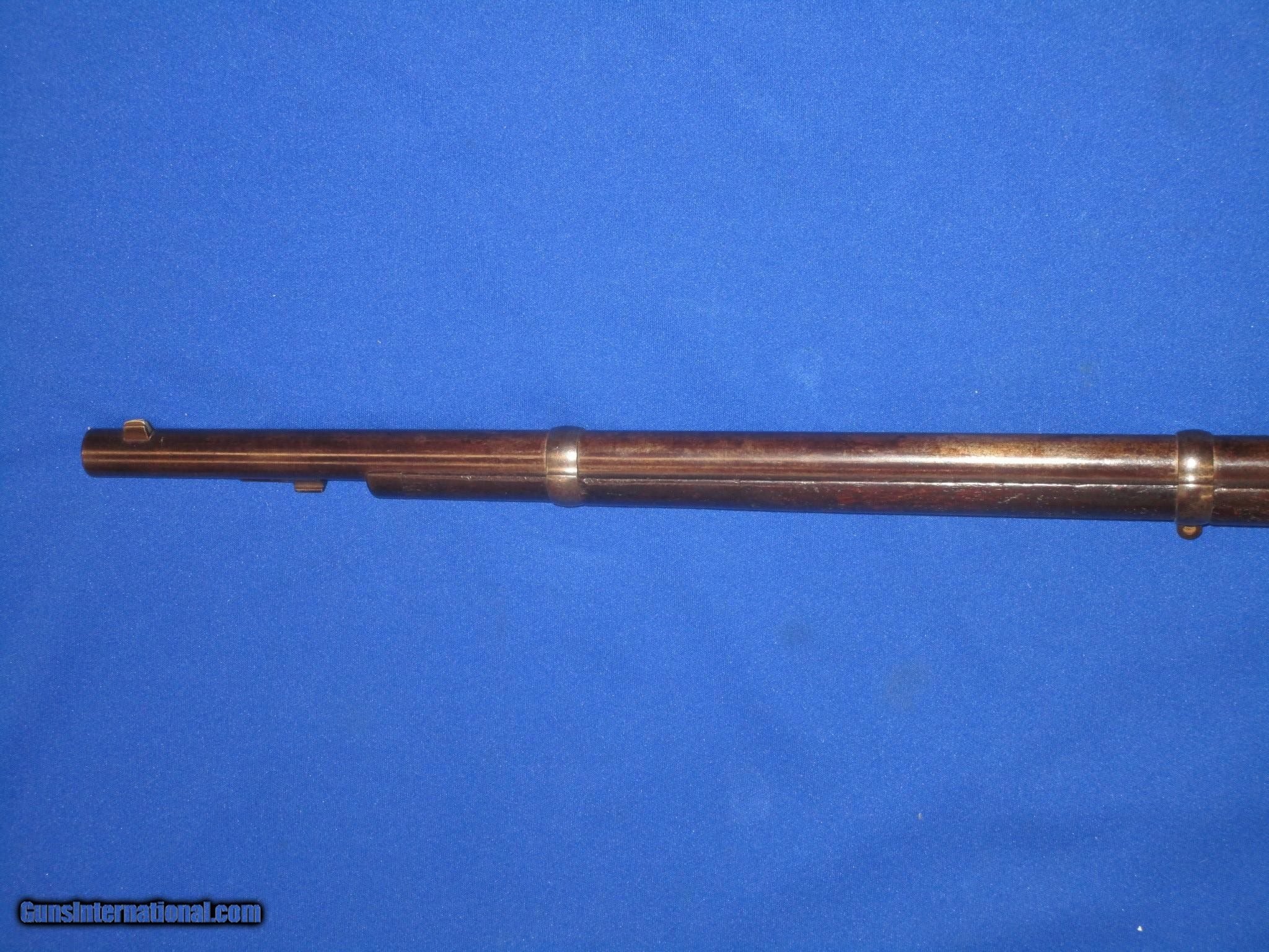 Description: AN EARLY U.S. CIVIL WAR SHARPS NEW MODEL 1859 RIFLE WITH RARE 36 INCH BARREL IDENTIFIED & ISSUED TO LT. NOAH P. IVES, CO. K, 8TH CT. INFANTRY IN 1861 AND IN VERY GOOD UNTOUCHED CONDITION. SERIAL #36,787 WITH ALL MATCHING NUMBERS. ALL ORIGINAL THROUGHOUT. THE SCARCE SHARPS RIFLE HAS FINE UNTOUCHED METAL & MARKINGS. IT IS U.S. SUB INSPECTED. ALL OF THE METAL ON THE RIFLE HAS A NATURAL DARKENED PATINA ON IT. THE WOOD IS FINE THROUGHOUT WITH NICE EDGES. THE SCARCE RIFLE HAS A NICE BORE & ACTION. IN FRONT OF THE PATCHBOX IT IS STAMPED IN THE WOOD 8 CV/K 2". ALL OF THE 36 INCH SHARPS RIFLES ISSUED WERE MARKED IN THIS MANNER. THESE MARKINGS STOOD FOR 8TH CONNECTICUT VOLUNTEER INFANTRY, CO. K, SOLDIER #2. WHEN LOOKED UP IN THE CO. K REGIMENTAL ROSTER THE RIFLE IS ISSUED TO LT. NOAH P. IVES., CO. K WAS ONE OF TWO COMPANIES IN THIS REGIMENT THAT WAS ISSUED 36 INCH SHARPS 1859 RIFLES. THE OTHER COMPANY WAS G. THE TWO COMPANIES MAIN JOB WAS TO ALWAYS BE ON THE REGIMENT'S FLANKS WHEN IN BATTLE. THEY WERE IN MANY BATTLES INCLUDING ANTIETAM, MD WHERE THEY HAD SEVERE LOSSES, FREDERICKSBURG, VA., WALTHALL JUNCTION, VA, DREWRY'S BLUFF, VA, COLD HARBOR & PETERSBURG VA. THERE WERE MANY MORE BESIDES THESE. THIS IS A VERY RARE & EARLY IDENTIFIED U.S. CIVIL WAR SHARP'S 36 INCH MODEL 1859 RIFLE WITH EXCELLENT BATTLE HISTORY. THESE 36 INCH BARREL SHARP'S RIFLES ARE VERY HARD TO COME BY. IT WOULD BE A SUPER ADDITION TO ANY FINE CIVIL WAR COLLECTION! SOLD Antique: Yes Manufacturer: SHARPS Model: 1859 36 INCH RIFLE Serial Number: 36,787 Barrel Length: 36 INCH Caliber Info: .52 Condition: VERY GOOD Metal Condition: VERY GOOD Wood Condition: VERY GOOD - FINE Bore Condition: VERY GOOD PLUS |
