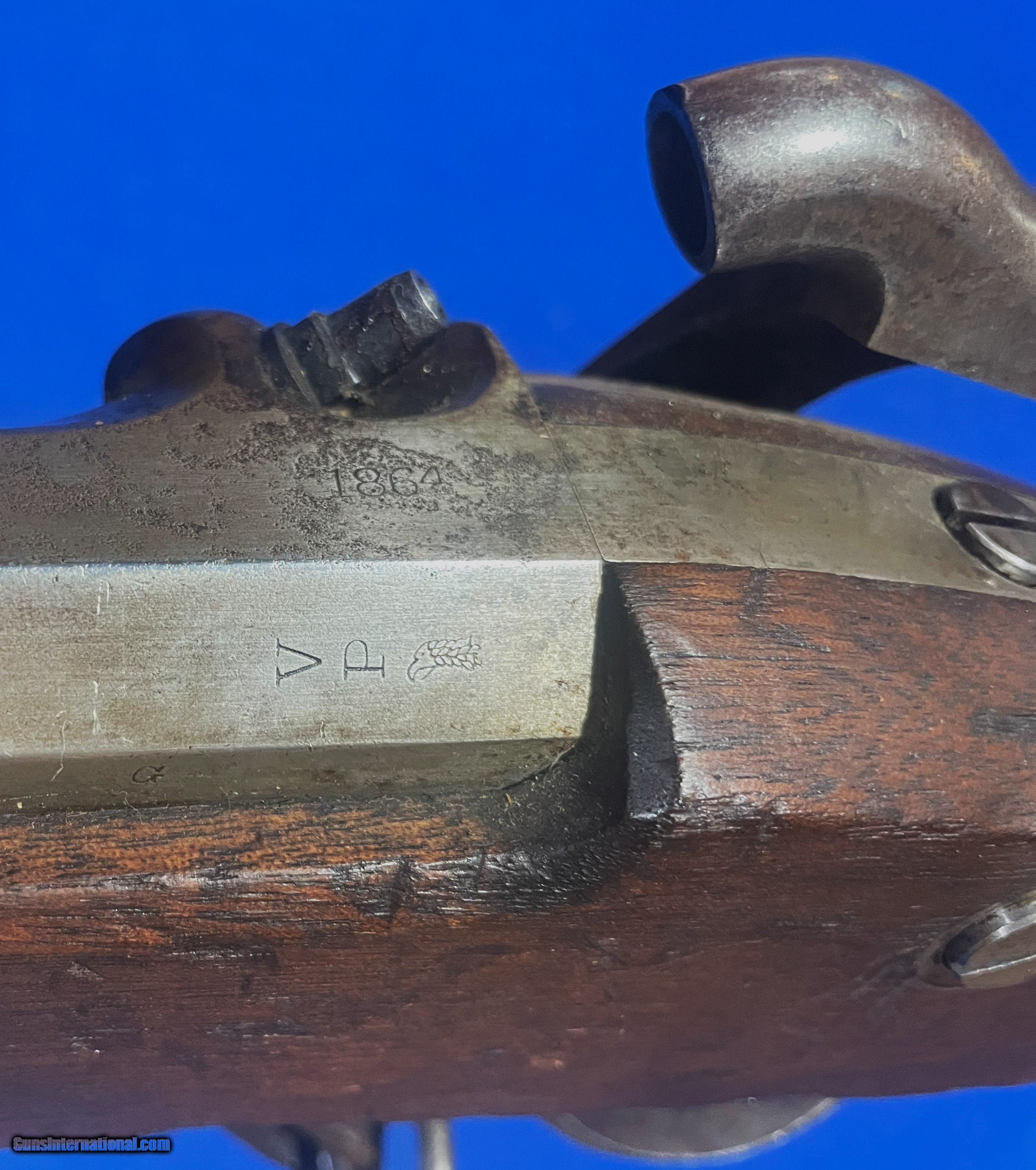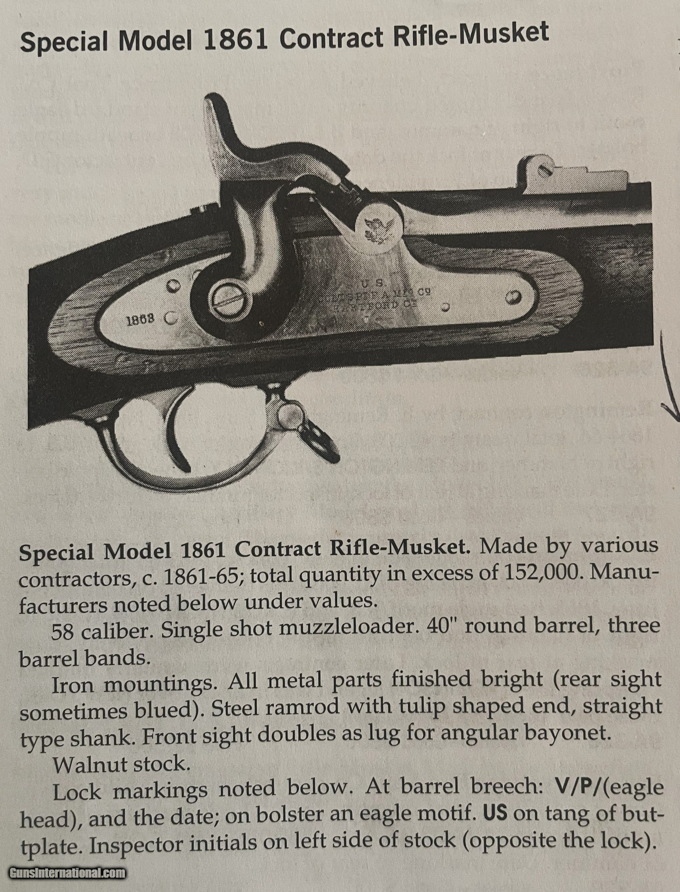Description: SCARCE L.G. & Y LAMSON MODEL 1861 SPECIAL CIVIL WAR .58 CAL. RIFLE. 58" LONG WITH 40" BARREL, EXCELLENT BRIGHT BORE & RIFLING. WALNUT STOCK RATES FINE PLUS WITH SHARP EDGES & CARTOUCHE. PERIOD SLING INCLUDED. A TOP NOTCH EXAMPLE FROM OLD TIME NEW ENGLAND COLLECTION FOR YOUR COLLECTION or SHOOTING PLEASURE IF WANTED. THIS MUST SELL ASAP. PRICE IS FAIR CONSIDERING CONDITION WITH OFFERS WELCOME. SEE OTHER CIVIL WAR RIFLES FROM THE COLLECTION SELLING AT MY LISTINGS. $60.00 S&H DIRECT TO YOU INSURED FOR $100.00. ADDITIONAL INSURANCE AT POSTAL RATES IF WANTED. SOLD Antique: Yes Rifle Caliber: .58 Manufacturer: L.G. & Y LAMSON Model: 1861 Barrel Length: 40 Bore: EXCELLENT Chambers: CLEAR Condition: FINE PLUS Metal Condition: FINE PLUS Wood Condition: FINE PLUS Bore Condition: BRIGHT Barrel Type: ROUND Action: EXCELLENT WORKING ORDER Triggers: SINGLE Stock: WALNUT Butt Pad: U.S. MARKED Manufacture Date: 1864 |