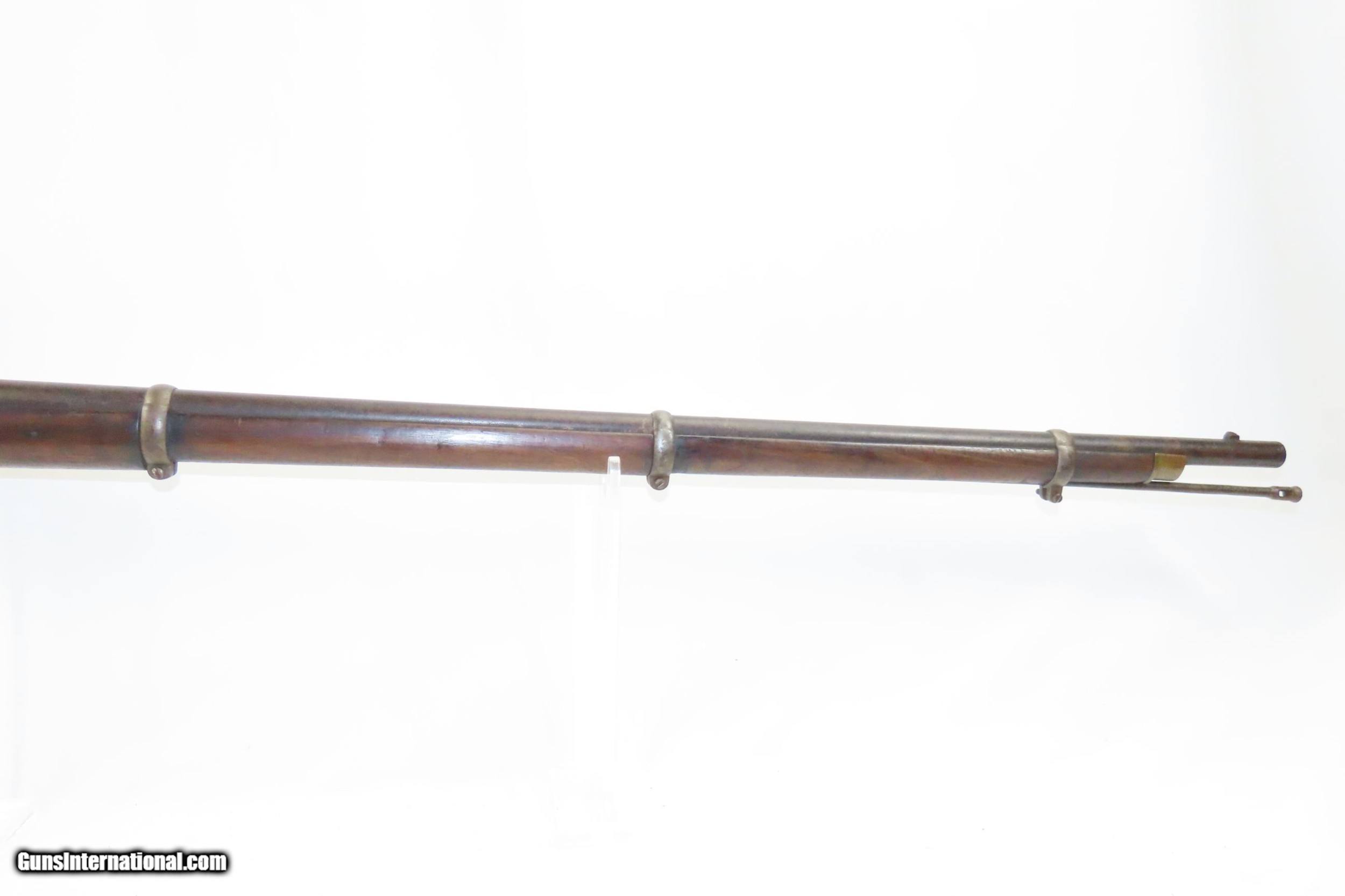 Description: Antique CIVIL WAR Commercial Pattern 1853 “ENFIELD” Infantry Rifle-Musket A.J.B. 24th New York Regiment Company “K” U.S.A. Marked Here we present an antique Enfield Commercial Pattern 1853 Three Band Rifle-Musket, made in 1861 in England. The P53 was the British Military Ordnance Board’s choice for adoption as the primary long arm in 1853. It was considered the apex European military gun of that time, introduced by the British War Department after several studies to improve the calibers and the dimensions of the previous models. However, it kept the same general appearance of the earlier pattern 1851. The overwhelming majority of P53 Enfield Rifles were made by commercial gun makers in Birmingham and London under contract. This gun features steel barrel bands, and the ramrod tip is shaped with the characteristic jag slot. The 24th New York Regiment, also known as the “Oswego County Regiment”, under the command of Colonel Timothy Sullivan was mustered in on July 2nd, 1861, and was an active regiment for the Union army seeing action at Rappahannock Station, Groveton, the 2nd Battle of Bull Run, Antietam, Fredericksburg, and Chancellorsville. On May 29, 1863, the 24th was mustered out at Elmira, New York, having lost 91 men by death from wounds and 31 by death from other causes. After research, we believe this musket belonged to Major Andrew Jackson Barney. Barney enlisted with the Union Army at 32 years of age on May 7, 1861. He mustered in as Captain of Company “K”, 24th Regiment and was promoted to Major on January 3, 1862. Barney died in the 2nd Battle of Bull Run on August 30, 1862, and was buried at the Woodside Cemetery in Belleville, New York. The Enfield 1853 rifle-musket was also used by both the North and the South in the American Civil War and was the second most widely used infantry weapon in the war, surpassed only by the Springfield Model 1861 Rifled Musket. The Confederates imported more Enfields during the course of the war than any other small arm, buying from private contractors and gun runners. It has been estimated that over 900,000 P53 Enfields were imported into America and saw service in every major engagement of the war. These were also used in the Crimean War from 1854 to 1856, the Sepoy Mutiny from 1857 to 1858, the New Zealand Land Wars that ended in 1872, and many various other conflicts, especially in colonies in British Imperial possession in the 1850s, 60s and 70s. The overall condition is good. Strong action (the nipple is worn down to the nut). The bore has been smoothbored, probably post-war. Solid stock with an average amount of wear. There is small crack just behind the lock that remains stable. On the right buttstock, “A.J.B./2.4.N.Y.Co.K./U.S.A.”, is hand inscribed. “1861” dated lock. The barrel tang screw is an old replacement and is a bit to long, as it does not fully seat. Own the original! This is a legitimate antique and not a reproduction. Barrel is 39 inches. Caliber: .62 Smoothbore Overall condition as seen in photos. Very Fast. Very Safe. FREE SHIPPING WORLDWIDE. Delivered directly to your door by express mail! Guaranteed AUTHENTIC & Includes CERTIFICATE OF AUTHENTICITY. ancestryguns $1955 #217165 SOLD Antique: Yes |