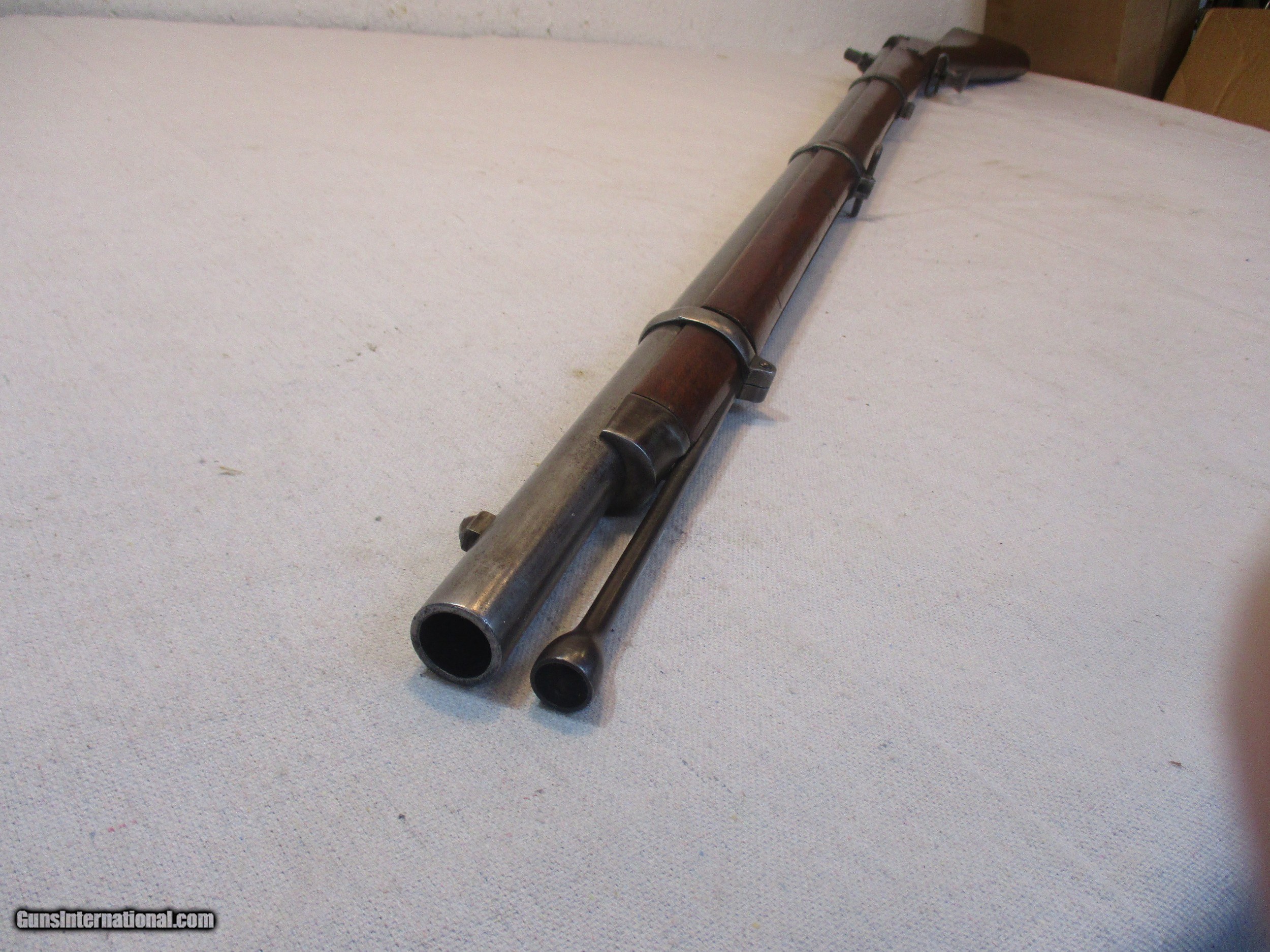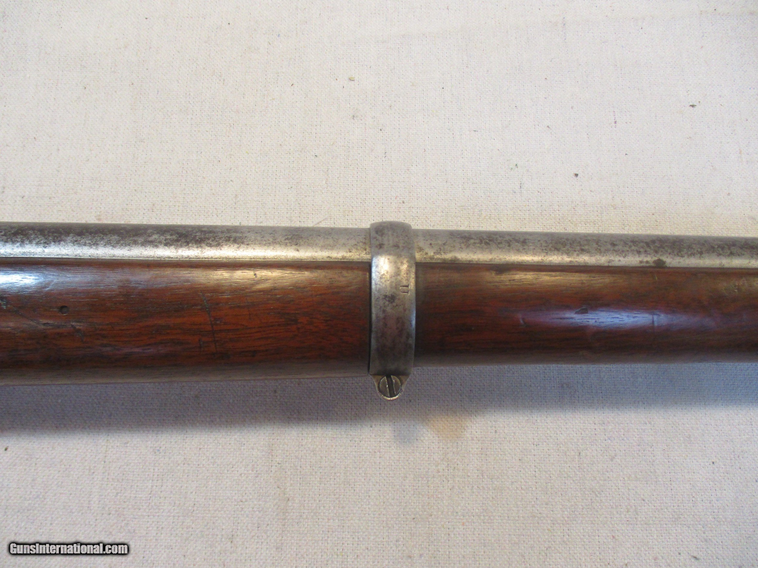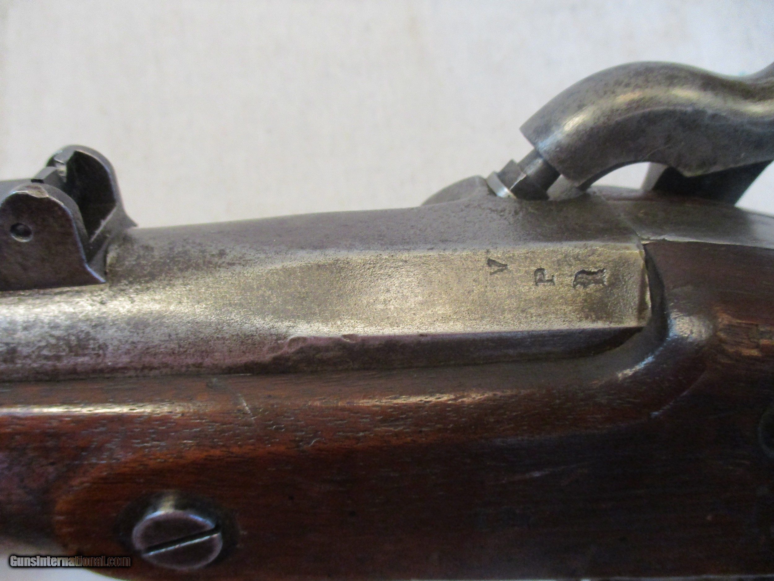 Description: This Model 1862, .58 caliber, percussion rifle-musket, dated 1864, is in complete, very fine condition. Produced at the Alfred Jenks & Co facility in Bridesburg, PA, the musket retains its original stock, bolster, swell-shaped ramrod, barrel bands, and swivel sling hooks. The 40” long barrel surface appears to have not been cleaned. Surface exhibits mottled areas of discoloration and corrosion around the breech.. Barrel, lockplate, hammer, butt plate, bands, retaining springs, trigger guard, rear sight, and ramrod all wear a pleasing, smooth light gray sheen. Lock plate is stamped “U. S. / BRIDESBURG” in front of the hammer and strongly stamped “1864” behind hammer. A sharp and detailed spreadwinged eagle motif is stamped on lockplate between hammer and bolster. An Eagle motif stamped on face of the bolster. Steel butt plate strongly stamped with “U S”. Musket also exhibits "U" stamped on barrel bands.. Has the original two-leaf rear sight and small blade front sight. Barrel bore has crisp rifling. All lock screws are crisp. Government proof marks “V / P / eaglehead” on left facet of the breech are deep and sharp. Mechanics are crisp. Black walnut full stock is in very nice condition overall. Stock exhibits "IN" stamped on the left flat. No cracks in the wood save some tiny dings and dents from use and storage. Retains its steel, swelled shank, tulip-head steel ramrod with a threaded tip, all in excellent condition. A very fine representative Bridesburg contract musket of the Civil War. ******************************************************rcf PLEASE READ OUR FULL DISCLAIMER! Customer Service is available Monday - Friday 10 AM to 5 PM Central Time, to answer questions and emails, or take payments. Reserve prices are not disclosed, so don't ask. Layaway is not offered. Shipping available only within the lower 48 states. We do our best to show everything in the pictures so you know exactly what you are getting. Check out our feedback & purchase with confidence. All items are sold AS IS with NO warranty or guarantees, implied, expressed, or otherwise (Inquire with manufacturers to verify any warranties they may offer). The buyer is ultimately responsible for determining the condition of the item, please ask for additional information or more photos before purchasing if you're unsure. A valid FFL is required for most transactions (C&R Type 3 FFL's are not accepted, NO EXCEPTIONS), and a file copy of the seller FFL will be shipped with the item. Shipping rates will vary based on final sale value, and include ground rates with insurance and signature. Shipping is available within the lower 48 states only. Local pickup is available Monday - Friday, from 10 AM to 5 PM. Accepted forms of payment are charge/debit cards (All Major Credit Cards Accepted), cash (Wire Transfer), money order, Cashiers/Teller/Certified Check or personal check (Item is held for 10 business days to allow ANY checks or money orders (except USPS money orders) to clear). A 3% convenience fee will be added to purchases made with charge/debit cards. Returns are only accepted on a case by case basis depending on the circumstances, and a 20% restocking fee will be charged on all returned or incomplete sells. Have questions, ask. Buyers are solely responsible for determining the safety of items purchased. No firearm should be fired without having the weapon initially inspected by a qualified gunsmith. The firearms offered have NOT been TEST FIRED unless otherwise stated, but have been given a visual inspection for sale purposes only. We are not gunsmiths and can sometimes miss things. It is recommended that buyers have all firearms inspected by a competent gunsmith prior to use. Buyers are solely responsible for their awareness of and compliance with all laws and regulations in their state of residence regarding firearms, ammunition, magazines, accessories, and blades. By purchasing, buyer agrees to release seller from all liability, whether criminal or civil, arising from the purchase, ownership, possession, or use or misuse of items, and against damages, injury or death caused by use or misuse, or defective merchandise. Thank you for your interest & please check out my other listings. SOLD |