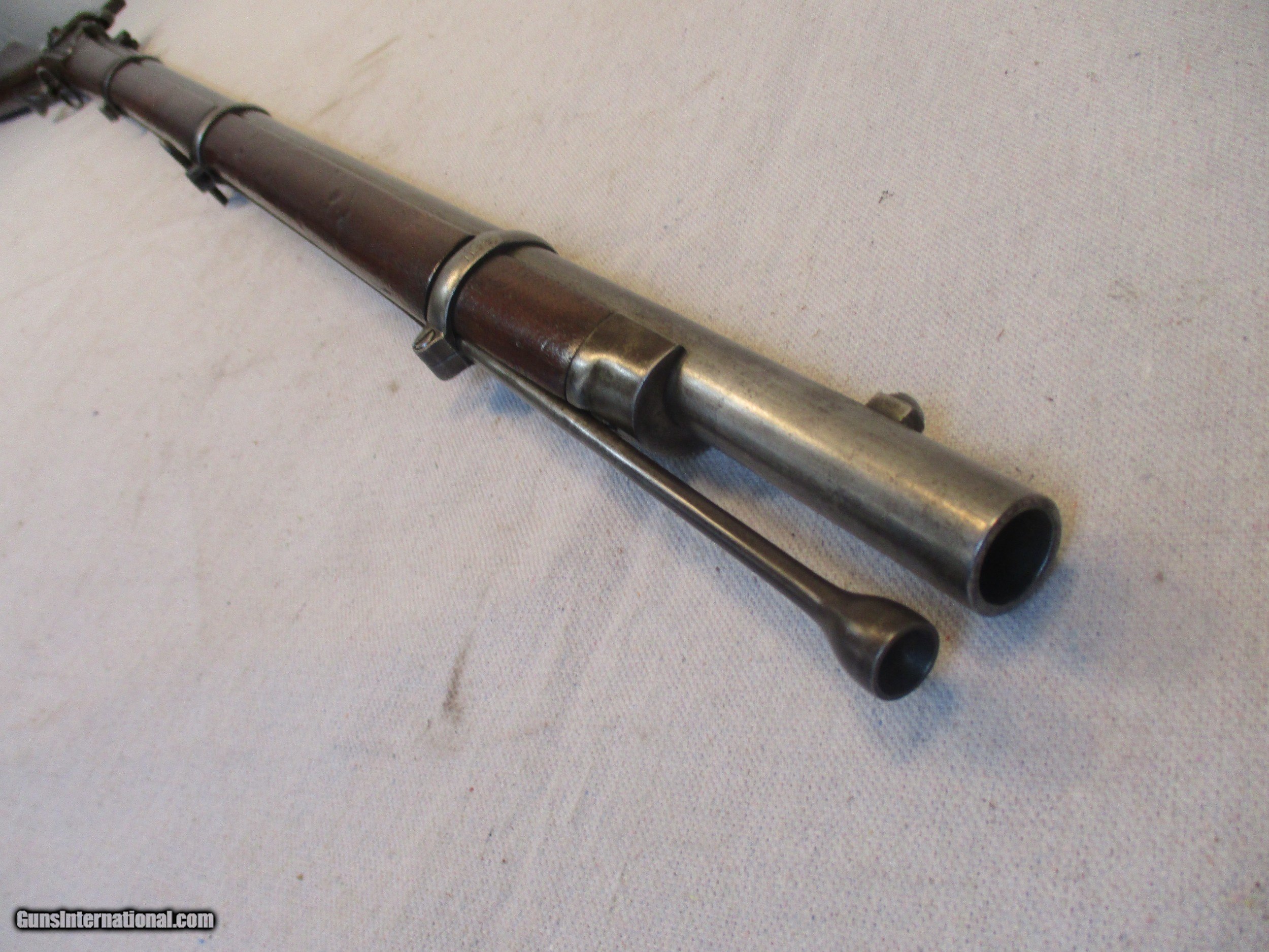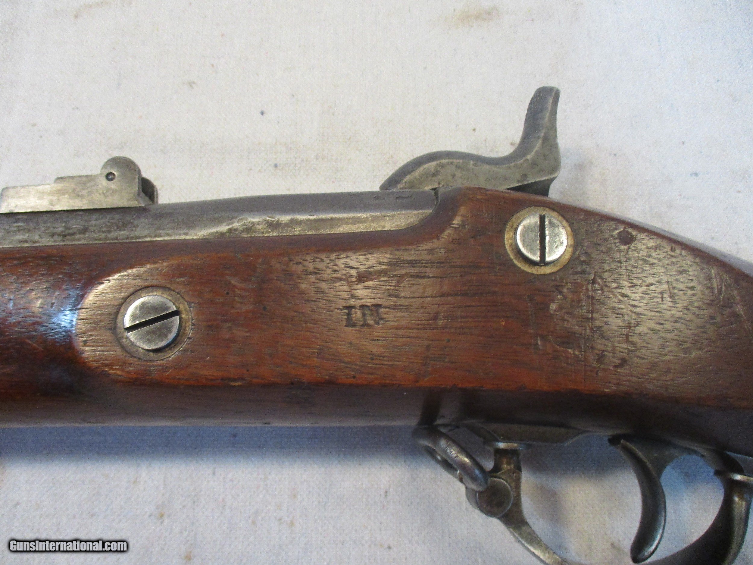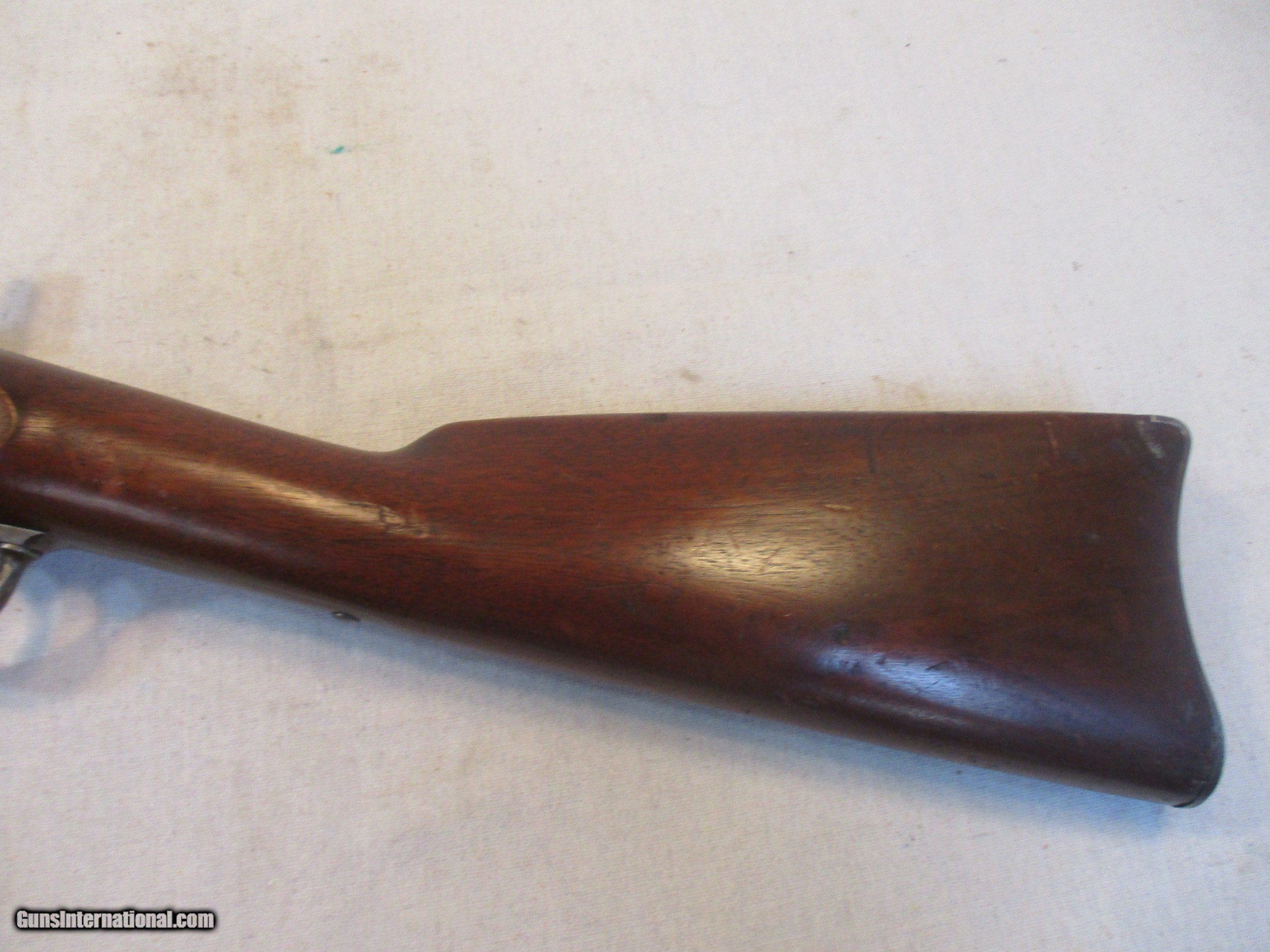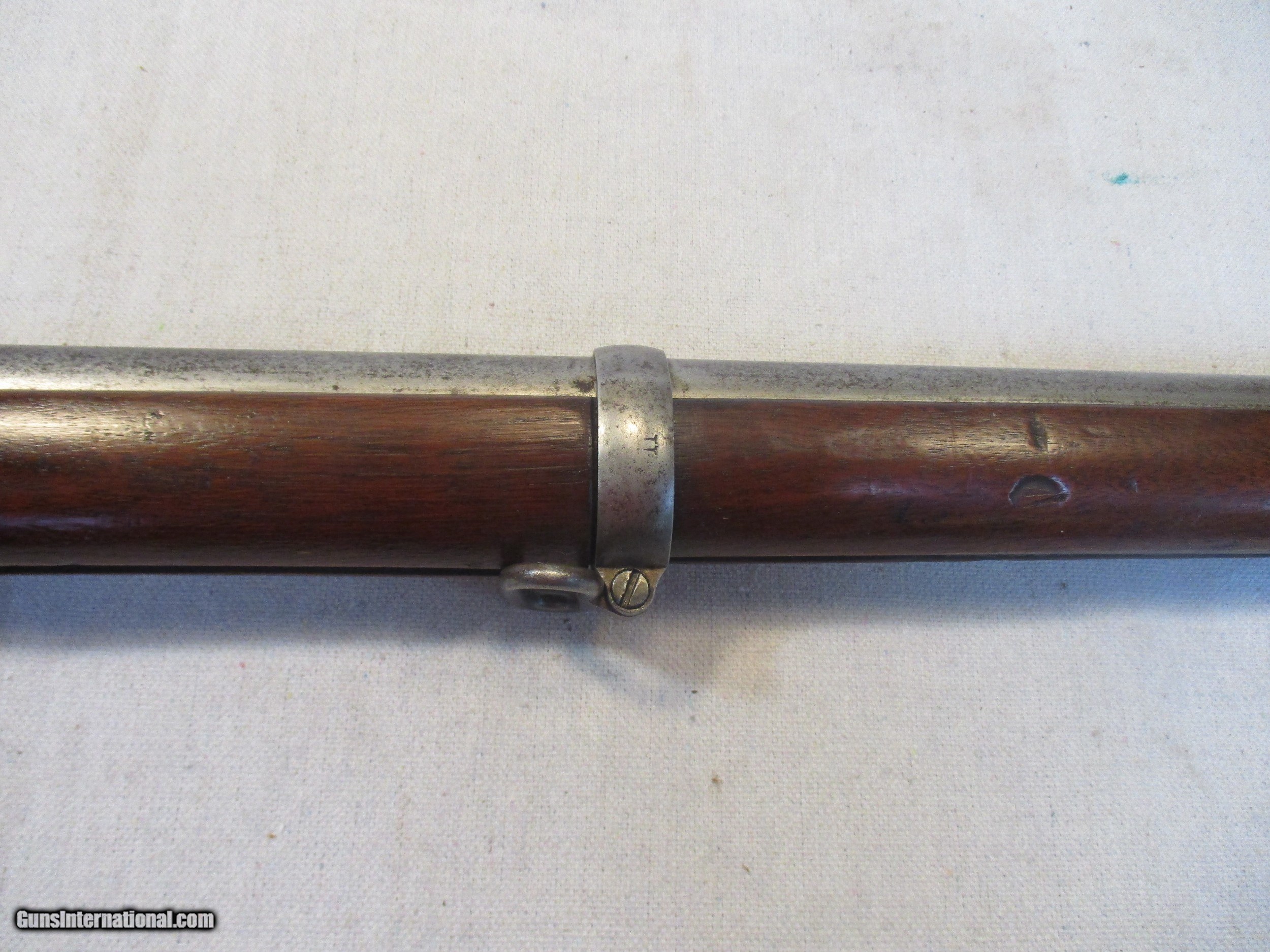 Description: This Model 1862, .58 caliber, percussion rifle-musket, dated 1864, is in complete, very fine condition. Produced at the Alfred Jenks & Co facility in Bridesburg, PA, the musket retains its original stock, bolster, swell-shaped ramrod, barrel bands, and swivel sling hooks. The 40” long barrel surface appears to have not been cleaned. Surface exhibits mottled areas of discoloration and corrosion around the breech.. Barrel, lockplate, hammer, butt plate, bands, retaining springs, trigger guard, rear sight, and ramrod all wear a pleasing, smooth light gray sheen. Lock plate is stamped “U. S. / BRIDESBURG” in front of the hammer and strongly stamped “1864” behind hammer. A sharp and detailed spreadwinged eagle motif is stamped on lockplate between hammer and bolster. An Eagle motif stamped on face of the bolster. Steel butt plate strongly stamped with “U S”. Musket also exhibits "U" stamped on barrel bands.. Has the original two-leaf rear sight and small blade front sight. Barrel bore has crisp rifling. All lock screws are crisp. Government proof marks “V / P / eaglehead” on left facet of the breech are deep and sharp. Mechanics are crisp. Black walnut full stock is in very nice condition overall. Stock exhibits "IN" stamped on the left flat. No cracks in the wood save some tiny dings and dents from use and storage. Retains its steel, swelled shank, tulip-head steel ramrod with a threaded tip, all in excellent condition. A very fine representative Bridesburg contract musket of the Civil War. ******************************************************rcf PLEASE READ OUR FULL DISCLAIMER! Customer Service is available Monday - Friday 10 AM to 5 PM Central Time, to answer questions and emails, or take payments. Reserve prices are not disclosed, so don't ask. Layaway is not offered. Shipping available only within the lower 48 states. We do our best to show everything in the pictures so you know exactly what you are getting. Check out our feedback & purchase with confidence. All items are sold AS IS with NO warranty or guarantees, implied, expressed, or otherwise (Inquire with manufacturers to verify any warranties they may offer). The buyer is ultimately responsible for determining the condition of the item, please ask for additional information or more photos before purchasing if you're unsure. A valid FFL is required for most transactions (C&R Type 3 FFL's are not accepted, NO EXCEPTIONS), and a file copy of the seller FFL will be shipped with the item. Shipping rates will vary based on final sale value, and include ground rates with insurance and signature. Shipping is available within the lower 48 states only. Local pickup is available Monday - Friday, from 10 AM to 5 PM. Accepted forms of payment are charge/debit cards (All Major Credit Cards Accepted), cash (Wire Transfer), money order, Cashiers/Teller/Certified Check or personal check (Item is held for 10 business days to allow ANY checks or money orders (except USPS money orders) to clear). A 3% convenience fee will be added to purchases made with charge/debit cards. Returns are only accepted on a case by case basis depending on the circumstances, and a 20% restocking fee will be charged on all returned or incomplete sells. Have questions, ask. Buyers are solely responsible for determining the safety of items purchased. No firearm should be fired without having the weapon initially inspected by a qualified gunsmith. The firearms offered have NOT been TEST FIRED unless otherwise stated, but have been given a visual inspection for sale purposes only. We are not gunsmiths and can sometimes miss things. It is recommended that buyers have all firearms inspected by a competent gunsmith prior to use. Buyers are solely responsible for their awareness of and compliance with all laws and regulations in their state of residence regarding firearms, ammunition, magazines, accessories, and blades. By purchasing, buyer agrees to release seller from all liability, whether criminal or civil, arising from the purchase, ownership, possession, or use or misuse of items, and against damages, injury or death caused by use or misuse, or defective merchandise. Thank you for your interest & please check out my other listings. SOLD |