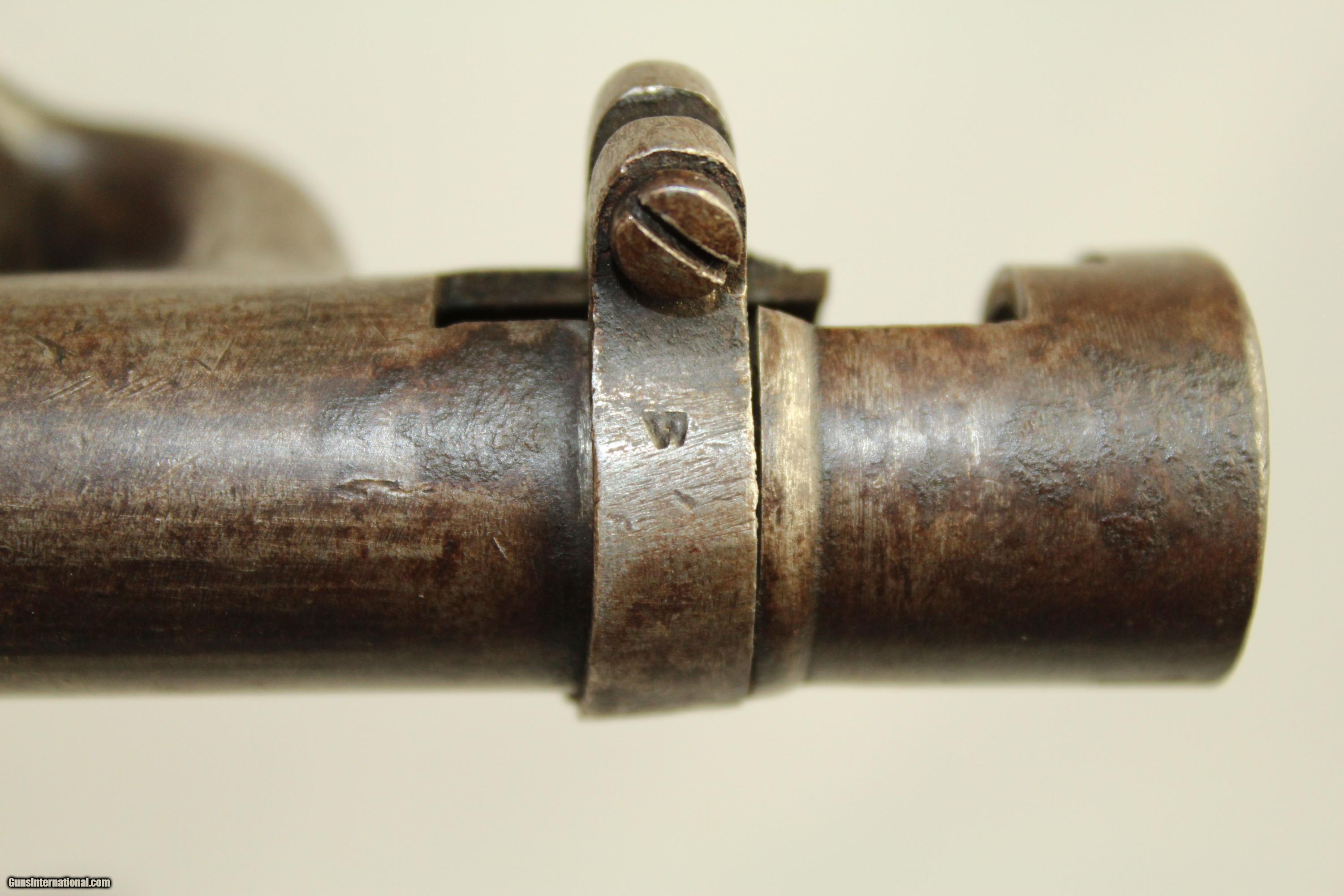 Description: Antique CIVIL WAR US Springfield 1863 Rifle-Musket Primary Infantry Weapon of the American Civil War Here we present an antique U.S. Springfield Model 1863 Type II Rifle-Musket, with original bayonet, made in 1864 at Springfield Armory in Springfield, Massachusetts. The M1863 is representative of the “everyman’s” rifle during the American Civil War. About 1.5 million rifle-muskets were made in the U.S., over 800,000 of which were made by the Springfield Armory. This was the last hurrah of the rifle-musket as arms development and tactics rapidly advanced during the short period of the American Civil War. Nevertheless, the 1863 represented new technology as it was made for use with the Minié ball, a hollow based, conical projectile that was small enough to quickly push down the muzzle of a rifled barrel, and expanded to create a good gas seal unlike solid round ball. The lock is marked “1864” and “U.S. Springfield” with a federal eagle on the lock plate and the nipple bolster. The breech of the barrel is also marked “1864”. The butt plate is marked “U.S.” and the breech of the barrel is proof marked “V/P/Eagle head”. The stock still retains its two original government inspector cartouches. “ESA” is for E.S. Allin in the oval cartouche and the rectangular appears to be the initials of H.S. Hill. Overall condition is fine. The rifle was left in the white by the arsenal. The markings are clear and legible. The walnut stock is very good, solid, and still showing the inspector cartouches. Ramrod and bayonet are original. Bore is clean and shiny. The action is excellent. Own the original! This is a legitimate antique and not a reproduction. Barrel is 40 inches in length. Caliber: .58 percussion Bore is in fine condition. The firing mechanism is excellent. Overall condition as seen in photos. Here is a very nice Civil War rifle-musket, used by the Everyman on the front lines. Very Fast. Very Safe. FREE SHIPPING WORLDWIDE. Delivered directly to your door by express mail! Guaranteed AUTHENTIC & Includes CERTIFICATE OF AUTHENTICITY. ancestryguns $2000 #10374 SOLD Antique: Yes |