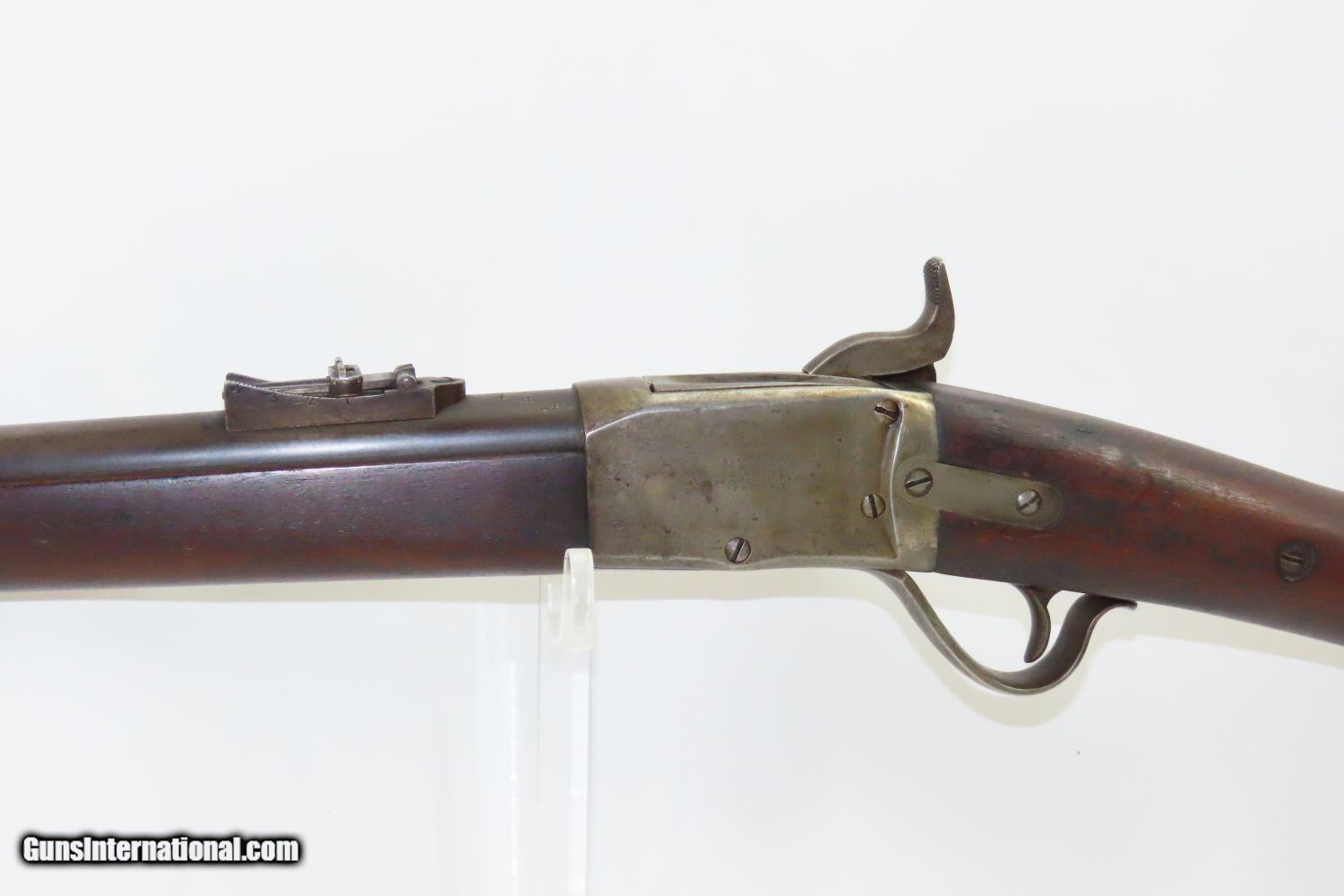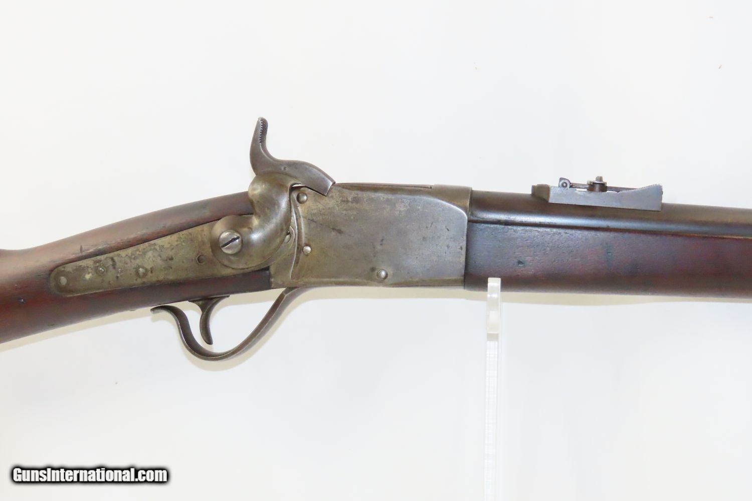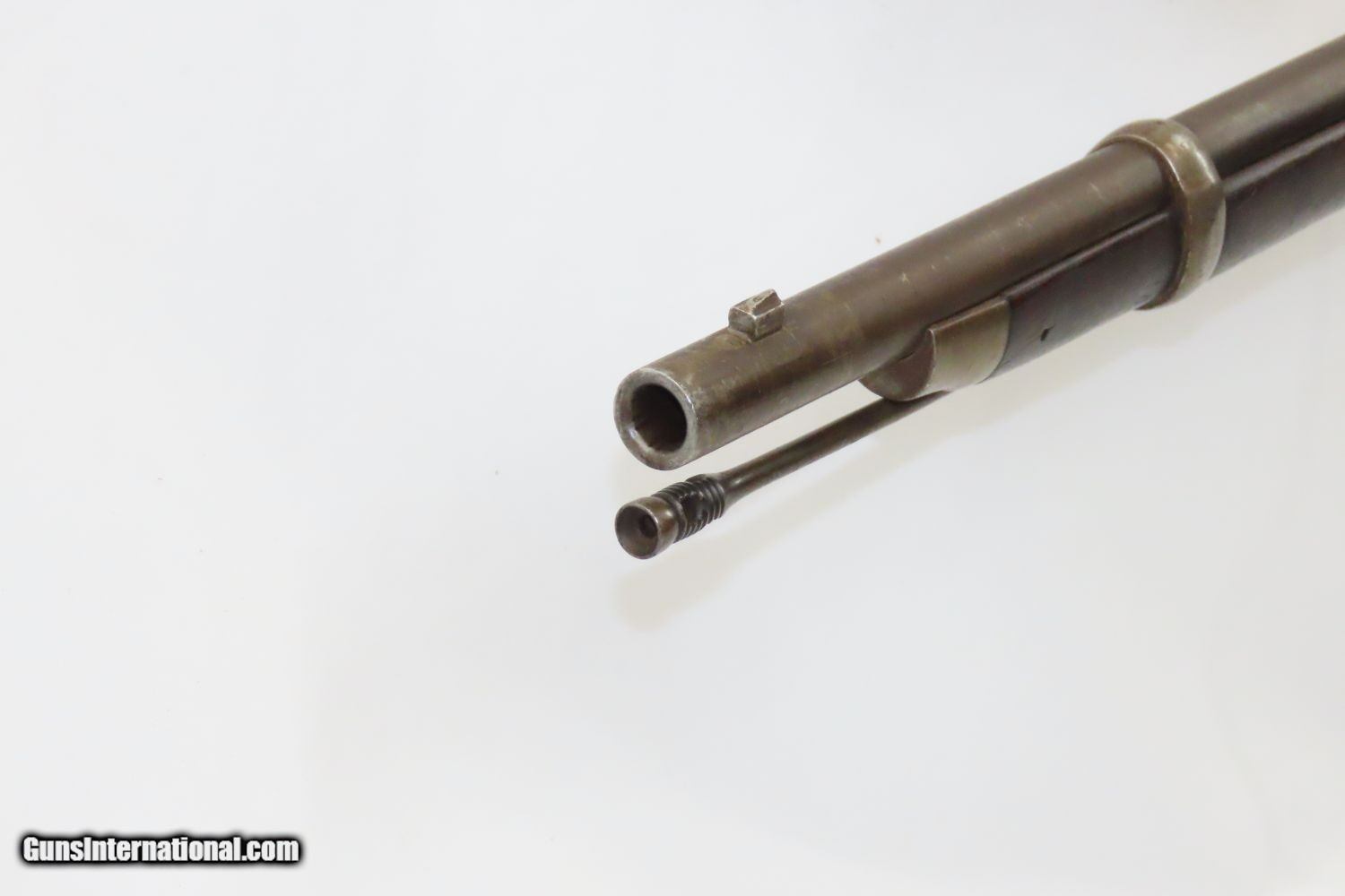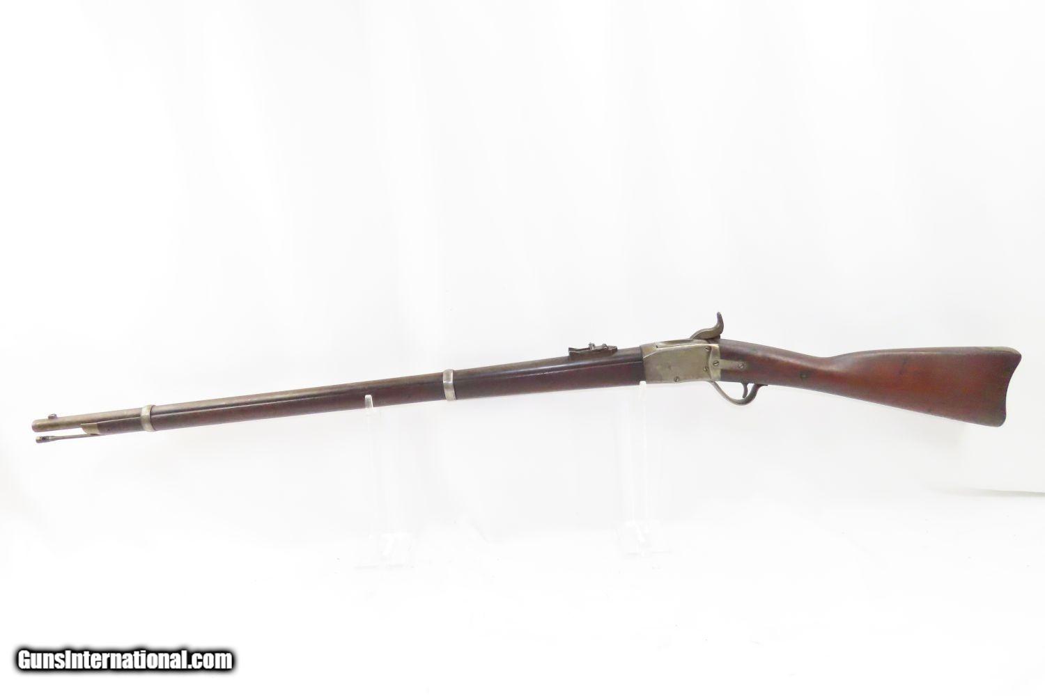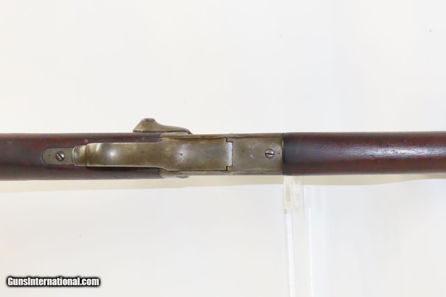 Description: Antique CT MILITIA Marked PROVIDENCE TOOL Company .45-70 GOVT PEABODY RIFLE CONNECTICUT MILITIA Rifle with BAYONET! Here we present an antique Connecticut Militia Marked Peabody Rifle, made by the Providence Tool Company in Providence, Rhode Island. It is one of some 112,000 carbines and rifles produced by the company between 1866 and 1871. Henry Peabody developed this sturdy, single-shot, breechloading rifle during the American Civil War and it compared very favorably against the competition. It might have been adopted by the U.S. military had the conflict not ended when it did. Instead, the federal government decided to adopt the Allin Trapdoor Conversion of the ubiquitous Model 1861 Muskets that were in surplus after the war. Several states, such as Massachusetts and Connecticut, purchased these rifles for their militias. This rifle utilizes a trigger-guard that acts as a breech lever to lower the breechlock for top loading of the metallic round. It also features a back action style lock with a large side hammer. It features a very neat rear sight that is capable of five elevation adjustments! There are no sling swivels on this model, which is correct for a rifle that wasn refurbished. This specimen has a lock marked with “PEABODY PAT./JULY 22 1862/MAN’F’D BY/PROVIDENCE TOOL CO./PROV. R.I.” Single letter inspection marks are found throughout. The overall condition is very good. Strong action. Bright bore. The stock is solid. “43” is stamped on both the buttstock and barrel. Sharp markings. The included bayonet is in very good shape. Own the original! This is a legitimate antique and not a reproduction. Barrel is 33 inches. Caliber: .45-70 GOVT Overall condition as seen in photos. Very Fast. Very Safe. FREE SHIPPING WORLDWIDE. Delivered directly to your door by express mail! Guaranteed AUTHENTIC & Includes CERTIFICATE OF AUTHENTICITY. ancestryguns $2485 #210296 SOLD Antique: Yes |