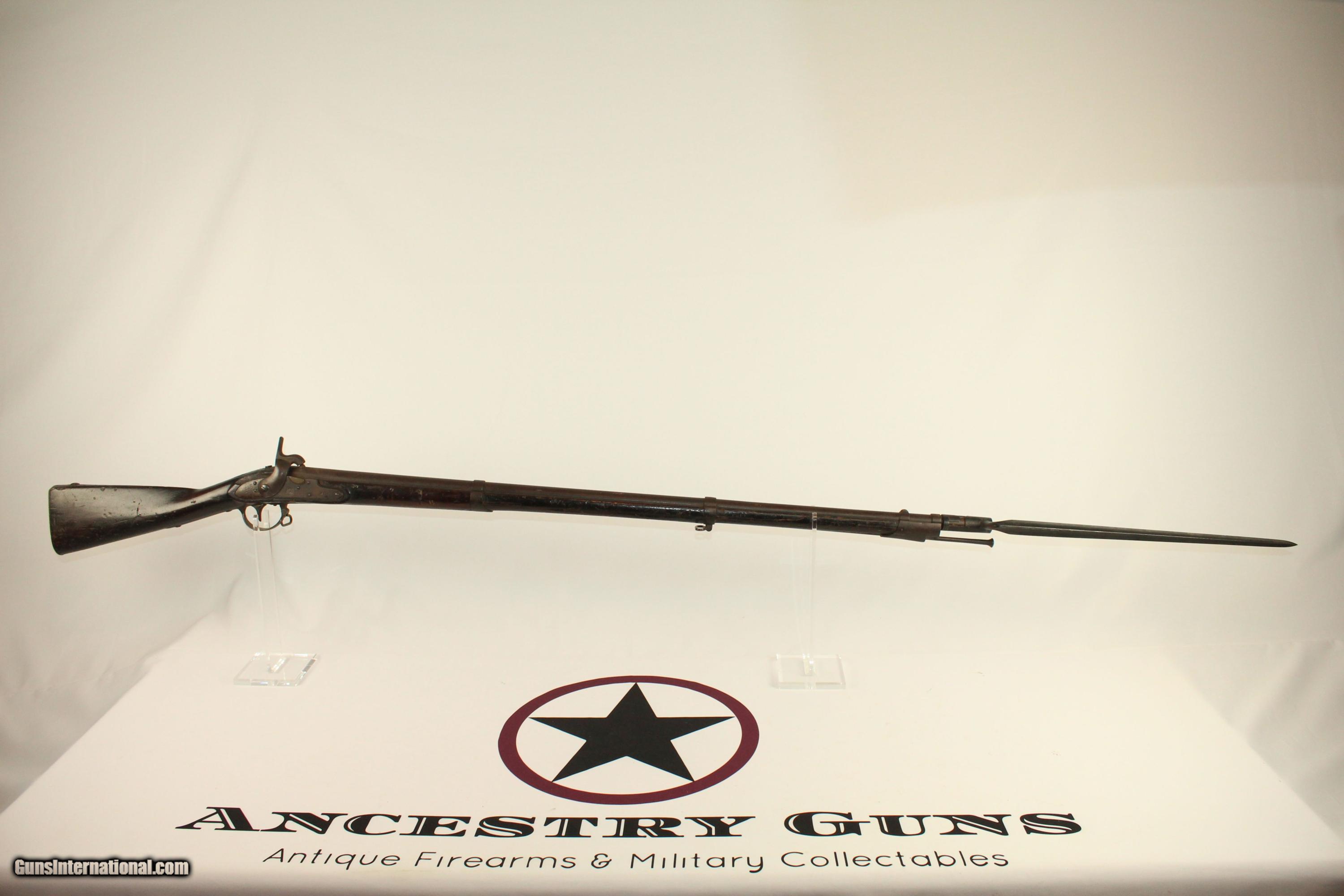 Description: Antique HARPERS FERRY U.S. M1816 Dated 1828 Musket Civil War-era Conversion to Percussion, Made 1828 Here we present an antique U.S. Model 1816 3 Band Musket, made by Harpers Ferry, circa 1828, then updated to percussion around the time of the American Civil War. The Model 1816 was the largest production of U.S. flintlock muskets, with an impressive run from 1816-1840. Both national armories, Springfield and Harpers Ferry, were involved as were about 16 different contractors. Conflicts during this period included numerous encounters with Native Americans, as well as the Mexican-American War. The lock is marked with a federal eagle over “U.S.” The back of the lock is marked “HARPERS/FERRY/1828”. The front of the trigger guard appears marked with a “7” as is the hardware on the left side of the stock, opposite the lock. There is a “V/MB” mark in the wood behind the trigger guard. “VP” federal proof marks are on the left side of the barrel. The bayonet is also marked “US”. The overall condition of this musket is good. The iron surfaces are very dark with age. Markings are legible. The walnut stock is also quite dark and is solid all the way through. It shows a lot of use, which is to be expected after surviving military service preceding the American Civil War. The bore is smooth and clean. The action is very strong. Here is a fantastic example of a US military musket with a ton of history. Own the original! This is a legitimate antique and not a reproduction. Barrel is 42 inches in length. Caliber: .69 Overall condition as seen in photos. Very Fast. Very Safe. FREE SHIPPING WORLDWIDE. Delivered directly to your door by express mail! Guaranteed AUTHENTIC & Includes CERTIFICATE OF AUTHENTICITY. ancestryguns $1500 #10509 SOLD Antique: Yes |