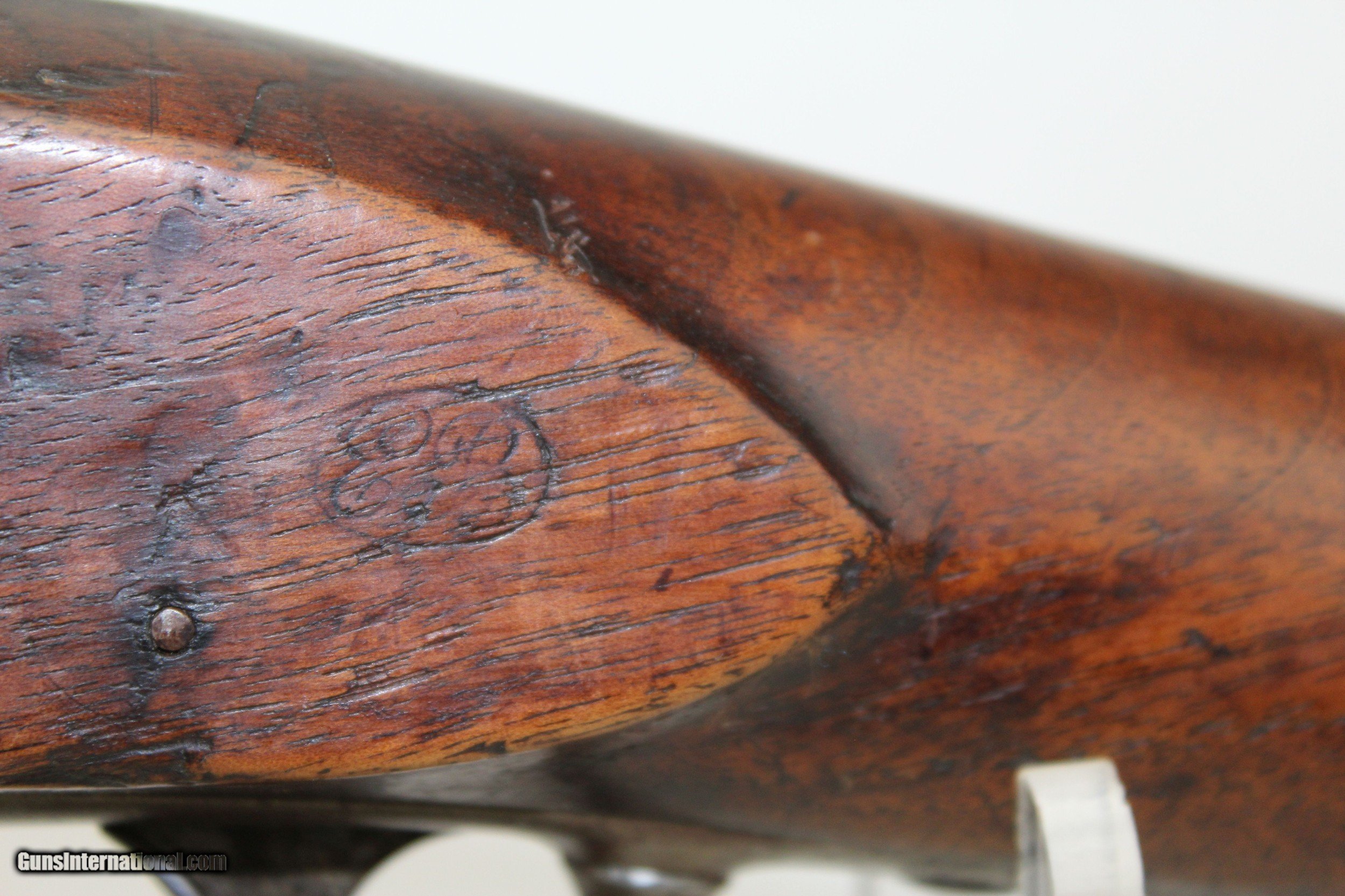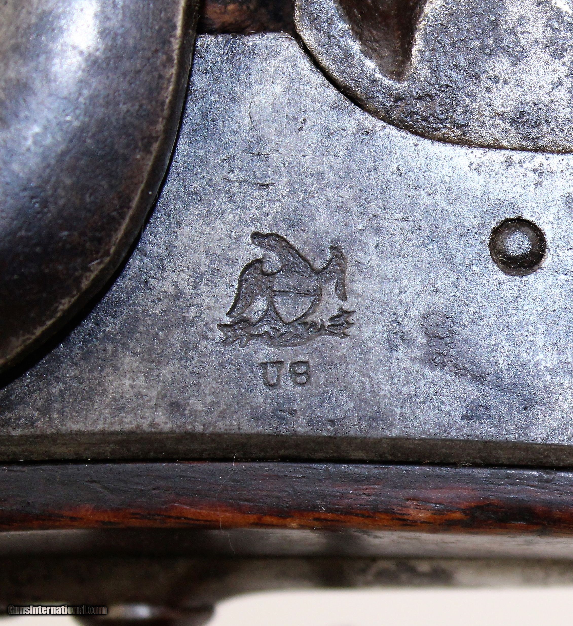 Description: Antique HARPERS FERRY U.S. Model 1816 MUSKET Original Flintlock to Percussion Here we present an antique Harpers Ferry Armory US Model 1816 Percussion Musket, manufactured at the armory at Harpers Ferry, Virginia circa 1839. The M1816 was in production at Springfield (325,000) and Harpers Ferry (350,000) between 1816 to 1844 with around 675,000 muskets produced during this run. It saw service during the Mexican-American War and was even pressed into service during the Civil War in both the updated percussion and the old flintlock format. In the 1850’s, many 1816’s went through the conversion from flintlock to percussion firing system, as was this one with the lock dated "1855" with the "55" stamped over the original lock date of “1839”. This type of conversion entailed replacing the breech with one with an integral bolster. This was a more refined method of conversion done on contract by a firm Hewes & Phillips of Newark, New Jersey. This one bears a good inspector cartouche on the left side of the stock. The bottom of the stock is marked “JOS” inside a cartouche with the initials “WBY”. Initials “NT” on the trigger guard. The overall condition is very good. The metal surface are dark with age. The markings are clear and legible. The walnut stock shows the wear and use that you would expect from a nearly 180-year-old musket. It remains solid. The bore is smooth and dark. The action is excellent, strong and crisp. A very interesting musket updated just in time for the American Civil War! Own the original! This is a legitimate antique and not a reproduction. Barrel is 42 inches. Caliber: .69 Percussion Overall condition as seen in photos. Very Fast. Very Safe. FREE SHIPPING WORLDWIDE. Delivered directly to your door by express mail! Guaranteed AUTHENTIC & Includes CERTIFICATE OF AUTHENTICITY. ancestryguns $1800 #7046 SOLD Antique: Yes |