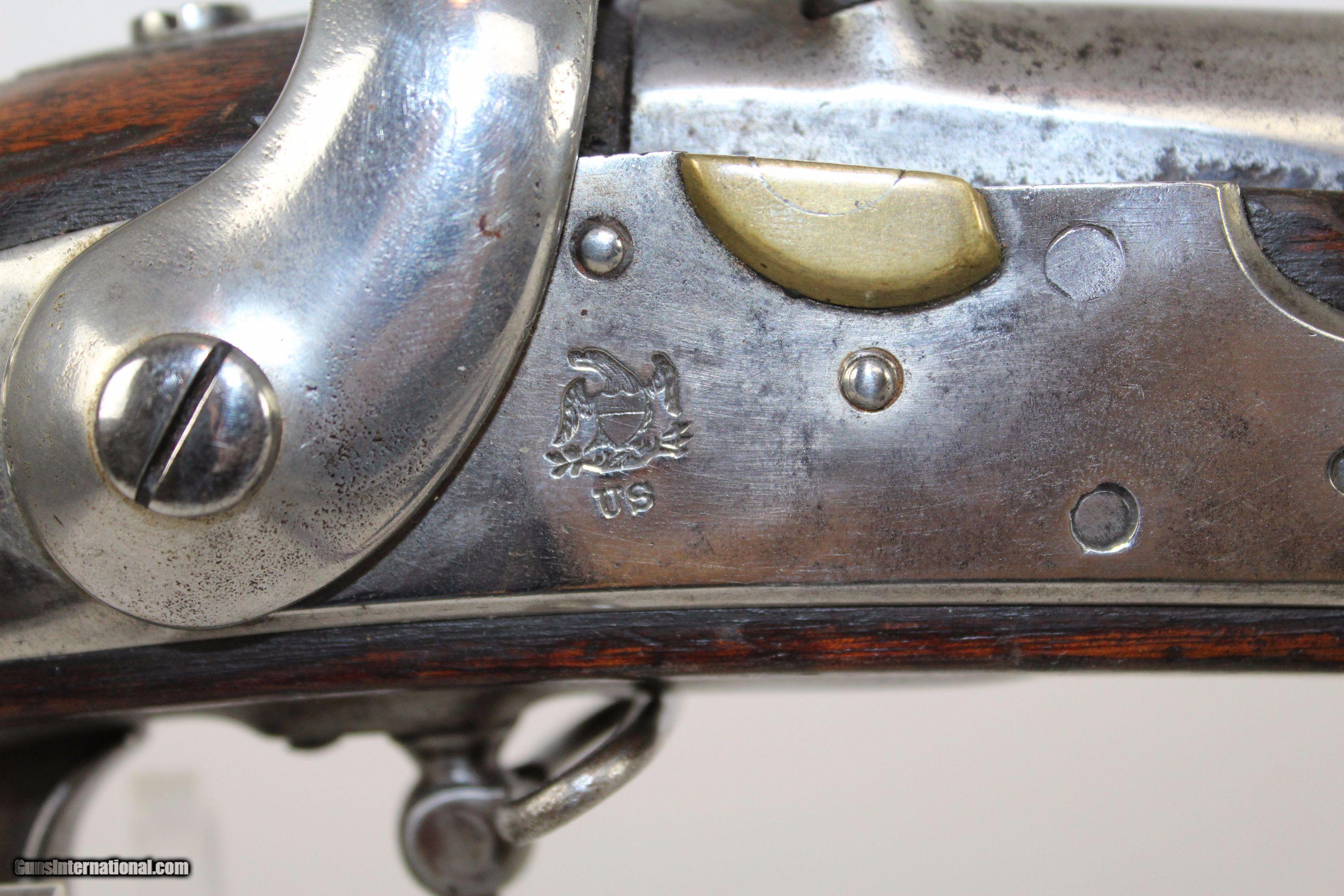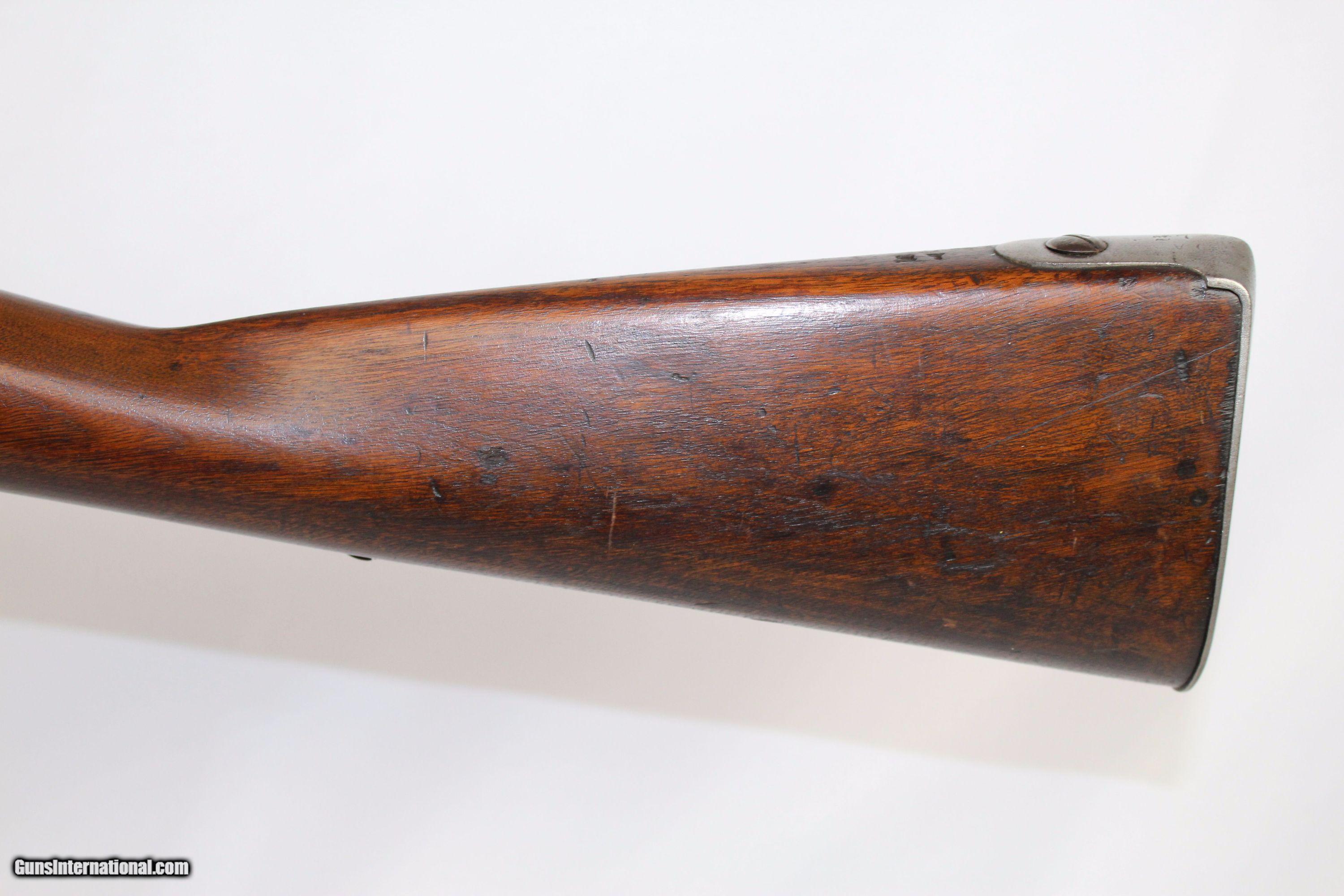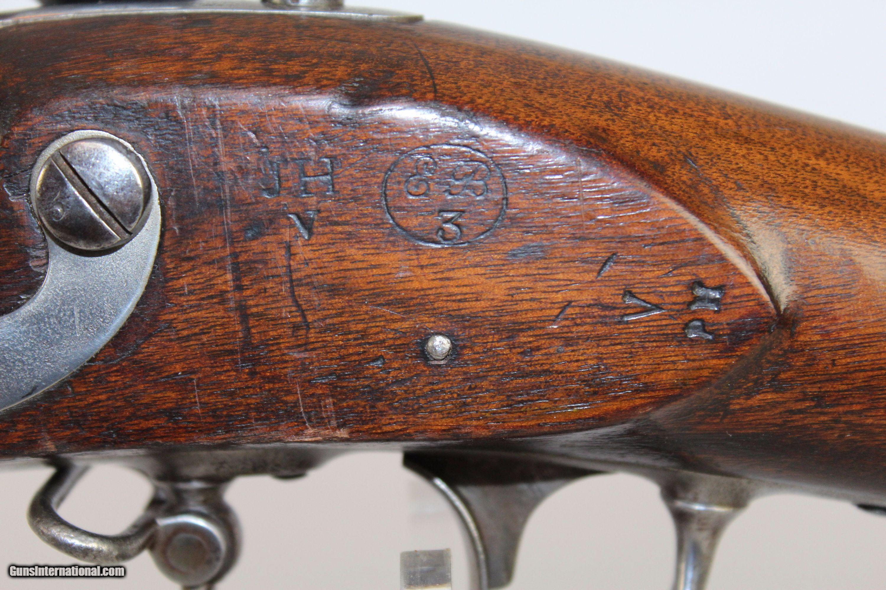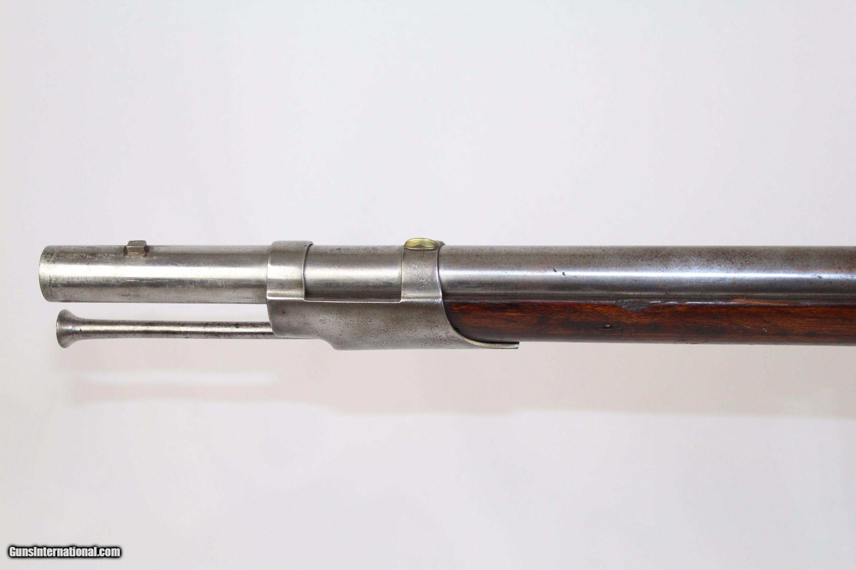 Description: Antique HARPERS FERRY US Model 1816 Rifle-Musket DATED “1830” & Converted During the Civil War-era Here we present an antique U.S. Model 1816 3 Band Musket, made by Harpers Ferry, circa 1830, then updated to percussion around the time of the American Civil War. The Model 1816 was the largest production of U.S. flintlock muskets, with an impressive run from 1816-1840. Both national armories, Springfield and Harpers Ferry, were involved as were about 16 different contractors. Conflicts during this period included numerous encounters with Native Americans, as well as the Mexican-American War. The lock is marked with a federal eagle over “U.S.” The back of the lock is marked “HARPERS/FERRY/1830”. Government inspector view marks are very clear on the left side of the stock “PH/V”, “JH/V” and “EB/3”. “VP” federal proof marks are on the left side of the barrel. The initials “D.A.M” are stamped on the back of the butt plate. The number “27” is stamped deeply into the butt plate tang and just ahead of the tang in the walnut stock. This could be a rack number. Screws, trigger guard, barrel bands, etc. all have a matching assembly number “5”. The overall condition is near fine. The metal surfaces are smooth and bright. The markings are deep, clear and legible. The walnut stock shows handling but is nice and smooth overall. The bore is well-rifled and clean. The action is excellent. Here is a fantastic-looking piece of history that made it through several American wars in fabulous condition. Own the original! This is a legitimate antique and not a reproduction. Barrel is 40 inches. Caliber: .69 Percussion Overall condition as seen in photos. Very Fast. Very Safe. FREE SHIPPING WORLDWIDE. Delivered directly to your door by express mail! Guaranteed AUTHENTIC & Includes CERTIFICATE OF AUTHENTICITY. ancestryguns $2000 #5176 SOLD Antique: Yes |