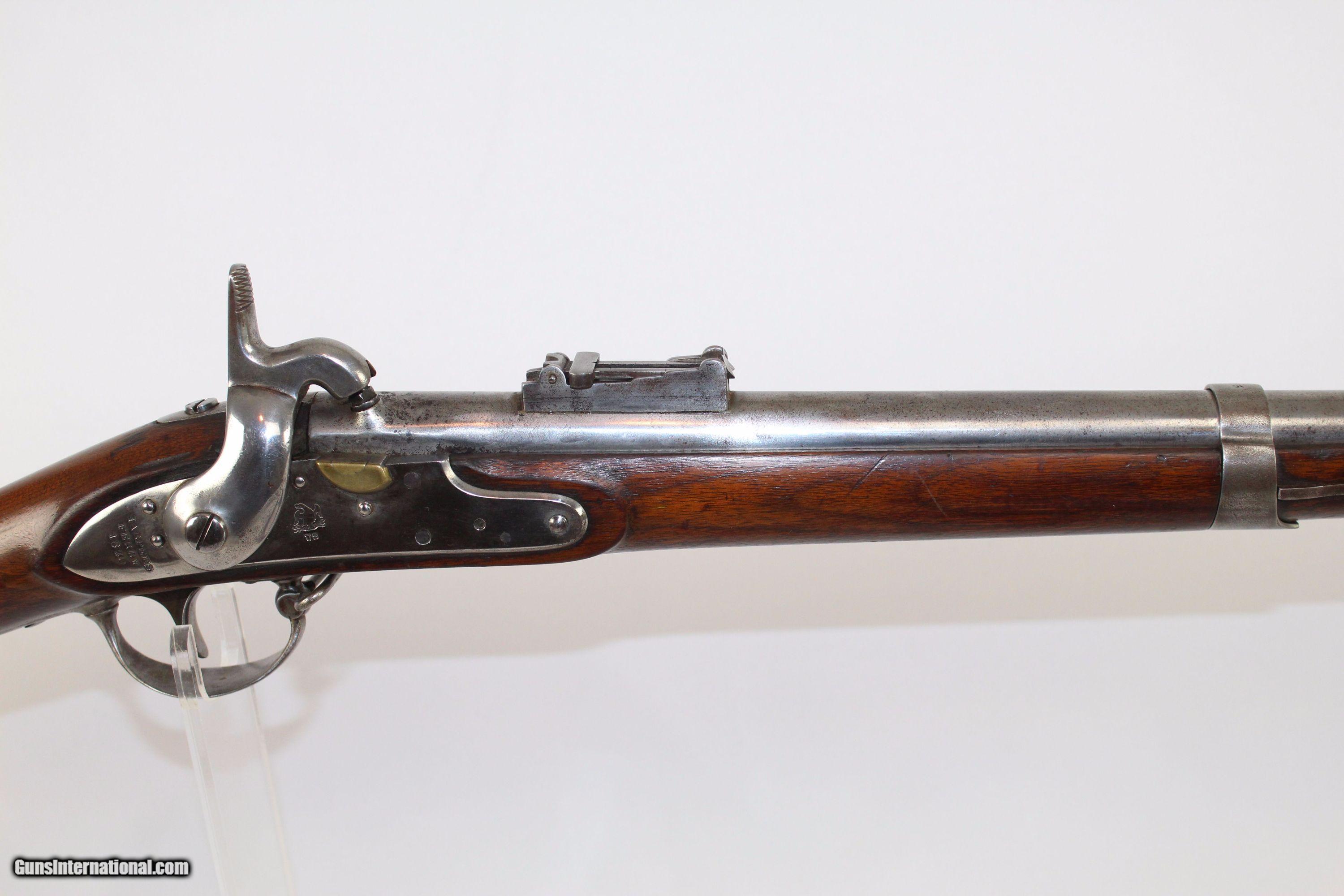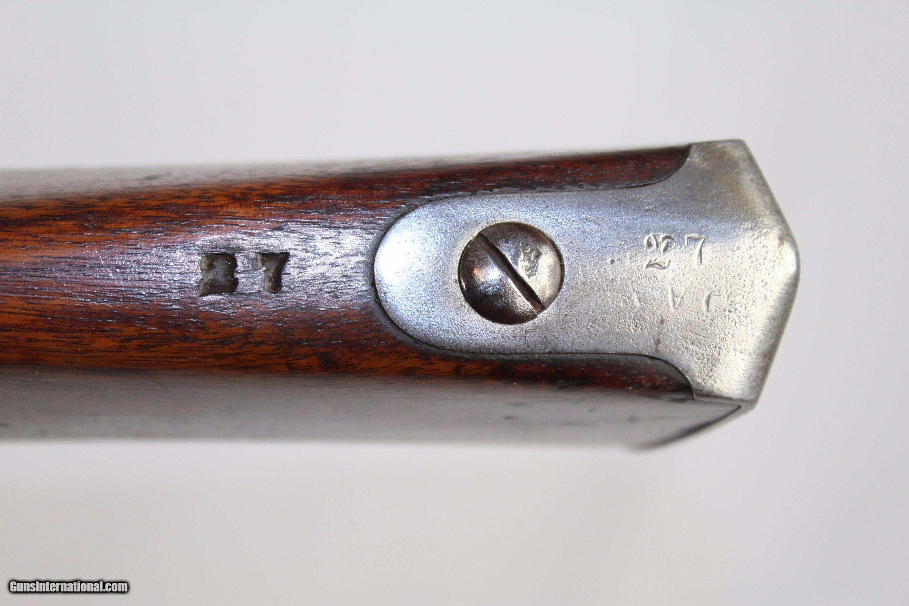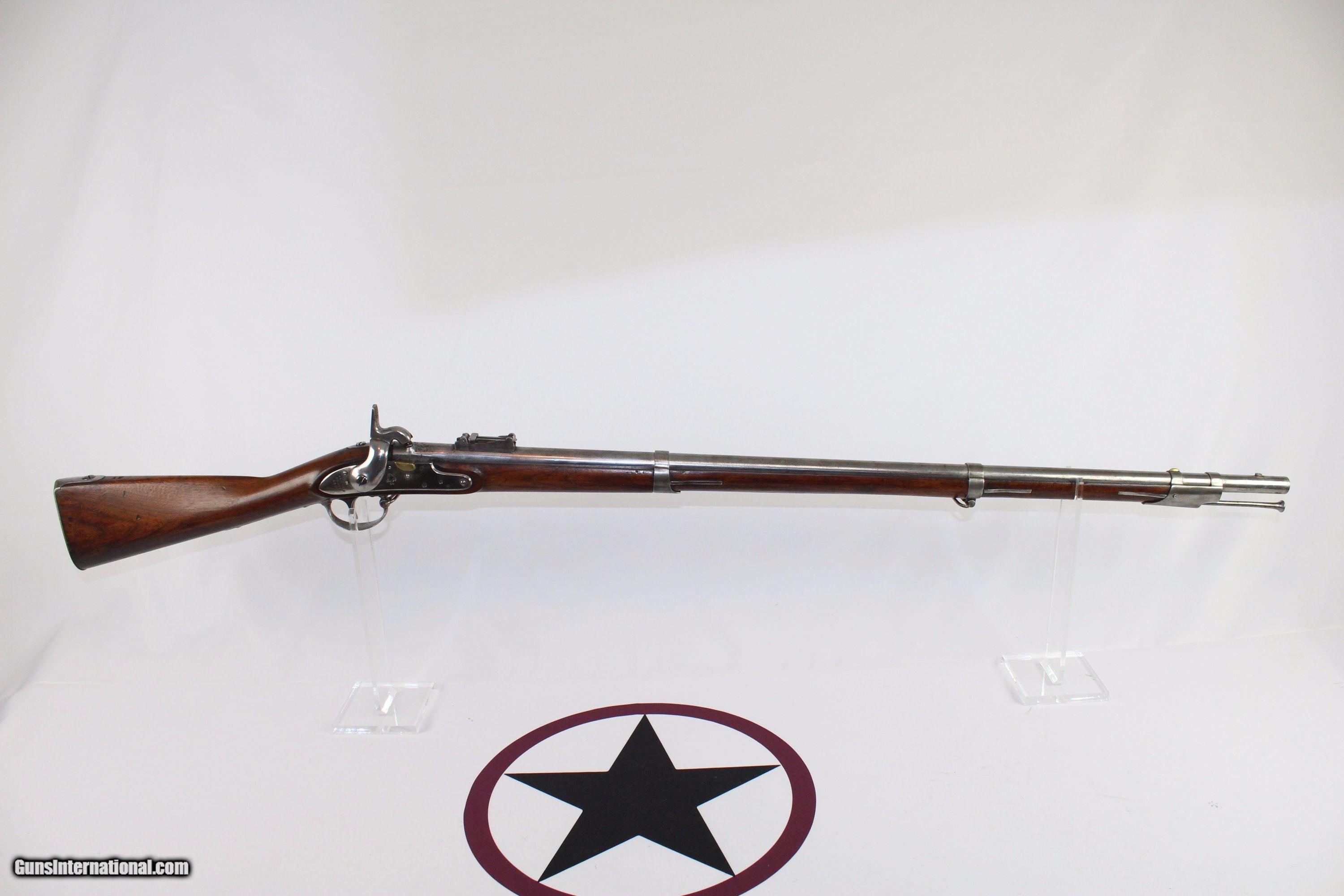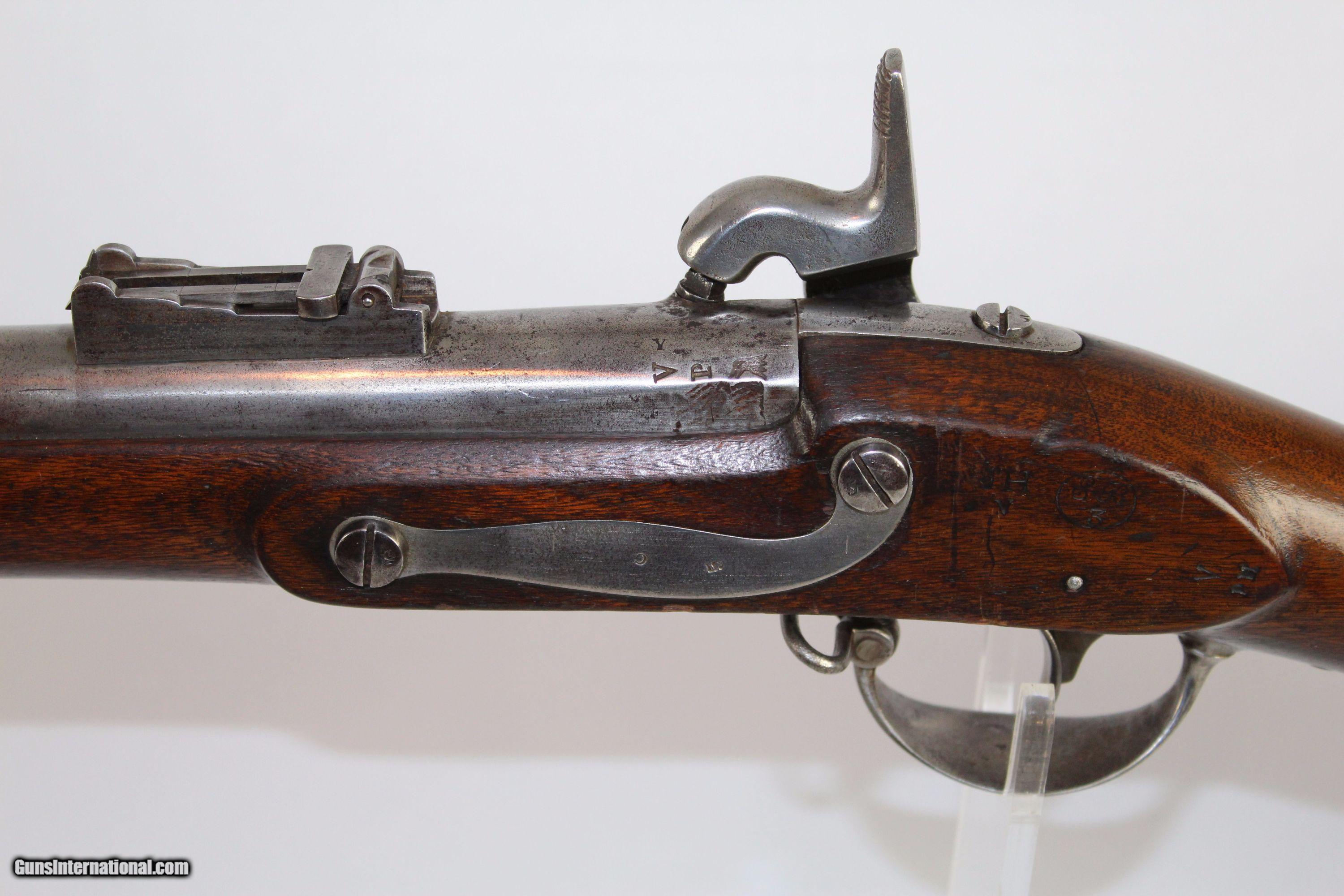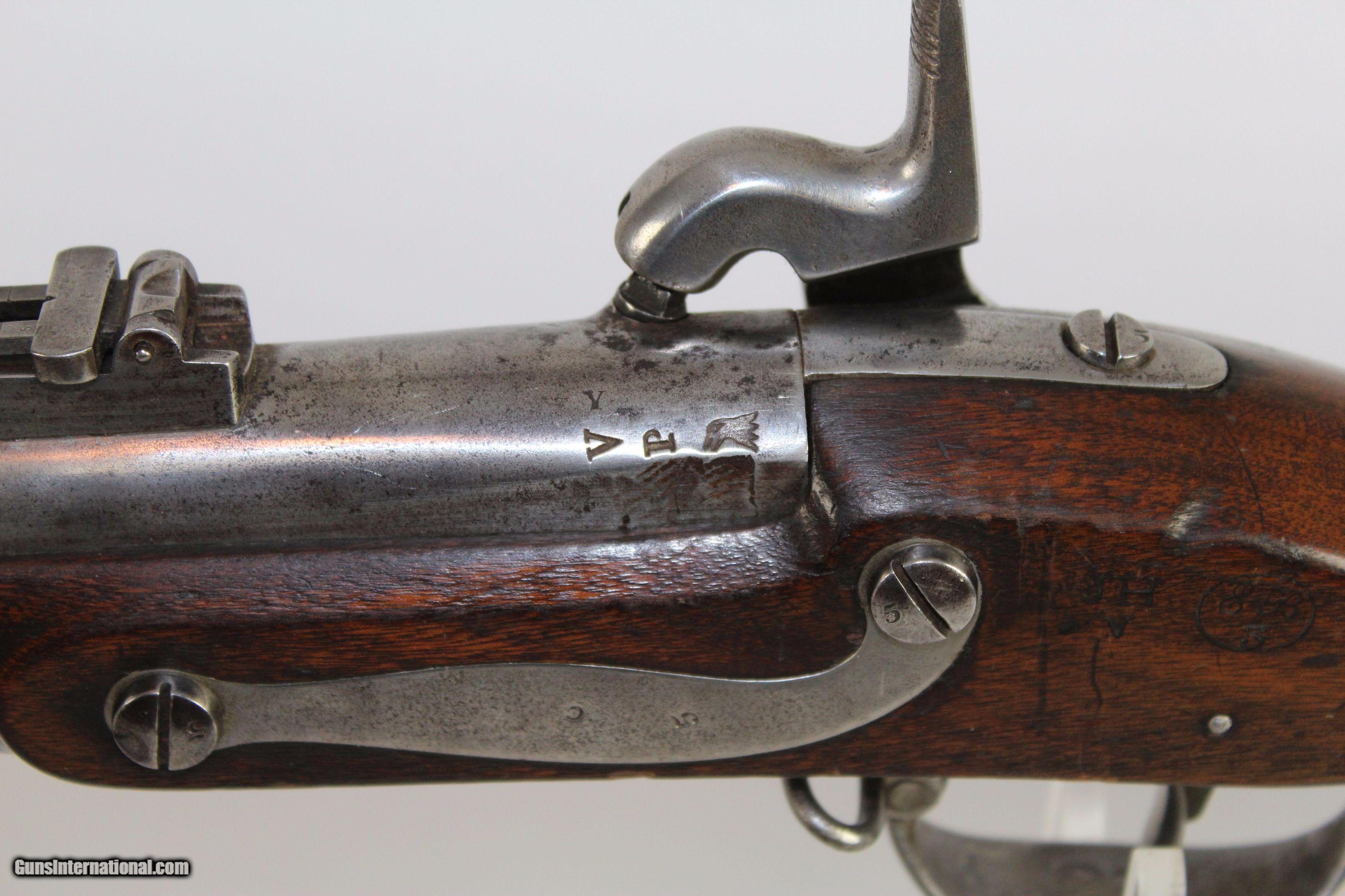 Description: Antique HARPERS FERRY US Model 1816 Rifle-Musket DATED “1830” & Converted During the Civil War-era Here we present an antique U.S. Model 1816 3 Band Musket, made by Harpers Ferry, circa 1830, then updated to percussion around the time of the American Civil War. The Model 1816 was the largest production of U.S. flintlock muskets, with an impressive run from 1816-1840. Both national armories, Springfield and Harpers Ferry, were involved as were about 16 different contractors. Conflicts during this period included numerous encounters with Native Americans, as well as the Mexican-American War. The lock is marked with a federal eagle over “U.S.” The back of the lock is marked “HARPERS/FERRY/1830”. Government inspector view marks are very clear on the left side of the stock “PH/V”, “JH/V” and “EB/3”. “VP” federal proof marks are on the left side of the barrel. The initials “D.A.M” are stamped on the back of the butt plate. The number “27” is stamped deeply into the butt plate tang and just ahead of the tang in the walnut stock. This could be a rack number. Screws, trigger guard, barrel bands, etc. all have a matching assembly number “5”. The overall condition is near fine. The metal surfaces are smooth and bright. The markings are deep, clear and legible. The walnut stock shows handling but is nice and smooth overall. The bore is well-rifled and clean. The action is excellent. Here is a fantastic-looking piece of history that made it through several American wars in fabulous condition. Own the original! This is a legitimate antique and not a reproduction. Barrel is 40 inches. Caliber: .69 Percussion Overall condition as seen in photos. Very Fast. Very Safe. FREE SHIPPING WORLDWIDE. Delivered directly to your door by express mail! Guaranteed AUTHENTIC & Includes CERTIFICATE OF AUTHENTICITY. ancestryguns $2000 #5176 SOLD Antique: Yes |