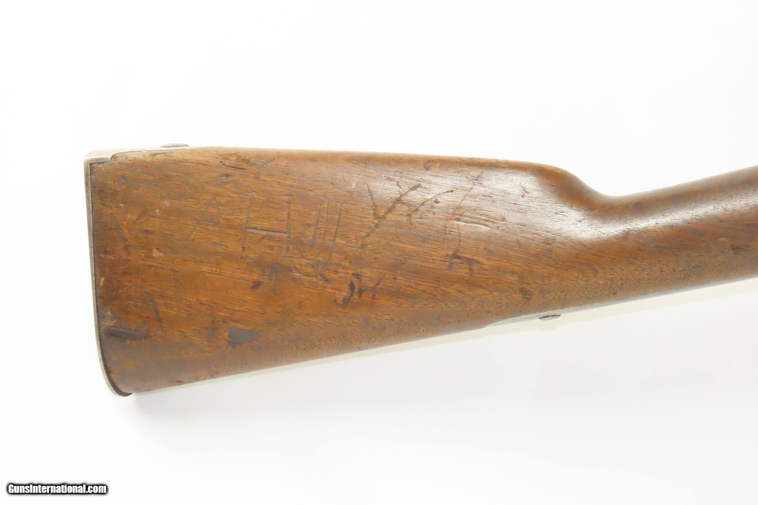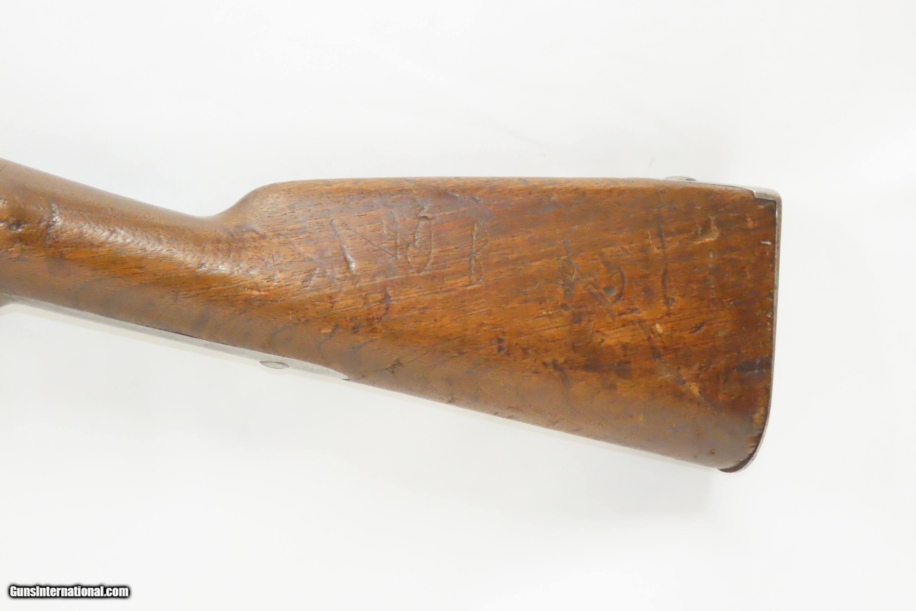 Description: Antique SPRINGFIELD ARMORY US Model 1842 .69 Infantry Musket CIVIL WAR 1845 Dated MEXICAN-AMERICAN WAR Smoothbore Musket Here we present a Springfield Armory U.S. Model 1842 Percussion Musket, manufactured circa 1845 in Springfield, Massachusetts. From the period of 1844 until 1855, about 275,000 Model 1842 muskets were manufactured at the Springfield and Harpers Ferry Armories, along with some being made by private providers commissioned to assist in production. Along with usage during the Mexican-American War in 1846 through 1848, these would have been in the hands of local militia all over the antebellum United States and used by both combatants at the outbreak of the American Civil War. Sights were not included in the smoothbore’s design but arrived later as the muskets were rifled later in its life. The Model 1842 was the first regulation percussion musket to be manufactured at both Springfield and Harpers Ferry Armories, as well as the first to be produced by both national armories with fully-interchangeable parts. These were also the last .69 caliber smoothbore arms to be produced by the U.S. government. Both the original smoothbore version and the modified rifled version of the Model 1842 were used in the American Civil War. The smoothbore version was produced without sights (except for a cast one on the barrel band). When Model 1842 muskets were modified to have rifled barrels, sights were usually added at the same time as the rifling. The overall condition is good. Light patina throughout. The action is excellent. The bore is smooth with a patina and is still somewhat reflective. The walnut stock has initials carved throughout and remains solid, showing use. The lock is dated 1845 while the barrel is dated 1851, which means that the barrel was likely replaced at some point. A solid example of an early percussion musket that might have seen action in two major US conflicts! Own the original! This is a legitimate antique and not a reproduction. Barrel is 42 inches. Caliber: .69 Percussion Overall condition as seen in photos. Very Fast. Very Safe. FREE SHIPPING WORLDWIDE. Delivered directly to your door by express mail! Guaranteed AUTHENTIC & Includes CERTIFICATE OF AUTHENTICITY. ancestryguns $1700 #233565 SOLD Antique: Yes |