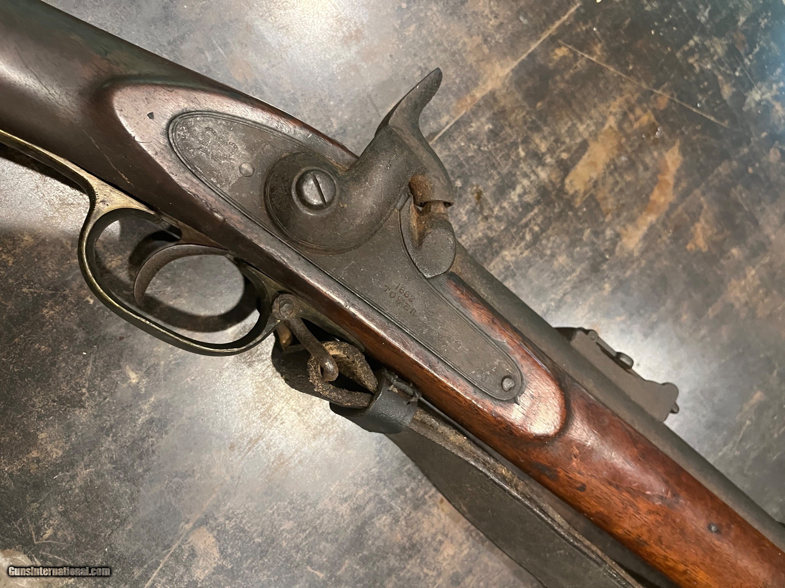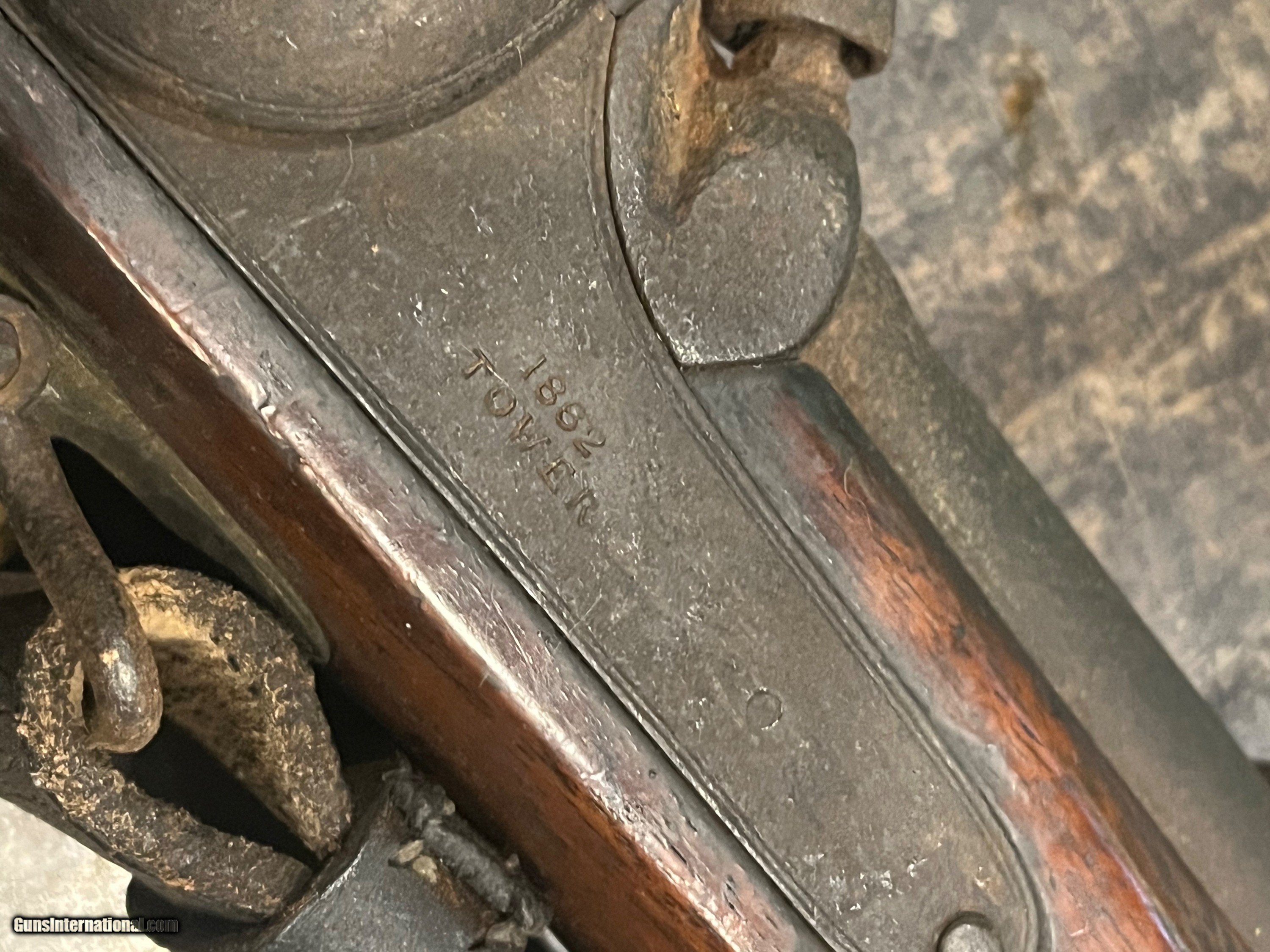 Description: Attic discovery untouched 1862 Battle Struck tower enfield musket with original sling SOLD Curio/Relic: Yes Antique: Yes Rifle Caliber: .58 |