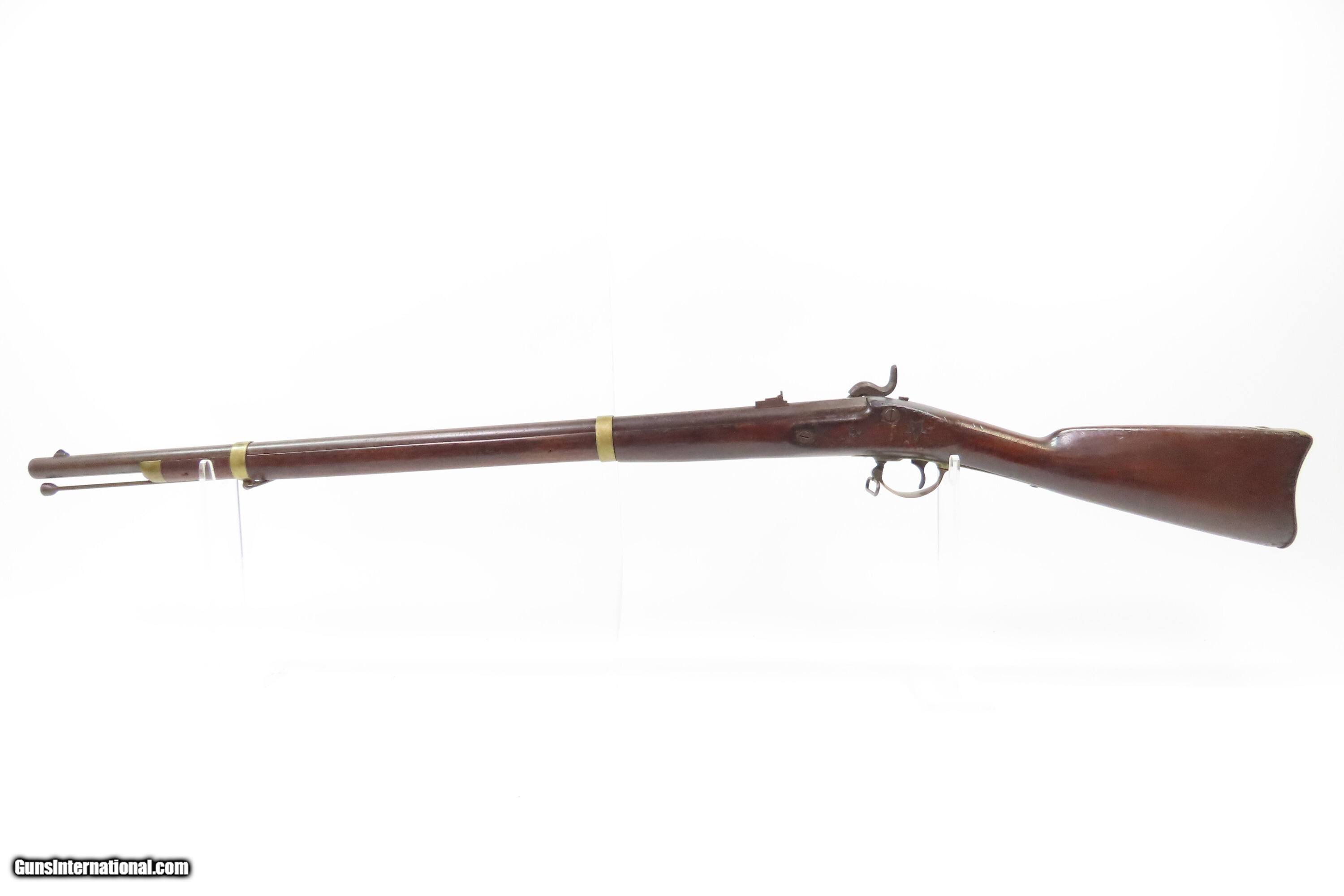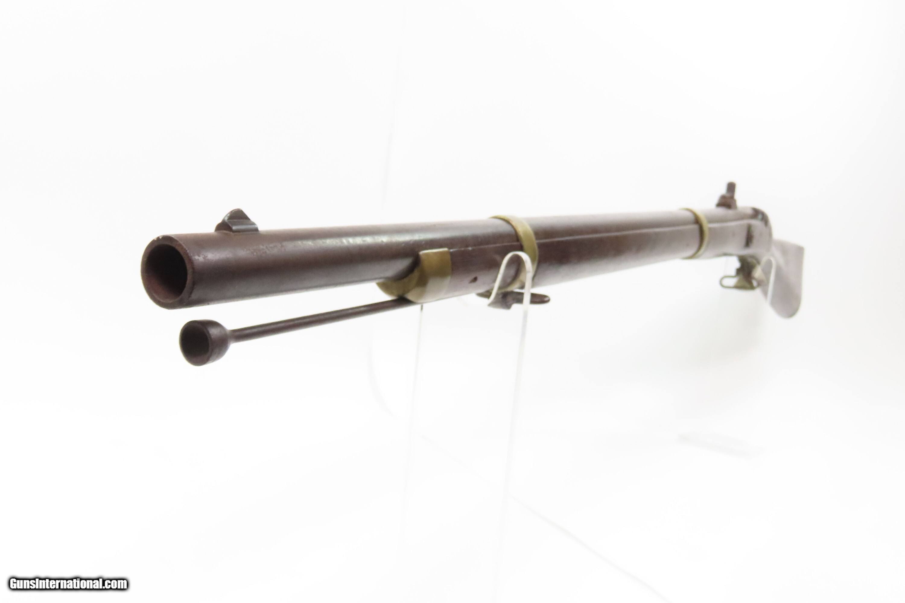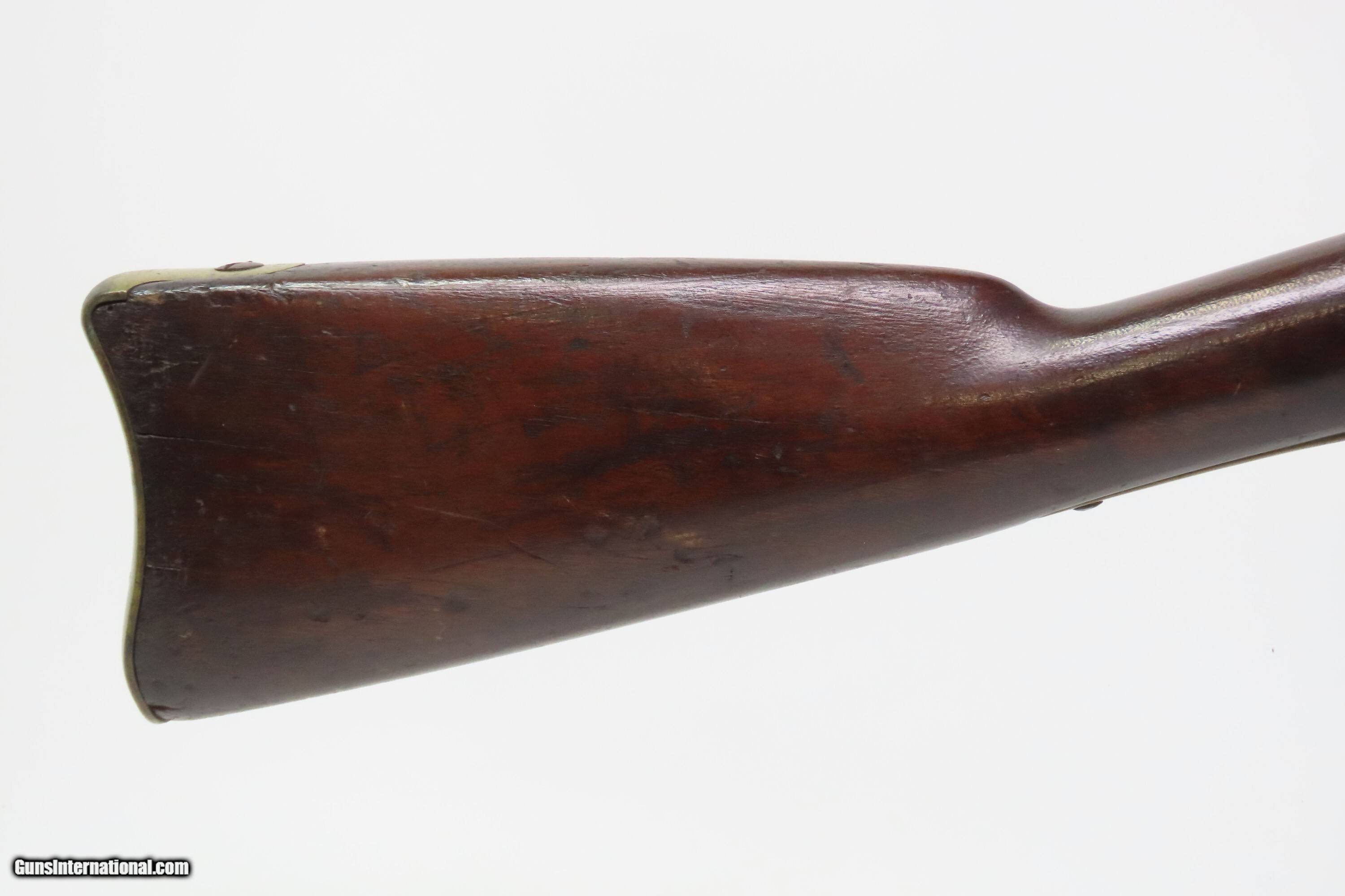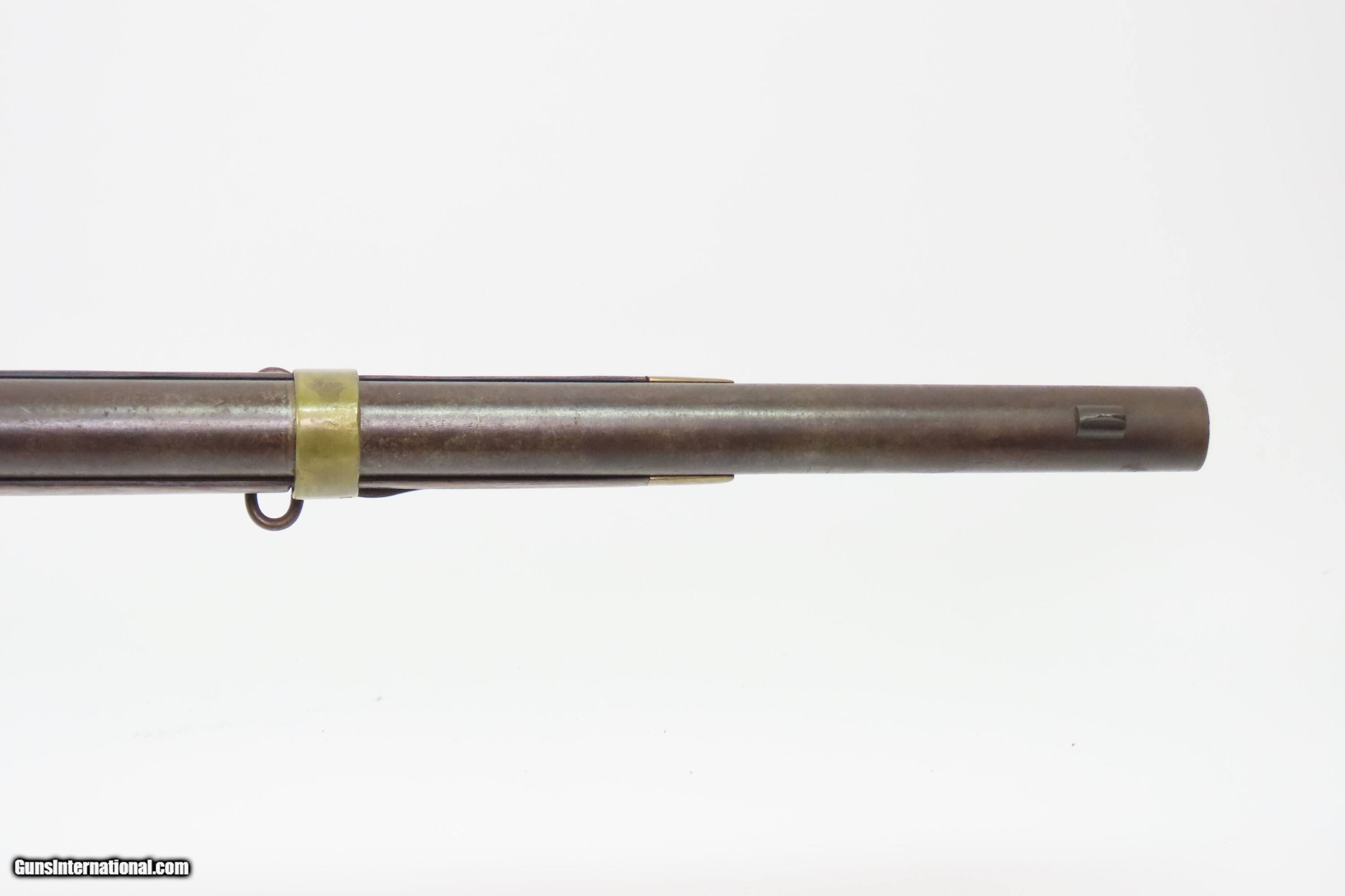 Description: C.S.A. Marked FAYETTEVILLE ARMORY Civil War CONFEDERATE Antique Perc. Rifle With 1864 Dated Lock & Five Pointed Star on Stock Here we present an antique Confederate Fayetteville Armory Type IV Musket, made circa 1864.The Fayetteville Rifle was a 2-banded rifle produced at the Confederate States Arsenal in Fayetteville, North Carolina. The machinery which produced these weapons was primarily that which was captured at the United States Arsenal at Harpers Ferry, Virginia, which was previously used to produce the U.S. Model 1855 Rifle. The weapon was produced in .58 caliber from early in 1862 until the capture and destruction of the arsenal by Union forces under General W. T. Sherman on March 11, 1865. In February, 1862, the Fayetteville Observer, in describing the beginning of arms’ manufacturing at the arsenal, reported: “A few days ago we were shown one of a number of rifles furnished at the C. S. Armory here. It is much the same in general appearance, as the U.S. rifle for some years made at Harper’s Ferry and at Springfield, Mass.; but for certain improvements, in the matter of sword bayonet, Maynard primer, and perfection of finish in all parts, it must be pronounced very superior. The back sights are set for 800 and 500 yards. Altogether, we think it the handsomest specimen of small arms, rifle or musket, we have ever seen-reflecting the greatest credit upon all concerned with its manufacture.” The first examples were manufactured using assorted M1855 lock blanks and are mounted in iron with high and medium high lockplate humps. Later examples are mounted in brass with an “S” shaped hammer. Only the very early examples are known to have a patch box. The rifle was made both with and without a special bayonet lug which allowed the use of a sword bayonet. The overall condition is good. Patina throughout. The action is excellent. The barrel was bored smooth long ago and is dark. This musket was likely turned into a working farm shotgun during reconstruction, hence the smooth bore, and had the forestock shortened. This musket has a stock restored to full-length with an expertly executed graft under the rear barrel band. Barrels bands and ramrod are replacements. Own the original! This is a legitimate antique and not a reproduction. Barrel is 33 inches. Caliber: .63 Percussion Overall condition as seen in photos. Very Fast. Very Safe. FREE SHIPPING WORLDWIDE. Delivered directly to your door by express mail! Guaranteed AUTHENTIC & Includes CERTIFICATE OF AUTHENTICITY. ancestryguns $4800 #250058 SOLD Antique: Yes |