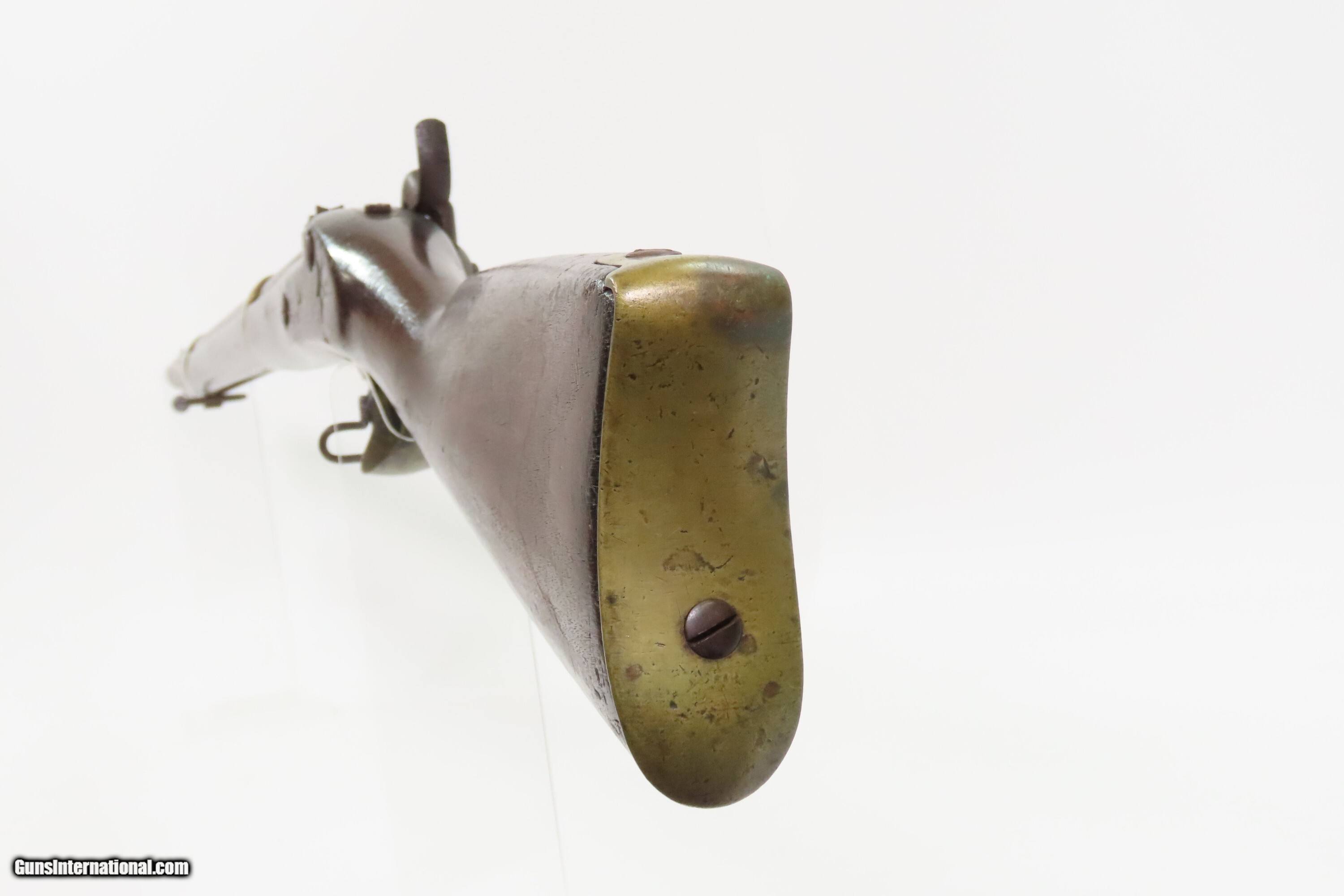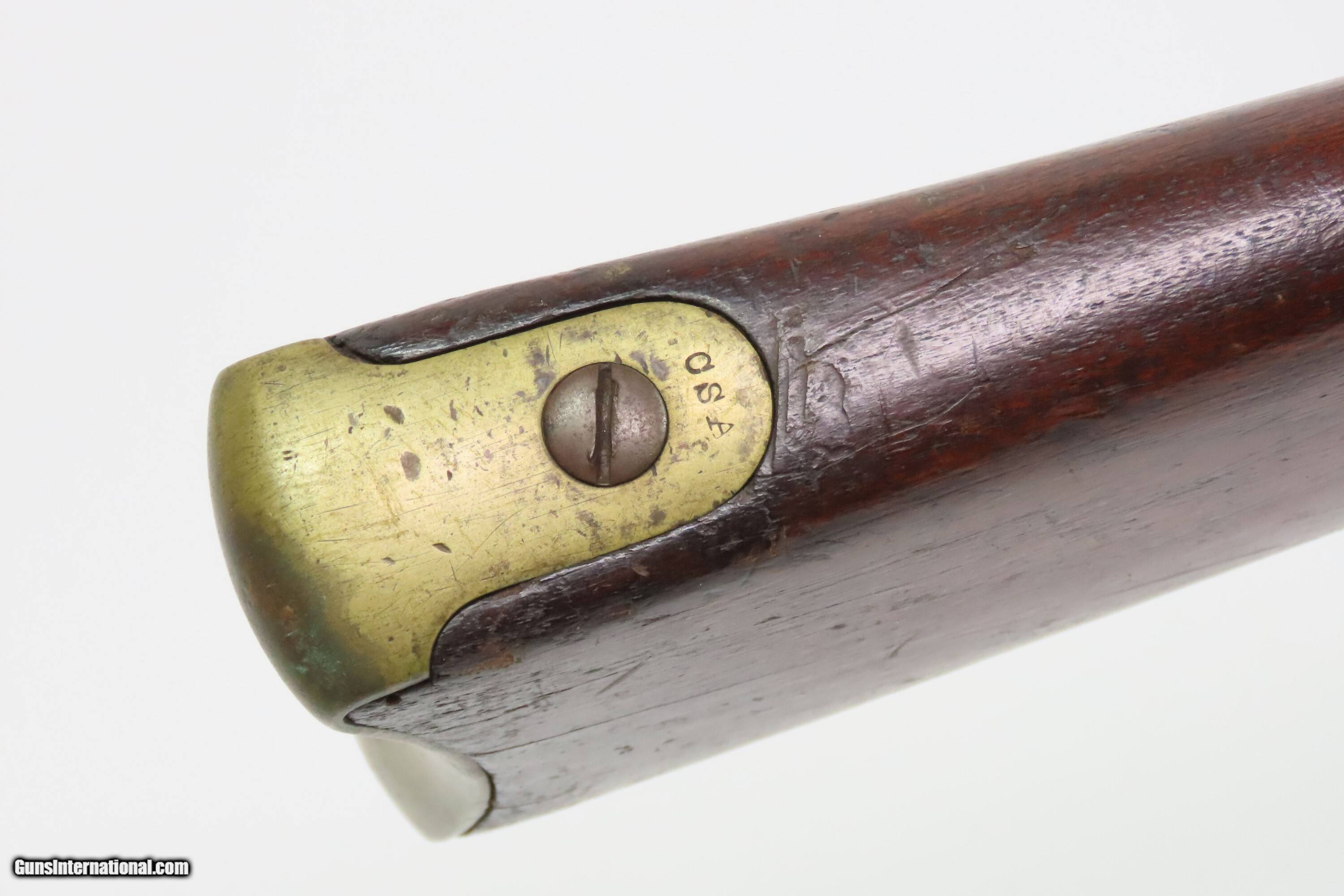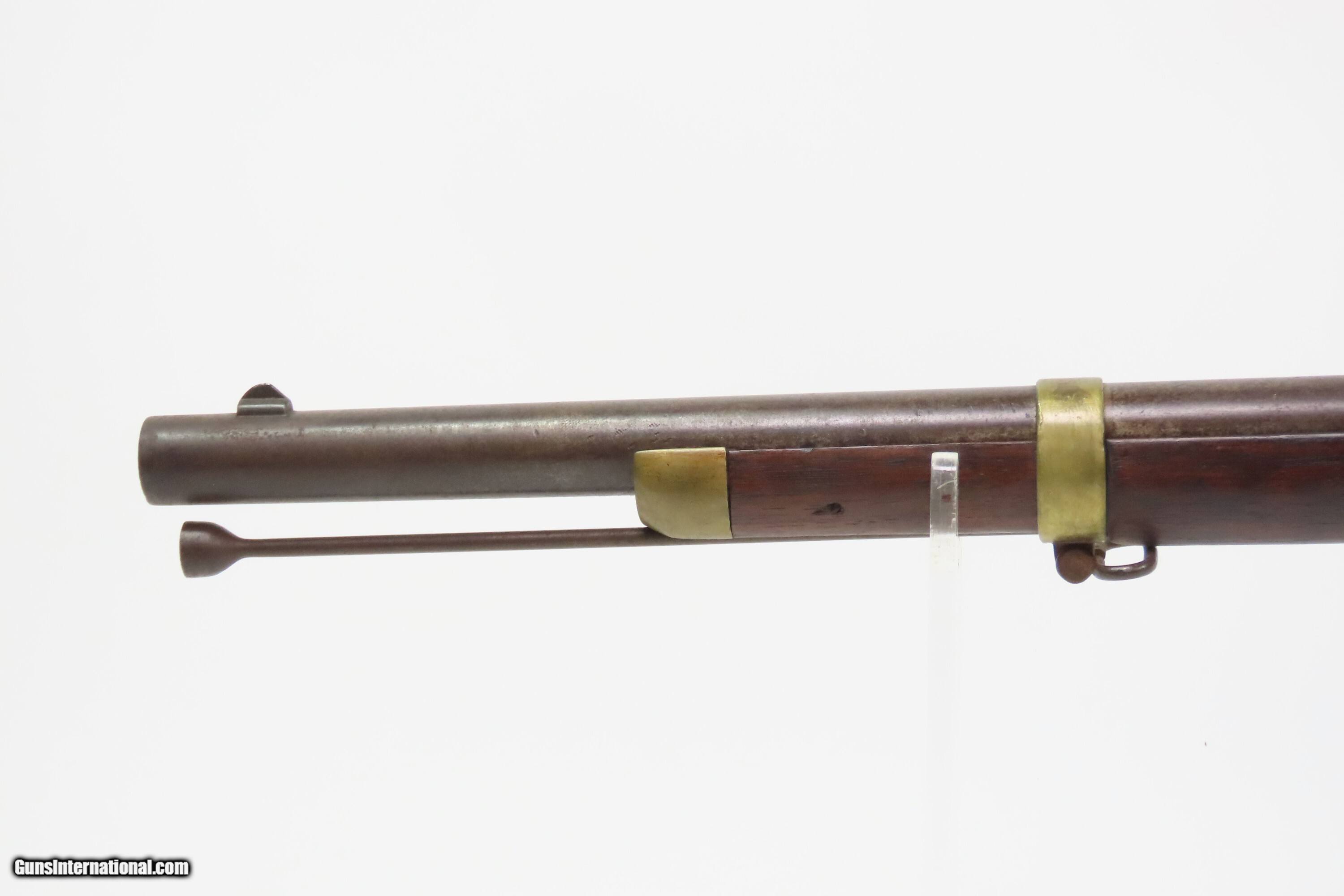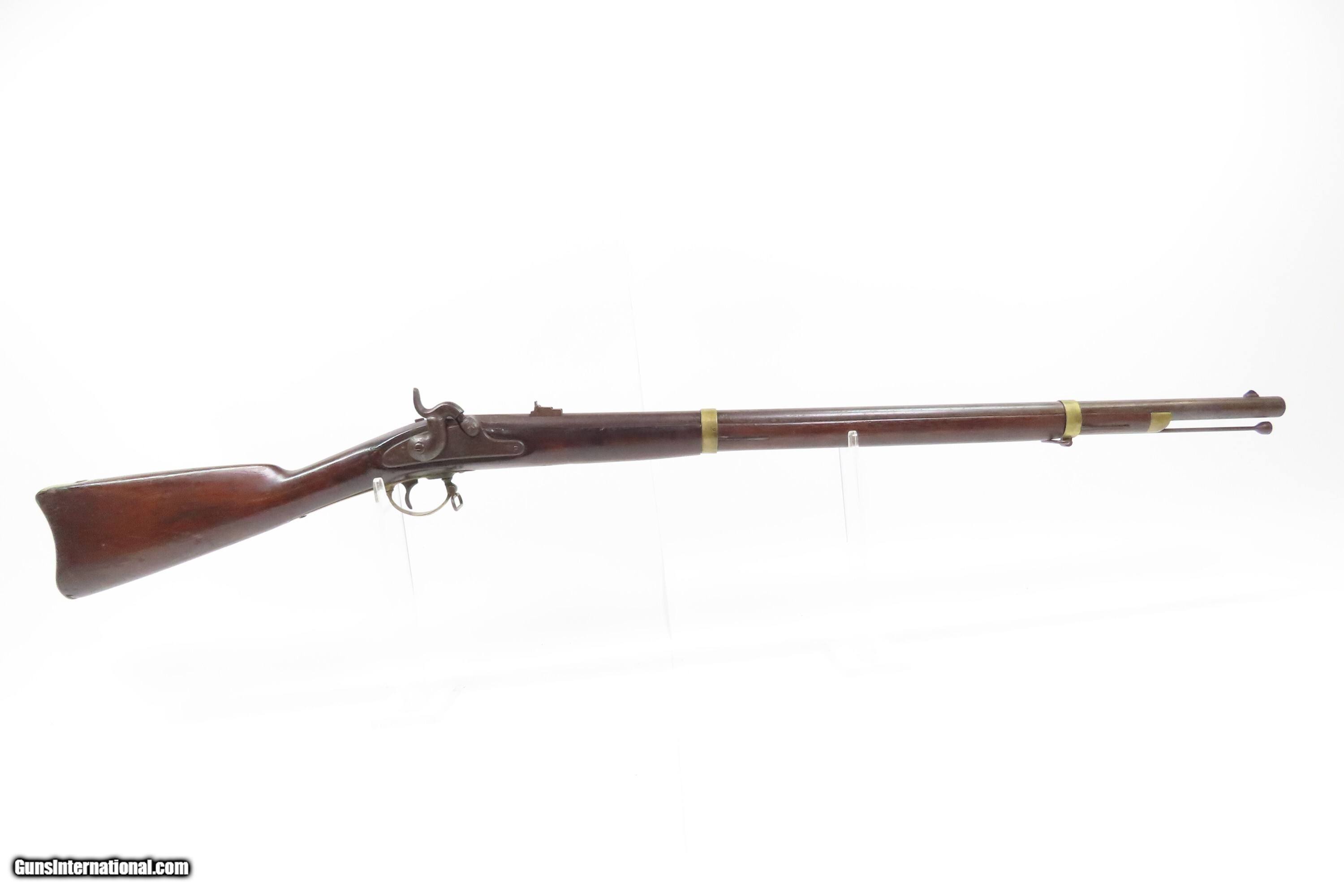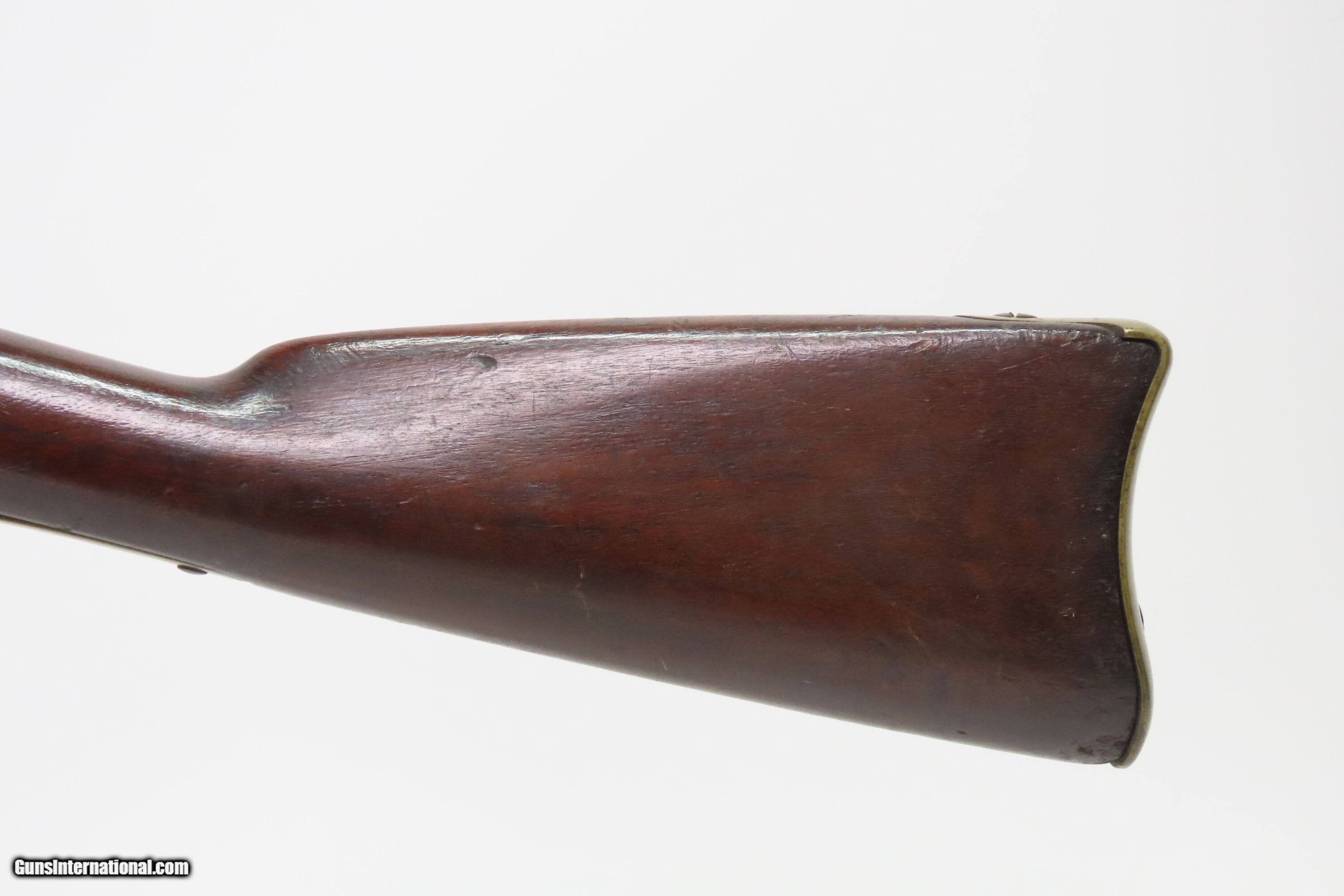 Description: C.S.A. Marked FAYETTEVILLE ARMORY Civil War CONFEDERATE Antique Perc. Rifle With 1864 Dated Lock & Five Pointed Star on Stock Here we present an antique Confederate Fayetteville Armory Type IV Musket, made circa 1864.The Fayetteville Rifle was a 2-banded rifle produced at the Confederate States Arsenal in Fayetteville, North Carolina. The machinery which produced these weapons was primarily that which was captured at the United States Arsenal at Harpers Ferry, Virginia, which was previously used to produce the U.S. Model 1855 Rifle. The weapon was produced in .58 caliber from early in 1862 until the capture and destruction of the arsenal by Union forces under General W. T. Sherman on March 11, 1865. In February, 1862, the Fayetteville Observer, in describing the beginning of arms’ manufacturing at the arsenal, reported: “A few days ago we were shown one of a number of rifles furnished at the C. S. Armory here. It is much the same in general appearance, as the U.S. rifle for some years made at Harper’s Ferry and at Springfield, Mass.; but for certain improvements, in the matter of sword bayonet, Maynard primer, and perfection of finish in all parts, it must be pronounced very superior. The back sights are set for 800 and 500 yards. Altogether, we think it the handsomest specimen of small arms, rifle or musket, we have ever seen-reflecting the greatest credit upon all concerned with its manufacture.” The first examples were manufactured using assorted M1855 lock blanks and are mounted in iron with high and medium high lockplate humps. Later examples are mounted in brass with an “S” shaped hammer. Only the very early examples are known to have a patch box. The rifle was made both with and without a special bayonet lug which allowed the use of a sword bayonet. The overall condition is good. Patina throughout. The action is excellent. The barrel was bored smooth long ago and is dark. This musket was likely turned into a working farm shotgun during reconstruction, hence the smooth bore, and had the forestock shortened. This musket has a stock restored to full-length with an expertly executed graft under the rear barrel band. Barrels bands and ramrod are replacements. Own the original! This is a legitimate antique and not a reproduction. Barrel is 33 inches. Caliber: .63 Percussion Overall condition as seen in photos. Very Fast. Very Safe. FREE SHIPPING WORLDWIDE. Delivered directly to your door by express mail! Guaranteed AUTHENTIC & Includes CERTIFICATE OF AUTHENTICITY. ancestryguns $4800 #250058 SOLD Antique: Yes |