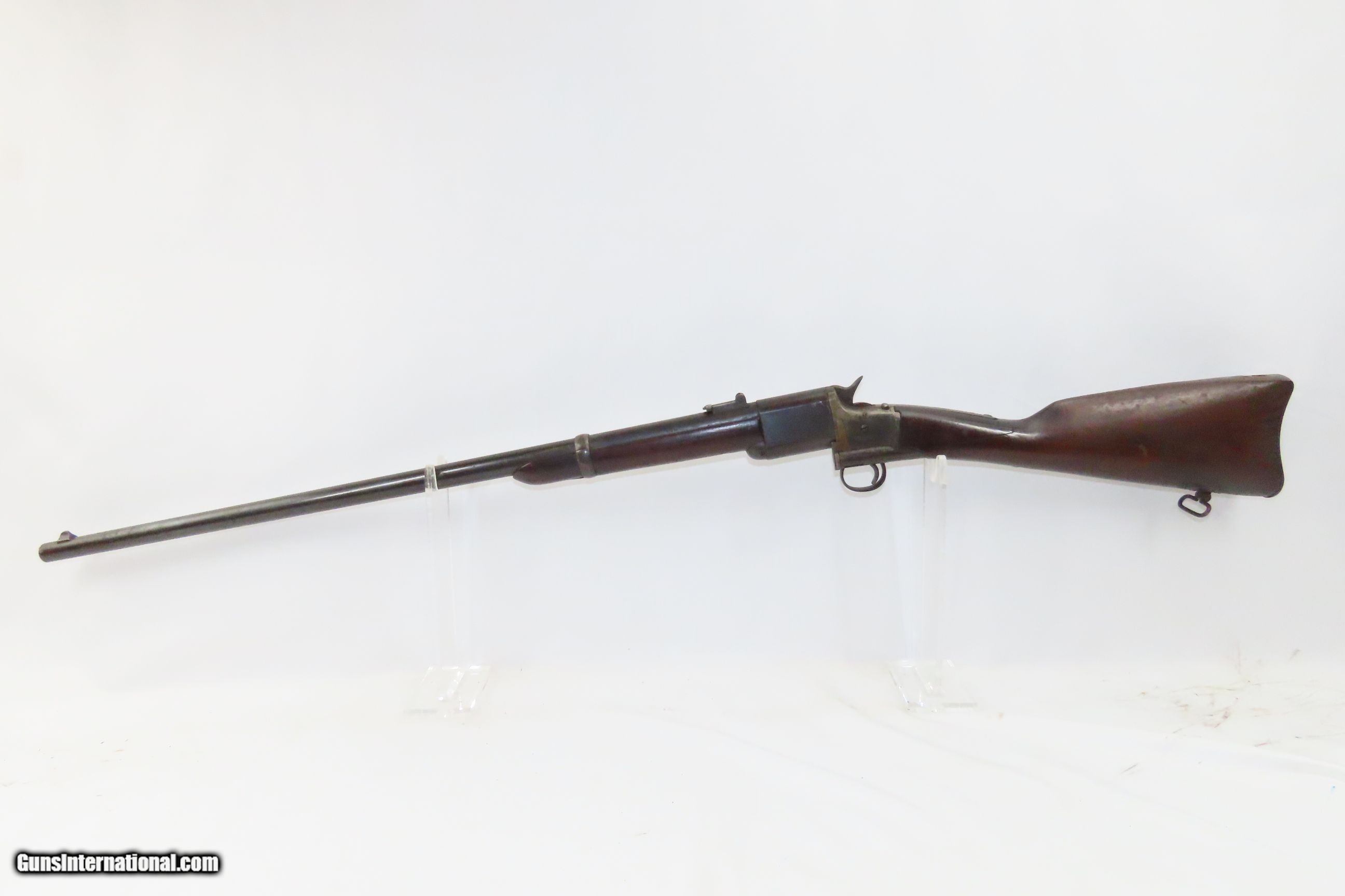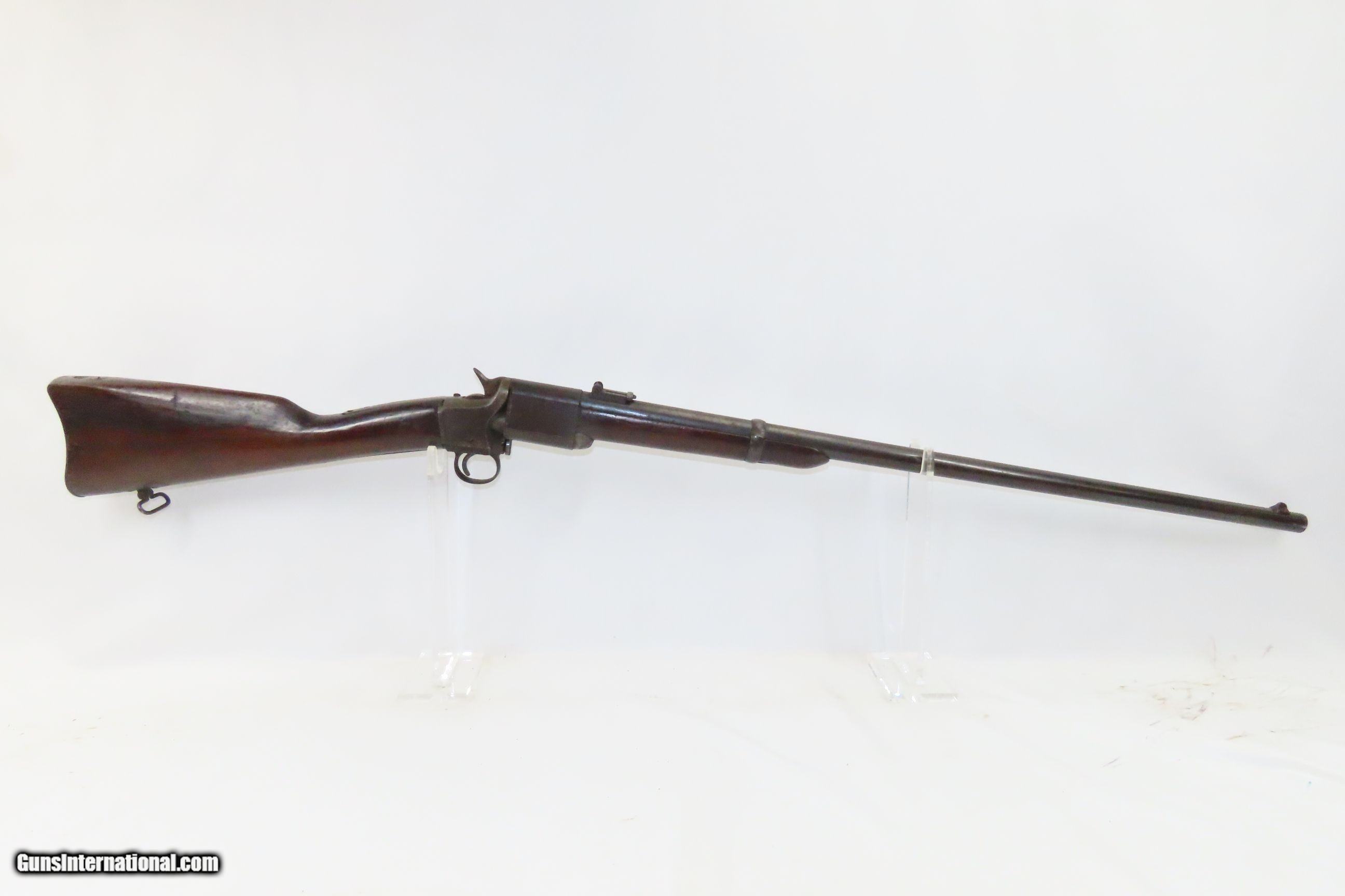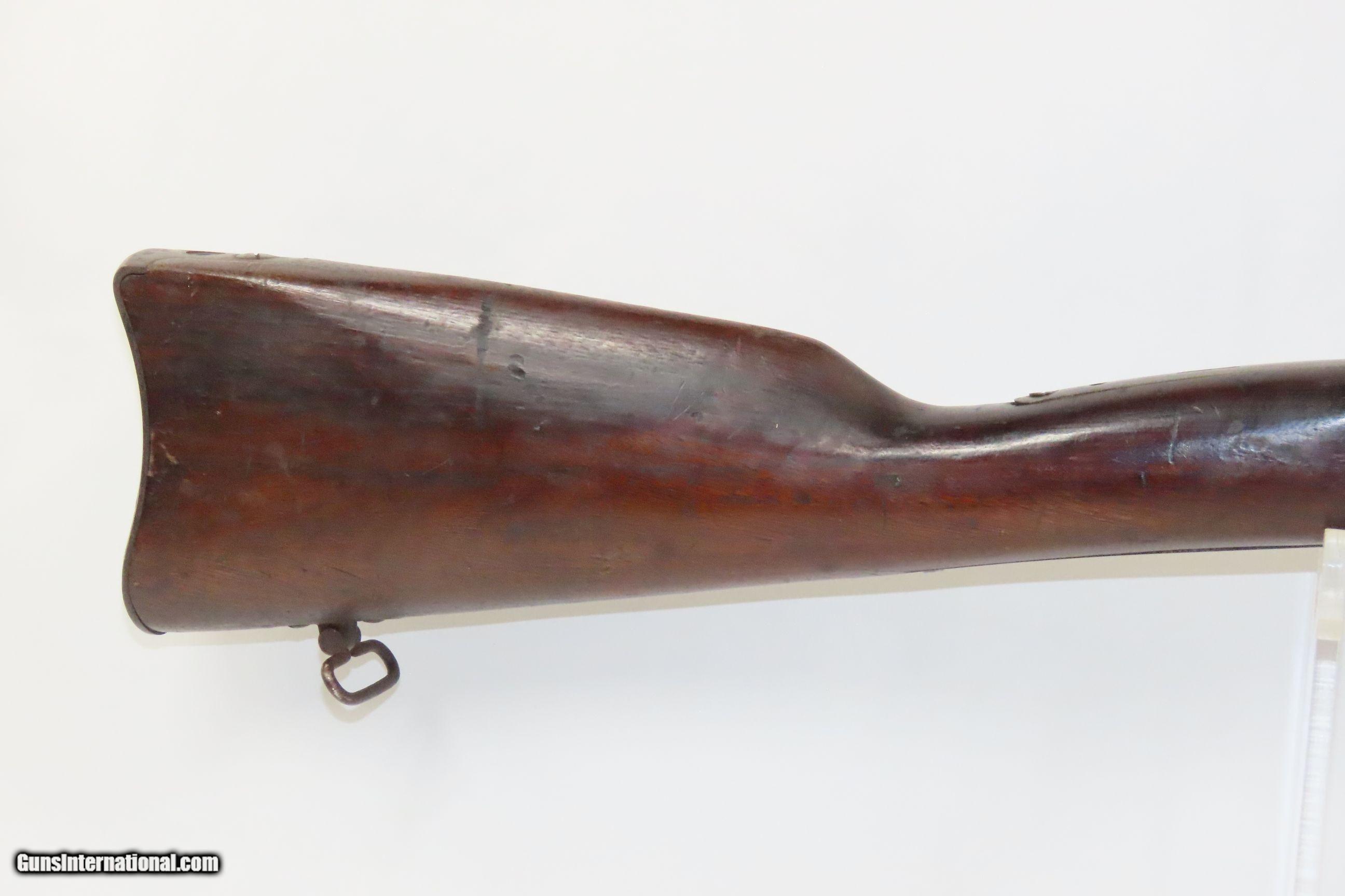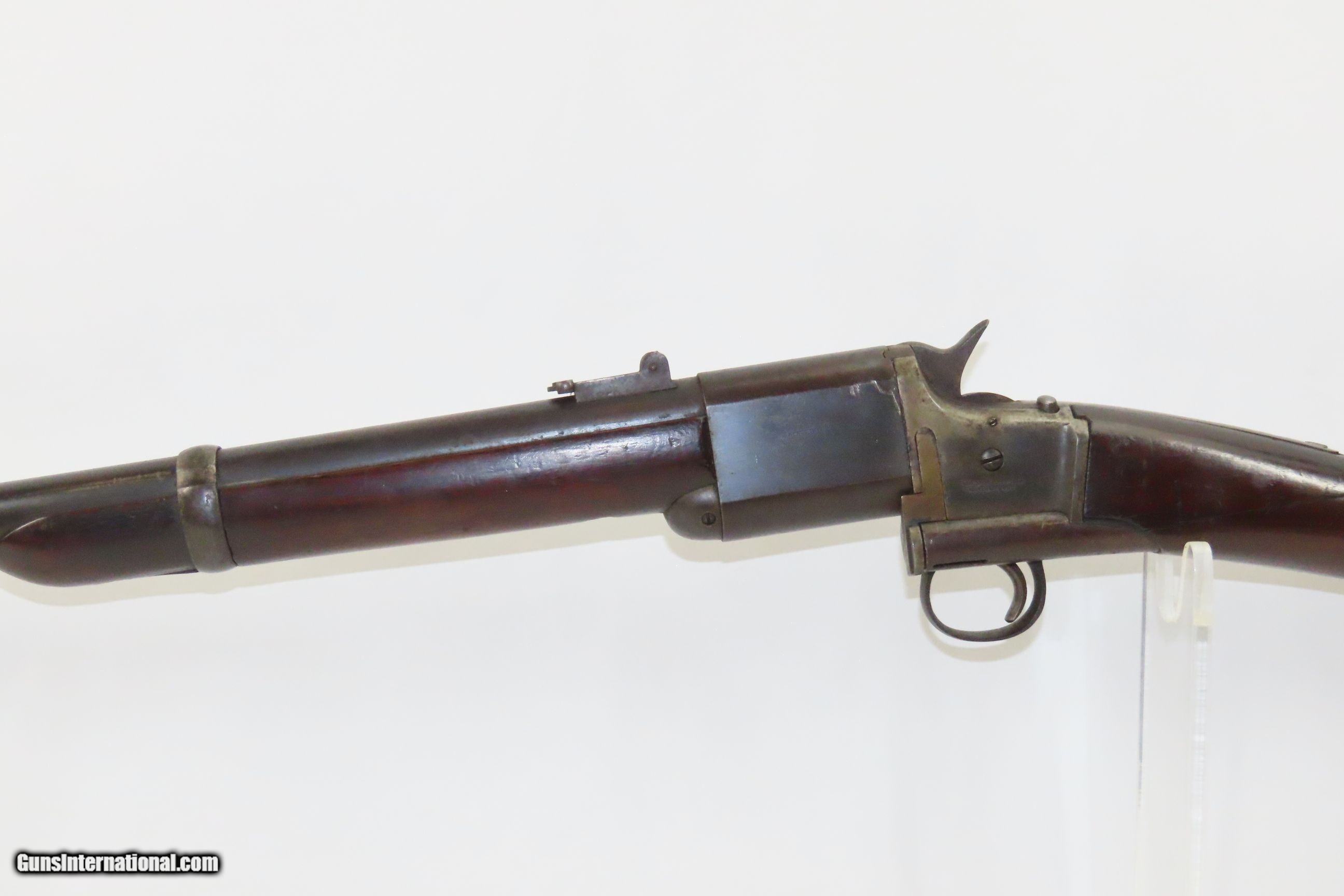 Description: c1864 KENTUCKY HOMEGUARD Triplett & Scott Rifle CIVIL WAR Antique 1 of About 3,000 KY State Militia .50 Rimfire Rifles Here we present an antique “KENTUCKY” Marked Triplett & Scott Patent Carbine, made circa 1864-65 by the Meriden Manufacturing Company of Meriden, Connecticut. Meriden Manufacturing was founded by Charles Parker and his brother, who would later go on to become one of the most famous firearms manufacturers in the world with his beautiful shotguns. That firm would be called Parker Brothers. However, these brothers would first make themselves successful by contracting for the Union government during the American Civil War. They produced the Triplett & Scott Repeating Rifle and Carbine on contract with the state of Kentucky for 5,000 pieces. Around 3,000 of the 30-inch barrel rifles/carbines were manufactured as part of the contract. These were to be issued to the Kentucky Home Guard for supply train defense for the Union Army as General Sherman marched on Atlanta. The diversity of weapons, especially carbines, during the Civil War was incredible. All of them are different in their own way. The Triplett & Scott Rifle & Carbine differentiates itself by its operation. The 7-shot magazine tube is housed in the front of the wrist of the butt stock. By placing the hammer in half-cock and depressing a button with the right thumb, one would be able to twist the forward portion of the gun, which would activate the automatic ejector, pushing the empty case out, before the receiver pushed aside the loading gate on the magazine tube to pick up another cartridge. The design was quite ingenious and the precision with which it was executed is still evident. This rifle is marked “KENTUCKY” on the left side of the receiver. The tang is marked “TRIPLETT & SCOTT/PATENT DEC. 6, 1864”. The left side of the frame is marked “MERIDEN MANFG. CO./MERIDEN. CONN.” The right side of the frame is marked with the serial number. The overall condition is very good. Original blue and case color finish. The action is excellent. The bore is in very good condition, reflective with strong rifling. The walnut stock is damaged like the vast majority where the magazine tube protrudes and the wood is thin. This is one of the very few repeating rifles of the American Civil War. Own the original! This is a legitimate antique and not a reproduction. Barrel is 30 inches. Caliber: .50 Rimfire Overall condition as seen in photos. Very Fast. Very Safe. FREE SHIPPING WORLDWIDE. Delivered directly to your door by express mail! Guaranteed AUTHENTIC & Includes CERTIFICATE OF AUTHENTICITY. ancestryguns $2800 #230681 SOLD Antique: Yes |