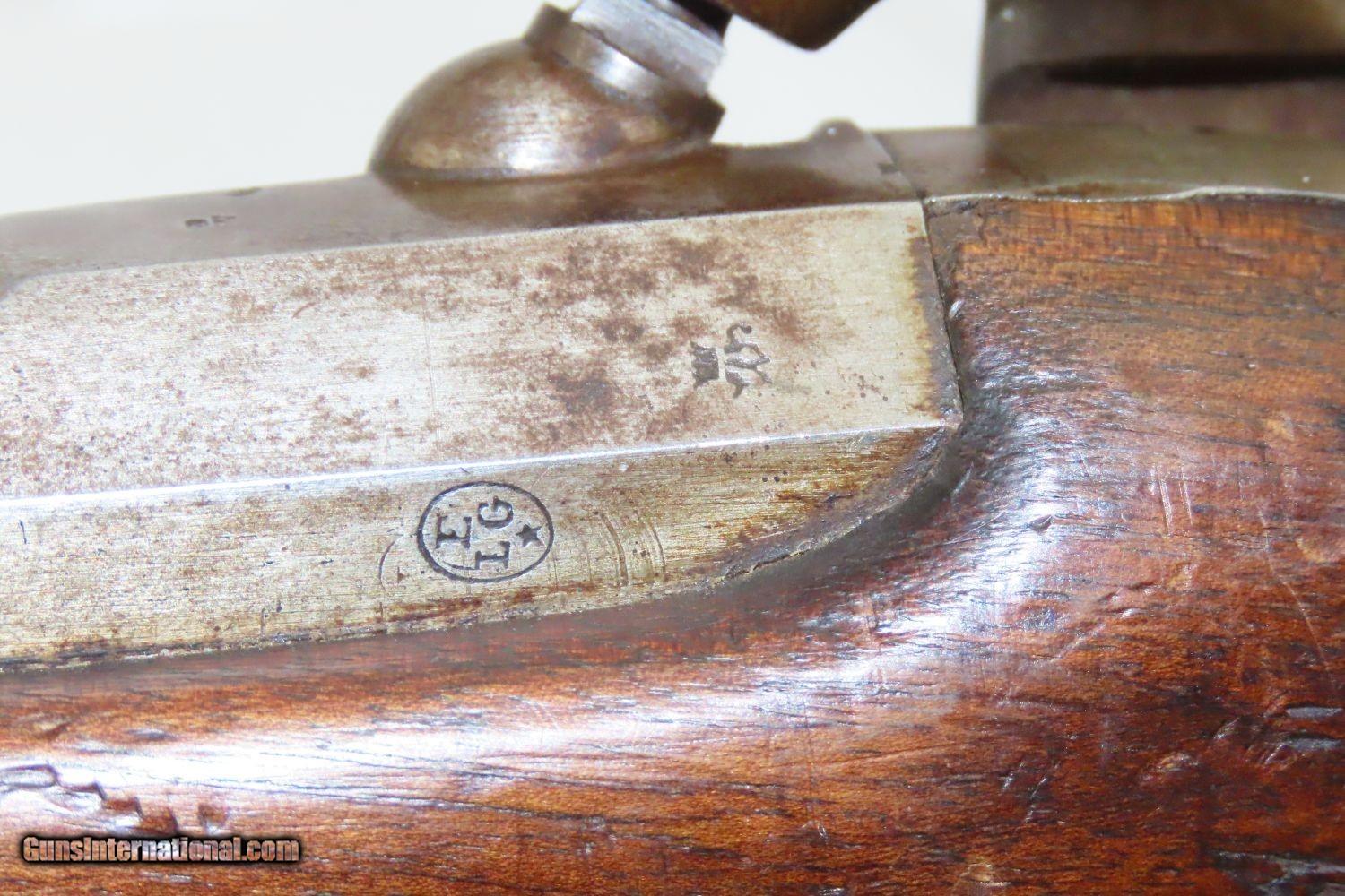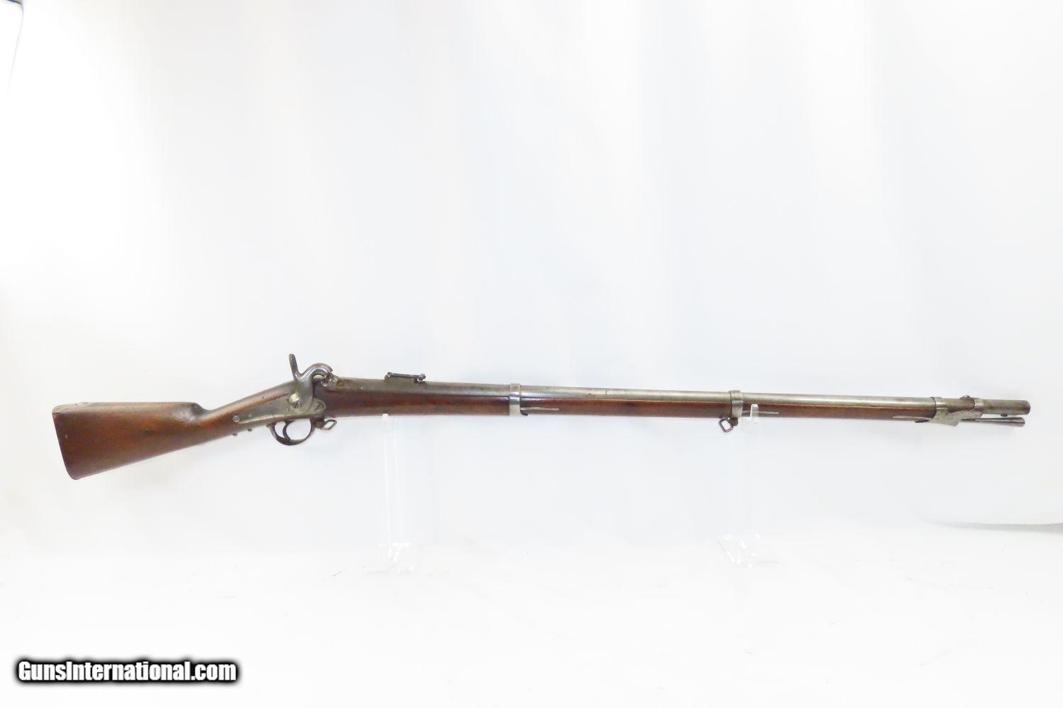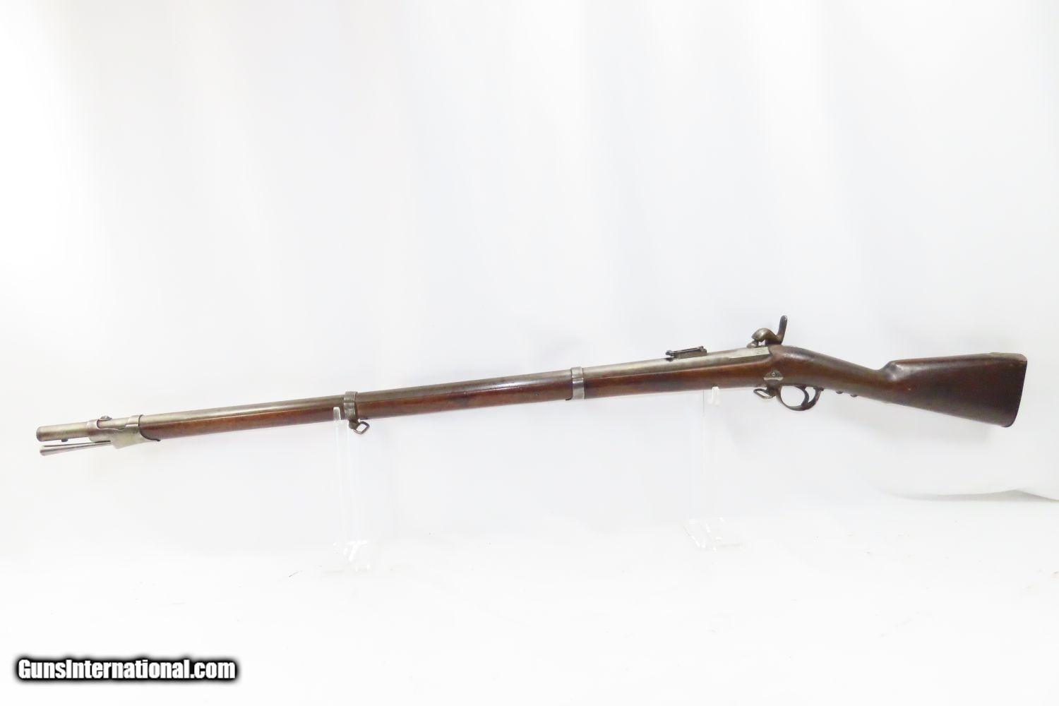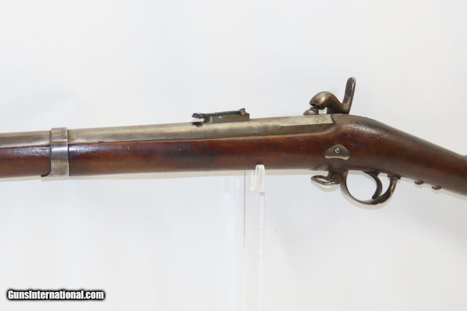 Description: CIVIL WAR Antique BELGIAN Model 1842 .69 Caliber Percussion RIFLE-MUSKET UNION ARMY Infantry Musket Here we present an antique Belgian Model 1842 Percussion Musket, manufactured circa the late 1850s to early 1860s in Liege, Belgium. This is a nice example of one of the tens of thousands of European muskets and rifles imported to arm early volunteers in the American Civil War. This piece was manufactured in Liege, whose gun makers produced copies of regulation arms for a number of European countries in addition to both sides in the Civil War. There were many muskets purchased by the Union agent Hartley in Liege. This weapon was imported in large quantities and was issued. There is no record of any Southern contracts and Confederate usage would have been limited to capture or battlefield pick-ups. This gun follows the basic lines of the French infantry Musket of 1842. It is iron mounted with three barrel bands with the upper band being a double. It is equipped with a bayonet stud mounted under the muzzle and fitted with a folding long range rear sight. As is characteristic of many French and Belgian arms, it is fitted with a back action lock with a lock plate secured at the rear by a screw requiring a special screwdriver to discourage “meddling” by curious privates. Imported arms played a key role in the early years of the war before the U.S. armories and contractors could catch up in production. Some estimates of imported French and Belgian arms place their numbers close to 150,000 examples. The overall condition is very good. Strong, tight action. Bright bore in fine shape! Solid stock. The left barrel flat shows a Liege proof. The rear ladder sight is a replacement. Here is a very nice infantry musket for the antique collection! Own the original! This is a legitimate antique and not a reproduction. Barrel is 40-1/2 inches. Caliber: .69 Percussion Overall condition as seen in photos. Very Fast. Very Safe. FREE SHIPPING WORLDWIDE. Delivered directly to your door by express mail! Guaranteed AUTHENTIC & Includes CERTIFICATE OF AUTHENTICITY. ancestryguns $1495 #210159 SOLD Antique: Yes |