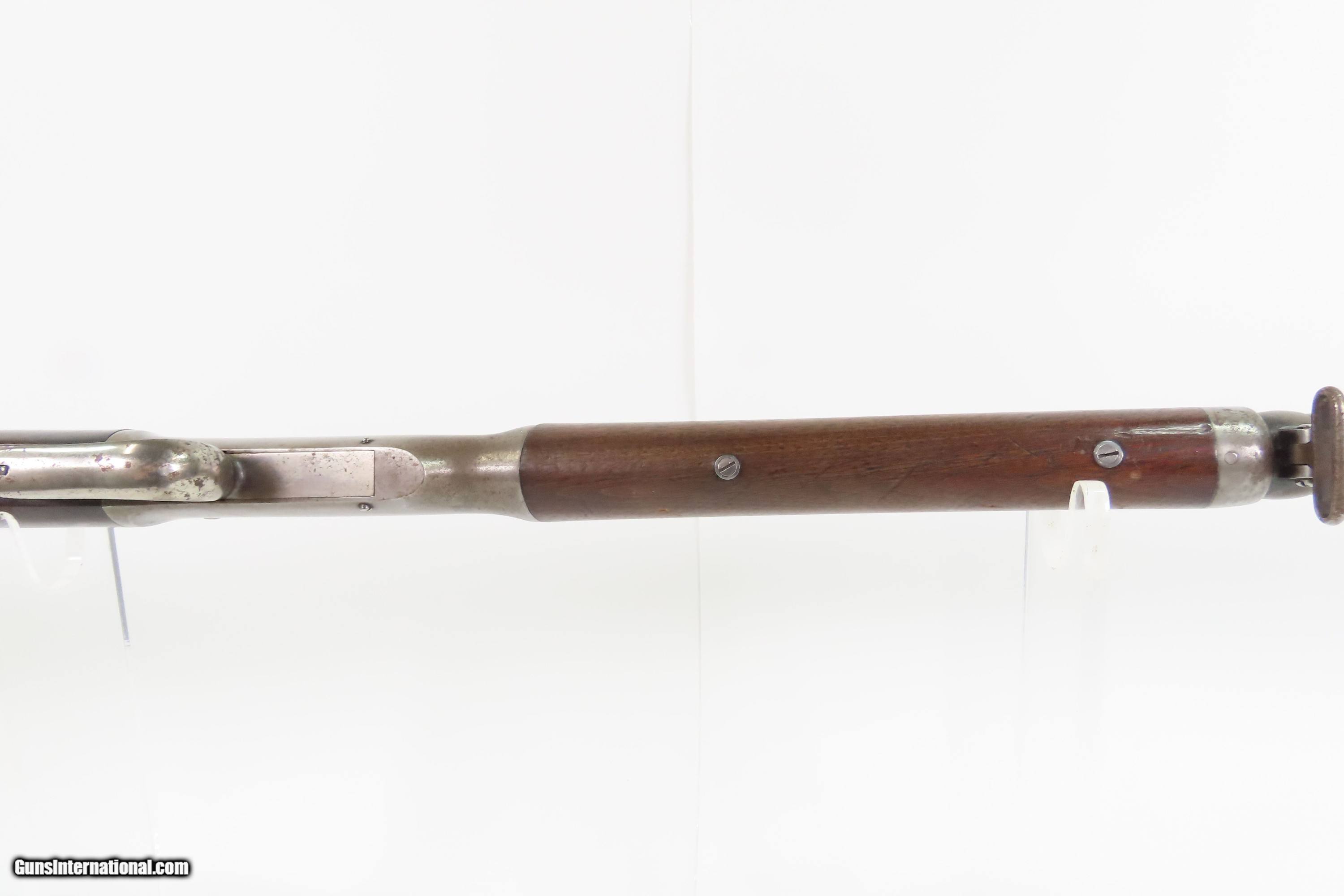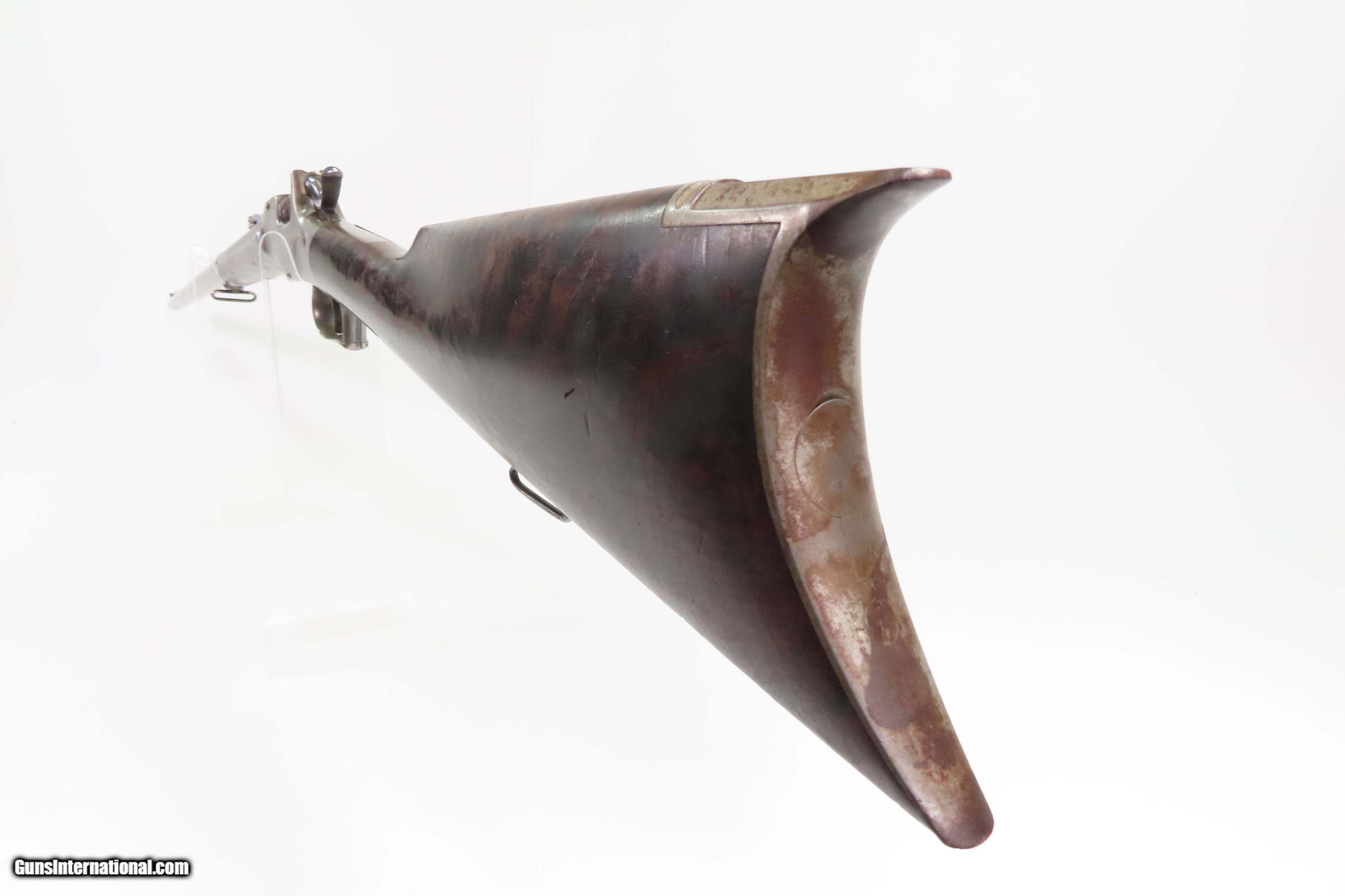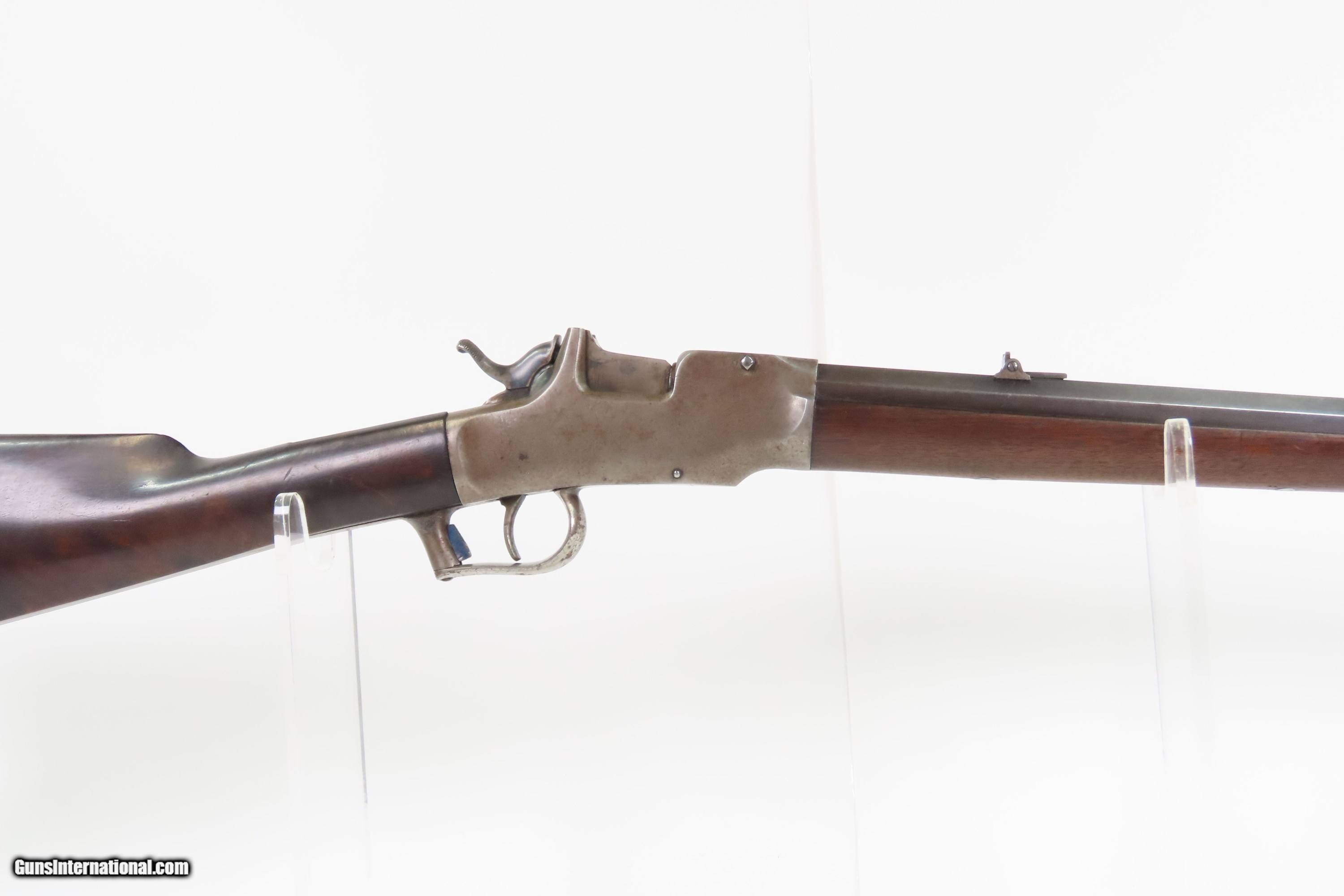 Description: CIVIL WAR Antique ETHAN ALLEN & CO. Drop Breech .38 RF Single Shot RIFLE Falling Block Single Shot Rifle in .38 Caliber with Sling Here Ancestry Guns presents an antique Allen & Co. Falling Block Rifle in .38 Rimfire, made circa the early 1860s in Worcester, Massachusetts. Fewer than 2,000 of these rifles are thought to have been made in any variant. Though not standard issue, this rifle saw service in the American Civil War through private purchases by soldiers. It features a half-octagonal, half-round barrel with a very neat adjustable rear sight. The rear sight tips and its arm points to various ranges which also have notches which allow the arm to rest in under spring tension. This rifle is equipped with the optional sling loops ahead of the forearm and under the buttstock. The lowering action of the breech block automatically ejected the spent cartridge. The top of the barrel is marked “E. ALLEN & CO. WORCESTER MASS. / ALLENS PAT SEPT 18. 1860.”. The butt plate has a cleaning rod trap. The overall condition is good. Original finishes. Strong action. The bore is good for its age, has darkened and does contain a budge. Mixed gray patinas. The fancy walnut stock is solid with an average amount of wear and light chipping. Markings are legible. Own the original! This is a legitimate antique and not a reproduction. Barrel is 30 inches. Caliber: .38 Rimfire Overall condition as seen in photos. Very Fast. Very Safe. FREE SHIPPING WORLDWIDE. Delivered directly to your door by express mail! Guaranteed AUTHENTIC & Includes CERTIFICATE OF AUTHENTICITY. $2300 #259589 Antique: Yes Price: $2,300.00 Buy Now Pay with
