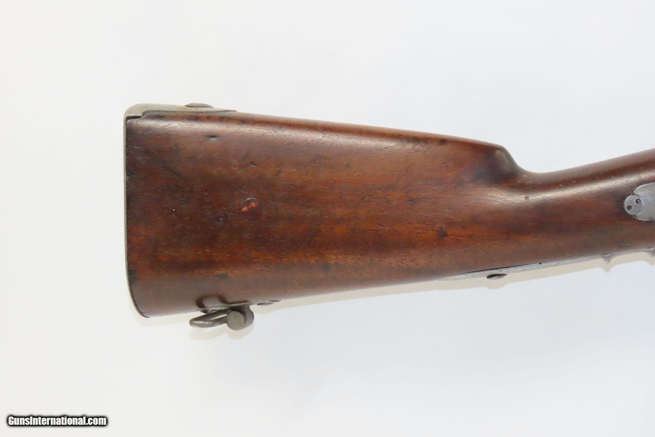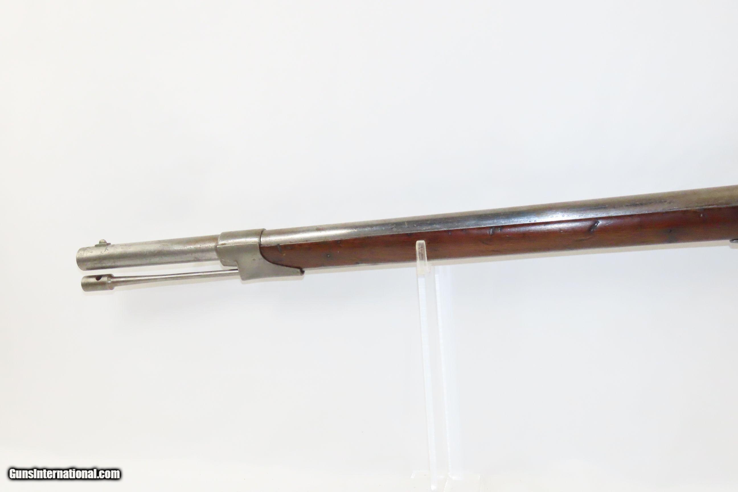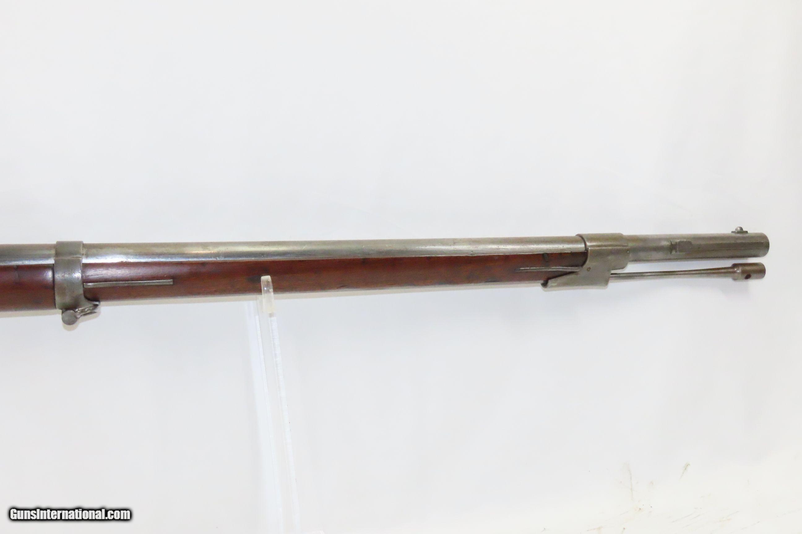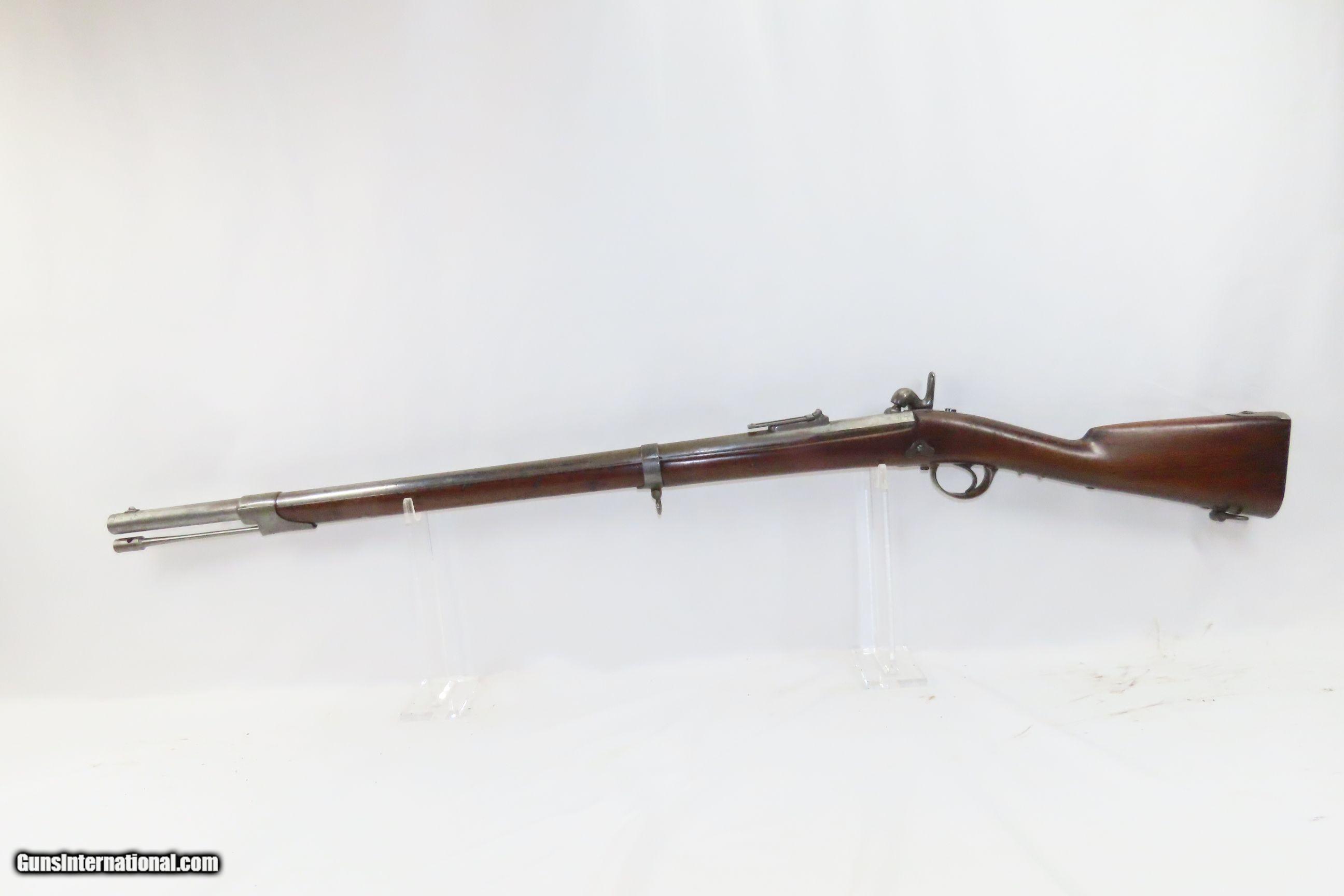 Description: CIVIL WAR Antique FRENCH ST ETIENNE 1853 GENDARMERIE Rifled Musket SABER 69 Percussion Musket with SWORD BAYONET Here we present an antique French Model 1853 Gendarmerie Percussion Rifled Musketoon, manufactured in 1856 at the French arsenal at St. Etienne. This is the typical Continental Rifled Musket that was imported to the Confederacy just before and during the U.S. Civil War. These were also bought and used by the Union Army in small quantities as described in the book Civil War Guns by William Edwards on page 262. This example is in .69 Caliber and is rifled with a adjustable back sight and a blade front sight. These were usually produced as muskets, but the export trade required rifles, indicating this was possibly made for export to the U.S. after being arsenal altered. It is fully steel mounted and does bear a maker marking on the lock plate: Mre Imp.ale de St. Etienne, indicating manufacture at the French Arsenal located in St. Etienne. There are Royal Armory proof and acceptance marks throughout. The overall condition is very good. Strong action. The bore is in good shape for its age. This example sports a solid stock with use apparent. Clear markings. Liege proofed barrel. Awesome saber bayonet. Own the original! This is a legitimate antique and not a reproduction. Barrel is 34-1/4 inches. Caliber: .69 Percussion Overall condition as seen in photos. Very Fast. Very Safe. FREE SHIPPING WORLDWIDE. Delivered directly to your door by express mail! Guaranteed AUTHENTIC & Includes CERTIFICATE OF AUTHENTICITY. ancestryguns $2100 #228571 SOLD Antique: Yes |