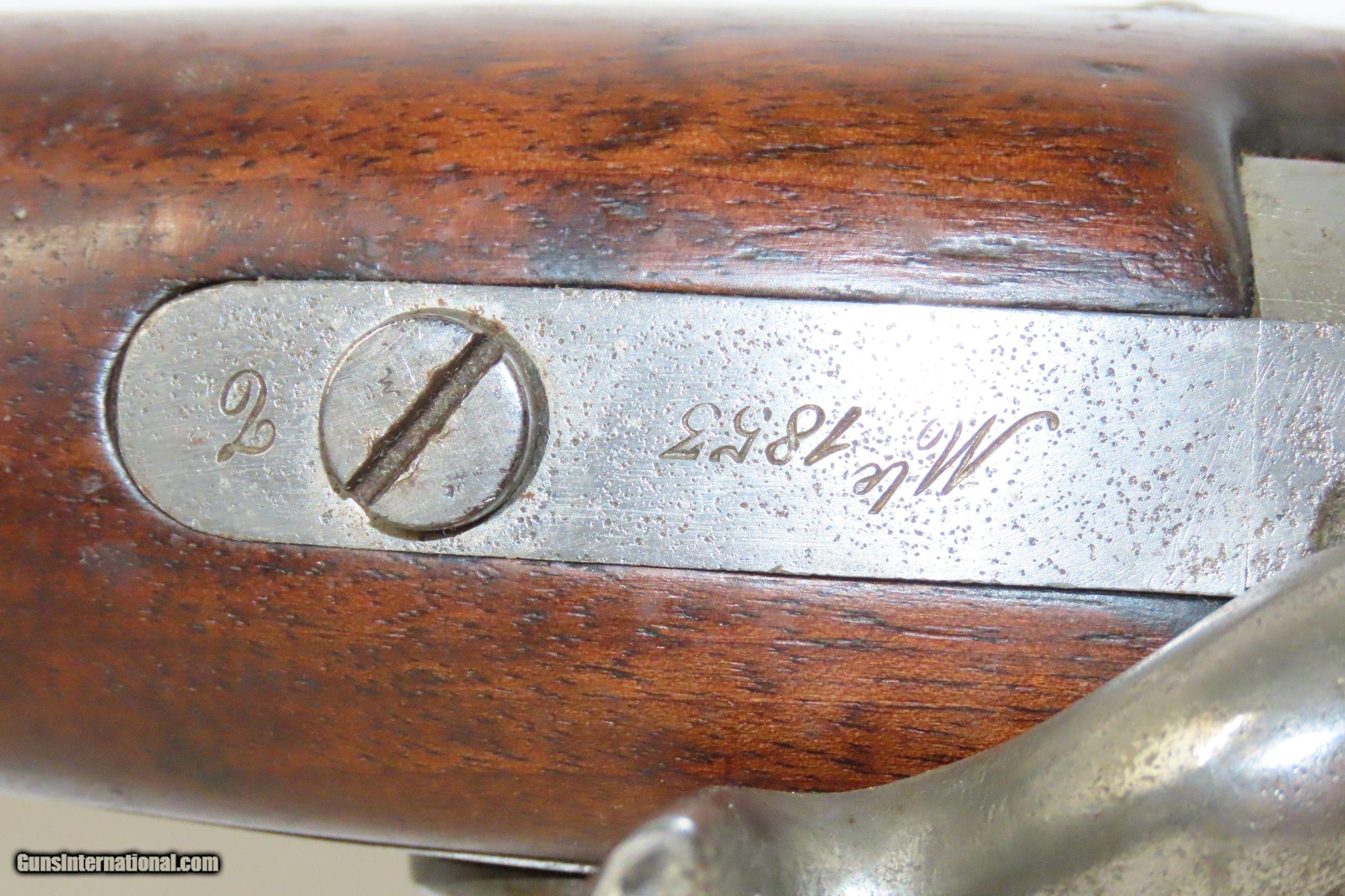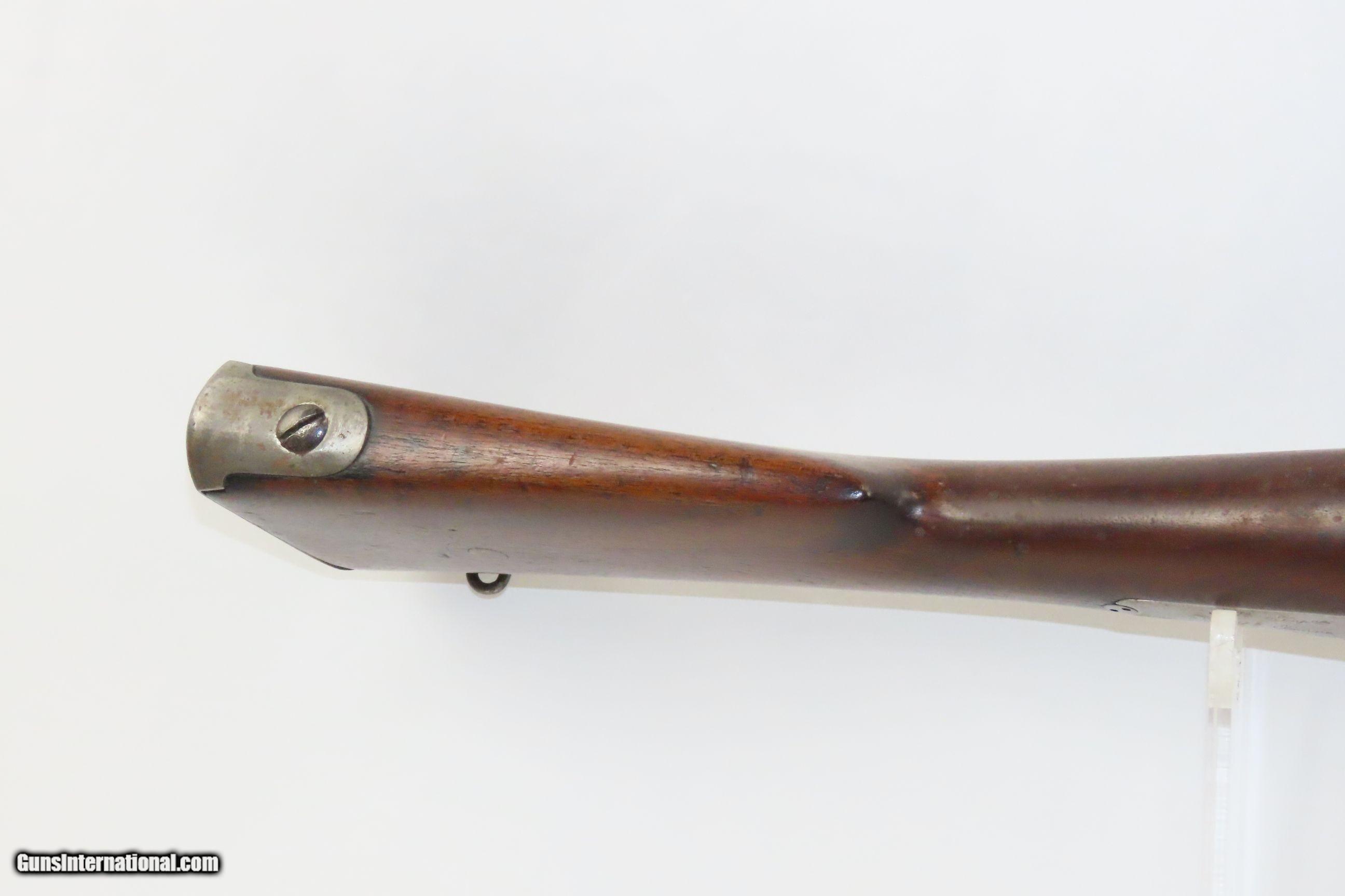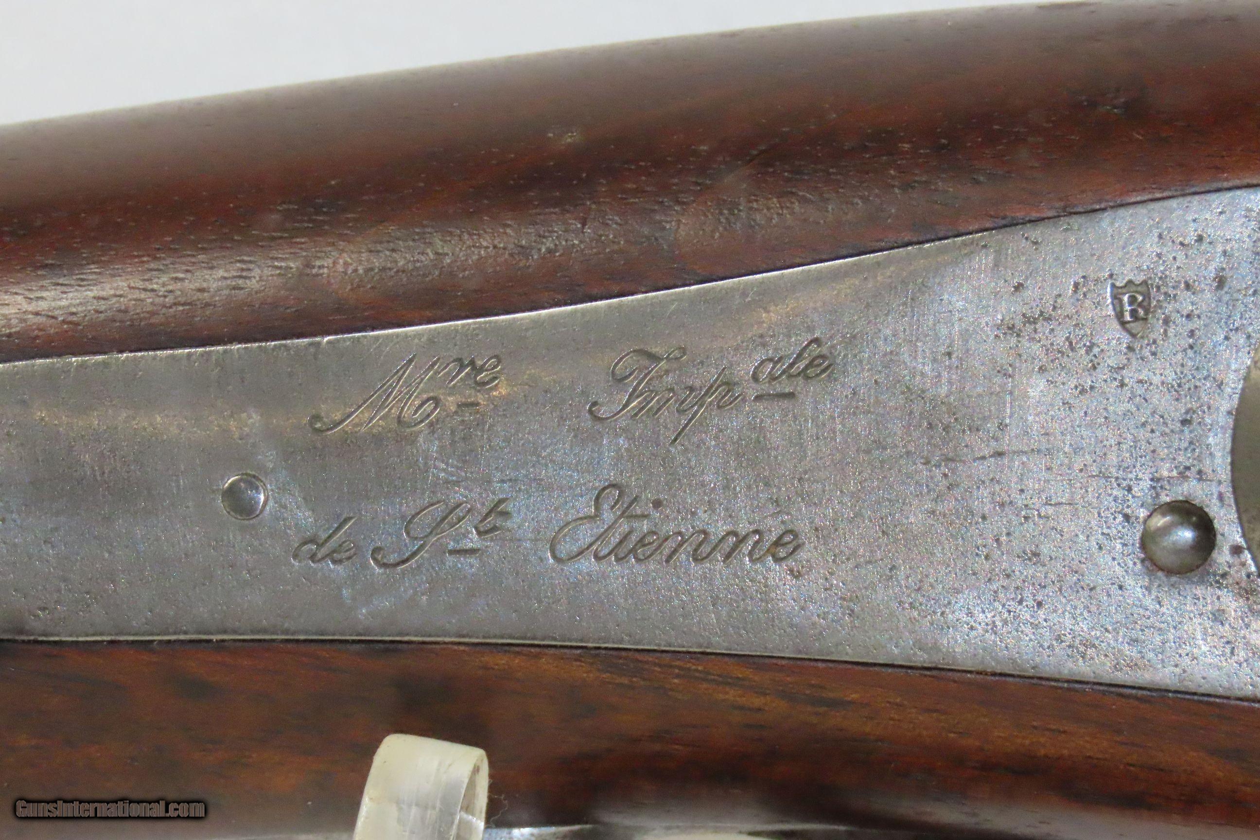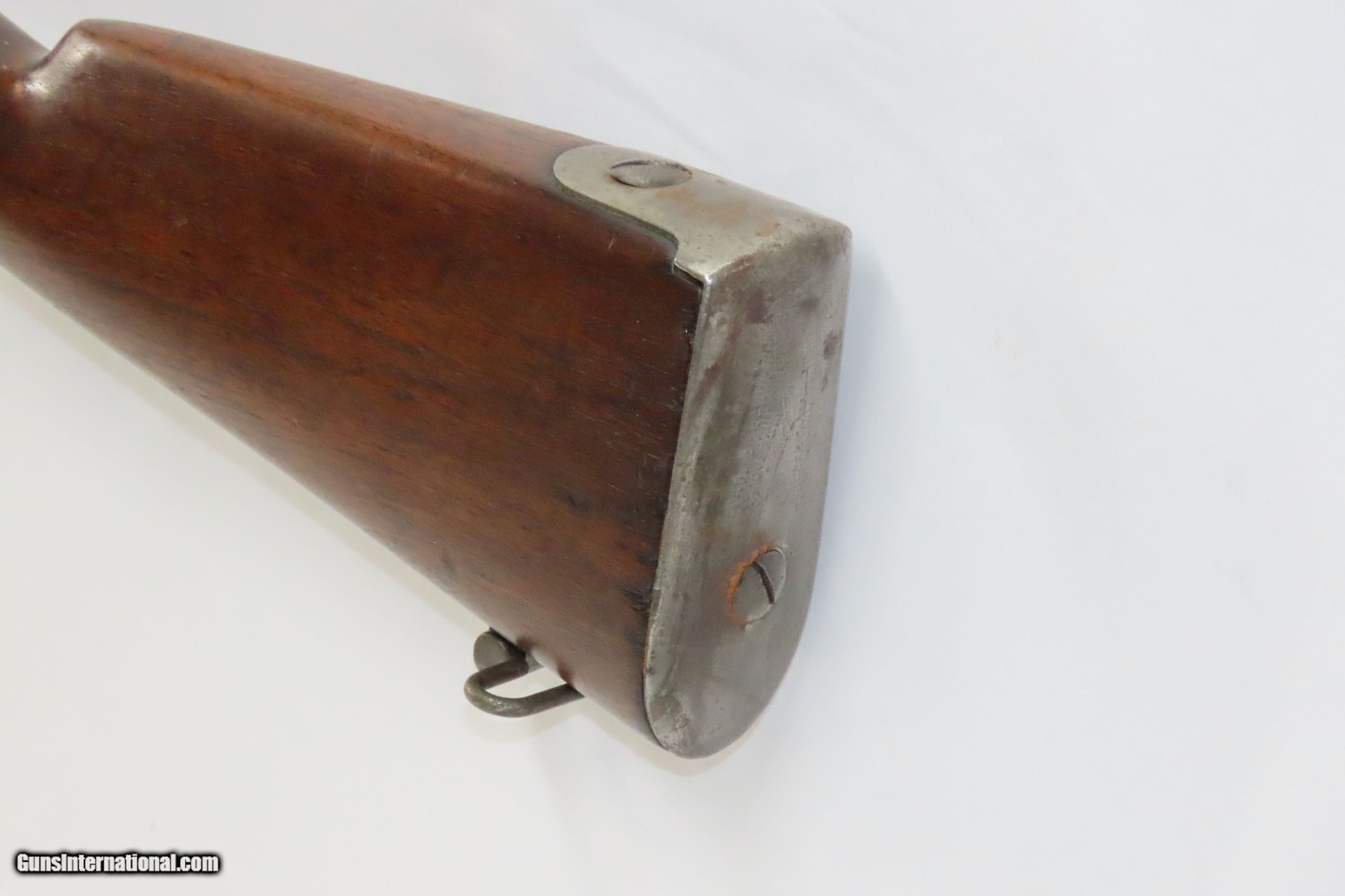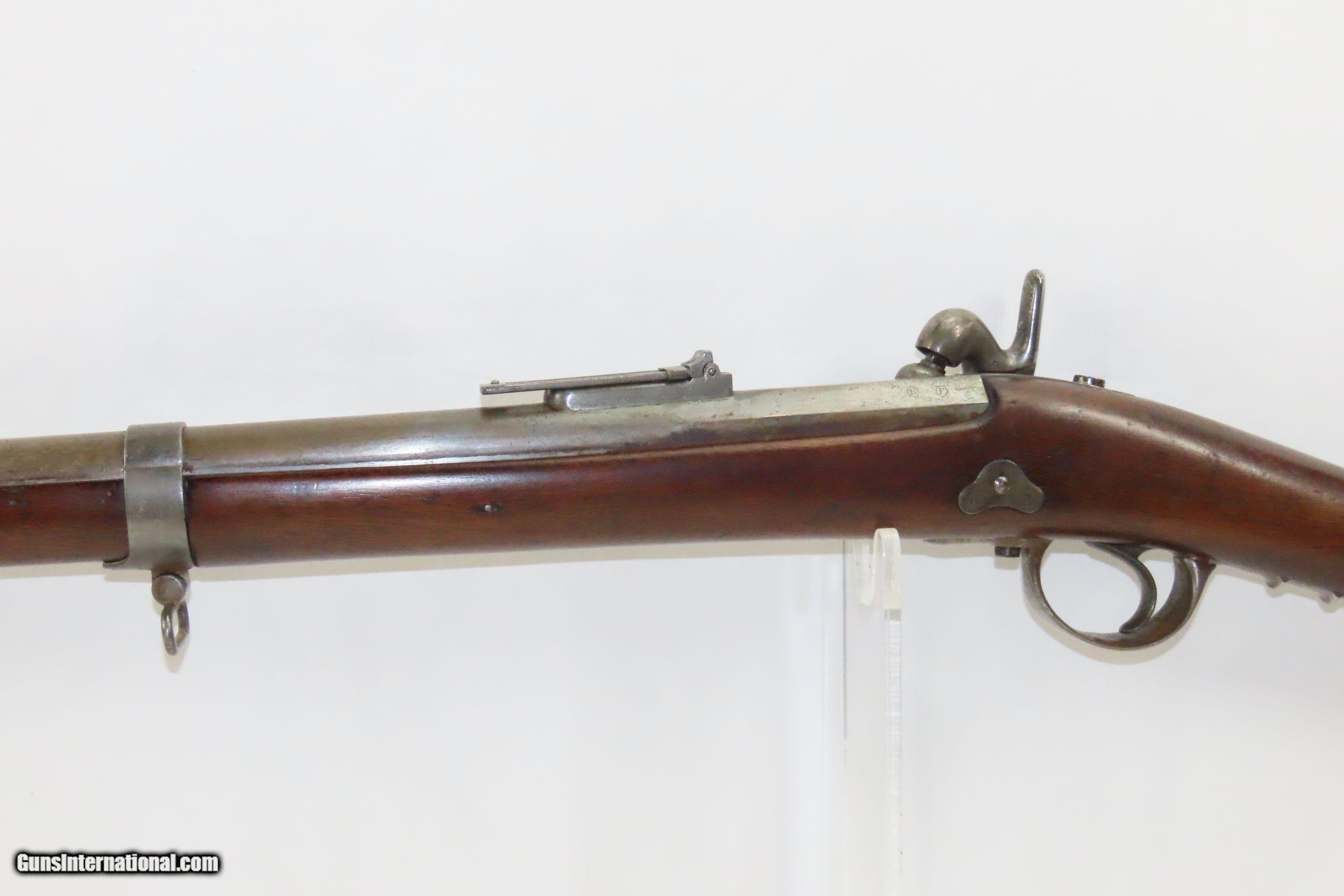 Description: CIVIL WAR Antique FRENCH ST ETIENNE 1853 GENDARMERIE Rifled Musket SABER 69 Percussion Musket with SWORD BAYONET Here we present an antique French Model 1853 Gendarmerie Percussion Rifled Musketoon, manufactured in 1856 at the French arsenal at St. Etienne. This is the typical Continental Rifled Musket that was imported to the Confederacy just before and during the U.S. Civil War. These were also bought and used by the Union Army in small quantities as described in the book Civil War Guns by William Edwards on page 262. This example is in .69 Caliber and is rifled with a adjustable back sight and a blade front sight. These were usually produced as muskets, but the export trade required rifles, indicating this was possibly made for export to the U.S. after being arsenal altered. It is fully steel mounted and does bear a maker marking on the lock plate: Mre Imp.ale de St. Etienne, indicating manufacture at the French Arsenal located in St. Etienne. There are Royal Armory proof and acceptance marks throughout. The overall condition is very good. Strong action. The bore is in good shape for its age. This example sports a solid stock with use apparent. Clear markings. Liege proofed barrel. Awesome saber bayonet. Own the original! This is a legitimate antique and not a reproduction. Barrel is 34-1/4 inches. Caliber: .69 Percussion Overall condition as seen in photos. Very Fast. Very Safe. FREE SHIPPING WORLDWIDE. Delivered directly to your door by express mail! Guaranteed AUTHENTIC & Includes CERTIFICATE OF AUTHENTICITY. ancestryguns $2100 #228571 SOLD Antique: Yes |