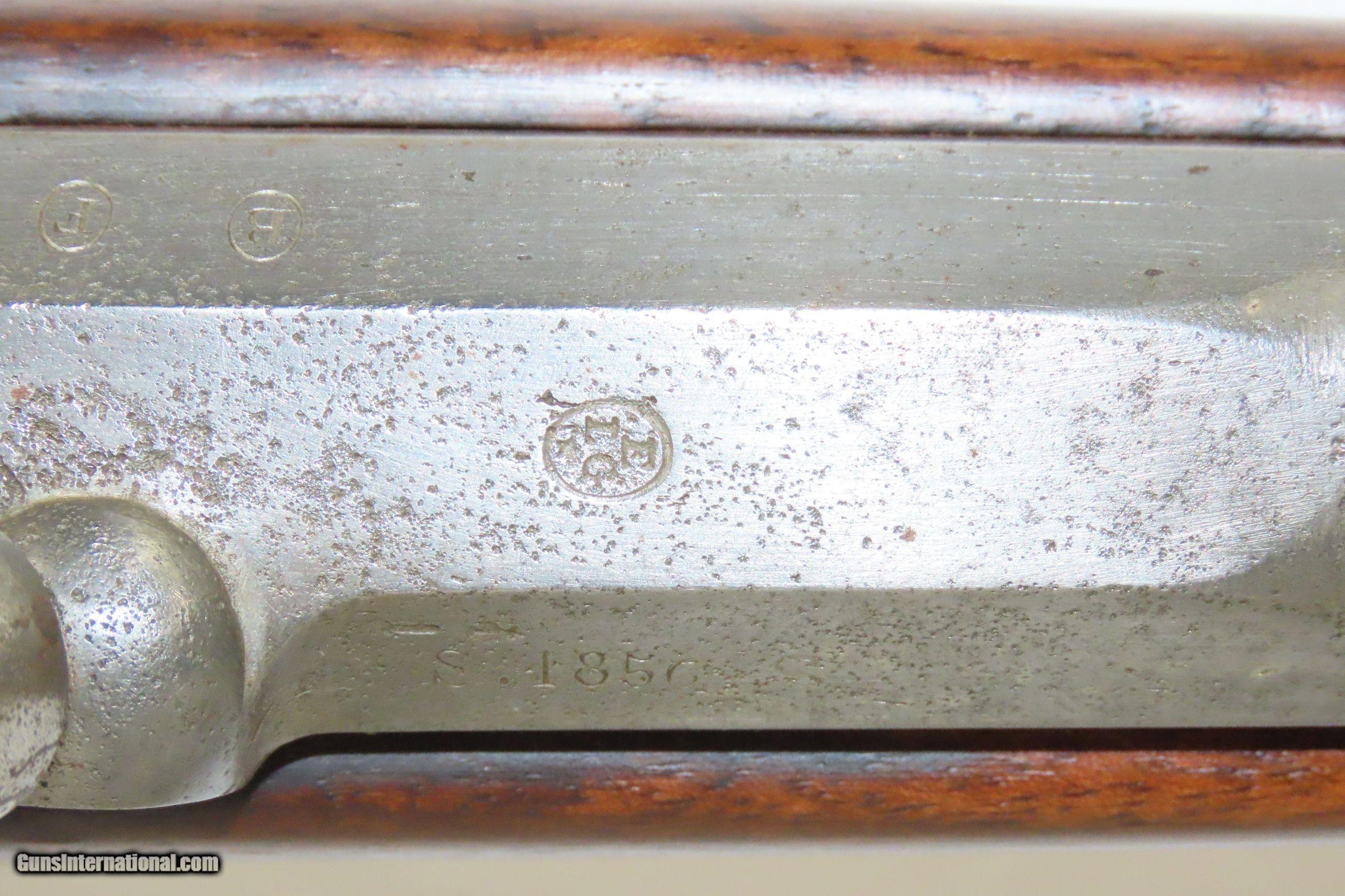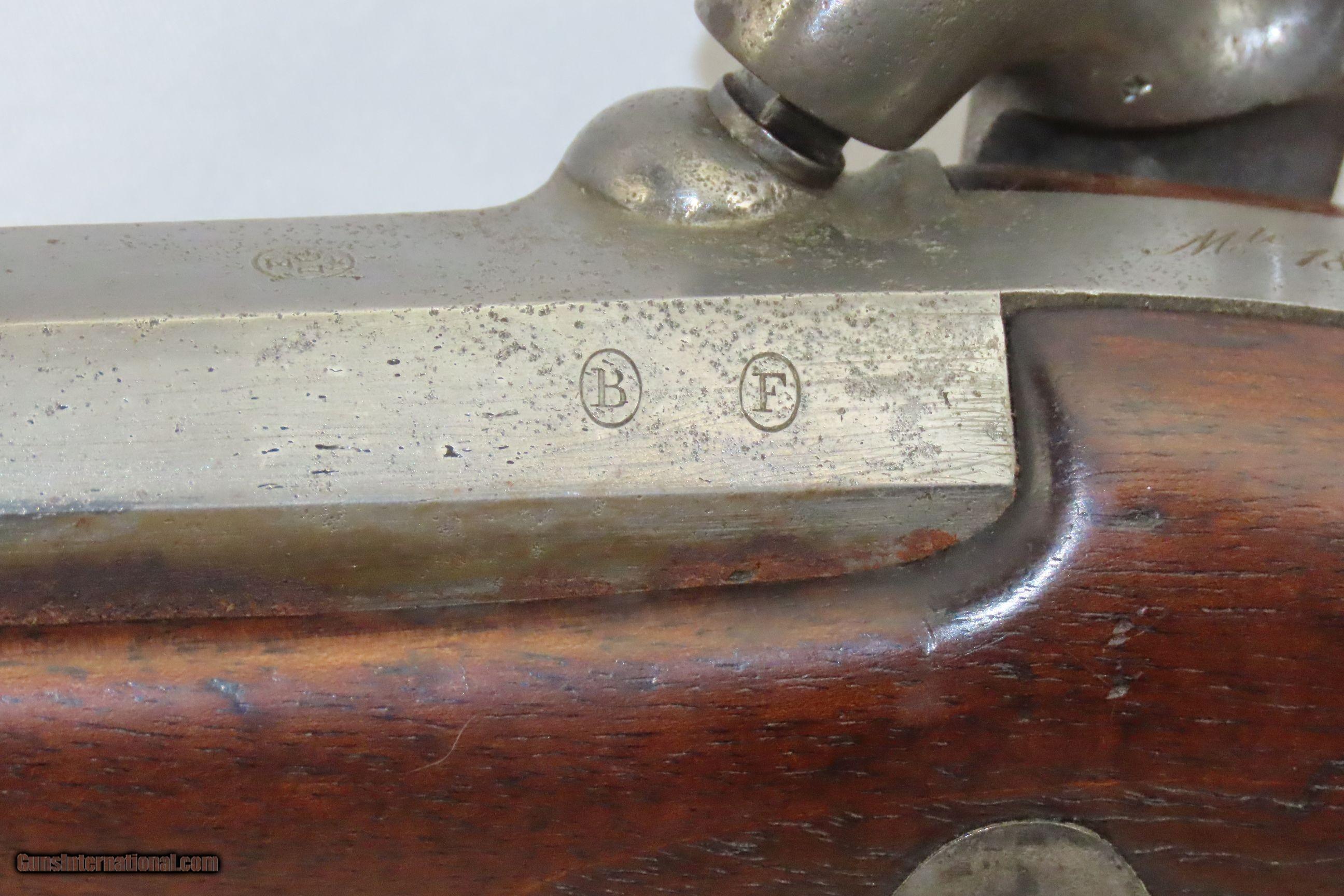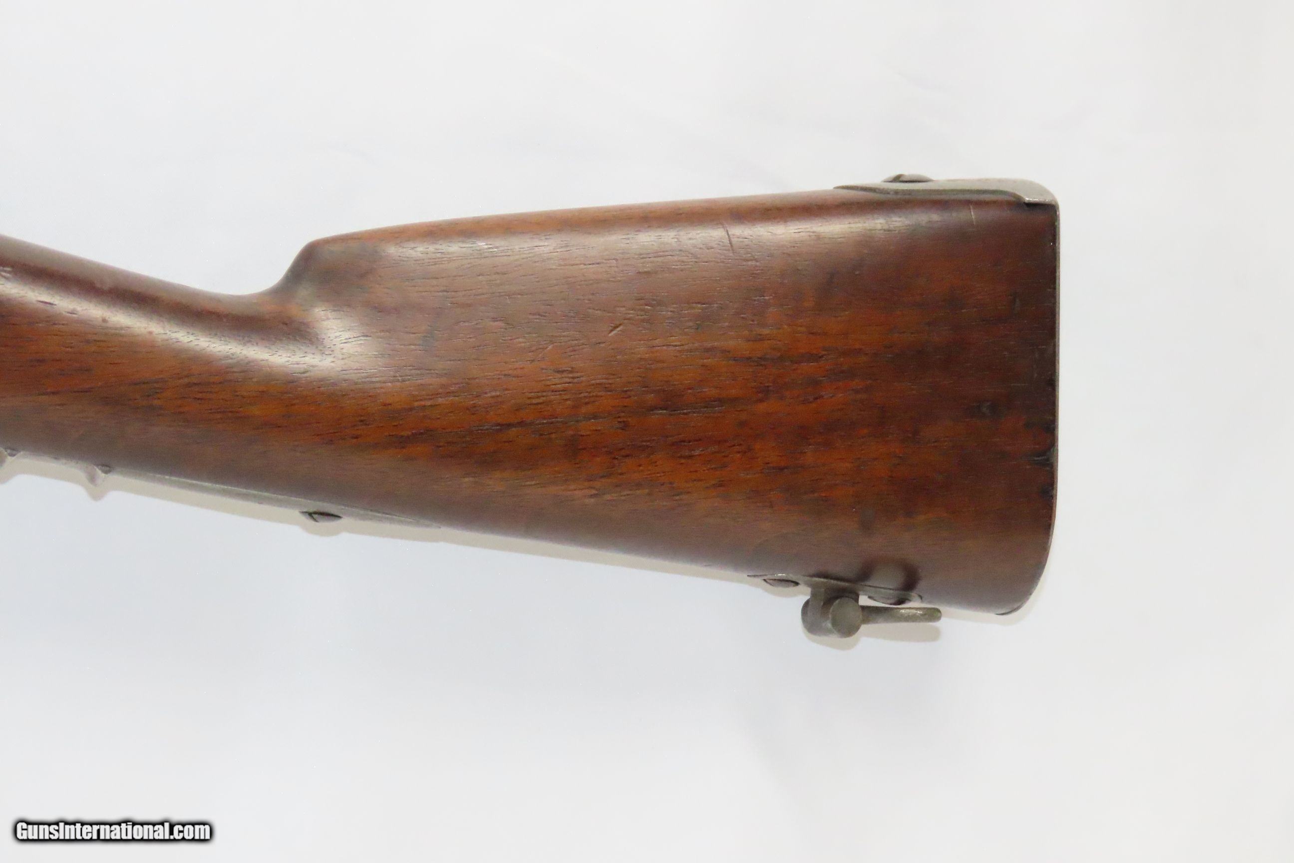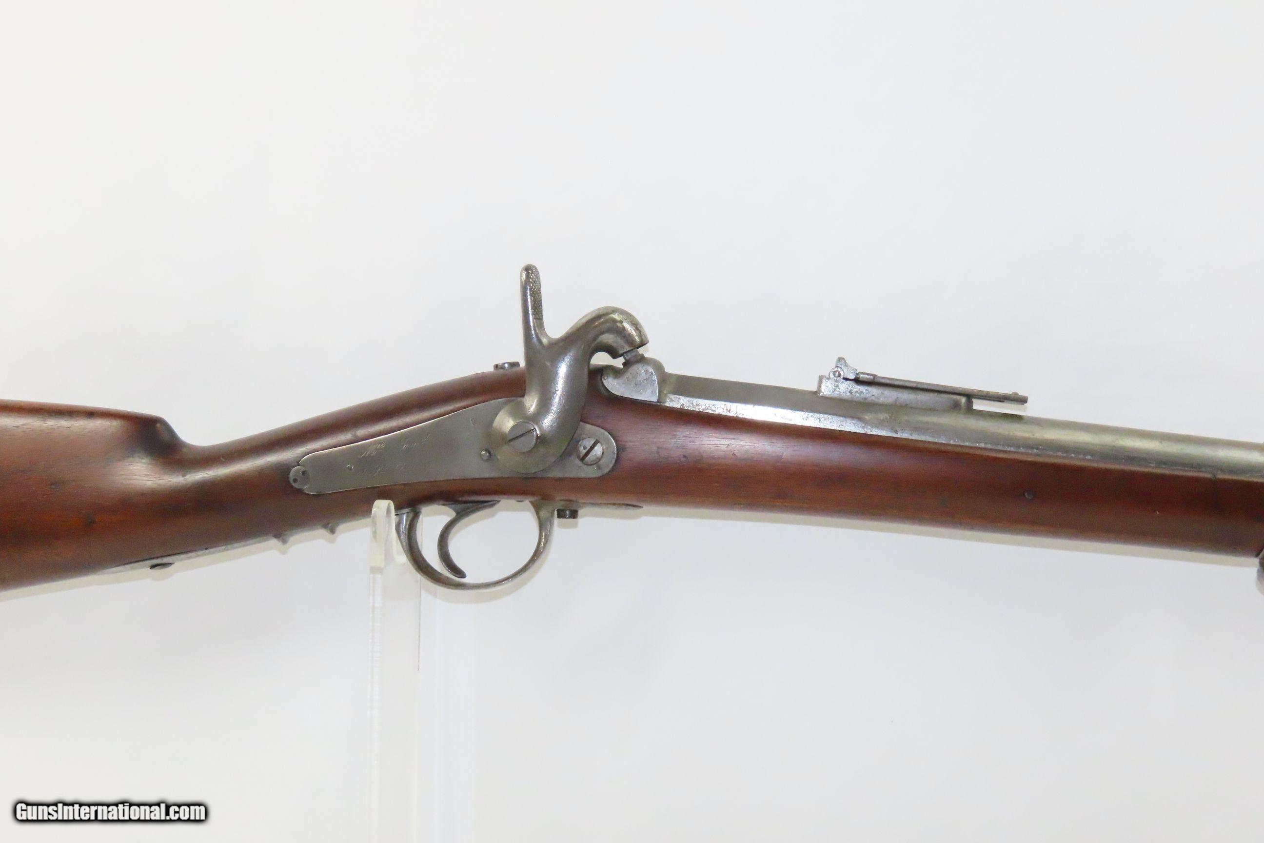 Description: CIVIL WAR Antique FRENCH ST ETIENNE 1853 GENDARMERIE Rifled Musket SABER 69 Percussion Musket with SWORD BAYONET Here we present an antique French Model 1853 Gendarmerie Percussion Rifled Musketoon, manufactured in 1856 at the French arsenal at St. Etienne. This is the typical Continental Rifled Musket that was imported to the Confederacy just before and during the U.S. Civil War. These were also bought and used by the Union Army in small quantities as described in the book Civil War Guns by William Edwards on page 262. This example is in .69 Caliber and is rifled with a adjustable back sight and a blade front sight. These were usually produced as muskets, but the export trade required rifles, indicating this was possibly made for export to the U.S. after being arsenal altered. It is fully steel mounted and does bear a maker marking on the lock plate: Mre Imp.ale de St. Etienne, indicating manufacture at the French Arsenal located in St. Etienne. There are Royal Armory proof and acceptance marks throughout. The overall condition is very good. Strong action. The bore is in good shape for its age. This example sports a solid stock with use apparent. Clear markings. Liege proofed barrel. Awesome saber bayonet. Own the original! This is a legitimate antique and not a reproduction. Barrel is 34-1/4 inches. Caliber: .69 Percussion Overall condition as seen in photos. Very Fast. Very Safe. FREE SHIPPING WORLDWIDE. Delivered directly to your door by express mail! Guaranteed AUTHENTIC & Includes CERTIFICATE OF AUTHENTICITY. ancestryguns $2100 #228571 SOLD Antique: Yes |