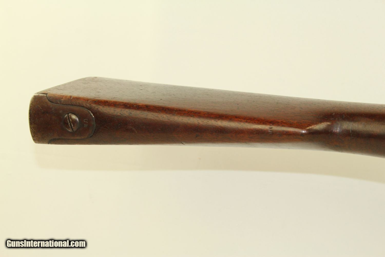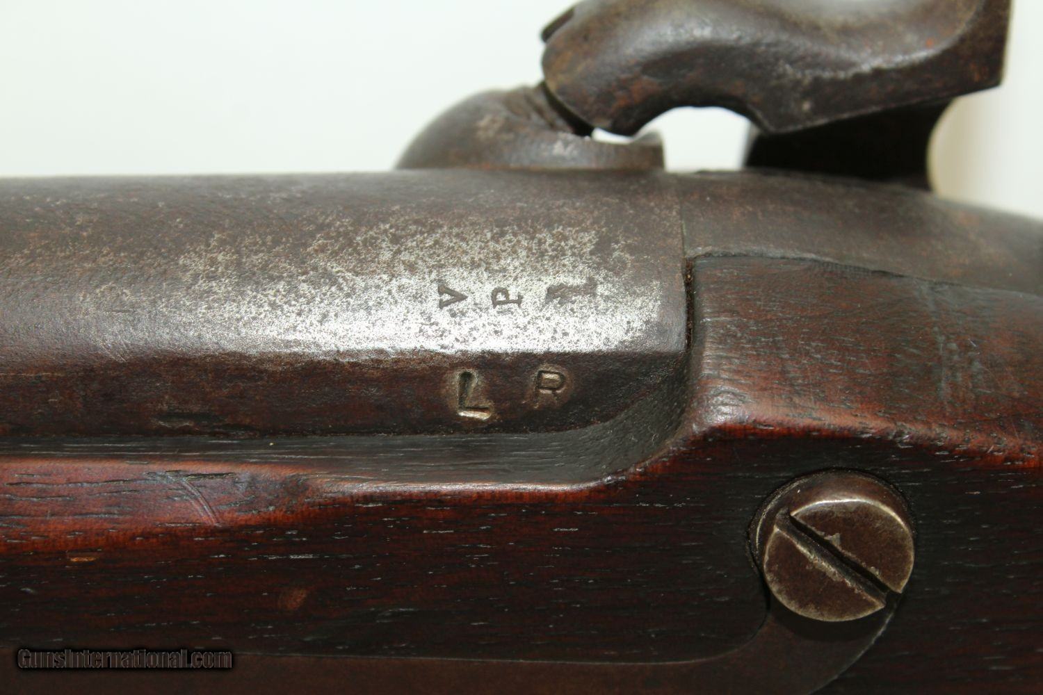 Description: CIVIL WAR Antique HARPERS FERRY M1842 MUSKET 7th MI Infantry Gettysburg LR 7th Michigan Volunteer Infantry Oral Tradition Here we present an antique Harpers Ferry U.S. Model 1842 Percussion Musket, manufactured circa 1847 in Harpers Ferry, Virginia. The Model 1842 was the first regulation percussion musket to be manufactured at both Springfield and Harpers Ferry Armories, as well as the first to be produced by both national armories with fully-interchangeable parts. These were also the last .69 caliber smoothbore arms to be produced by the U.S. government. Approximately 275,000 were manufactured between 1844 and 1855, with only one-third of these produced at Harpers Ferry. Along with usage during the Mexican-American War in 1846 through 1848, these would have been in the hands of local militia all over the antebellum United States and used by both combatants at the outbreak of the American Civil War. This one carries lore that it comes from the 7th Michigan Volunteer Infantry Regiment. The 7th was raised early in the war in August of 1861. The regiment would show up to many of the major battles and campaigns of the conflict to include Balls Bluff, Yorktown, Malvern Hill, Second Bull Run, Antietam, Fredericksburg, Chancellorsville, Gettysburg, the Wilderness, Spotsylvania, Cold Harbor and the Siege of Petersburg. They were among the first to cross the Rappahannock River to attack Fredericksburg and came under heavy fire from Confederate sharpshooters. They also were one of the regiments that successfully held off Pickett’s Charge at Gettysburg. The initials “LR” can be observed stamped into the metal parts throughout, probably by a soldier wanting to make sure he got his correct musket. The lock is marked “HARPERS FERRY 1847” and also has federal eagle stamp. The overall condition is near fine. The action is strong. The bore is smooth and dark. A fantastic piece of history! Own the original! This is a legitimate antique and not a reproduction. Barrel is 42 inches. Caliber: .69 Percussion Overall condition as seen in photos. Very Fast. Very Safe. FREE SHIPPING WORLDWIDE. Delivered directly to your door by express mail! Guaranteed AUTHENTIC & Includes CERTIFICATE OF AUTHENTICITY. ancestryguns $2400 #190318 SOLD Antique: Yes |