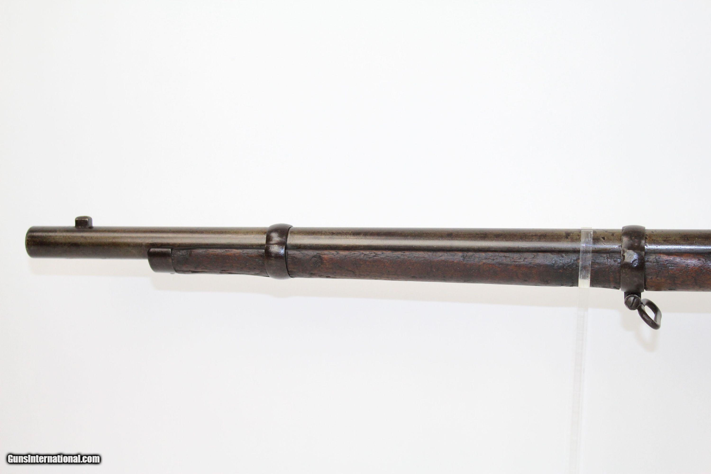 Description: CIVIL WAR Antique SPENCER ARMY Contract RIFLE Trialed and Endorsed by President Abraham Lincoln Here we present an antique Spencer Repeating Rifle Co. Rifle, made circa 1863 in Boston, Massachusetts. Just under 11,500 were delivered under this contract, making this a very scarce Civil War rifle indeed. These lever-operated, breech-loading rifles were marvels of the time and had an impact on how war was to be fought in the future. Though their service life in the U.S. military was relatively short, the Spencer story includes Christopher Spencer, the inventor of the rifle, demonstrating and shooting with President Abraham Lincoln, who gave his full endorsement of the piece. The first Spencer Army Contract rifles were issued to George Armstrong Custer’s 5th Michigan Cavalry, who would be amidst some of the most ferocious fighting at Gettysburg. Supposedly, during the Battle at Gettysburg, a captured Rebel said one could “load [the Spencer] in the morning and fire all day!” This was due to the Spencer’s most endearing quality: a 7 round magazine tube in the butt of the gun. This gave the shooter phenomenal firepower in a day when most soldiers were muzzle-loading single shots or even singly loading their breech-loading carbines. The top is marked “SPENCER REPEATING/RIFLEE CO. BOSTON MASS./PAT’D MARCH 6 1860.” The serial number falls into the correct range of the Army Contract rifles. The .52 caliber bore features 6-groove rifling. The overall condition is good. The iron is dark with age and with an old coat of oil throughout. The markings are clear. The serial numbers match. The walnut stock has seen a lot of hard use and remains solid. The bore is bright with good rifling. The action is excellent, strong and crisp. Here is a scarce example of a Civil War Spencer Rifle that looks just like it should! Own the original! This is a legitimate antique and not a reproduction. Barrel is 30 inches. Caliber: .52 Spencer Overall condition as seen in photos. Very Fast. Very Safe. FREE SHIPPING WORLDWIDE. Delivered directly to your door by express mail! Guaranteed AUTHENTIC & Includes CERTIFICATE OF AUTHENTICITY. ancestryguns $5250 #6177 SOLD Antique: Yes |