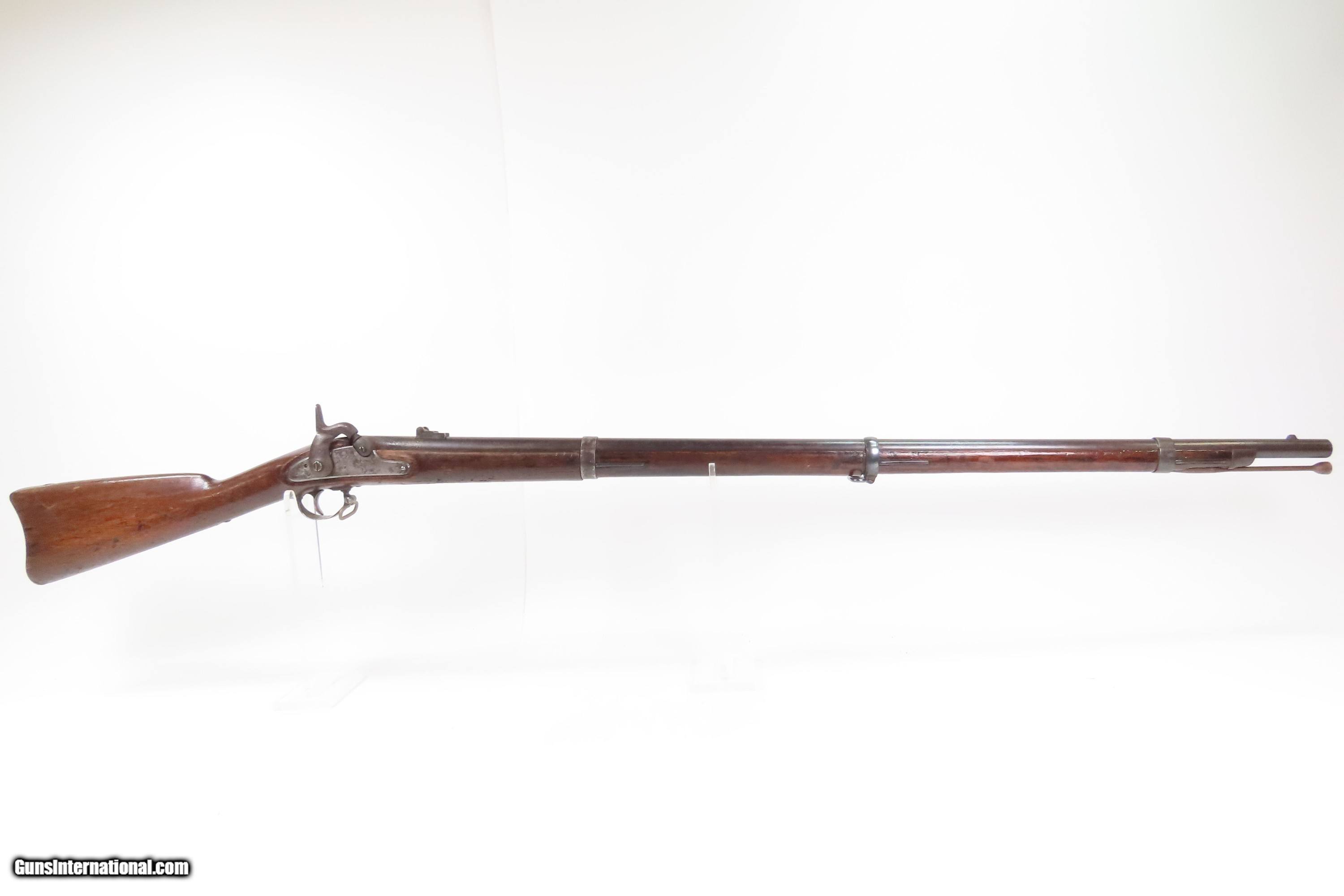 Description: CIVIL WAR Antique UNION U.S. Springfield M1861 .58 Rifle-Musket w/CARTOUCHE UNION “EVERYMAN’S RIFLE” Primary Infantry Weapon Here we present an antique Springfield Armory Model 1861 Civil War Rifle-Musket, made circa 1861 in Springfield, Massachusetts. The Model 1861 was the primary musket at the start of the American Civil War. The musket was designed to fire the .58 caliber Minié ball. The M1861 is representative of the “everyman’s” rifle during the war. About 1.5 million rifle-muskets were made in the U.S., over 800,000 of which were made by the Springfield Armory. This was the last hurrah of the rifle-musket as arms development and tactics rapidly advanced during the short period of the American Civil War. Nevertheless, the 1861 represented new technology as it was made for use with the Minié ball, a hollow based, conical projectile that was small enough to quickly push down the muzzle of a rifled barrel and expanded to create a good gas seal unlike a solid, round ball. The outbreak of civil war overwhelmed Springfield Armory’s capacity to produce enough weapons for Union soldiers. The loss of Harpers Ferry worsened the shortage, prompting the government to enlist over 20 private manufacturers to produce more than 643,000 muskets. Springfield Armory provided technical guidance and supervised the manufacturing of Model 1861 muskets, ensuring they matched the government’s .58 caliber rifle musket standards. The overall condition is good. Original dark patina. Replacement middle barrel band. The stock is solid and contains a few small cracks, with cartouches partially legible on the left stock flat. Underneath the third band and forward, the forend is a spliced replacement. Darkened bore is good for its age and has been bored smooth. Strong action, with a replacement hammer. Legible markings. Rear sight replacement. Own the original! This is a legitimate antique and not a reproduction. Barrel is 40 inches. Caliber: .58 Percussion Overall condition as seen in photos. Very Fast. Very Safe. FREE SHIPPING WORLDWIDE. Delivered directly to your door by express mail! Guaranteed AUTHENTIC & Includes CERTIFICATE OF AUTHENTICITY. ancestryguns $1900 #255108 SOLD Antique: Yes |