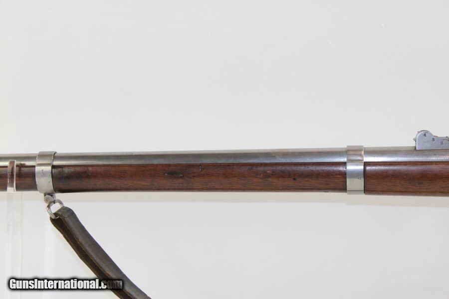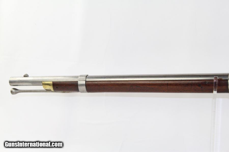 Description: CIVIL WAR Antique US SPRINGFIELD 1855 Rifle-MUSKET Maynard Tape Primed Musket Dated “1858” Here we present an antique Springfield Armory US Model 1855 Rifle-Musket, manufactured in 1858 in Springfield, Massachusetts. The Model 1855 was the first US musket to utilize the .58 caliber Minie ball. The US military was piloting a concept for all U.S. Army troops to have a common caliber, so that logistics would be simplified. The chosen caliber was .58, and it utilized the cutting-edge cone-shaped Minié ball with the hollow base instead of a spherical ball. Also, relatively new and short-lived was the Maynard tape priming system, to which Springfield had purchased the rights. Instead of directly priming the nipple by hand for each shot, the user would simply install a roll of paper percussion caps, and a single cap would be exposed, sheared and carried by the hammer to detonate on the nipple. Of course, the standard rifle percussion caps could also be used. This system was simply abandoned with the beginning of the American Civil War as arms production was driven by effectiveness and efficiency, resulting in the simplified Model 1861. This rifle features iron furniture, with a brass fore end cap. The lock is marked “U.S./SPRINGFIELD/1858” with a federal eagle on the Maynard system’s door. The butt plate is marked “US”. The left side of the barrel is marked “V”, “P” with an eagle head. The overall condition is near fine. The metal surfaces have been kept bright. The markings are clear. The walnut stock is in great shape with some evidence of handling. There is also a crack just forward of the lock. The bore is bright with sharp rifling. The action is excellent. Here is a very scarce and handsome example of a Model 1855 Maynard Musket! Own the original! This is a legitimate antique and not a reproduction. Barrel is 40 inches. Caliber: .58 Percussion Overall condition as seen in photos. Very Fast. Very Safe. FREE SHIPPING WORLDWIDE. Delivered directly to your door by express mail! Guaranteed AUTHENTIC & Includes CERTIFICATE OF AUTHENTICITY. ancestryguns $4325 #8118 SOLD Antique: Yes |