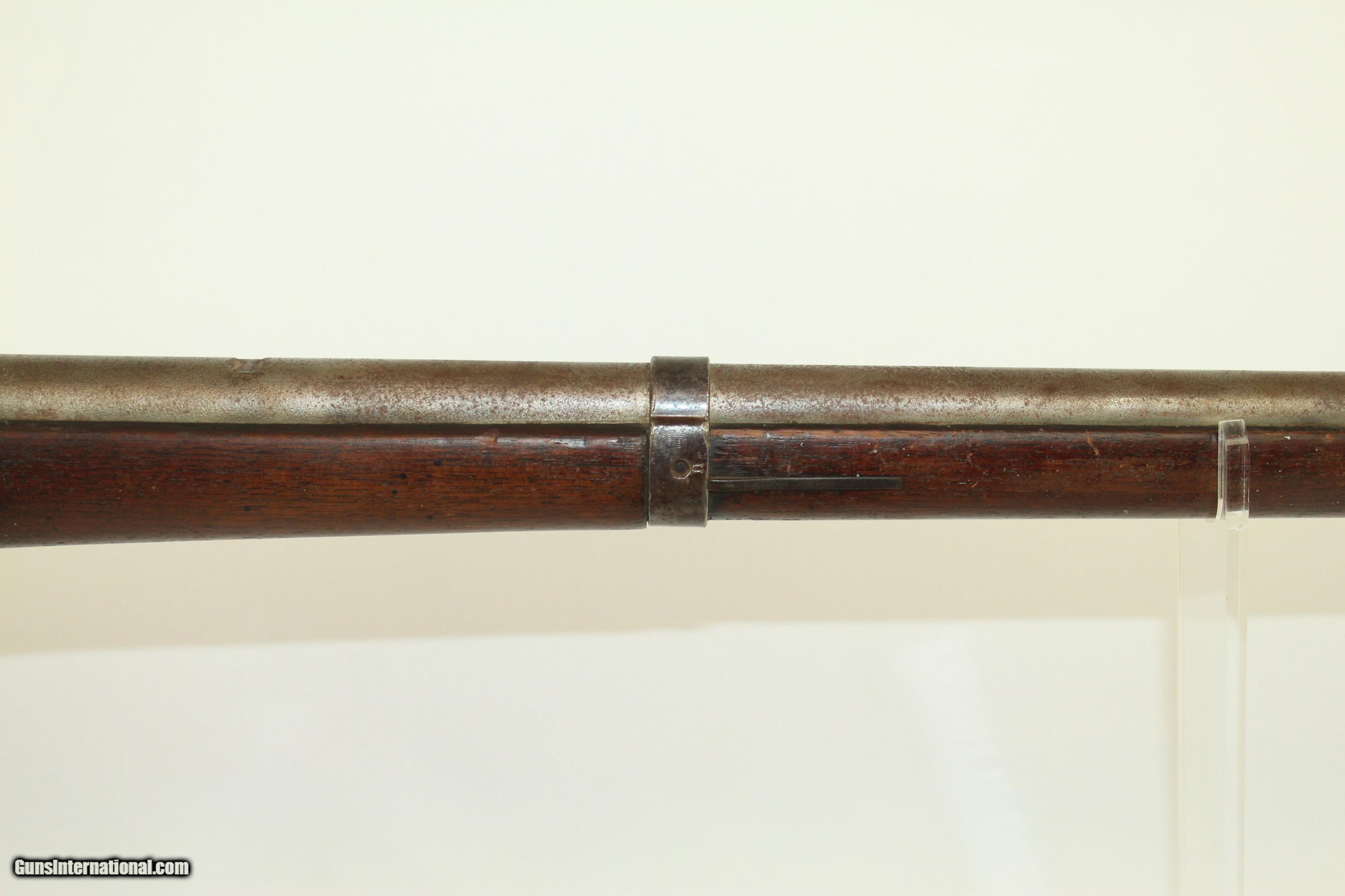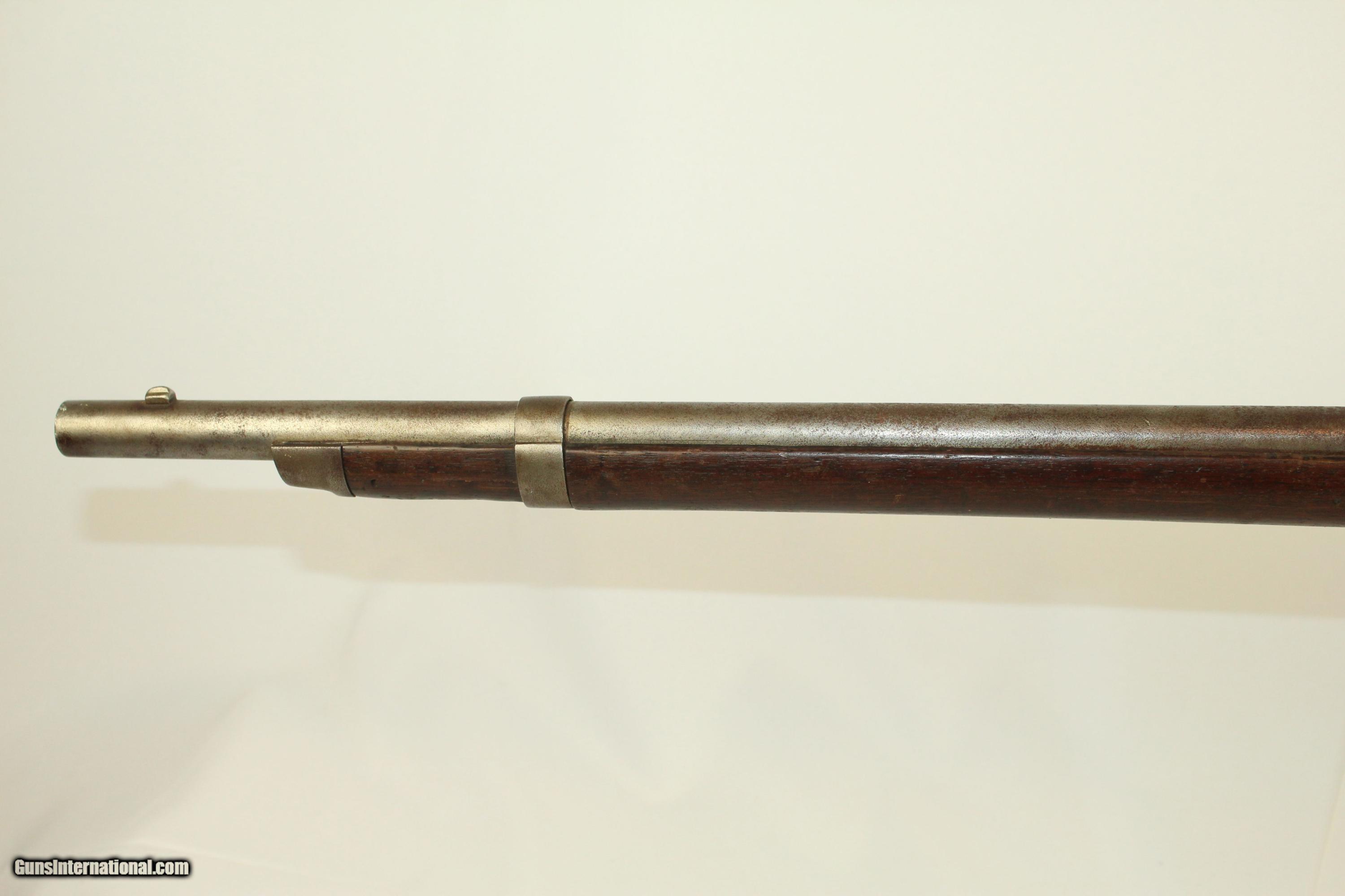 Description: CIVIL WAR Antique US SPRINGFIELD 1861 Rifle-Musket Primary Infantry Weapon of the American Civil War Here we present an antique U.S. Model 1861 Rifle-Musket, made at Springfield Armory in Springfield, Massachusetts, in 1863. The M1861 is representative of the “everyman’s” rifle during the American Civil War. About 1.5 million rifle-muskets were made in the U.S., over 800,000 of which were made by the Springfield Armory. This was the last hurrah of the rifle-musket as arms development and tactics rapidly advanced during the short period of the American Civil War. Nevertheless, the 1863 represented new technology as it was made for use with the Minié ball, a hollow based, conical projectile that was small enough to quickly push down the muzzle of a rifled barrel, and expanded to create a good gas seal unlike solid round ball. This .58 caliber rifle’s lock is marked “1863” and “U.S./SPRINGFIELD”. The left side of the gun retains a faint inspector’s cartouche. The overall condition is good. The metal surfaces have a dark patina. The markings are legible. The walnut stock shows normal wear, as well as a repair by the barrel tang. The bore is worn pretty smooth and is heavily oxidized. The rear screw holding the lock from the left side is broken at the threads. The action does not half-cock, but holds full-cock. Here is a great chance to own a Civil War Springfield Rifle Musket. Own the original! This is a legitimate antique and not a reproduction. Barrel is 40 inches in length. Caliber: .58 percussion Overall condition as seen in photos. Very Fast. Very Safe. FREE SHIPPING WORLDWIDE. Delivered directly to your door by express mail! Guaranteed AUTHENTIC & Includes CERTIFICATE OF AUTHENTICITY. ancestryguns $1200 #10523 SOLD Antique: Yes |