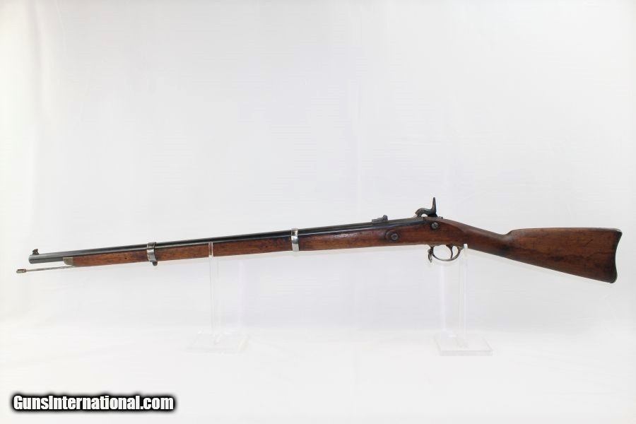 Description: CIVIL WAR Antique US SPRINGFIELD 1861 Rifle-Musket Primary Infantry Weapon of the Union Here we present an antique Springfield Armory Model 1861 Civil War Rifle-Musket, made in 1862 in Springfield, Massachusetts. The M1861 is representative of the “everyman’s” rifle during the war. About 1.5 million rifle-muskets were made in the U.S., over 800,000 of which were made by the Springfield Armory. This was the last hurrah of the rifle-musket as arms development and tactics rapidly advanced during the short period of the American Civil War. Nevertheless, the 1861 represented new technology as it was made for use with the Minié ball, a hollow based, conical projectile that was small enough to quickly push down the muzzle of a rifled barrel and expanded to create a good gas seal unlike a solid, round ball. Almost immediately after the war, the US military switched from the old muzzle loading type weapons to the newer breech loading rifles, bringing an end to the musket as a standard frontline firearm in American history. This musket has been shortened and a new front sight installed. The lock is marked “U.S./SPRINGFIELD” and dated “1862” on the tail of the lock. The left side of the barrel is marked “V/P” and Eagle Head. There are clear inspector cartouches on the left side of the stock along with other inspector marks throughout the rifle. The overall condition is good. The barrel has been blued. The markings are legible. The stock is solid. The bore is clean and well-rifled. The action is strong. Own the original! This is a legitimate antique and not a reproduction. Barrel is 32 5/8 inches. Caliber: .58 Percussion Overall condition as seen in photos. Very Fast. Very Safe. FREE SHIPPING WORLDWIDE. Delivered directly to your door by express mail! Guaranteed AUTHENTIC & Includes CERTIFICATE OF AUTHENTICITY. ancestryguns $875 #8133 SOLD Antique: Yes |