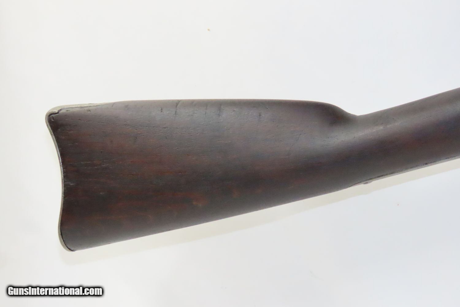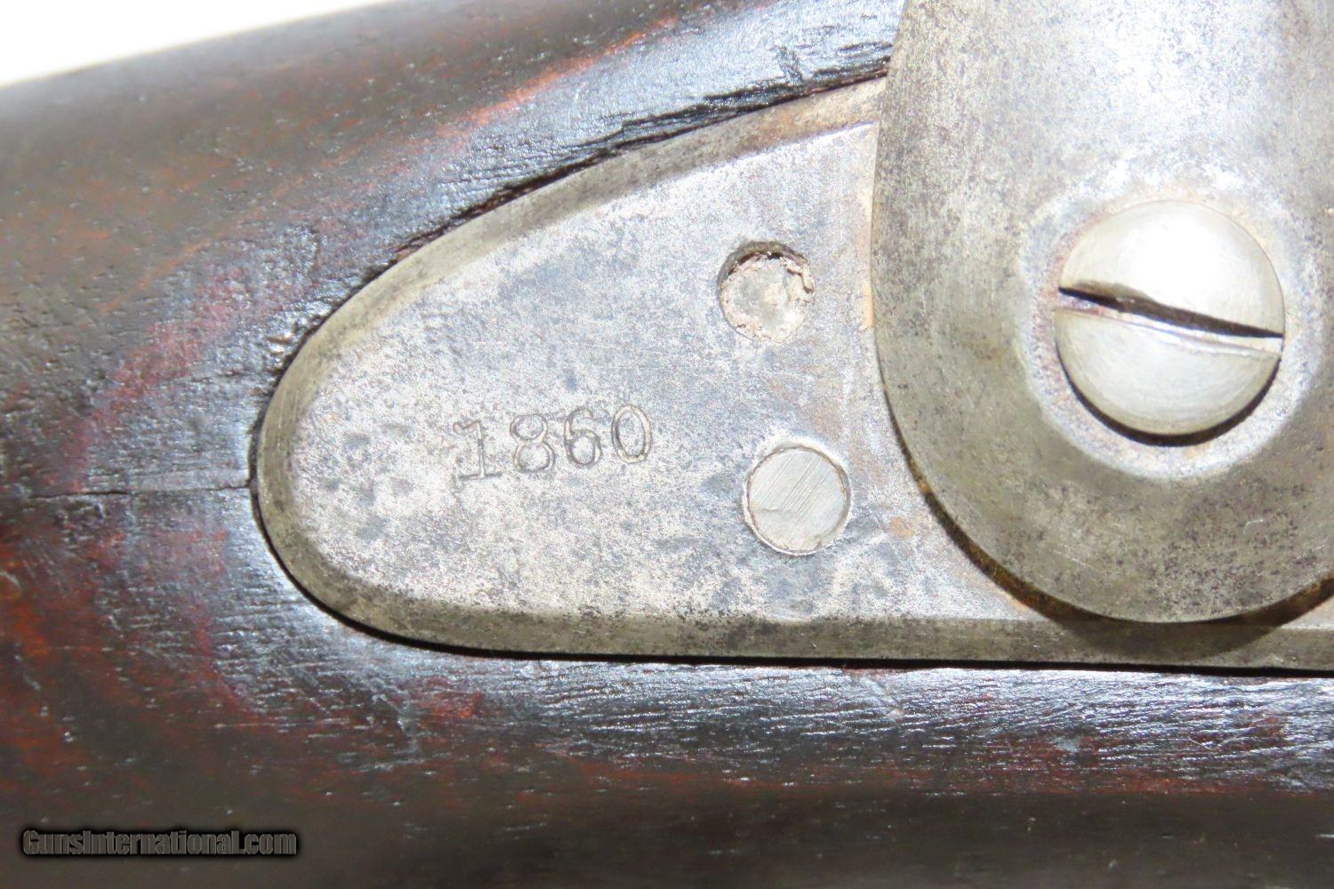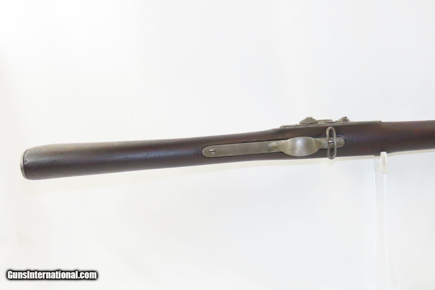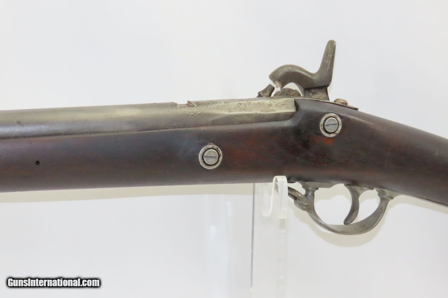 Description: CIVIL WAR Antique US SPRINGFIELD ARMORY Model 1855 TAPE PRIMED Rifle-MUSKET NORTH & SOUTH Used Maynard Tape Primed Musket! Here we present an antique Springfield Armory US Model 1855 Rifle-Musket, manufactured in 1860 in Springfield, Massachusetts. The Model 1855 was the first US musket to utilize the .58 caliber Minie ball. The US military was piloting a concept for all U.S. Army troops to have a common caliber, so that logistics would be simplified. The chosen caliber was .58, and it utilized the cutting-edge cone-shaped Minié ball with the hollow base instead of a spherical ball. Also, relatively new and short-lived was the Maynard tape priming system, to which Springfield had purchased the rights. Instead of directly priming the nipple by hand for each shot, the user would simply install a roll of paper percussion caps, and a single cap would be exposed, sheared and carried by the hammer to detonate on the nipple. Of course, the standard rifle percussion caps could also be used. This system was simply abandoned with the beginning of the American Civil War as arms production was driven by effectiveness and efficiency, resulting in the simplified Model 1861. This one has been there and done that. The action functions. (Weak hammer spring and there is no tape lid) Bore has been crudely bored out. Solid stock despite containing a few repairs around the lock. Missing rear sight. Missing ramrod. Your chance to own a Springfield Model 1855 Maynard Tape-Primed Musket! Own the original! This is a legitimate antique and not a reproduction. Barrel is 40 inches. Caliber: .62 Percussion Overall condition as seen in photos. Very Fast. Very Safe. FREE SHIPPING WORLDWIDE. Delivered directly to your door by express mail! Guaranteed AUTHENTIC & Includes CERTIFICATE OF AUTHENTICITY. ancestryguns $1245 #210387 SOLD Antique: Yes |