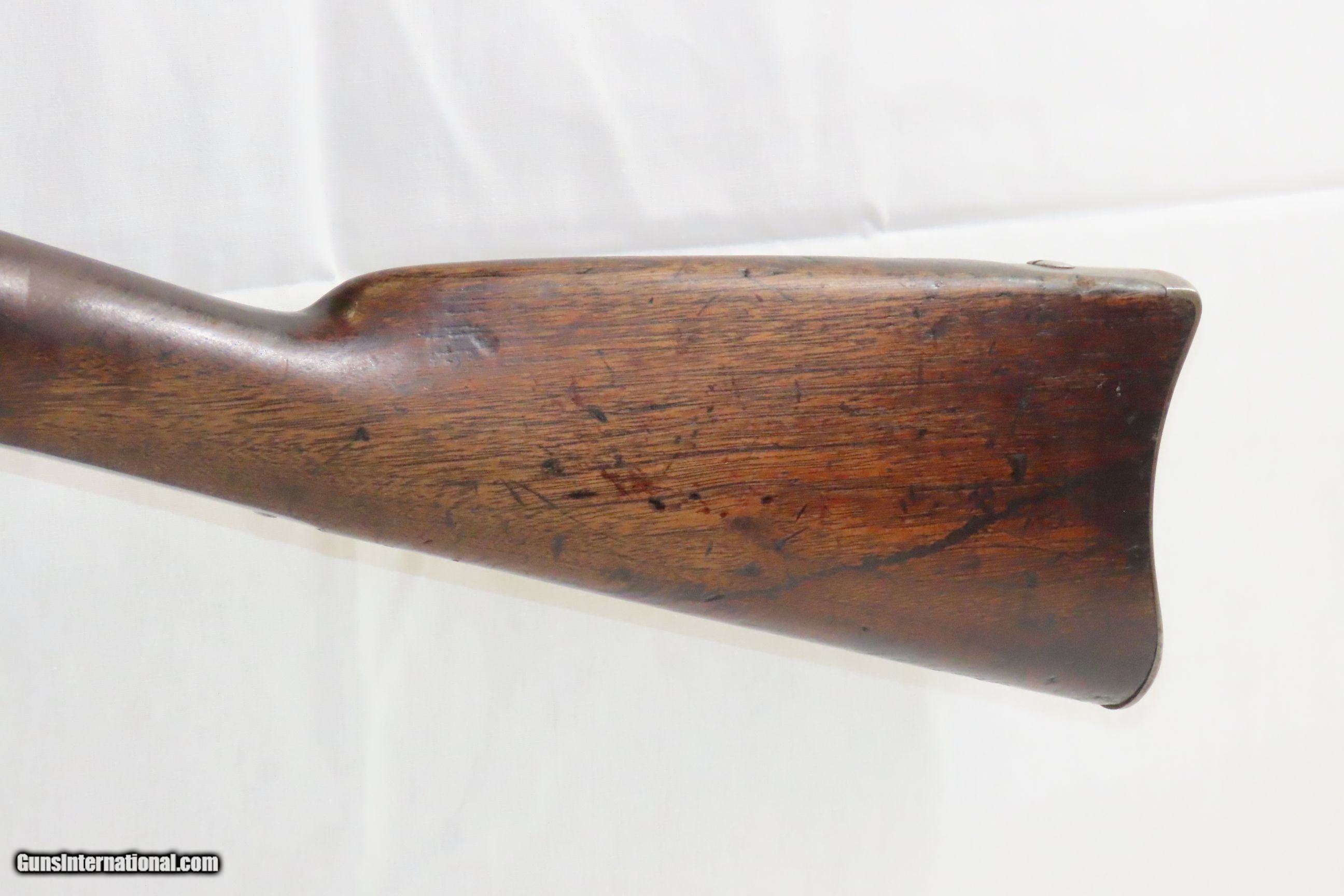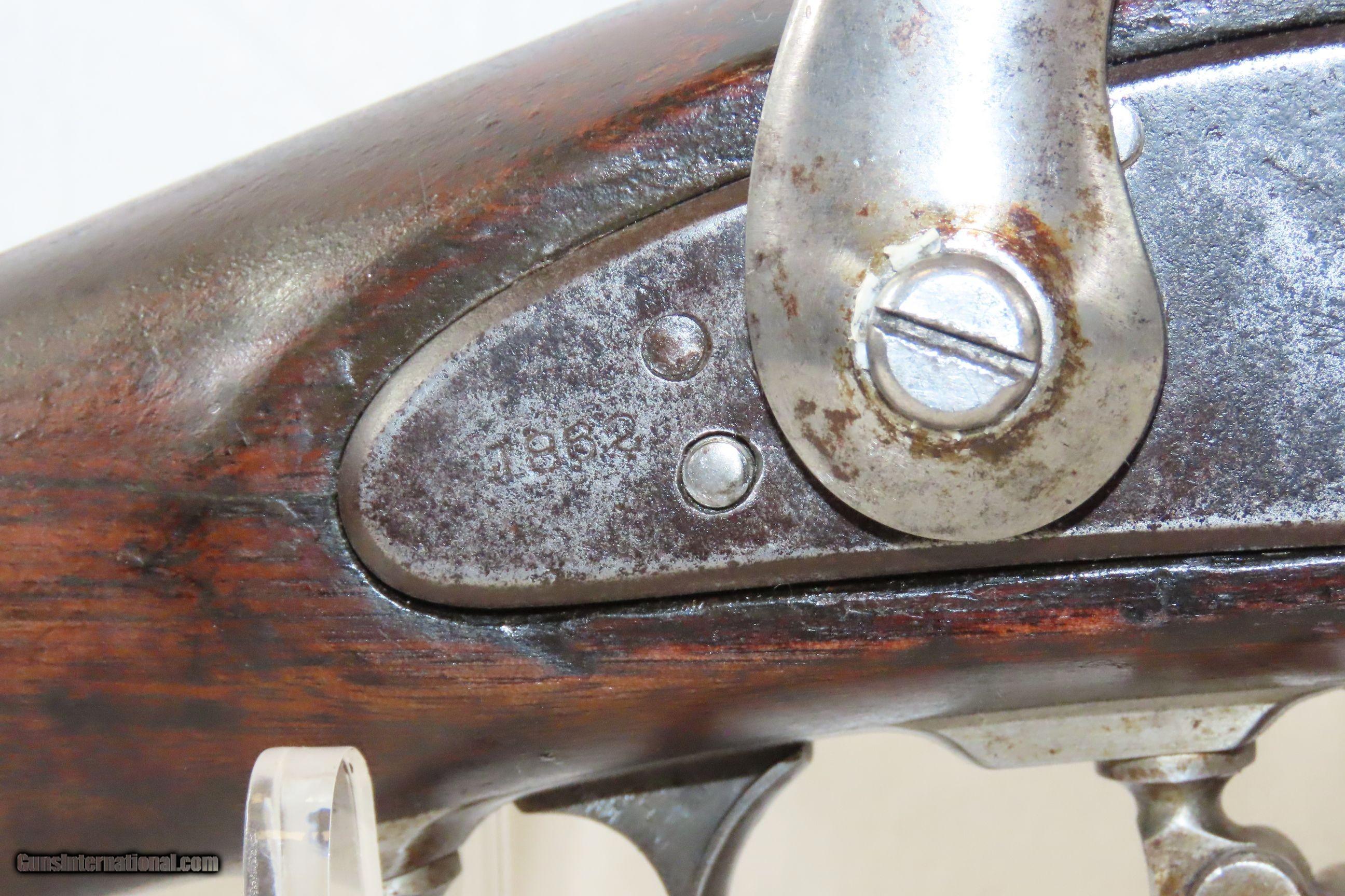 Description: CIVIL WAR Antique US SPRINGFIELD ARMORY Model 1861 .58 Caliber Rifle-MUSKET Union Infantry “EVERYMAN’S” Rifle w/ LEATHER SLING Here we present an antique U.S. Springfield Armory Model 1861 Civil War Rifle-Musket, made circa 1862 in Springfield, Massachusetts. The M1861 was the primary musket at the start of the American Civil War for the Union Army. The musket was designed to fire the .58 caliber minie ball. The Model 1861 is representative of the “everyman’s” rifle during the war. About 1.5 million rifle-muskets were made in the U.S., over 800,000 of which were made by the Springfield Armory. This was the last hurrah of the rifle-musket as arms development and tactics rapidly advanced during the short period of the American Civil War. Nevertheless, the 1861 represented new technology as it was made for use with the Minié ball, a hollow based, conical projectile that was small enough to quickly push down the muzzle of a rifled barrel and expanded to create a good gas seal unlike a solid, round ball. Almost immediately after the war, the U.S. military switched from the old muzzle loading type weapons to the newer breech loading rifles, bringing an end to the musket as a standard frontline firearm in American history. The overall condition is good. Robust action. The bore is in good shape with strong rifling. Solid stock. Cartouche remnants can be found on the left stock flat. Barrel and stock have been shortened and a front sight protector has been installed (and can be removed). Replacement ramrod. Good leather sling. Markings are legible. This came from the collection of a shooter. Own the original! This is a legitimate antique and not a reproduction. Barrel is 33 inches. Caliber: .58 Percussion Overall condition as seen in photos. Very Fast. Very Safe. FREE SHIPPING WORLDWIDE. Delivered directly to your door by express mail! Guaranteed AUTHENTIC & Includes CERTIFICATE OF AUTHENTICITY. ancestryguns $2000 #227848 SOLD Antique: Yes |