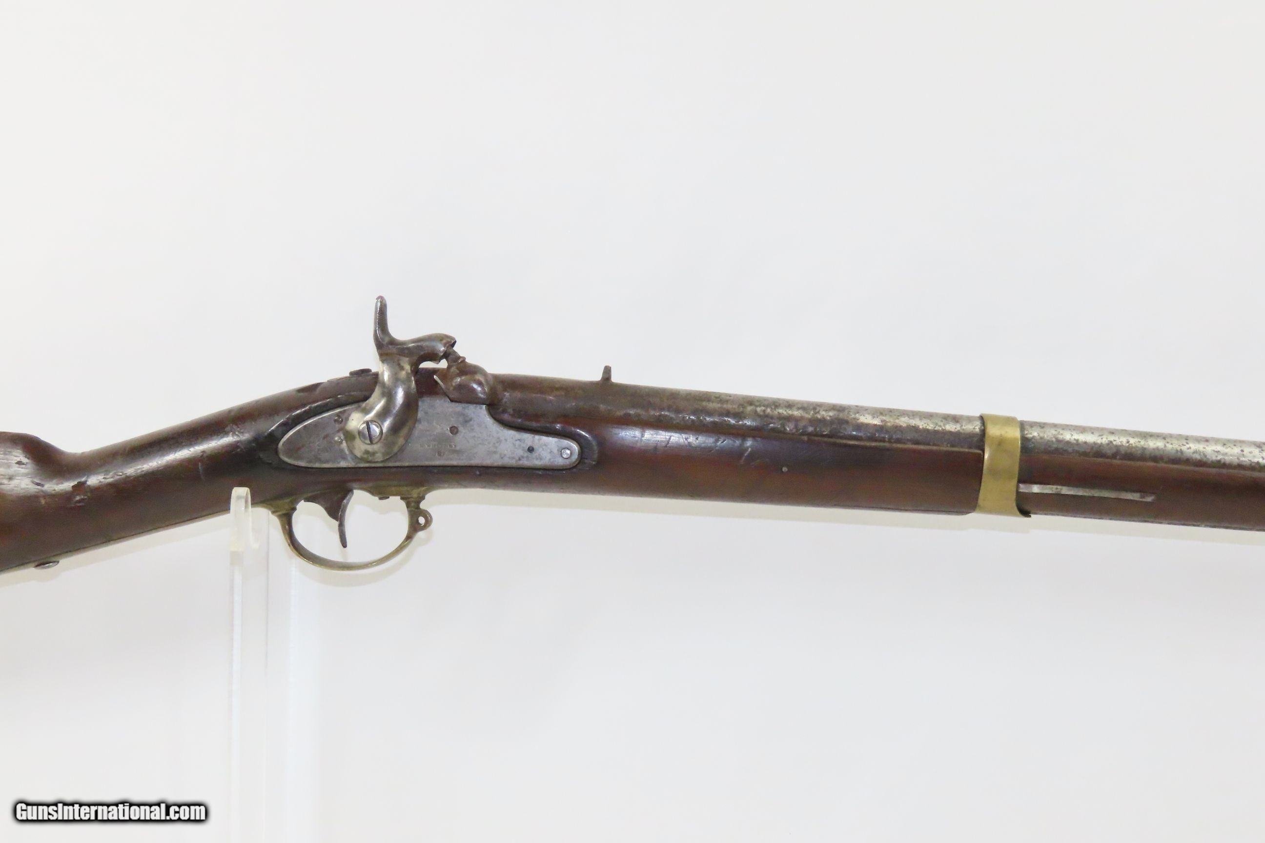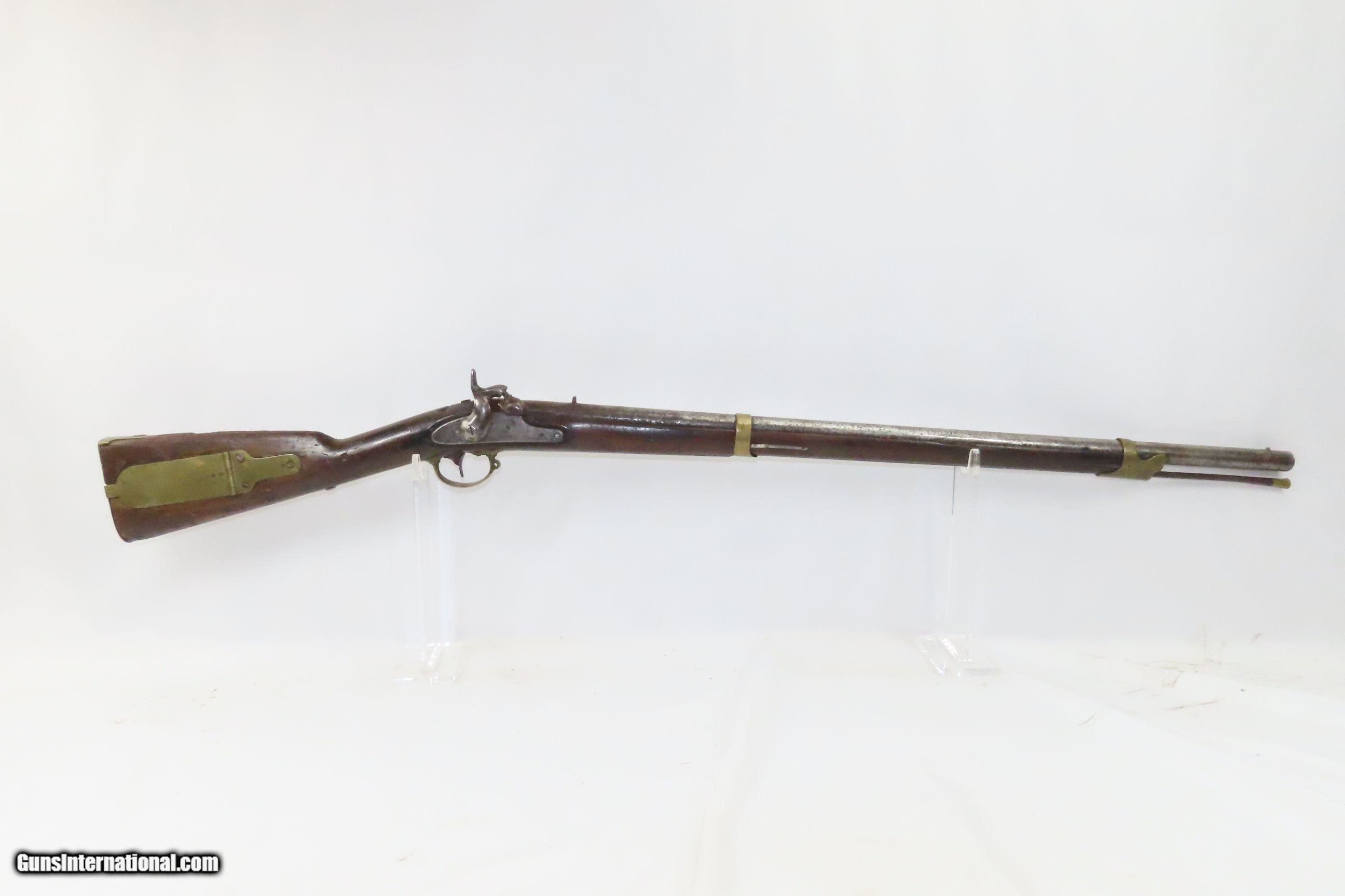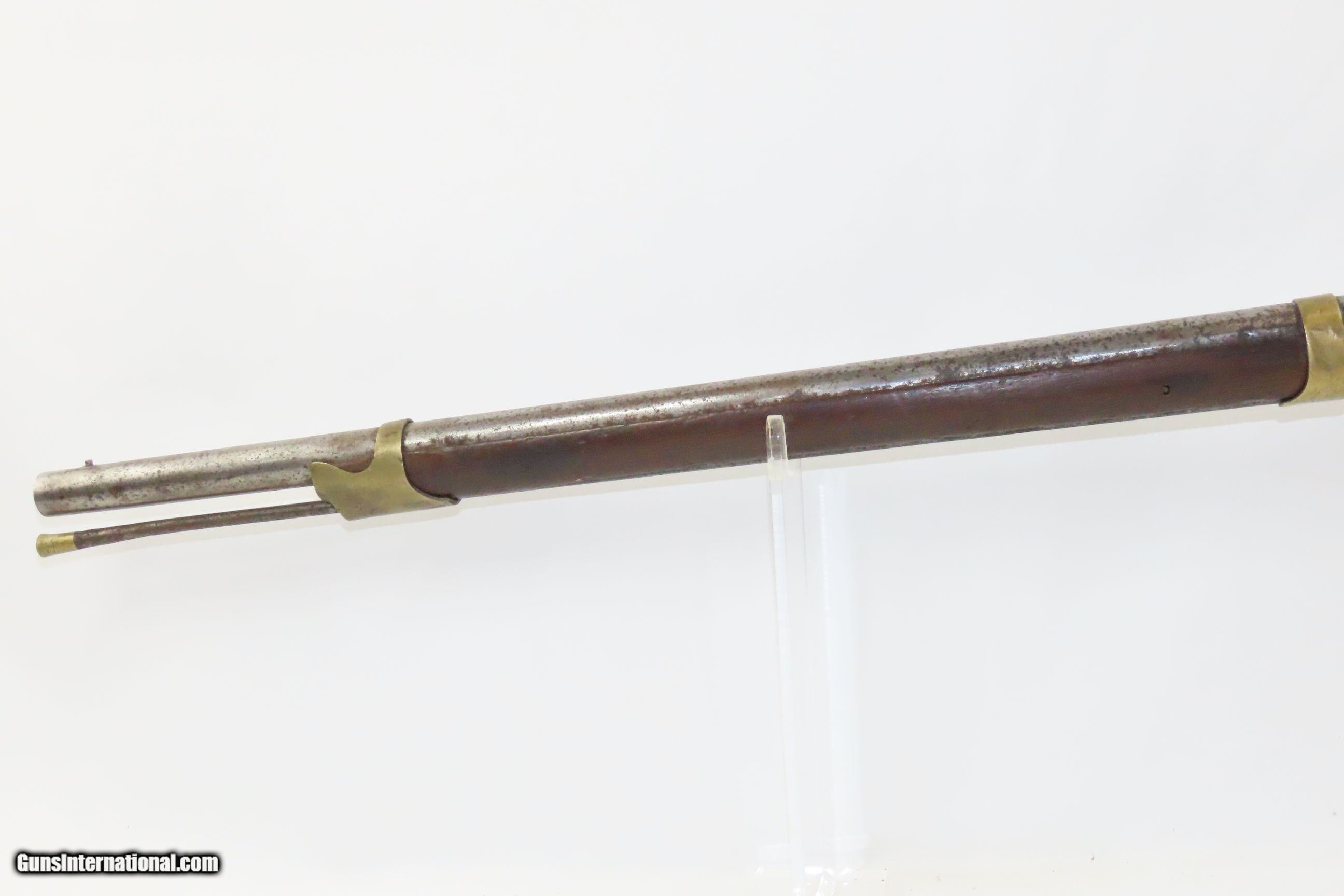 Description: CIVIL WAR Antique WHITNEY ARMS CO. Contract U.S. M1841 “MISSISSIPPI” Rifle Extensively Used .62 Percussion Smoothbored Rifle Here we present an antique U.S. Model 1841 Rifle-Musket, made on contract by Eli Whitney’s Whitneyville or Whitney Arms Co. in New Haven, Connecticut in 1852. Eli Whitney contracted with the U.S. Government for 22,500 rifles, delivered between 1842 and 1854. This mass produced rifle was used extensively by Dragoons, Mounted Rifle Regiments, and U.S. Infantry “Regulars” prior to the Civil War. After the John Brown Raid on Harpers Ferry in October of 1859 the southern states demanded additional weapons. In December of that year, 10,000 Mississippi Rifles were sent to southern armories at the direction of the Secretary of War. These rifles saw extensive service for the south when Civil War erupted in 1861. The Mississippi Rifle is so called because its service life included the Mexican-American War, during which Jefferson Davis (future president of the Confederacy) led his Mississippi troops, who carried and favored the rifle. It was a rugged and reliable weapon. The Model 1841 was originally made in .54 caliber, but in the late 1850s a number were arsenal reconfigured to the larger .58 caliber Minie ball. Obviously, the Model 1841 was worth converting. Normally, a rifle that is converted is not worth quite as much, but this one bucks that trend, probably due to its use by both sides during the American Civil War. Government arsenals that were in the Confederacy at the time of the rebellion had a number of these in them. The overall condition is good. Robust action. The bore is in good shape for its age with some visible rifling remaining, but has been bored out. This example sports a solid stock with some chipping around the barrel tang. Legible markings. “1852” dated lock. The front sight is a replacement. Own the original! This is a legitimate antique and not a reproduction. Barrel is 32-3/4 inches. Caliber: .62 Percussion Overall condition as seen in photos. Very Fast. Very Safe. FREE SHIPPING WORLDWIDE. Delivered directly to your door by express mail! Guaranteed AUTHENTIC & Includes CERTIFICATE OF AUTHENTICITY. ancestryguns $1800 #230080 SOLD Antique: Yes |