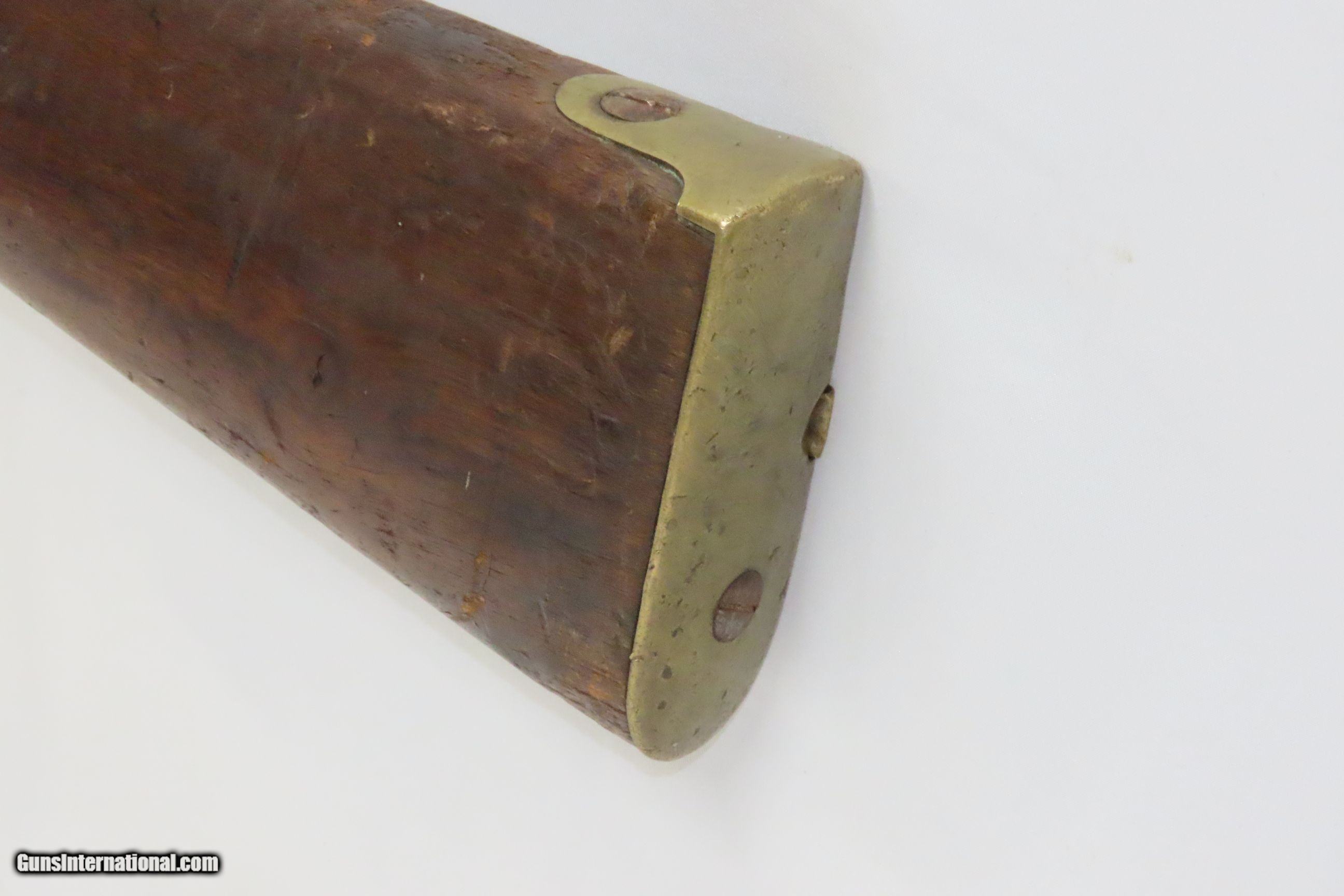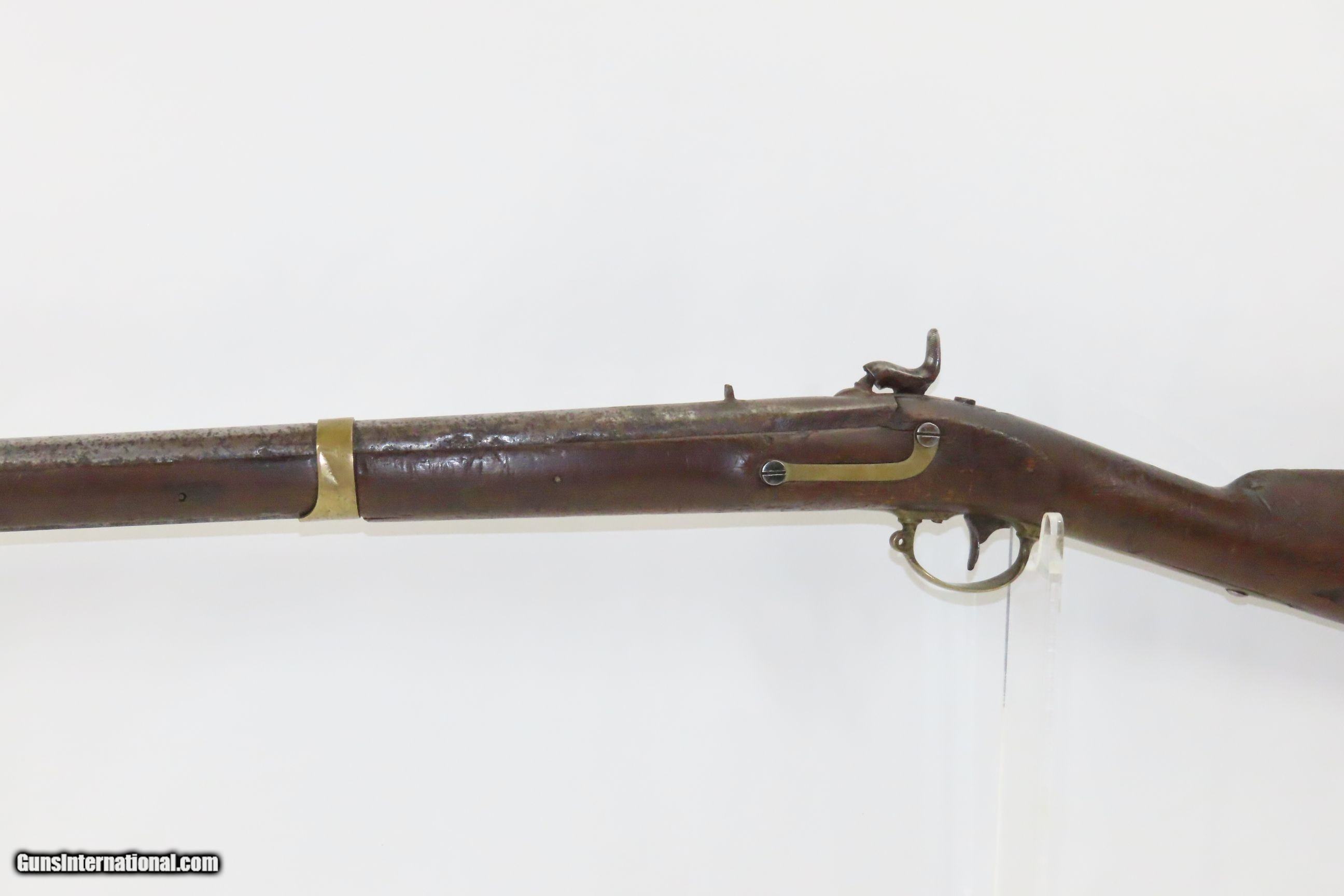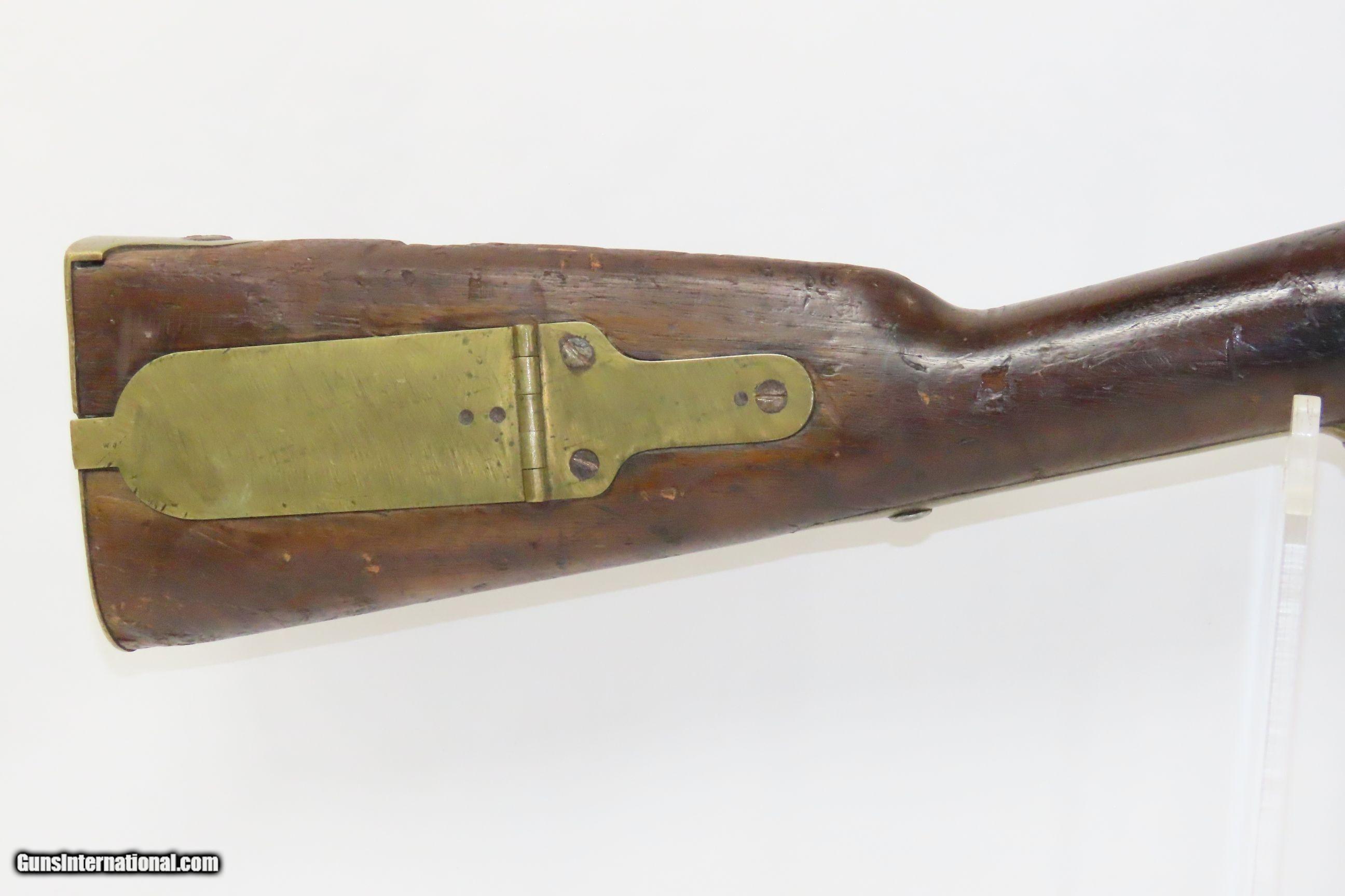 Description: CIVIL WAR Antique WHITNEY ARMS CO. Contract U.S. M1841 “MISSISSIPPI” Rifle Extensively Used .62 Percussion Smoothbored Rifle Here we present an antique U.S. Model 1841 Rifle-Musket, made on contract by Eli Whitney’s Whitneyville or Whitney Arms Co. in New Haven, Connecticut in 1852. Eli Whitney contracted with the U.S. Government for 22,500 rifles, delivered between 1842 and 1854. This mass produced rifle was used extensively by Dragoons, Mounted Rifle Regiments, and U.S. Infantry “Regulars” prior to the Civil War. After the John Brown Raid on Harpers Ferry in October of 1859 the southern states demanded additional weapons. In December of that year, 10,000 Mississippi Rifles were sent to southern armories at the direction of the Secretary of War. These rifles saw extensive service for the south when Civil War erupted in 1861. The Mississippi Rifle is so called because its service life included the Mexican-American War, during which Jefferson Davis (future president of the Confederacy) led his Mississippi troops, who carried and favored the rifle. It was a rugged and reliable weapon. The Model 1841 was originally made in .54 caliber, but in the late 1850s a number were arsenal reconfigured to the larger .58 caliber Minie ball. Obviously, the Model 1841 was worth converting. Normally, a rifle that is converted is not worth quite as much, but this one bucks that trend, probably due to its use by both sides during the American Civil War. Government arsenals that were in the Confederacy at the time of the rebellion had a number of these in them. The overall condition is good. Robust action. The bore is in good shape for its age with some visible rifling remaining, but has been bored out. This example sports a solid stock with some chipping around the barrel tang. Legible markings. “1852” dated lock. The front sight is a replacement. Own the original! This is a legitimate antique and not a reproduction. Barrel is 32-3/4 inches. Caliber: .62 Percussion Overall condition as seen in photos. Very Fast. Very Safe. FREE SHIPPING WORLDWIDE. Delivered directly to your door by express mail! Guaranteed AUTHENTIC & Includes CERTIFICATE OF AUTHENTICITY. ancestryguns $1800 #230080 SOLD Antique: Yes |