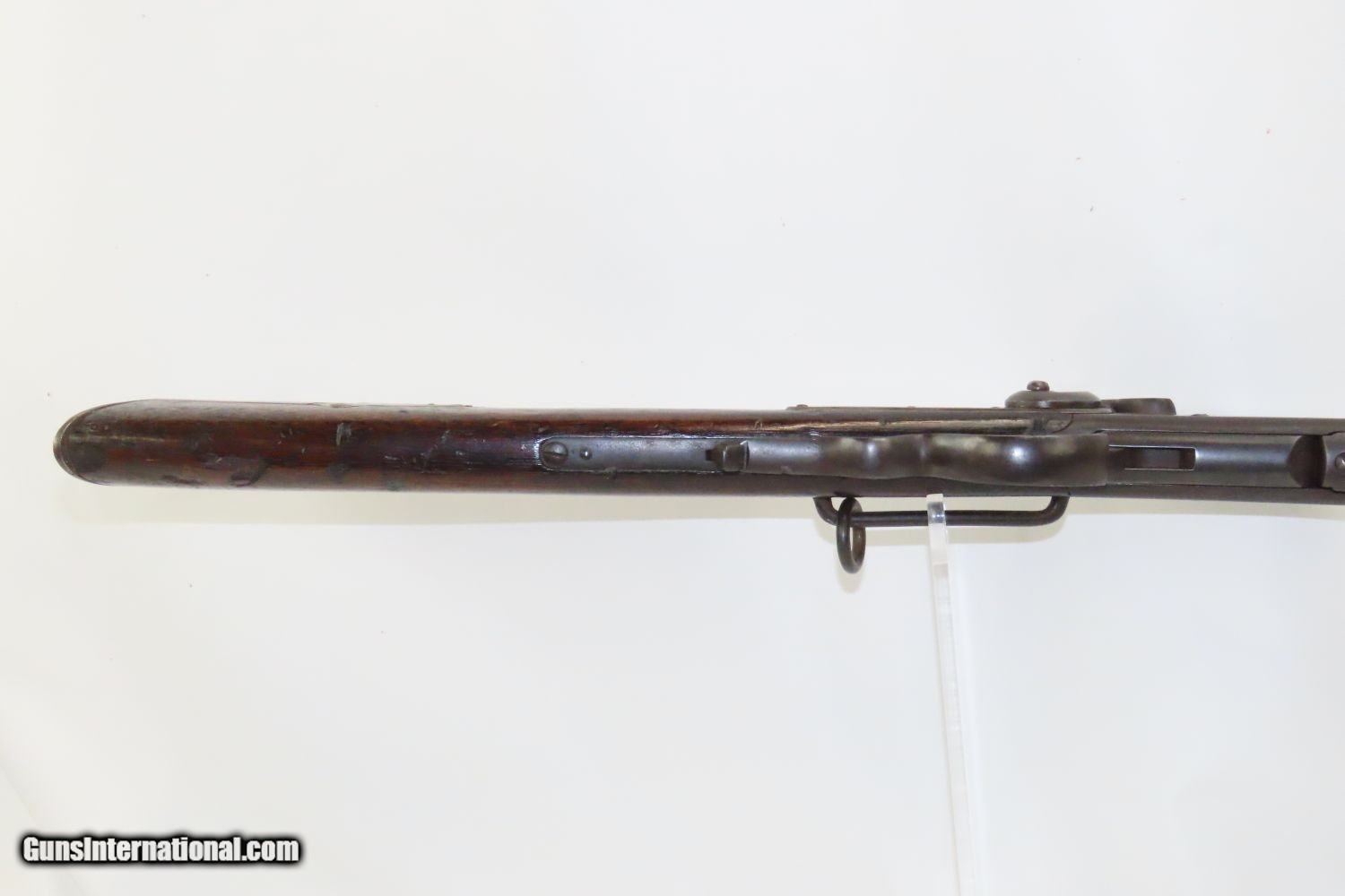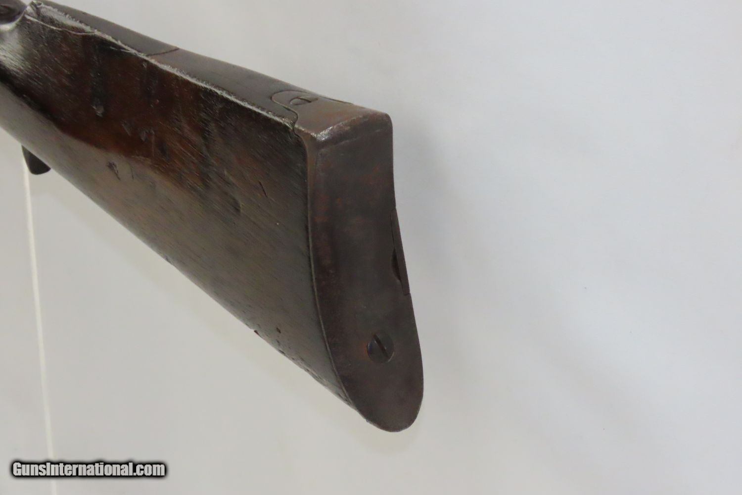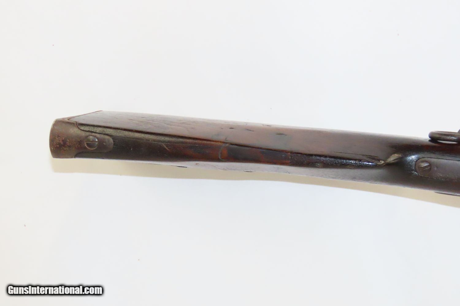 Description: CIVIL WAR CAVALRY Gallager Patent Carbine by RICHARDSON & OVERMAN .50 Cal Early Breach Loader Used in The Civil War Here we present an antique Civil War Richardson & Overman Gallager Patent Percussion Saddle Ring Carbine manufactured in the early 1860s in Philadelphia, Pennsylvania. This carbine was invented by South Carolina native Mahlon Gallager, who licensed the design to Richardson and Overman of Philadelphia for production. On August 31, 1861, the first Gallager was sold to the U.S. Army. 22,728 Gallager carbines were purchased during the Civil War and saw extensive use as a cavalry arm with the Union troops. Both percussion and metallic cartridge versions of the Gallager carbine were manufactured, but extraction problems with both cartridge types made this rifle somewhat unpopular with the troops that used it. This carbine fired an unprimed .50 caliber cartridge with a brass foil and paper-wrapped case. Ignition was provided by the percussion cap. A major fault of these carbines was the absence of a suitable extractor. The case had to be extracted with a knife or some other sharp tool. When the trigger guard lever is lowered, the barrel slides out from the frame and tips downward to receive the cartridge. This cavalry carbine was known to be used by the 2nd, 3rd, 4th and 6th Ohio, the 13th Tennessee and the 3rd West Virginia cavalries. The overall condition is very good. Even brown patina. The action is strong. Mostly bright bore with nice rifling. The stock is solid and shows much use. A great example of the Gallager! Own the original! This is a legitimate antique and not a reproduction. Barrel is 22-1/4 inches. Caliber: .50 Percussion Overall condition as seen in photos. Very Fast. Very Safe. FREE SHIPPING WORLDWIDE. Delivered directly to your door by express mail! Guaranteed AUTHENTIC & Includes CERTIFICATE OF AUTHENTICITY. ancestryguns $1945 #210053 SOLD Antique: Yes |