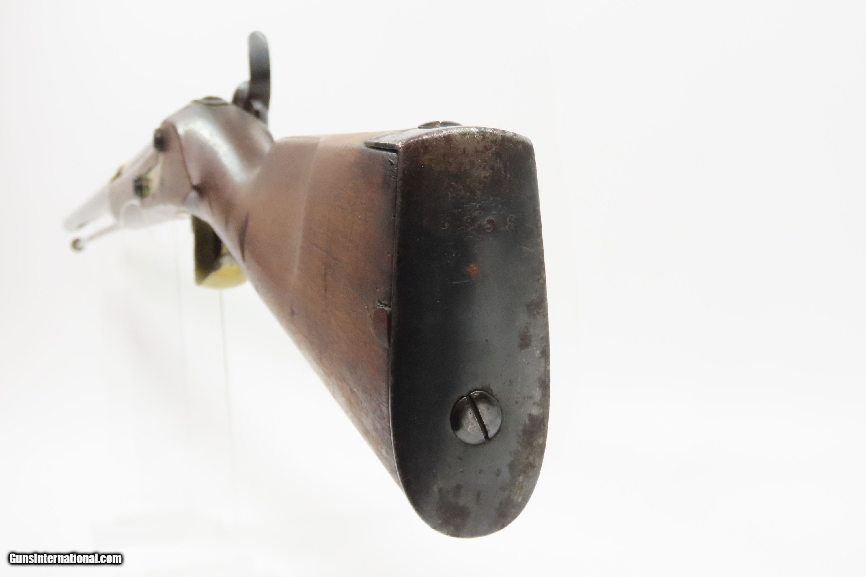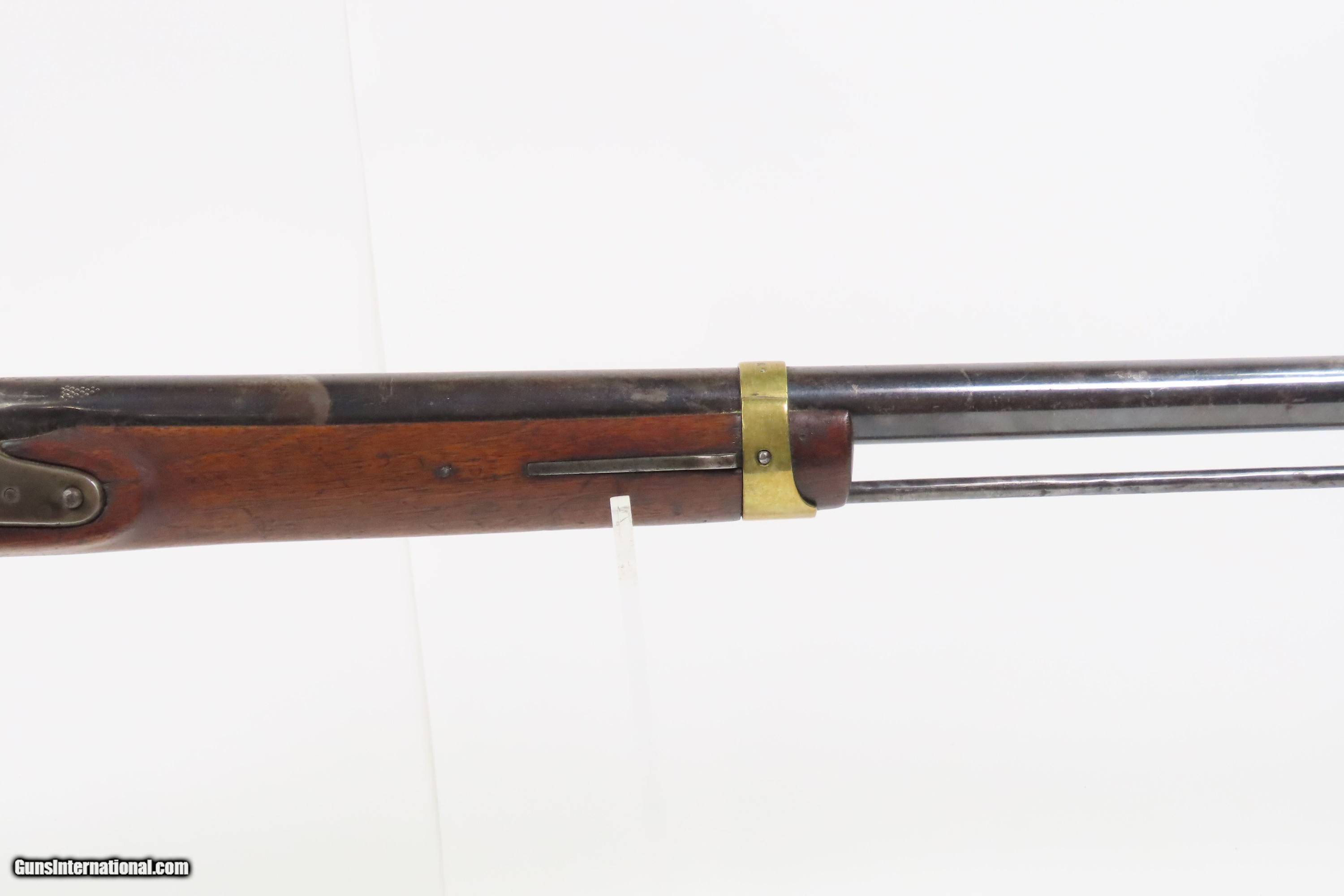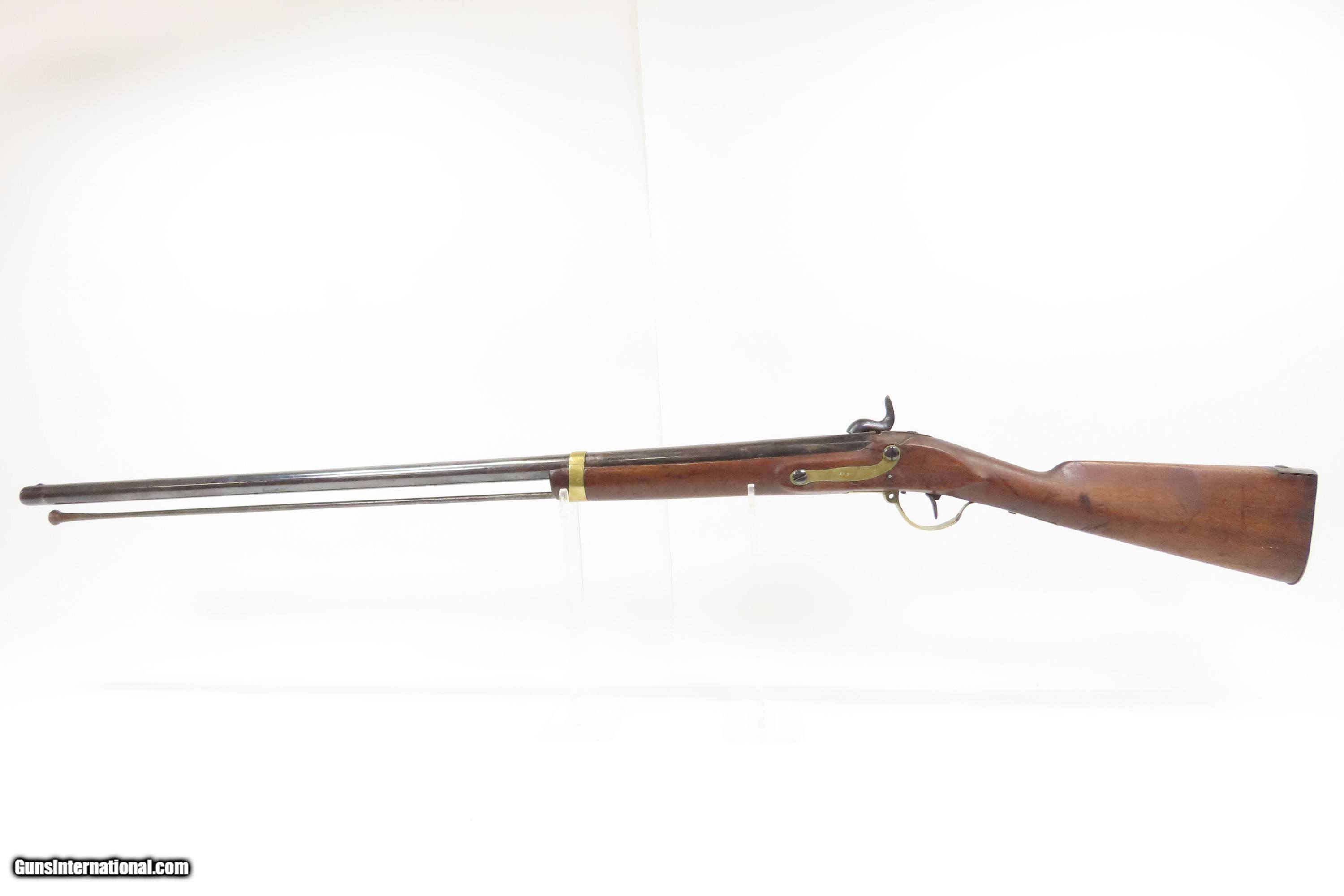 Description: CIVIL WAR Era Antique PRUSSIAN POTSDAM M1809 Percussion Conversion MUSKET State Armory PERCUSSION MUSKET Made circa the 1810s Here we present an antique Prussian Percussion Conversion Model 1809 Musket, manufactured circa the 1810s at the Prussian Armory at Potsdam. This example would have started out life as a flintlock musket that was converted likely sometime just before the start of the American Civil War. The Potsdam musket was the standard infantry weapon of the Royal Prussian Army from the 18th century until the military reforms of the 1840s. Four models were produced at Potsdam, including the Model 1723, the Model 1740, the Model 1809, and the Model 1831. This musket would have been used in Prussian conflicts during the 1840s and 50s, including the Egyptian-Ottoman War, the Greater Poland Uprising, the Revolutions of 1848, and the First Schleswig War, before being sold to the United States government as late as 1864 during the American Civil War. Though thoroughly obsolete, both the Union and the Confederacy were desperate for small arms as the South had little capability to make their own and the North had to scramble to ramp up their own production. The overall condition is very good. Some original finish traces remain. The stock is solid throughout with light grain splitting ahead of the rear lock screw. The hammer doesn’t catch. Visible cartouche on the right buttstock. Good, darkened bore. Own the original! This is a legitimate antique and not a reproduction. Barrel is 35-1/4 inches. Caliber: .71 Percussion Conversion Overall condition as seen in photos. Very Fast. Very Safe. FREE SHIPPING WORLDWIDE. Delivered directly to your door by express mail! Guaranteed AUTHENTIC & Includes CERTIFICATE OF AUTHENTICITY. ancestryguns $1150 #250550 SOLD Antique: Yes |