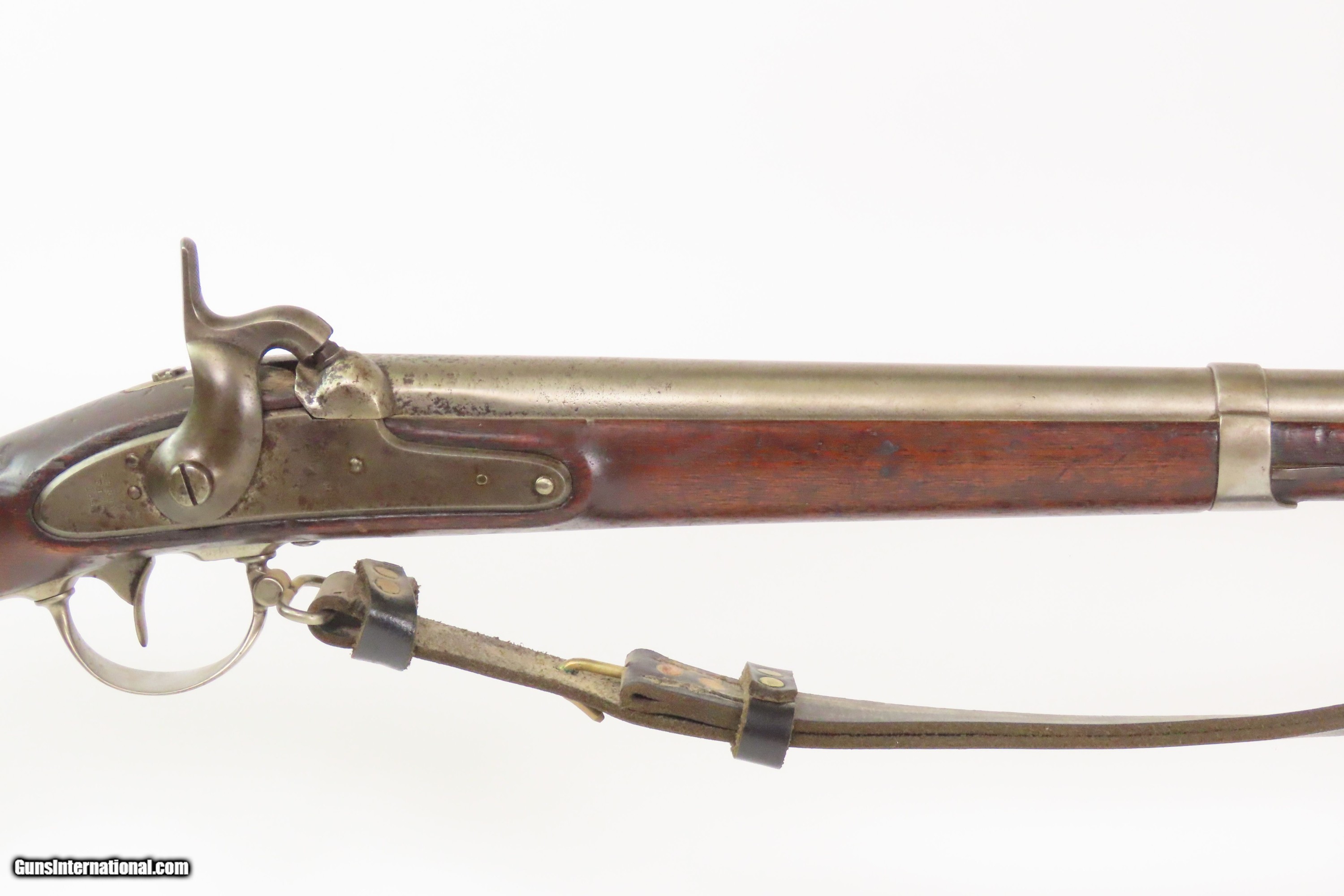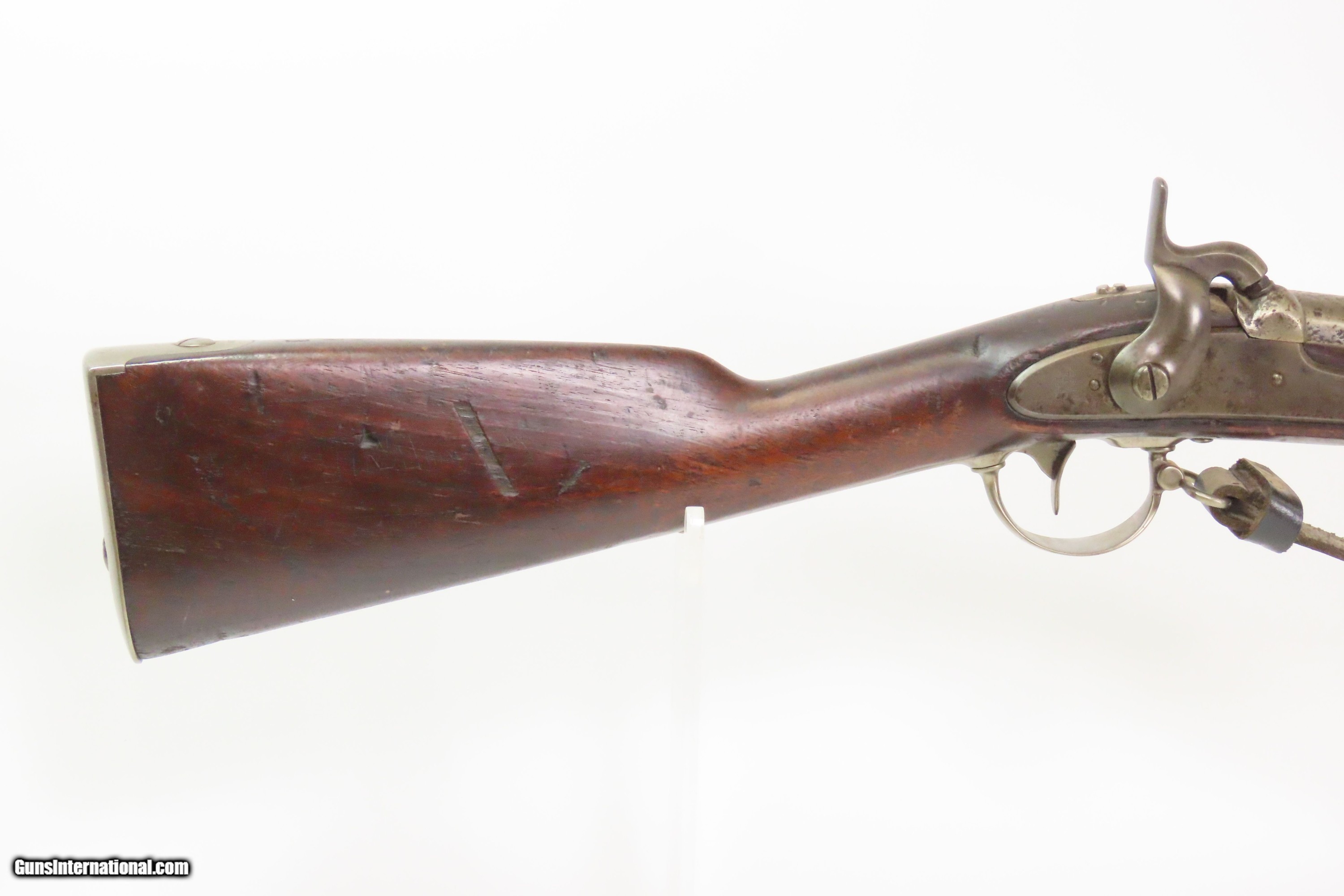 Description: CIVIL WAR Era Antique SPRINGFIELD U.S. M1842 Percussion Musket U.S. BAYONET Smoothbore Musket Used into the CIVIL WAR Here we present an antique Springfield Armory U.S. Model 1842 Percussion Musket, manufactured circa 1848 in Springfield, Massachusetts. From the period of 1844 until 1855, about 275,000 Model 1842 muskets were manufactured at the Springfield and Harpers Ferry Armories, along with some being made by private providers commissioned to assist in production. Along with usage during the Mexican-American War in 1846 through 1848, these would have been in the hands of local militia all over the antebellum United States and used by both combatants at the outbreak of the American Civil War. Sights were not included in the smoothbore’s design but arrived later as the muskets were rifled later in its life. The Model 1842 was the first regulation percussion musket to be manufactured at both Springfield and Harpers Ferry Armories, as well as the first to be produced by both national armories with fully-interchangeable parts. These were also the last .69 caliber smoothbore arms to be produced by the U.S. government. Both the original smoothbore version and the modified rifled version of the Model 1842 were used in the American Civil War. The smoothbore version was produced without sights (except for a cast one on the barrel band). When Model 1842 muskets were modified to have rifled barrels, sights were usually added at the same time as the rifling. Included is a U.S. marked socket bayonet. The overall condition is good overall. Strong action. Good bore for its age. This example sports a solid stock containing average wear. Cartouche remnants are of the left flat. “G/41” are stamped atop the comb. Both the bayonet and leather sling are good. Own the original! This is a legitimate antique and not a reproduction. Barrel is 42 inches. Caliber: .69 Percussion Overall condition as seen in photos. Very Fast. Very Safe. FREE SHIPPING WORLDWIDE. Delivered directly to your door by express mail! Guaranteed AUTHENTIC & Includes CERTIFICATE OF AUTHENTICITY. ancestryguns $2000 #247620 SOLD Antique: Yes |