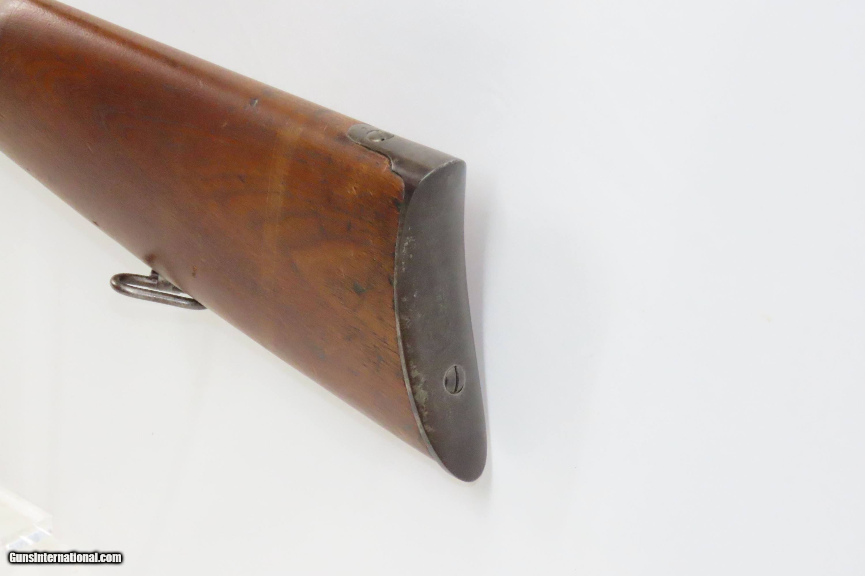 Description: CIVIL WAR/FRONTIER Antique U.S. BURNSIDE M1864 “5th Model” Percussion SRC CAVALRY Saddle Ring Carbine BREECH LOADER Here we present an antique U.S. Burnside Model 1864, also known as the Burnside 5th Model Carbine, made circa 1863 to 1865 by the Burnside Rifle Company in Providence, Rhode Island. General Ambrose Burnside was an official in the company before the war but was not involved in wartime development of the rifle. It employed a cone shaped metal cartridge for use in the percussion firing system. Though historical literature refers to a Model 1863, none are marked with this date and collectors have generally referred to this model as the 5th model. Approximately 43,000 carbines of this model were produced, with the serial numbers running from 1 through 43,000. There were 19,000 that featured the “Model 1864” stamped on the top of the breech, with later production reverting back to use the 1856 patent date. Standard features included an iron buttplate, a single iron barrel band, a saddle riding bar and ring on the left side, a strap hook on the bottom of the butt, a double hinged iron loading lever which also serves as a trigger guard, a hinged sight, and a chamber tapered for the unique Burnside metal cartridge with a priming hole in the bottom for percussion. The overall condition is good+. Some original blue finish with mostly gray patina. The action is excellent. The bore is bright with sharp rifling. Two inspector cartouches remain visible on the left of the stock. The stock shows handling and remains solid. Numbers match. Own the original! This is a legitimate antique and not a reproduction. Barrel is 21 inches. Caliber: .54 Percussion Overall condition as seen in photos. Very Fast. Very Safe. FREE SHIPPING WORLDWIDE. Delivered directly to your door by express mail! Guaranteed AUTHENTIC & Includes CERTIFICATE OF AUTHENTICITY. ancestryguns $2350 #233973 SOLD Antique: Yes |