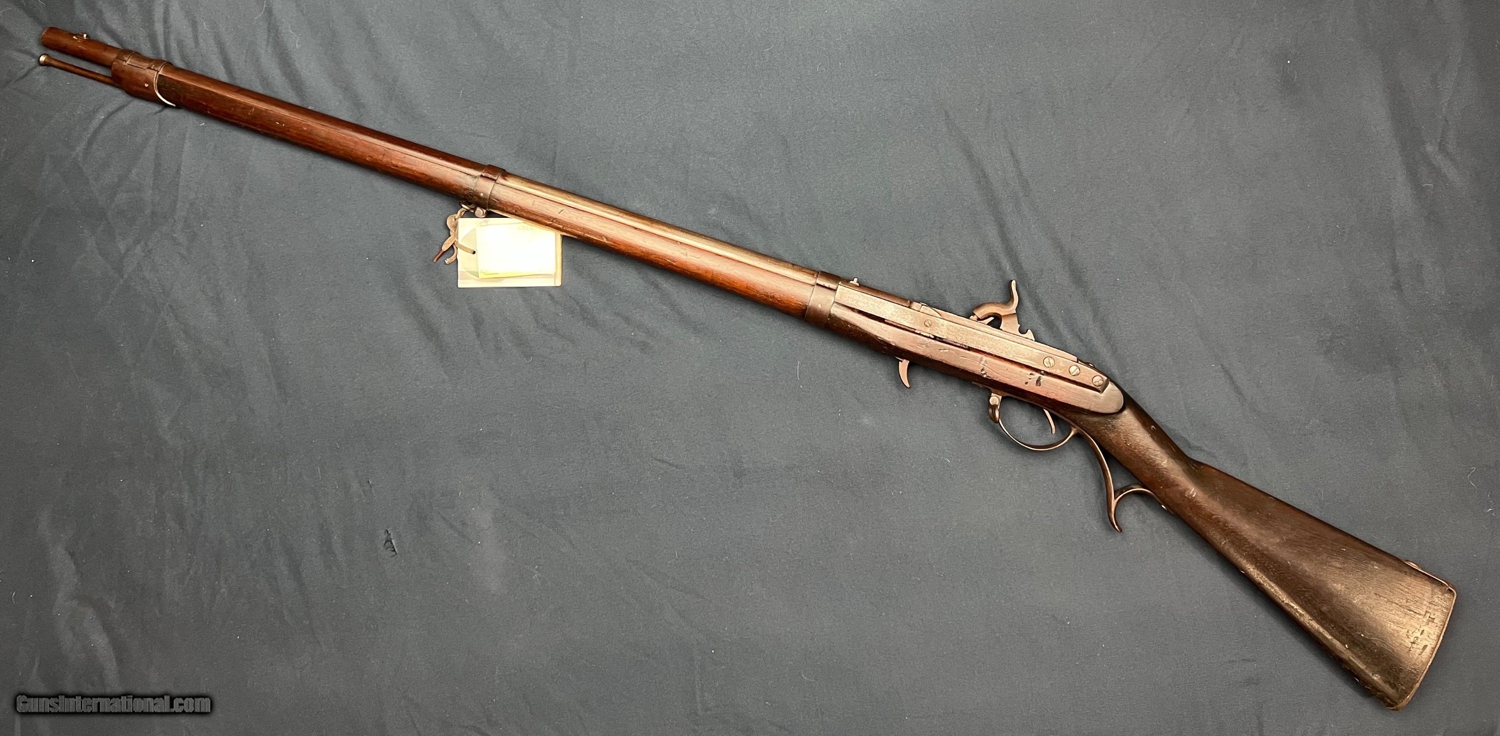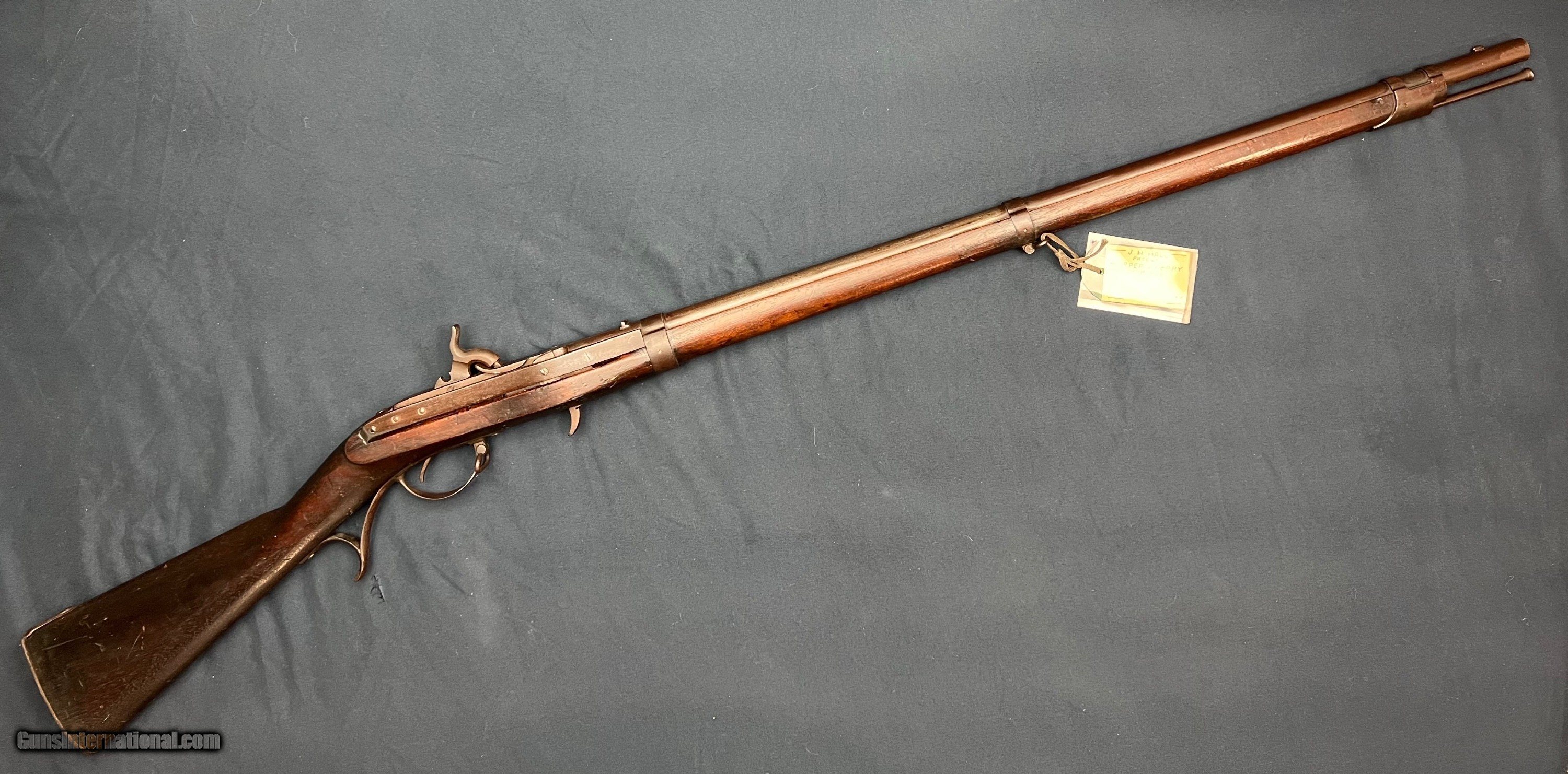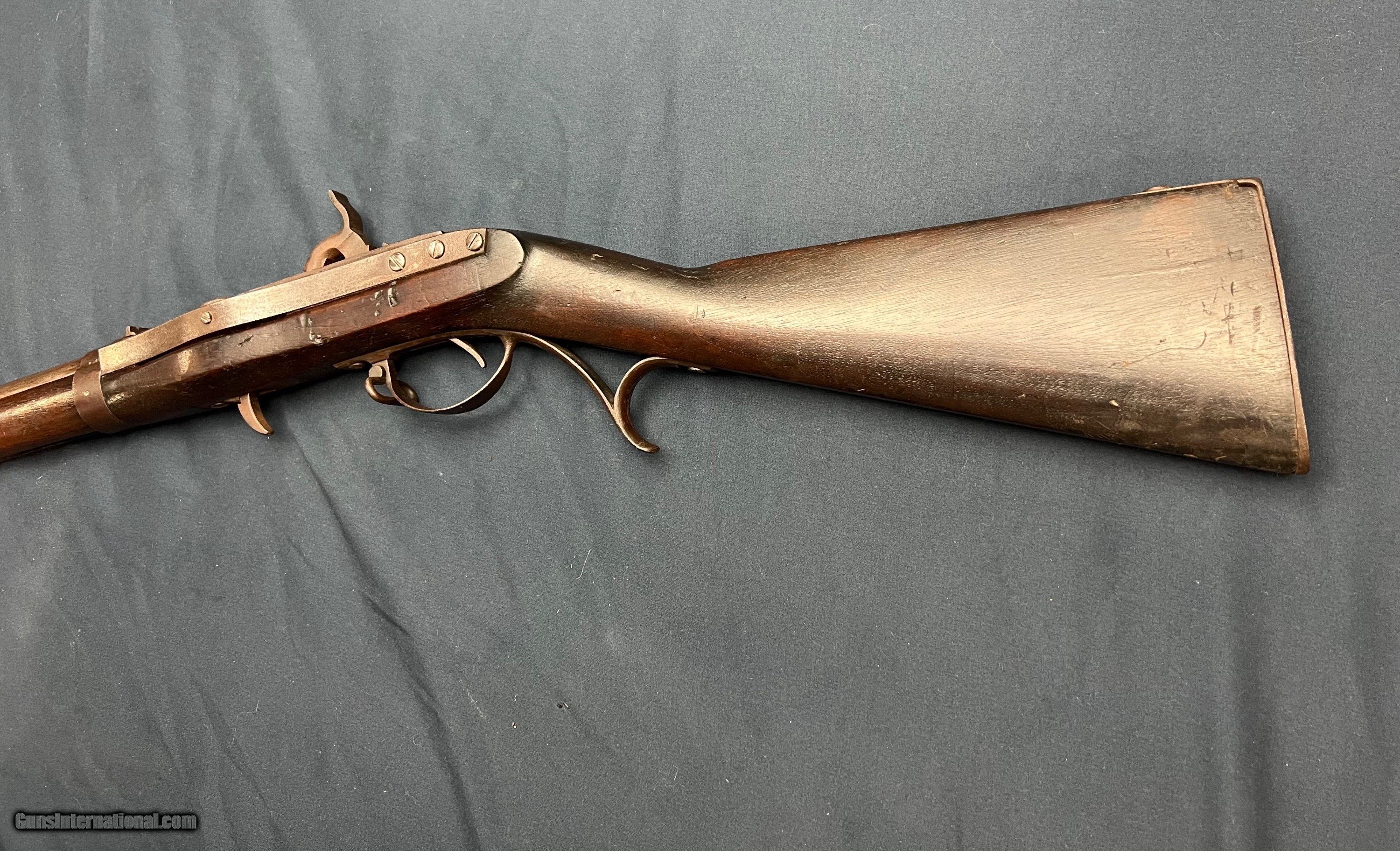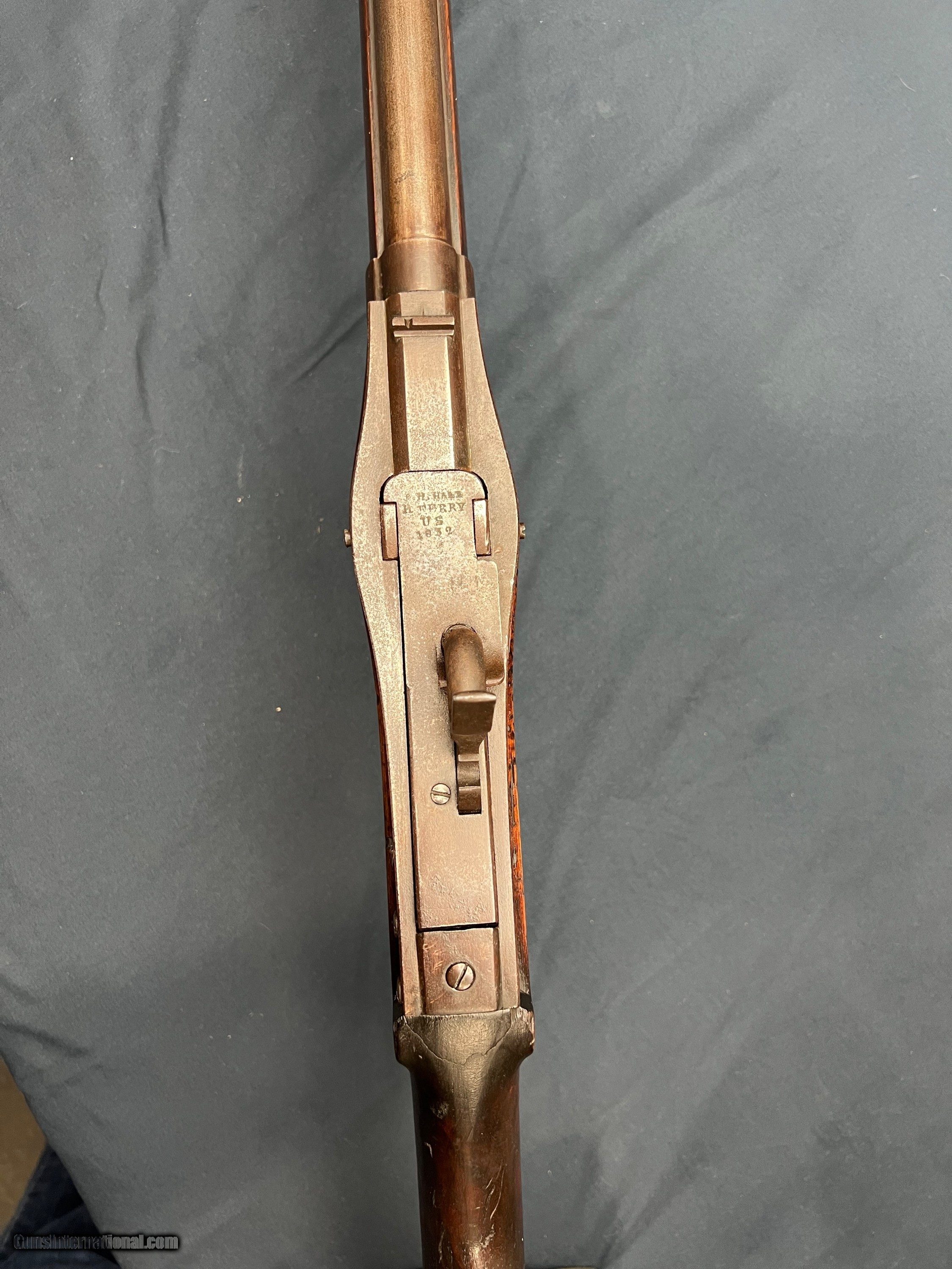 Description: Price includes shipping in the 48 states. Offered is an 1832 dated U.S. Harper's Ferry Arsenal Hall Model 1819 rifle that was converted to percussion during the beginning of the Civil War, with these conversions believed to have been done between 1861-1862. This came right out of the estate of an 80 year collection. The rifle is in good condition, with some cracks in the stock, notably on top of the wrist remaining strong and sound. The lock functions as it should with nice clicks. There is plenty of rifling down the bore, with a dark appearance, and the correct smooth section in the muzzle end. As an antique, this can ship directly to your doorstep in most states! Antique: Yes Rifle Caliber: .52 Price: $2,200.00 Pay with