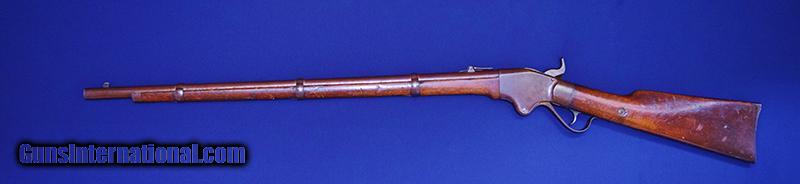 Description: Original Civil War Spencer Model 1860 Army Rifle, serial number range 33XXX puts the rifle in the 2nd contract ordered by the U.S. government during the Civil War. In original 52 Spencer with 6-groove rifled bore with original 7 shot tube fed magazine, 30” round barrel on full length walnut stock secured with 3 barrel bands, brass blade front sight & military ladder rear sight graduated to 800 yards. Crisp markings throughout with visible Spencer address & patent date on top of breech with two visible cartouches on left side of stock. Top right screw on left side of frame has been replaced with a pin & looks to be an older replacement, remaining functional. Rear sling swivel has been plugged. Very good condition with metal showing a smooth clean patina. Stock shows typical use marks throughout with many unidentified markings. Mechanically excellent with crisp action & strong bore. This rifle is one of 11,470 delivered starting in 1863-1865 making it much rarer than the carbine version also used during the conflict. Both rifles & carbines saw heavy action during the war playing a vital role in many decisive battles. The Spencer 1860’s were truly ahead of their time & continued to play an important role moving into the Indian War era. Overall a far above average Civil War icon that will make a great addition to any collection. Big Iron Firearms & Collectibles is a family owned & operated business. We are a licensed FFL Dealer & stand behind all of our listings. We try to replicate all aspects of the firearm in our photos & if you’re not completely satisfied, we will refund 100% of the purchase price during the 3 day inspection period. We Do Not Charge credit card fees, all major credit cards are accepted. We offer a 2% discount on sales price for items purchased with a money order, cashier or personal check, with item held until cleared. Will M. at 260-319-6961 SOLD Curio/Relic: Yes Antique: Yes |