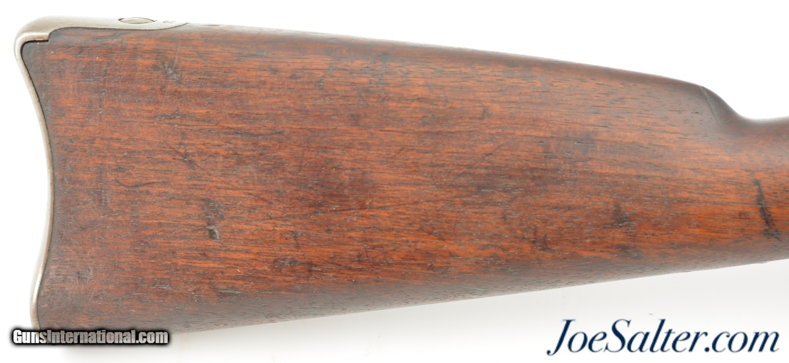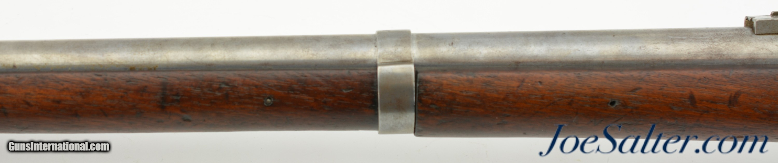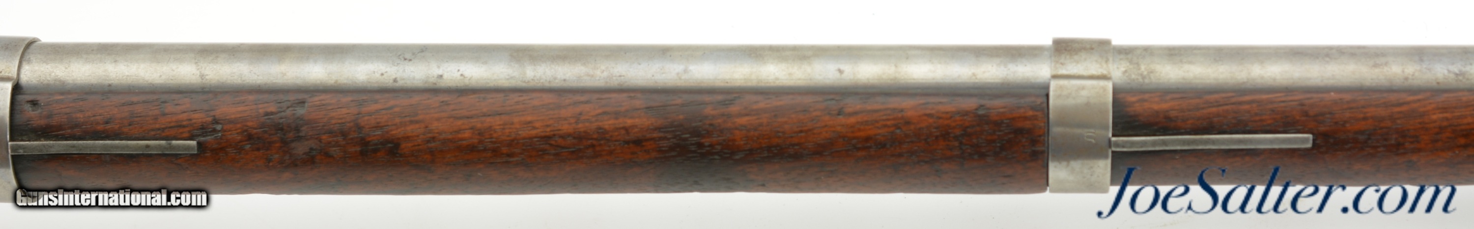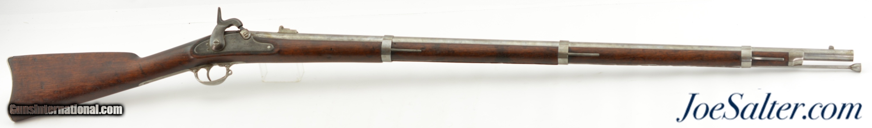 Description: NSN, .58 Caliber, 40" barrel with a very good, bright bore that has some minor freckling within the grooves. This musket has an 1861-dated, Springfield-marked lock with the metal having an overall darkly mottled patina with even pitting and mild surface oxidation throughout. The walnut stock has some small chips present along the ramrod channel, and numerous small handling marks and blemishes scattered throughout, as well as no visible inspector cartouche on the left side opposite the lock. A correct ramrod is included, but does not fully seat within the channel, and the sling swivels have been removed. The lock is still tight and functions flawlessly. This is a very nice looking Civil War-dated US musket, in very good overall condition, and would make a fine piece for display. Antique SOLD Antique: Yes |