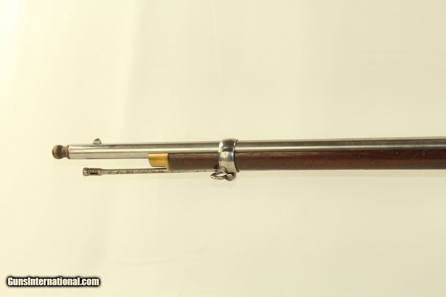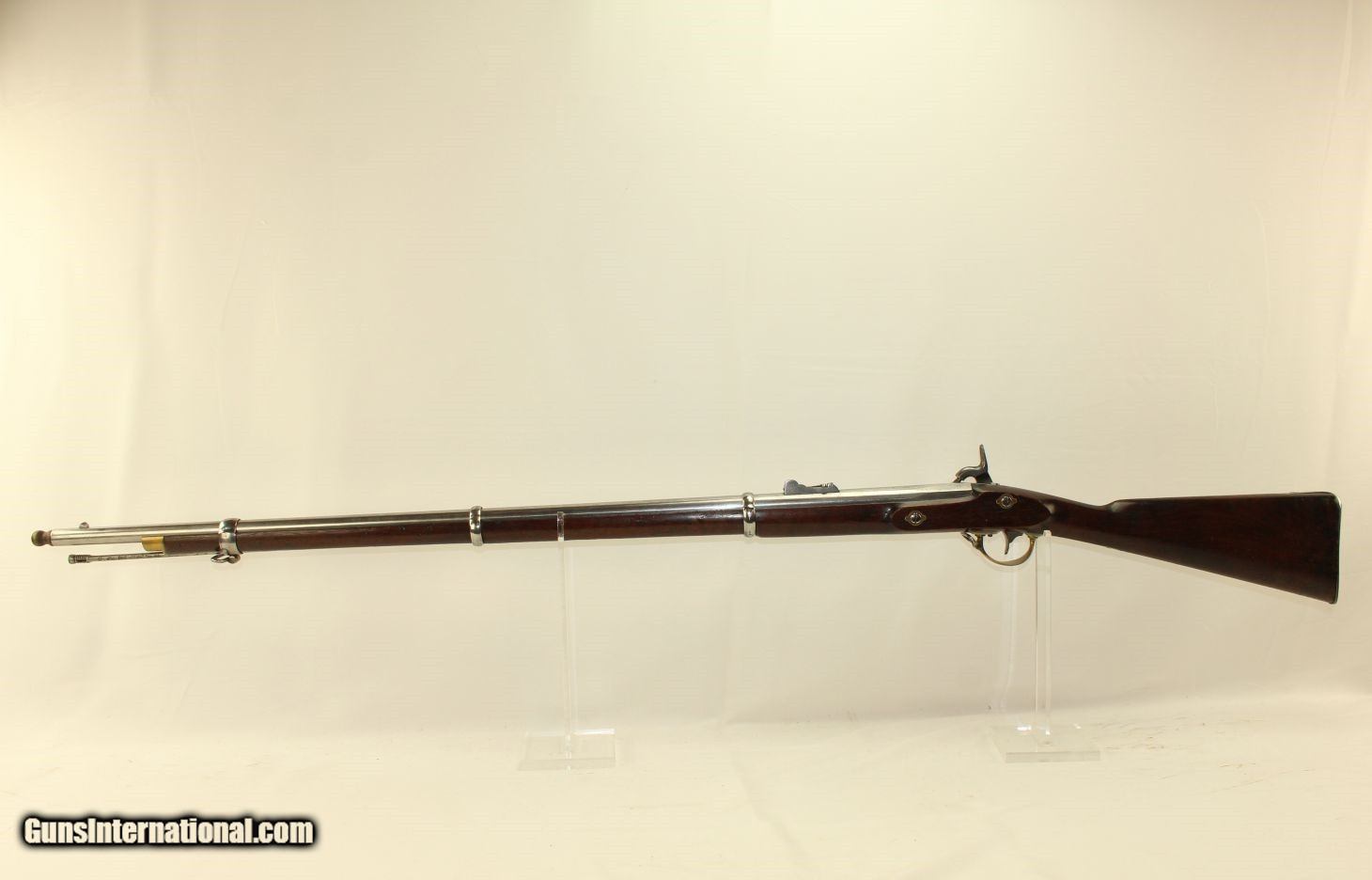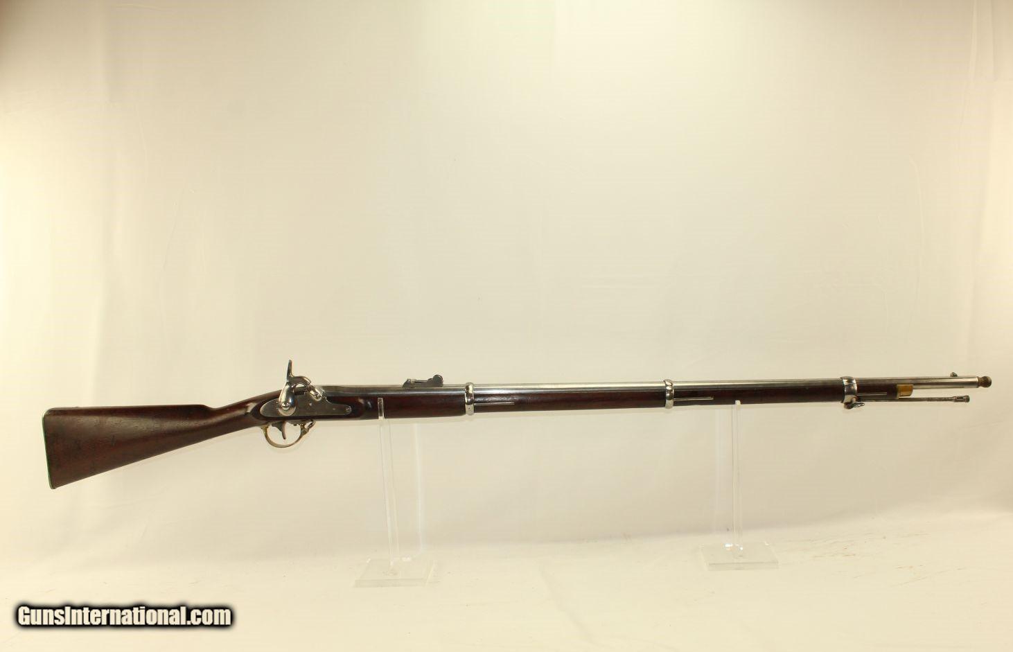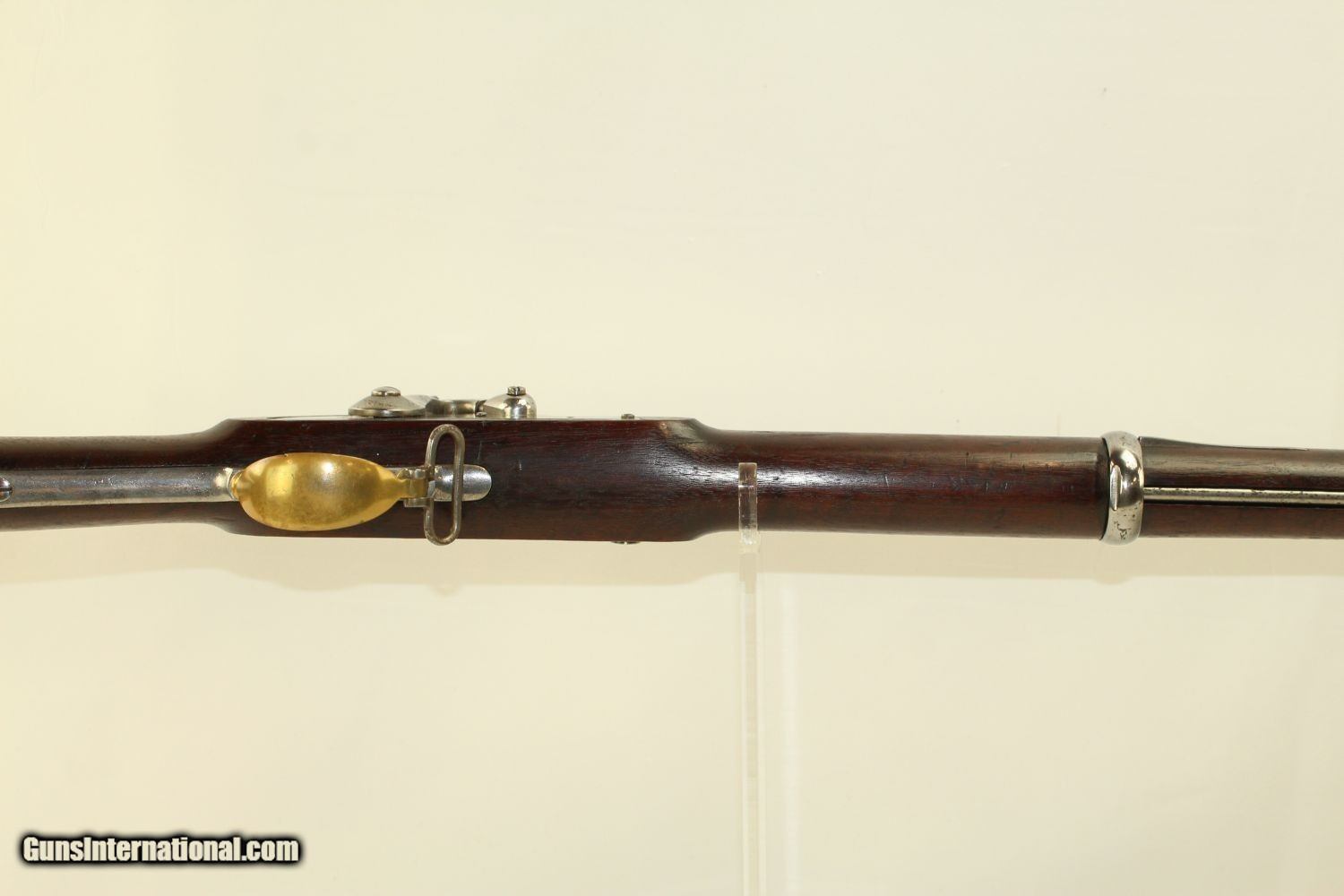 Description: Civil War WHITNEY ARMS P1853 ENFIELD Rifle-Musket 1 of 3500 Whitney Enfields Used by the NORTH and SOUTH Here we present an antique Whitney Enfield Pattern 1853 Three Band Rifle-Musket, made circa 1859-62 in New Haven, Connecticut. The P53 was the British Military Ordnance Board’s choice for adoption as the primary long arm in 1853. It was considered the apex European military gun of that time, introduced by the British War Department after several studies to improve the calibers and the dimensions of the previous models. However, it kept the same general appearance of the earlier pattern 1851. The overwhelming majority of P53 Enfield Rifles were made by commercial gun makers in Birmingham and London under contract. This gun features a ladder rear sight with a slider assembled on a base with steps and steel barrel bands. The ramrod tip is shaped with the characteristic jag slot. It is also equipped with two sling swivels. Whitney only manufactured around 3,500 of these rifle-muskets as “Good & Serviceable Arms”—sort of a line unto itself in which Whitney bought surplus parts off the market and completed the muskets in-house—with many ending up in Confederate hands as they were sold to various states before the war began. The only marking is on the lock: “E. WHITNEY”. There are no inspector markings as these were sold directly to states for their militias and “not to be subject to government inspection with gauges.” What a great and rare piece! The overall condition is Fine. The action is strong. The bore is shiny and bright with nice rifling. The steel is bright white. A scarce piece of civil war history with some shimmer to help draw eyes towards any collection! Own the original! This is a legitimate antique and not a reproduction. Barrel is 40 inches. Caliber: .58 Percussion Overall condition as seen in photos. Very Fast. Very Safe. FREE SHIPPING WORLDWIDE. Delivered directly to your door by express mail! Guaranteed AUTHENTIC & Includes CERTIFICATE OF AUTHENTICITY. ancestryguns $4300 #190959 SOLD Antique: Yes |