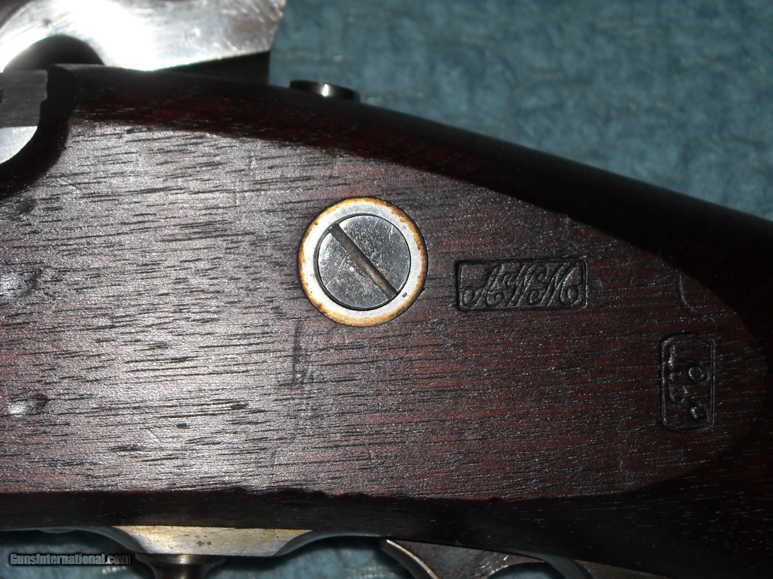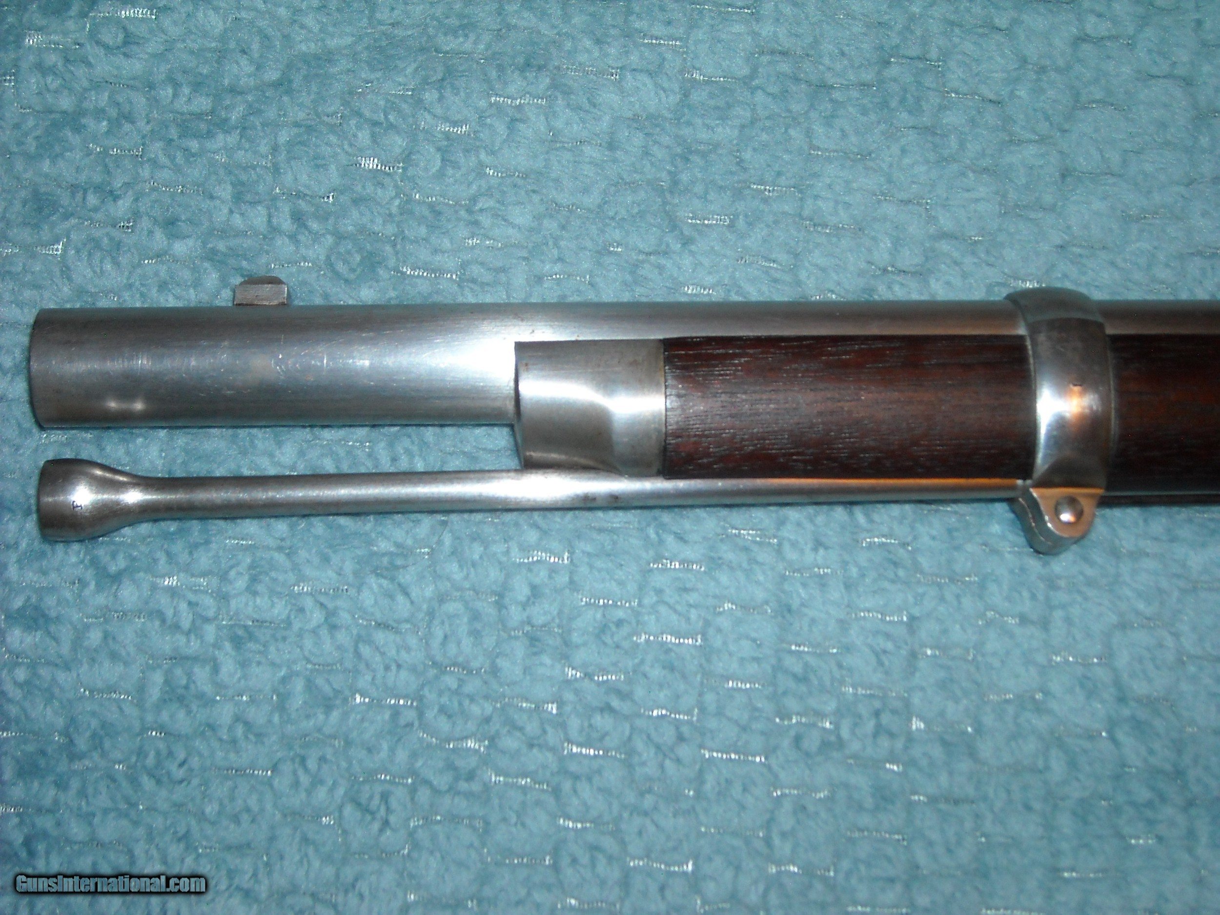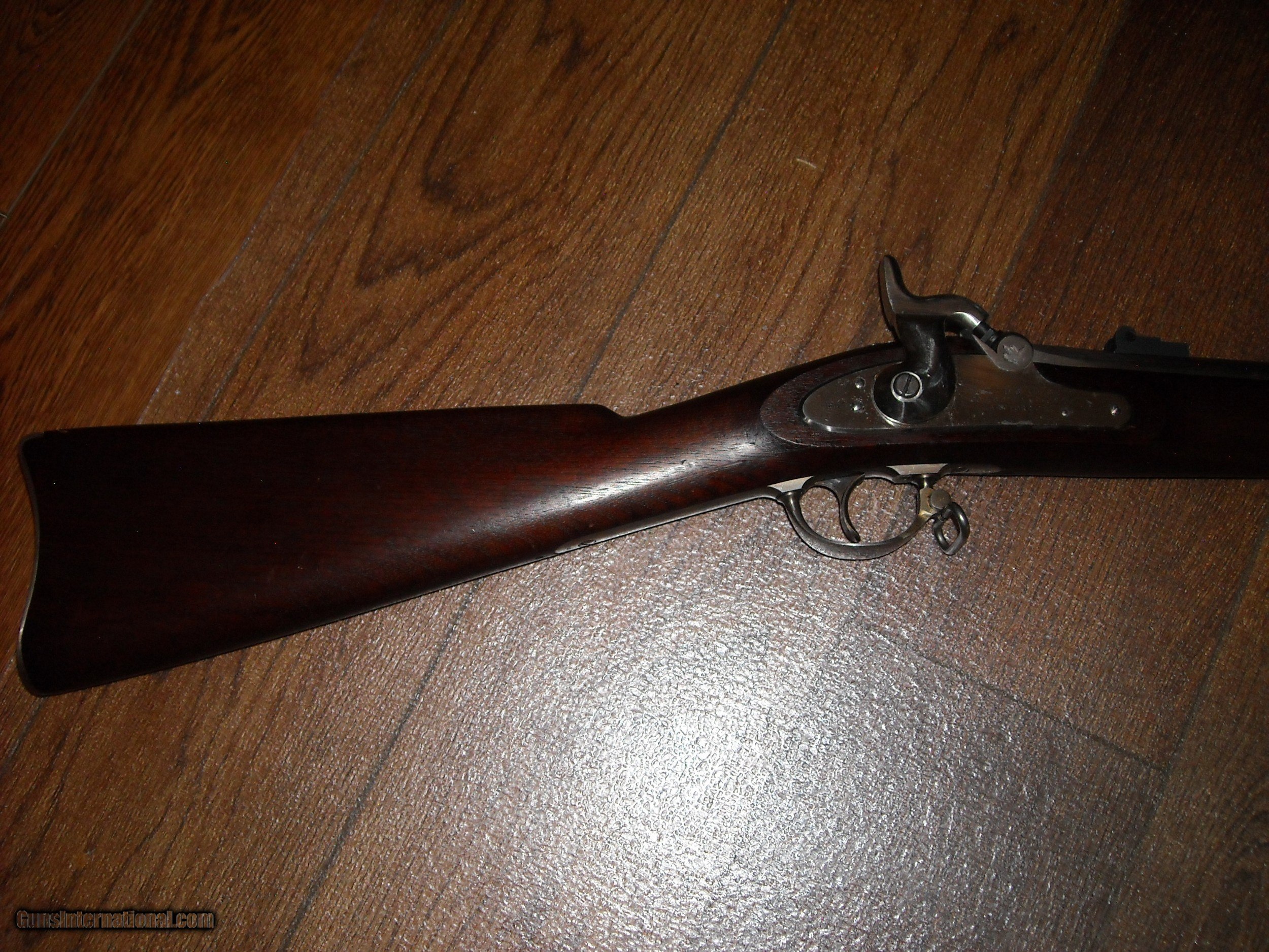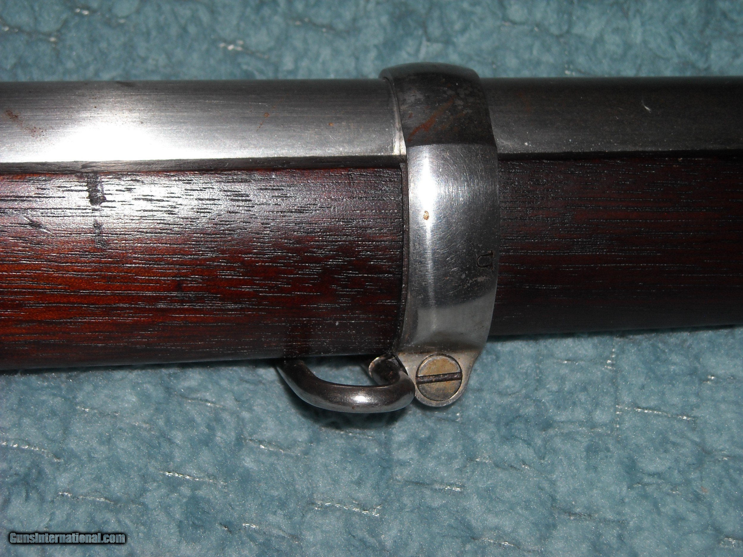 Description: This is an unissued and unfired Colt Model 1861 "Special" Model Civil War musket dated 1864 on both lock and barrel. The gun is in excellent plus condition showing no signs of field use. The metal parts are all very clean smooth as issued bright steel with the lock and hammer having the factory high gloss polished finish. All markings are sharp and crisp including two deep ifederal nspection cartouches on the left stock plane. All screws are original and none buggered, All parts are original to the musket including ramrod, sling swivels and sights. The rifled .58 caliber bore is like new, deep clean crisp rifling its entire length. Barrel date and proof stamps are perfect. Nipple and rear sight retain their original blued finish. The walnut stock is excellent with crisp sharp edges, no chips, slivers or cracks save for a few minor storage nicks and retains all of its original factory oiled finish and has not been sanded or refinished. This is an exceptional Colt manufactured Civil War longarm that would be hard to improve on condition. Minty unissued Civil War longarms are getting much harder to find so here is your chance to add this fine example to your collection. SOLD Antique: Yes |