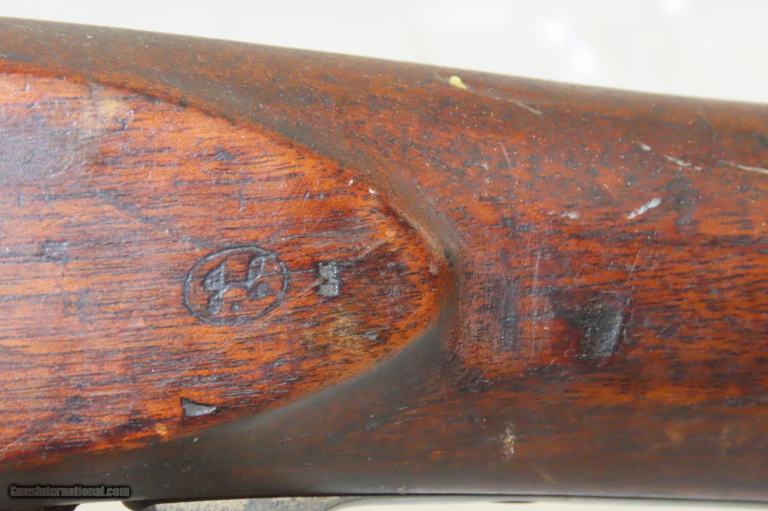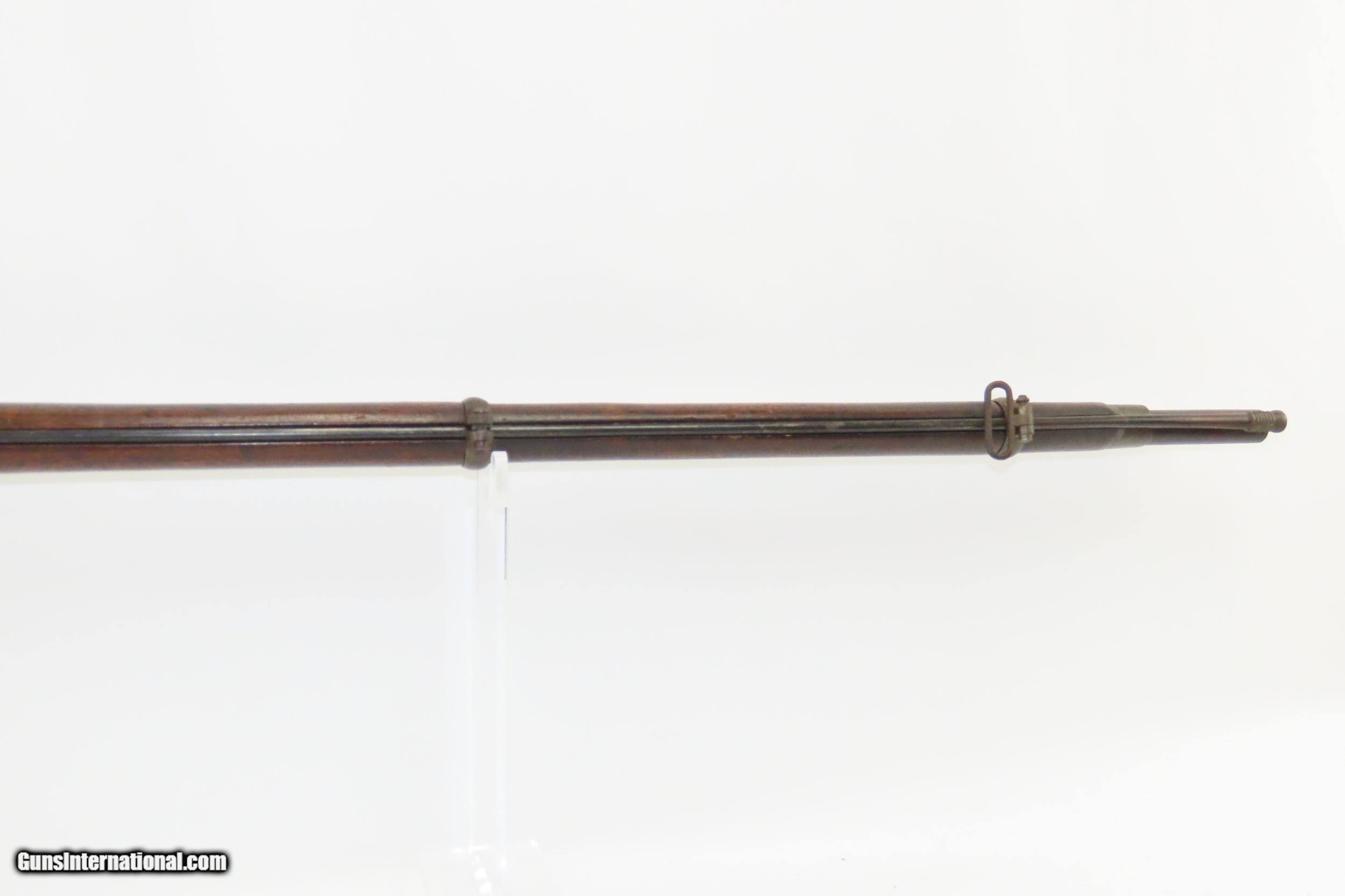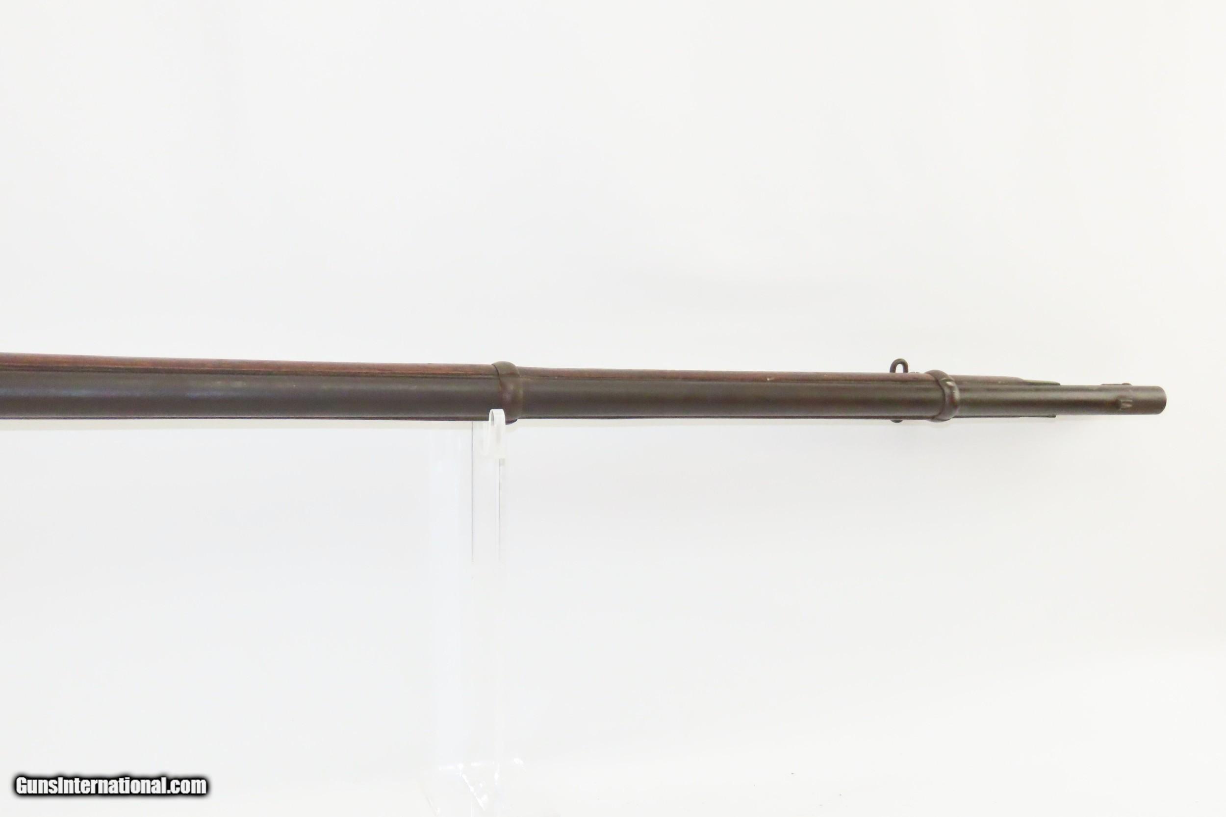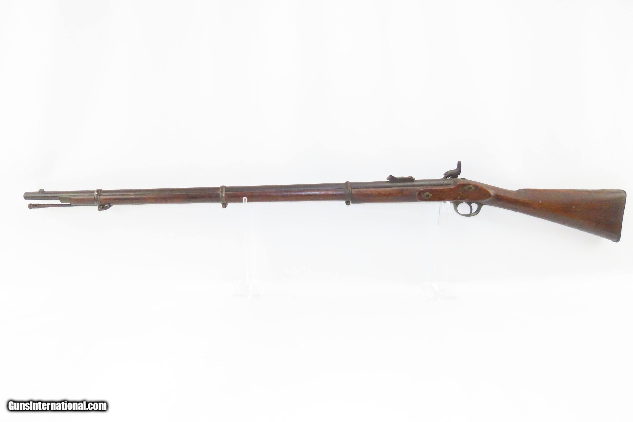 Description: CONFEDERATE Antique MOORE & HARRIS Marked ENFIELD Pattern 1853 Rifle-Musket Dated 1862 with “JC” Inspection Stamp and “SHG” Mark Here we present an antique Confederate Commercial Pattern 1853 Enfield Percussion Rifle-Musket, made by Moore & Harris in Birmingham, England, in 1862, with Sinclair, Hamilton & Company Marking. The P-1853 was Britain’s adopted rifle from 1853 until the Snider system was adopted to transform arms into breech-loaders. In addition to its use around the world with the British military, this was one of the most popular arms for the infantry during the American Civil War. This was a commercially produced musket that was marked “TOWER” and the date of manufacture: “1862”. There are the commercial (non-British military) Birmingham proof markings on the left side of the barrel. The repeating number “25” is how the barrel gauged. This rifled musket is marked “MOORE & HARRIS” along the bottom of the buttstock. The top of the comb is marked “SH/G3” under a crown, just ahead of the buttplate tang. This is the mark of Sinclair, Hamilton & Company who exported such muskets to the Confederacy during the American Civil War. The left stock flat bears the inspection mark “JC” within an oval, with a small two-character mark stamped behind it. “R+B” is marked at the breech of the barrel near the proofs. The interior of the ramrod channel have the names “WINFIELD” and “HODGETT” stamped inside. The Confederates imported more Enfields during the course of the war than any other small arm, buying from private contractors and gun runners. It has been estimated that over 900,000 P53 Enfields were imported into America and saw service in every major engagement of the war. Regarding the maker of this particular musket, William Moore began his own business in 1808 and did work making stocks for the famous Joseph Manton until about 1820. In 1836 he was made “Gunmaker-in-Ordinary” to King William IV of England. This meant that he was placed in a higher category than many of his peers and a chosen maker for the king. He began a partnership with William Harris in 1838 and began exporting their firearms to the United States around this time. The overall condition is very good, especially for a Confederate used weapon. There is a nice brown patina throughout. The action is strong. The bore is well-rifled. The stock is solid and remains in good condition. There are signs of usage throughout and a small sliver on the left stock flat near the barrel. This is a stunning piece of history that is a study in markings and may yet reveal more information! Own the original! This is a legitimate antique and not a reproduction. Barrel is 39 inches. Caliber: .577 Overall condition as seen in photos. Very Fast. Very Safe. FREE SHIPPING WORLDWIDE. Delivered directly to your door by express mail! Guaranteed AUTHENTIC & Includes CERTIFICATE OF AUTHENTICITY. ancestryguns $3995 #20145 SOLD Antique: Yes |