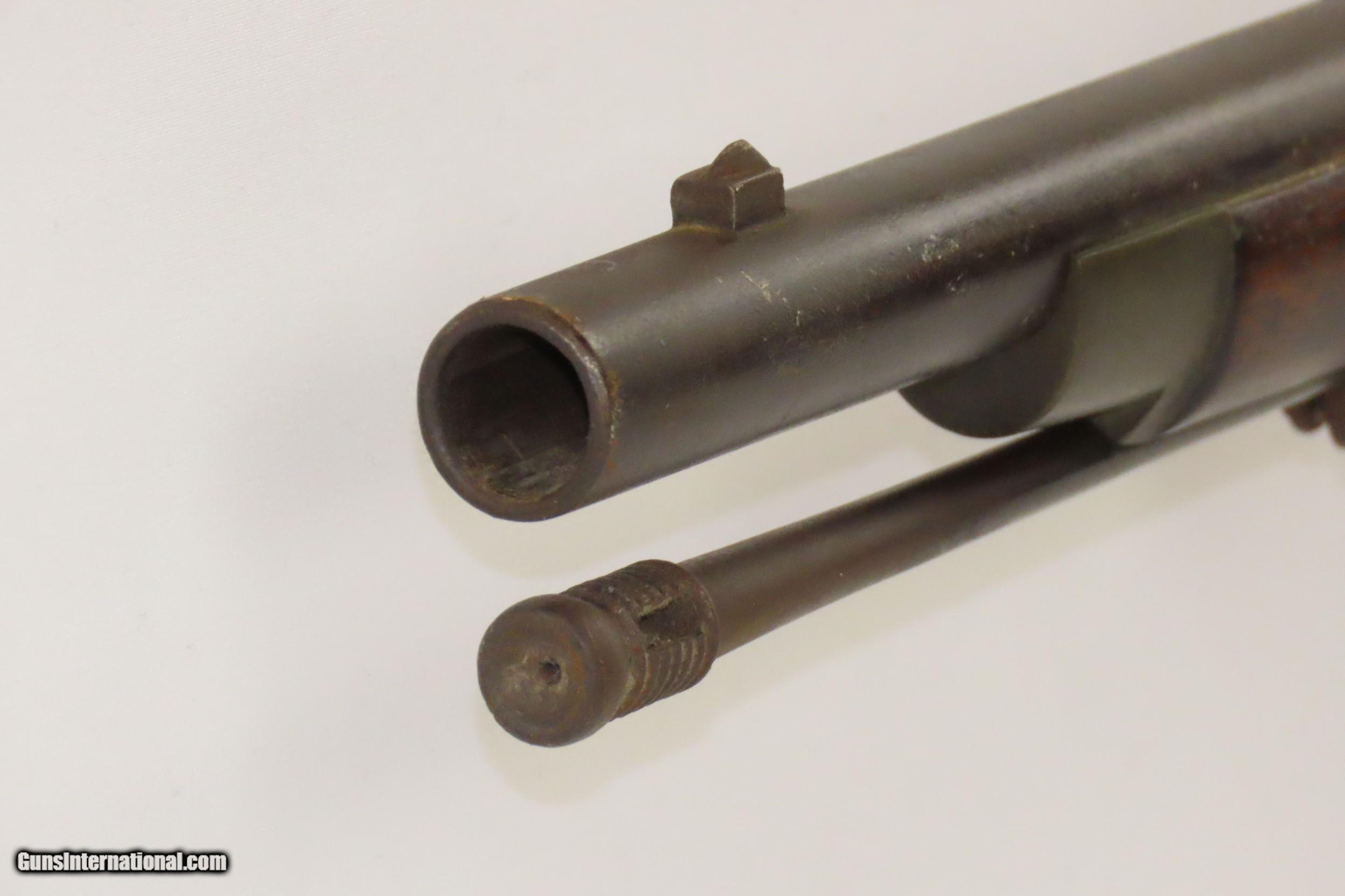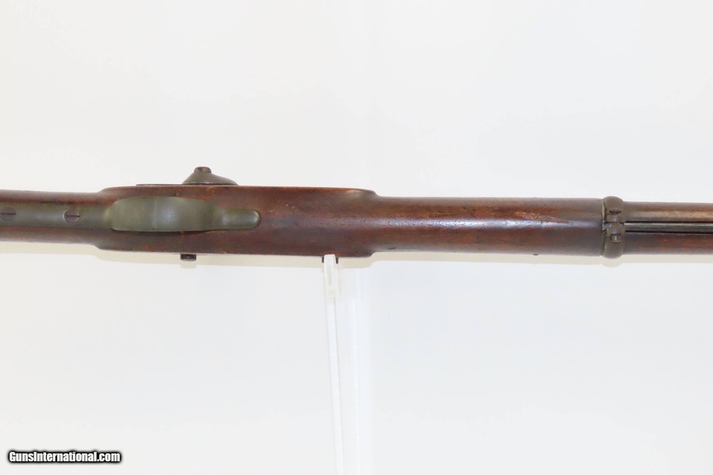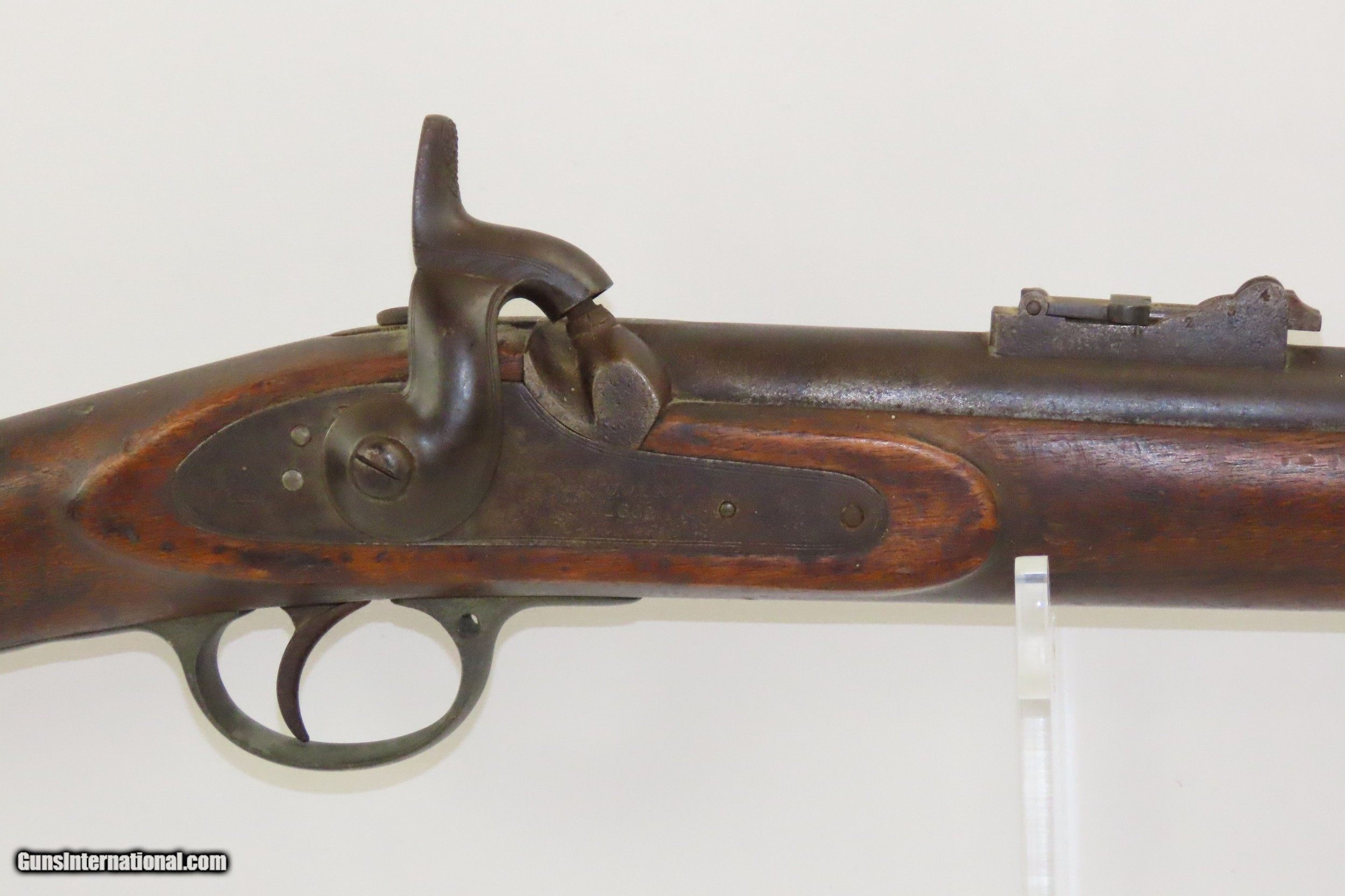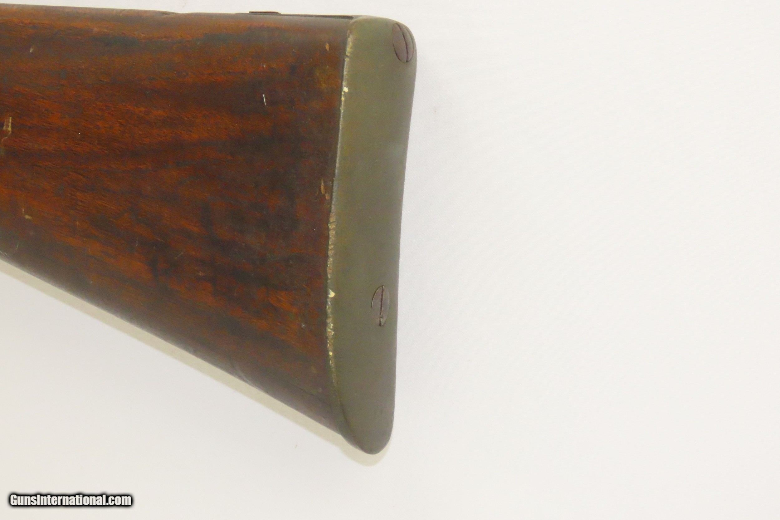 Description: CONFEDERATE Antique MOORE & HARRIS Marked ENFIELD Pattern 1853 Rifle-Musket Dated 1862 with “JC” Inspection Stamp and “SHG” Mark Here we present an antique Confederate Commercial Pattern 1853 Enfield Percussion Rifle-Musket, made by Moore & Harris in Birmingham, England, in 1862, with Sinclair, Hamilton & Company Marking. The P-1853 was Britain’s adopted rifle from 1853 until the Snider system was adopted to transform arms into breech-loaders. In addition to its use around the world with the British military, this was one of the most popular arms for the infantry during the American Civil War. This was a commercially produced musket that was marked “TOWER” and the date of manufacture: “1862”. There are the commercial (non-British military) Birmingham proof markings on the left side of the barrel. The repeating number “25” is how the barrel gauged. This rifled musket is marked “MOORE & HARRIS” along the bottom of the buttstock. The top of the comb is marked “SH/G3” under a crown, just ahead of the buttplate tang. This is the mark of Sinclair, Hamilton & Company who exported such muskets to the Confederacy during the American Civil War. The left stock flat bears the inspection mark “JC” within an oval, with a small two-character mark stamped behind it. “R+B” is marked at the breech of the barrel near the proofs. The interior of the ramrod channel have the names “WINFIELD” and “HODGETT” stamped inside. The Confederates imported more Enfields during the course of the war than any other small arm, buying from private contractors and gun runners. It has been estimated that over 900,000 P53 Enfields were imported into America and saw service in every major engagement of the war. Regarding the maker of this particular musket, William Moore began his own business in 1808 and did work making stocks for the famous Joseph Manton until about 1820. In 1836 he was made “Gunmaker-in-Ordinary” to King William IV of England. This meant that he was placed in a higher category than many of his peers and a chosen maker for the king. He began a partnership with William Harris in 1838 and began exporting their firearms to the United States around this time. The overall condition is very good, especially for a Confederate used weapon. There is a nice brown patina throughout. The action is strong. The bore is well-rifled. The stock is solid and remains in good condition. There are signs of usage throughout and a small sliver on the left stock flat near the barrel. This is a stunning piece of history that is a study in markings and may yet reveal more information! Own the original! This is a legitimate antique and not a reproduction. Barrel is 39 inches. Caliber: .577 Overall condition as seen in photos. Very Fast. Very Safe. FREE SHIPPING WORLDWIDE. Delivered directly to your door by express mail! Guaranteed AUTHENTIC & Includes CERTIFICATE OF AUTHENTICITY. ancestryguns $3995 #20145 SOLD Antique: Yes |