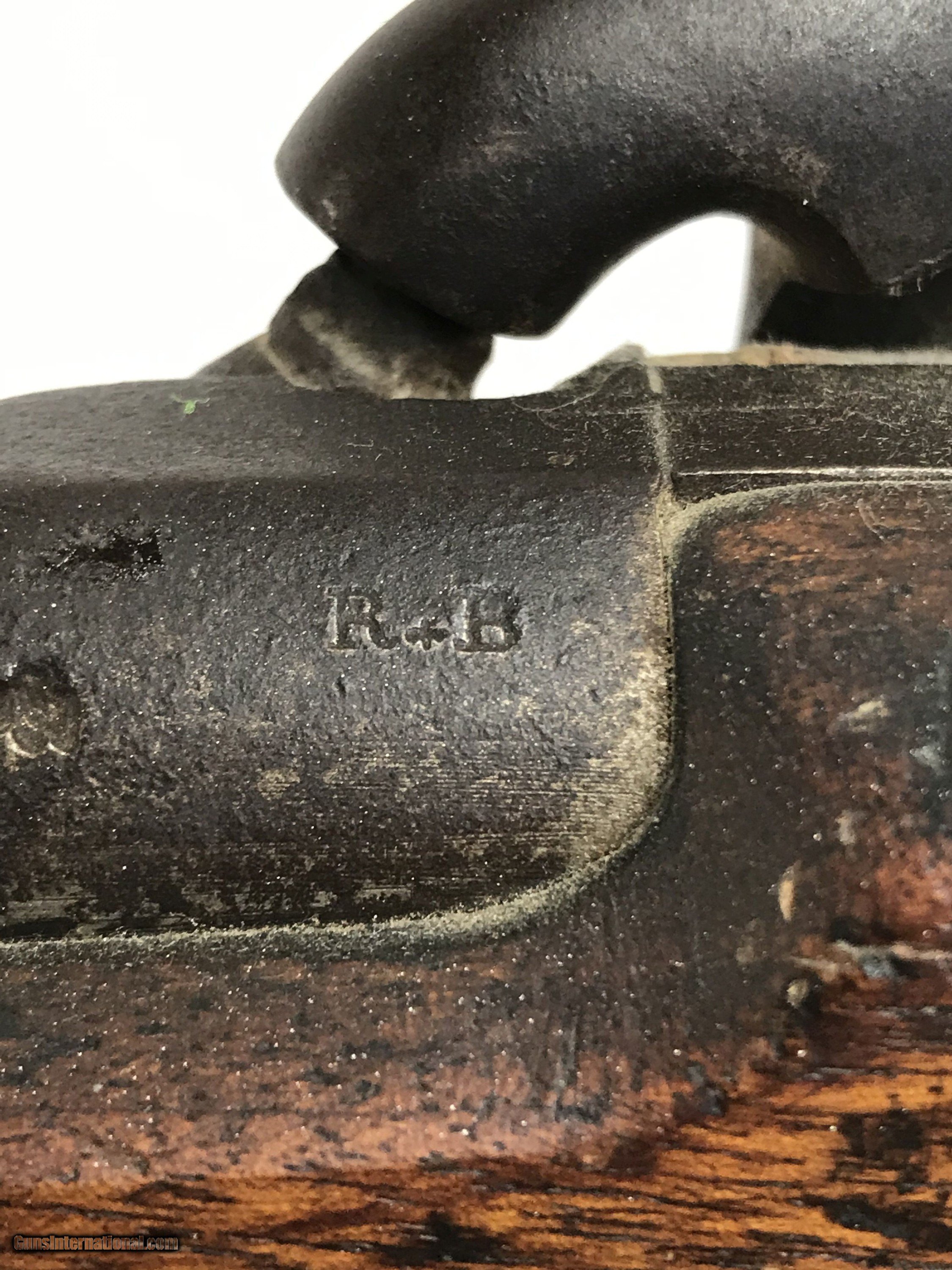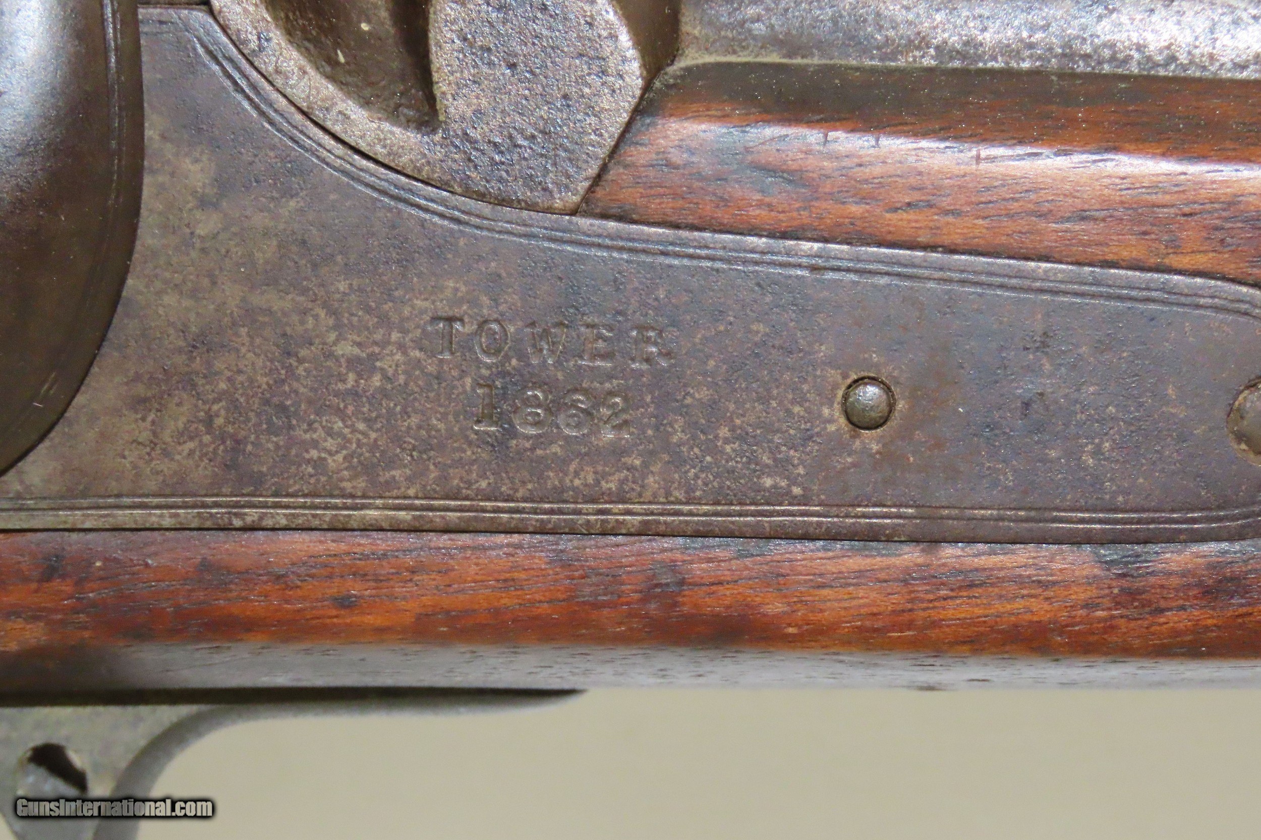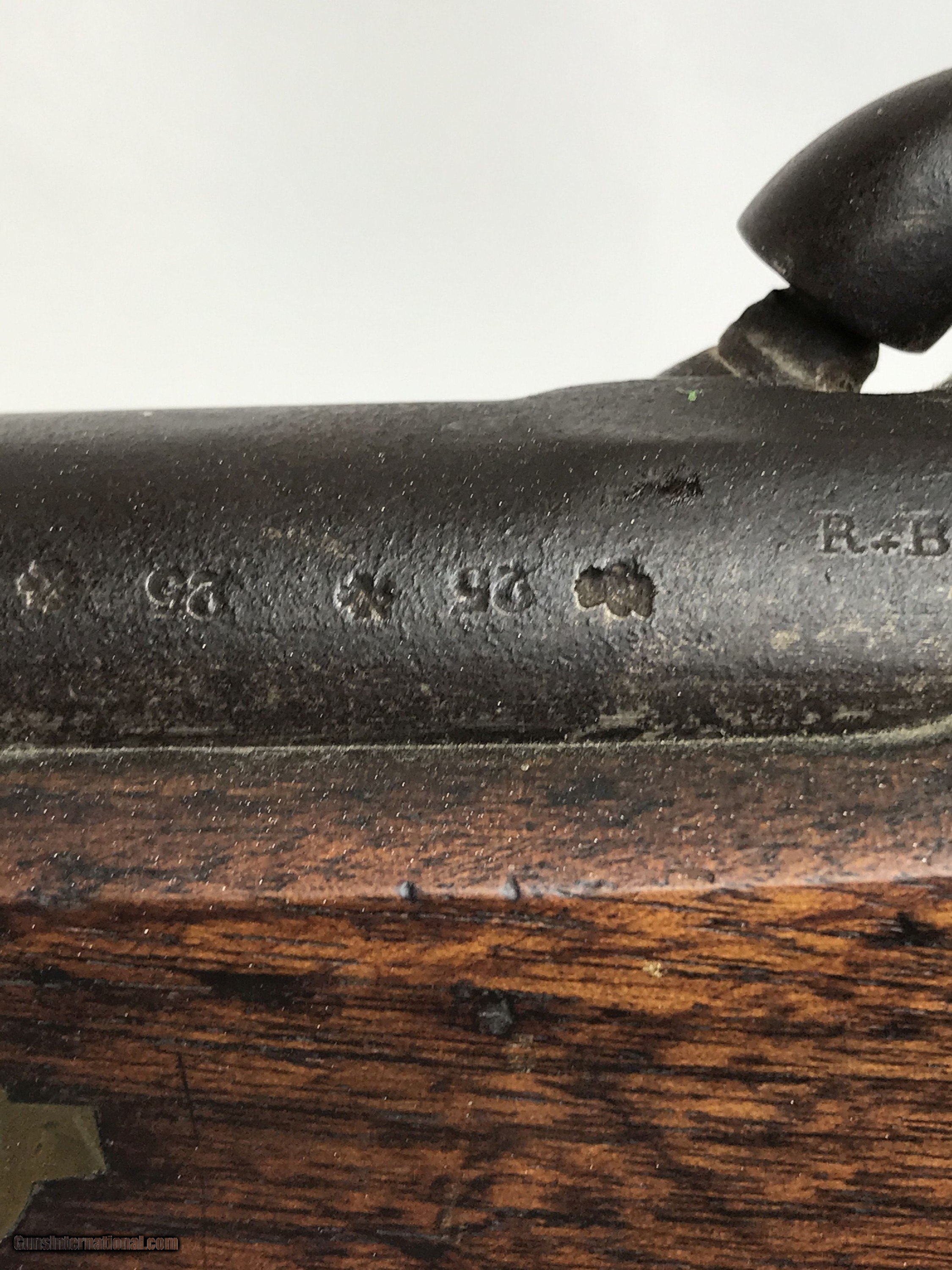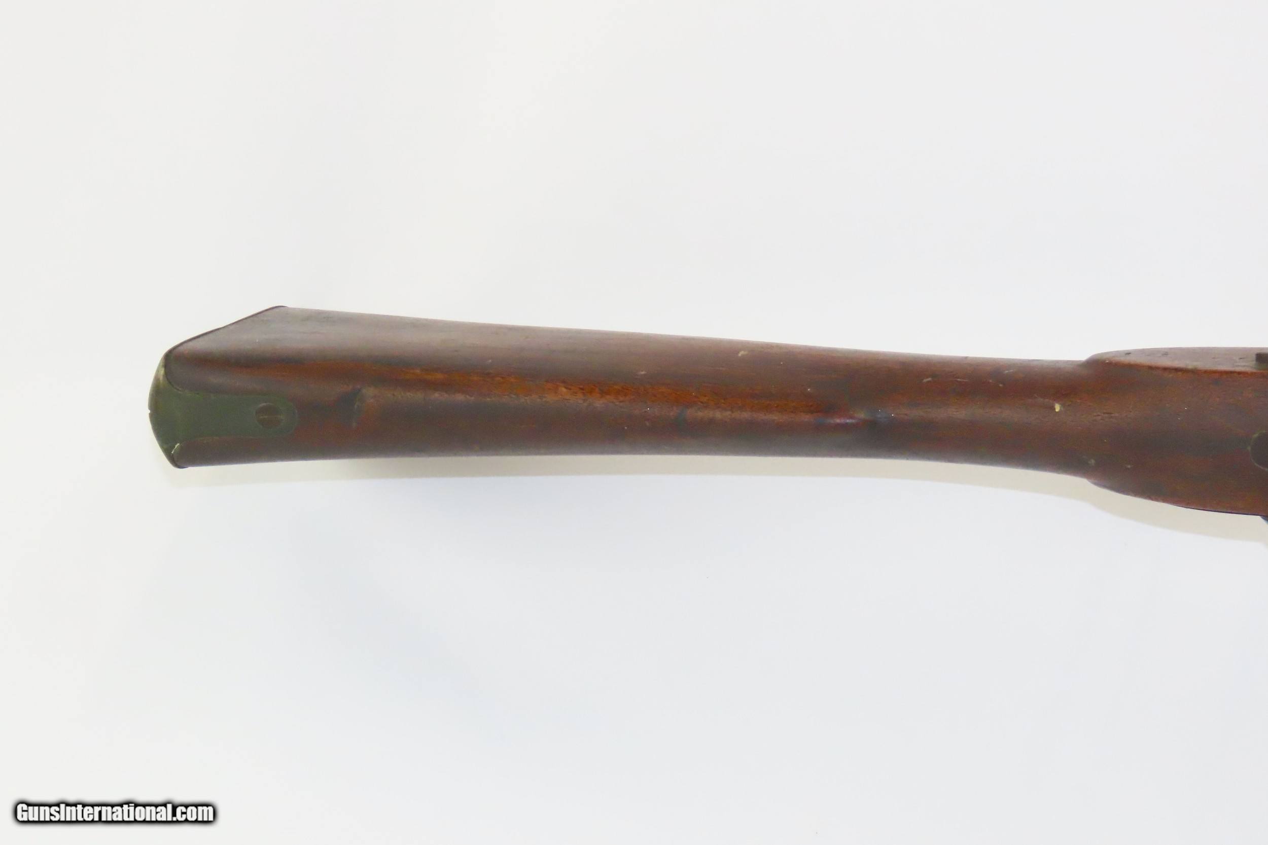 Description: CONFEDERATE Antique MOORE & HARRIS Marked ENFIELD Pattern 1853 Rifle-Musket Dated 1862 with “JC” Inspection Stamp and “SHG” Mark Here we present an antique Confederate Commercial Pattern 1853 Enfield Percussion Rifle-Musket, made by Moore & Harris in Birmingham, England, in 1862, with Sinclair, Hamilton & Company Marking. The P-1853 was Britain’s adopted rifle from 1853 until the Snider system was adopted to transform arms into breech-loaders. In addition to its use around the world with the British military, this was one of the most popular arms for the infantry during the American Civil War. This was a commercially produced musket that was marked “TOWER” and the date of manufacture: “1862”. There are the commercial (non-British military) Birmingham proof markings on the left side of the barrel. The repeating number “25” is how the barrel gauged. This rifled musket is marked “MOORE & HARRIS” along the bottom of the buttstock. The top of the comb is marked “SH/G3” under a crown, just ahead of the buttplate tang. This is the mark of Sinclair, Hamilton & Company who exported such muskets to the Confederacy during the American Civil War. The left stock flat bears the inspection mark “JC” within an oval, with a small two-character mark stamped behind it. “R+B” is marked at the breech of the barrel near the proofs. The interior of the ramrod channel have the names “WINFIELD” and “HODGETT” stamped inside. The Confederates imported more Enfields during the course of the war than any other small arm, buying from private contractors and gun runners. It has been estimated that over 900,000 P53 Enfields were imported into America and saw service in every major engagement of the war. Regarding the maker of this particular musket, William Moore began his own business in 1808 and did work making stocks for the famous Joseph Manton until about 1820. In 1836 he was made “Gunmaker-in-Ordinary” to King William IV of England. This meant that he was placed in a higher category than many of his peers and a chosen maker for the king. He began a partnership with William Harris in 1838 and began exporting their firearms to the United States around this time. The overall condition is very good, especially for a Confederate used weapon. There is a nice brown patina throughout. The action is strong. The bore is well-rifled. The stock is solid and remains in good condition. There are signs of usage throughout and a small sliver on the left stock flat near the barrel. This is a stunning piece of history that is a study in markings and may yet reveal more information! Own the original! This is a legitimate antique and not a reproduction. Barrel is 39 inches. Caliber: .577 Overall condition as seen in photos. Very Fast. Very Safe. FREE SHIPPING WORLDWIDE. Delivered directly to your door by express mail! Guaranteed AUTHENTIC & Includes CERTIFICATE OF AUTHENTICITY. ancestryguns $3995 #20145 SOLD Antique: Yes |