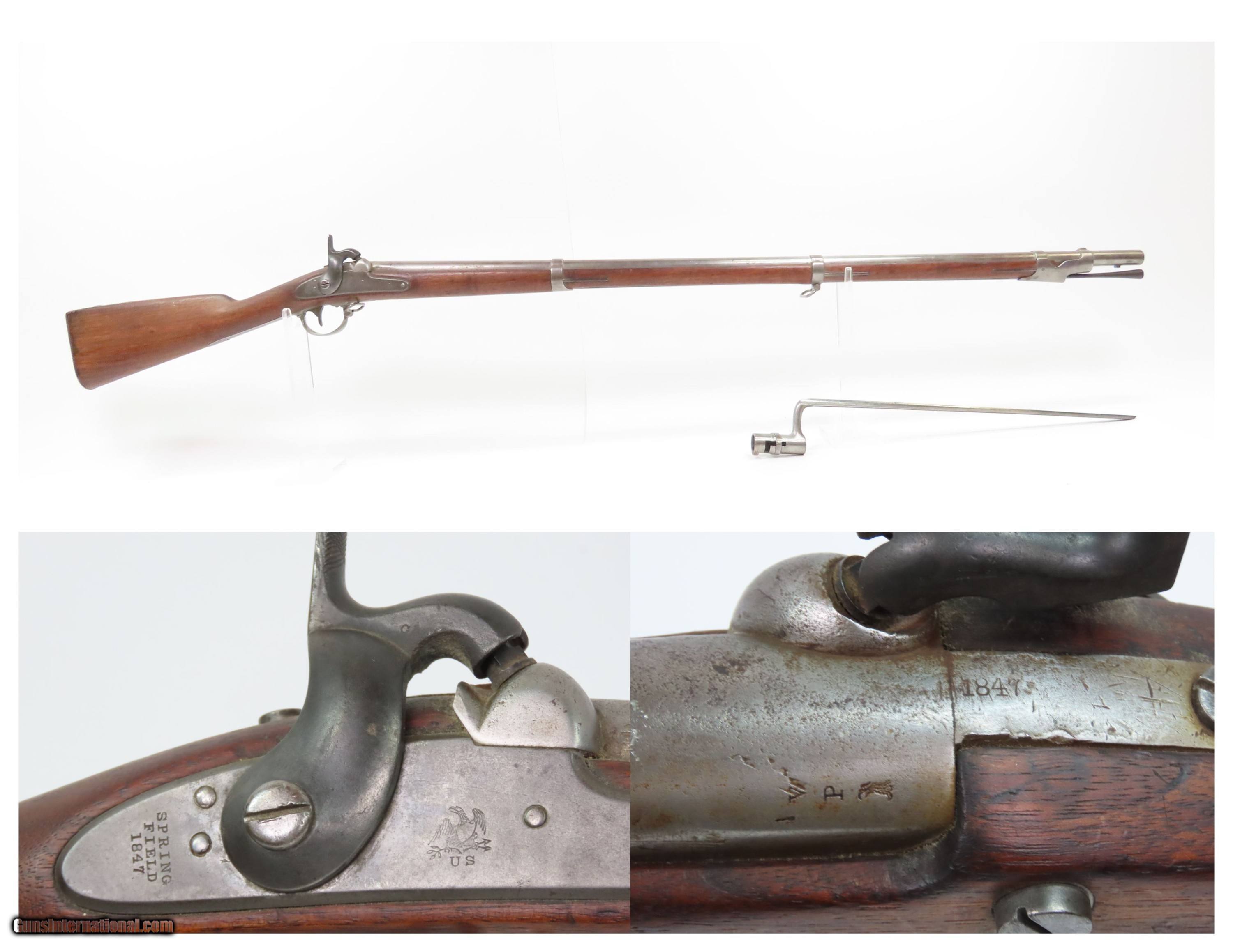 CONFEDERATE “Q” Mark CIVIL WAR Era SPRINGFIELD U.S. M1842 Percussion Musket 1847 DATED Musket with U.S. SOCKET BAYONET