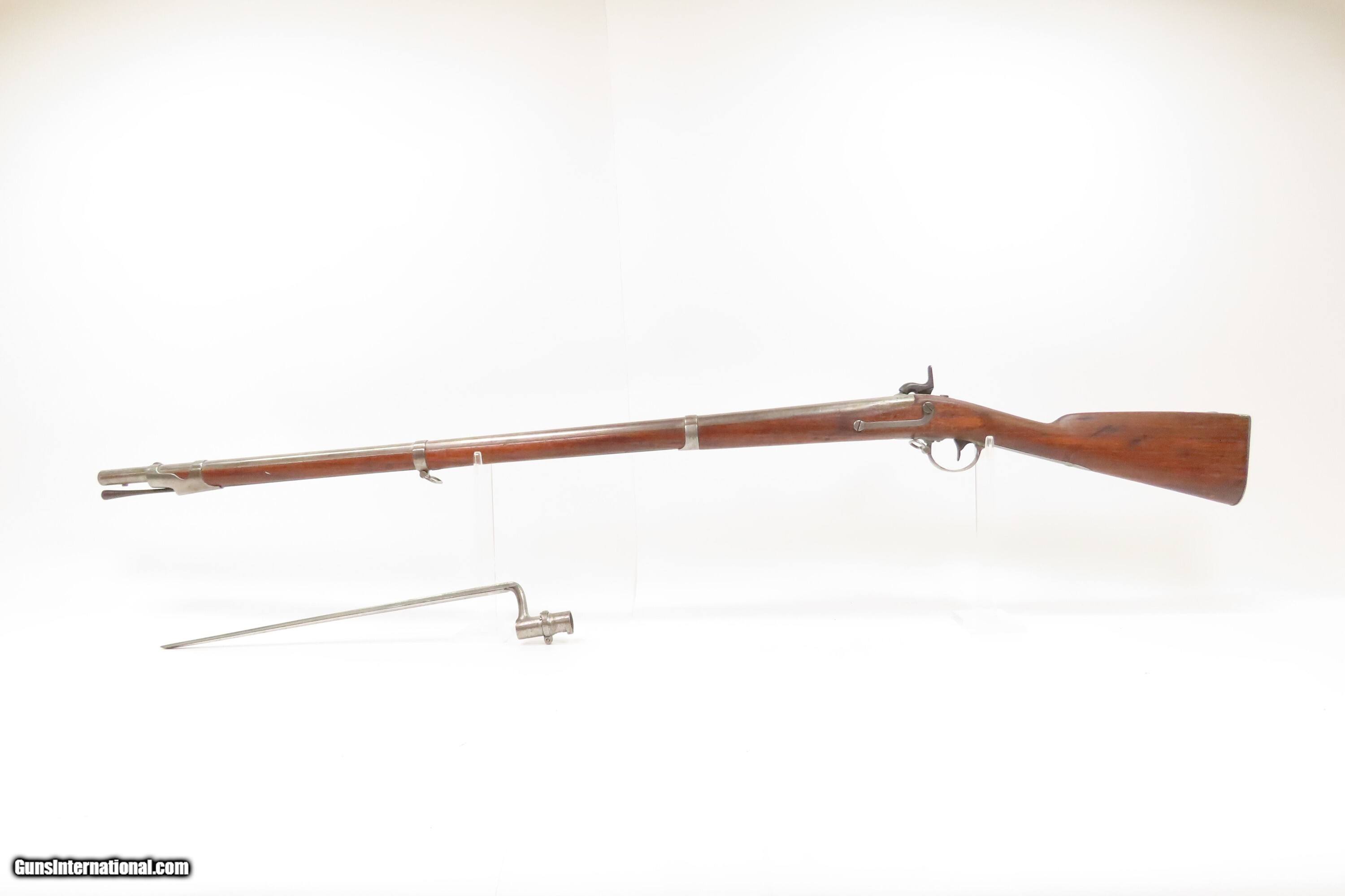 Description: CONFEDERATE “Q” Mark CIVIL WAR Era SPRINGFIELD U.S. M1842 Percussion Musket 1847 DATED Musket with U.S. SOCKET BAYONET Here we present an antique Springfield Armory U.S. Model 1842 Musket with a “Q” marked on the underside of the stock, manufactured circa the Mexican-American War Era in 1847 in Springfield, Massachusetts. This is a nice example of a U.S. gun that was captured or collected by the Confederate States Ordnance teams (or civilians) and placed into the Confederate cleaning and repair (“C&R”) system for reissue to Confederate troops. Between 200,000 and 250,000 firearms were turned in for refurbishing at either Danville, Staunton, Lynchburg, or Richmond. This rifle bears a Confederate States final inspector’s stamp “Q” just forward of the trigger guard tang. The identity of the individual inspector is unknown. Theories state the letter may be a real initial or possibly an assigned letter. In any case, the number and variety of guns bearing this mark point to someone working at the Richmond Arsenal/Artillery Workshop. This is a nice Springfield Model 1842 that no doubt saw service in the field during the war, and at some point changed hands amount combatants, moving from a Union soldier into the hands of a lucky Confederate soldier! The “Q” and “Z” final inspection stamp of a Confederate Ordnance officer working the Confederate States cleaning and repair system preparing “captured and collected” arms for reissue. The basic text on these is Steven Knott’s 2019 study, which cataloged a number of different arms passing through the system and the work done on them, along with several inspector’s stamps. The “Z” stamp is associated with Capt. Louis Zimmer, who supervised C&R operations in Richmond from late 1864 to 1865, but subsequent cataloging of marks indicates they did not necessarily reflect the inspector’s initials. Knott estimates that as many as 200,000 weapons captured or collected by C.S. ordnance teams or civilians during the war, along with another 50,000 turned in by C.S. forces, may have passed through the system, mostly from the eastern battlefields that fell under Confederate control. From the period of 1844 until 1855, about 275,000 Model 1842 muskets were manufactured at the Springfield and Harpers Ferry Armories, along with some being made by private providers commissioned to assist in production. Along with usage during the Mexican-American War in 1846 through 1848, these would have been in the hands of local militia all over the antebellum United States and used by both combatants at the outbreak of the American Civil War. Sights were not included in the smoothbore’s design but arrived later as the muskets were rifled later in its life. The Model 1842 was the first regulation percussion musket to be manufactured at both Springfield and Harpers Ferry Armories, as well as the first to be produced by both national armories with fully-interchangeable parts. These were also the last .69 caliber smoothbore arms to be produced by the U.S. government. Both the original smoothbore version and the modified rifled version of the Model 1842 were used in the American Civil War. The smoothbore version was produced without sights (except for a cast one on the barrel band). When Model 1842 muskets were modified to have rifled barrels, sights were usually added at the same time as the rifling. The overall condition is very good. Bright gray patina. Robust action. The stock has been modestly refinished. Clear markings throughout with a worn Cartouche remnant on the left flat. The smoothbore is dim and good. Nice U.S. marked bayonet. Own the original! This is a legitimate antique and not a reproduction. Barrel is 42 inches. Caliber: .69 Percussion Overall condition as seen in photos. Very Fast. Very Safe. FREE SHIPPING WORLDWIDE. Delivered directly to your door by express mail! Guaranteed AUTHENTIC & Includes CERTIFICATE OF AUTHENTICITY. ancestryguns $3200 #250363 Antique: Yes Price: $3,200.00 Buy Now Pay with
