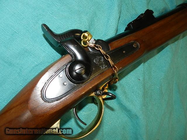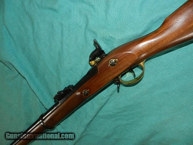 Description: A great Civil war era imported newer made Enfield 1853 musket, imported by both sides, with a blue 38 3/4" barrel an almost unfired bore. This is a newly made exact copy with the screws, lock, and barrel that will interchange with originals. The lockplate has the VT/Crown with a crown over it, and comes with the rear long range sight.Has a brass nose cap,brass butt-plate, and trigger guard. Bore measures at 20ga. or .58 cal. on this smooth bore musket. Has a correct English iron ram-rod. Can't get a better made Enfield 1853 copy than this! We don’t have asite .I prefer money orders or a check. Item ships when funds come in. If you can only pay with a card let me know. I hope you like my wide selection of unusual guns, knives and gun parts. I try to keep the prices affordable, which means I make less money than most dealers. I consistently have the best selection of older guns If you BUY IT NOW you must still contact us for details buy it now doesn't end the sale, it just sends an email telling us you want to buy this gun. A phone call won’t secure a sale! Not home many times, the first buyer by email buys the gun !Thissite doesnot close down a sale when you do a BUY IT NOW like Ebay!I can get six buy it nows in an hour, first buyer to email gets the guns, others are in second place! Best to send another email . Sometimes not home to get calls. Some guns are required shipment to a gun dealer near you for a transfer to you when it arrives. With the widest selection of older guns at great prices, We don’t have a store, and sell on the internet only. SOLD |