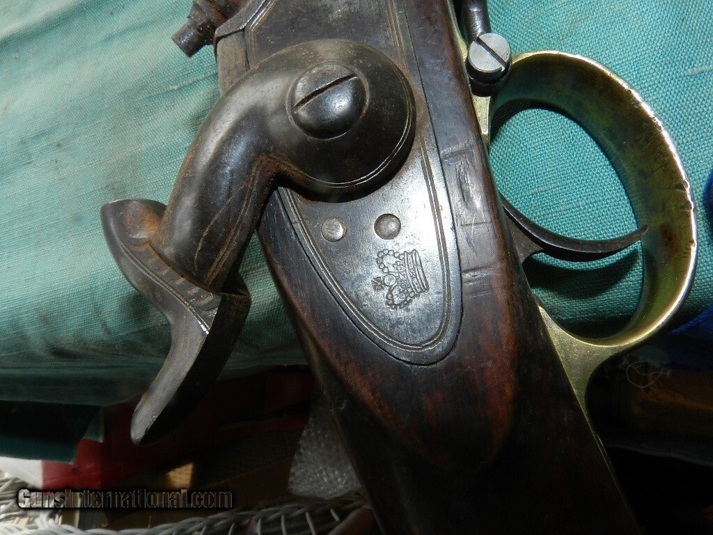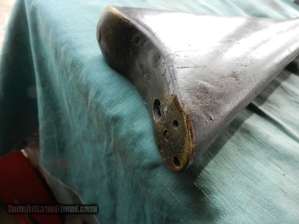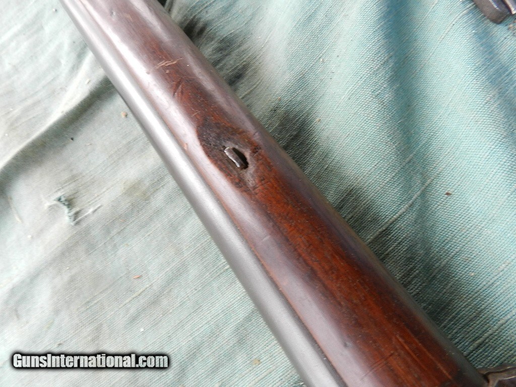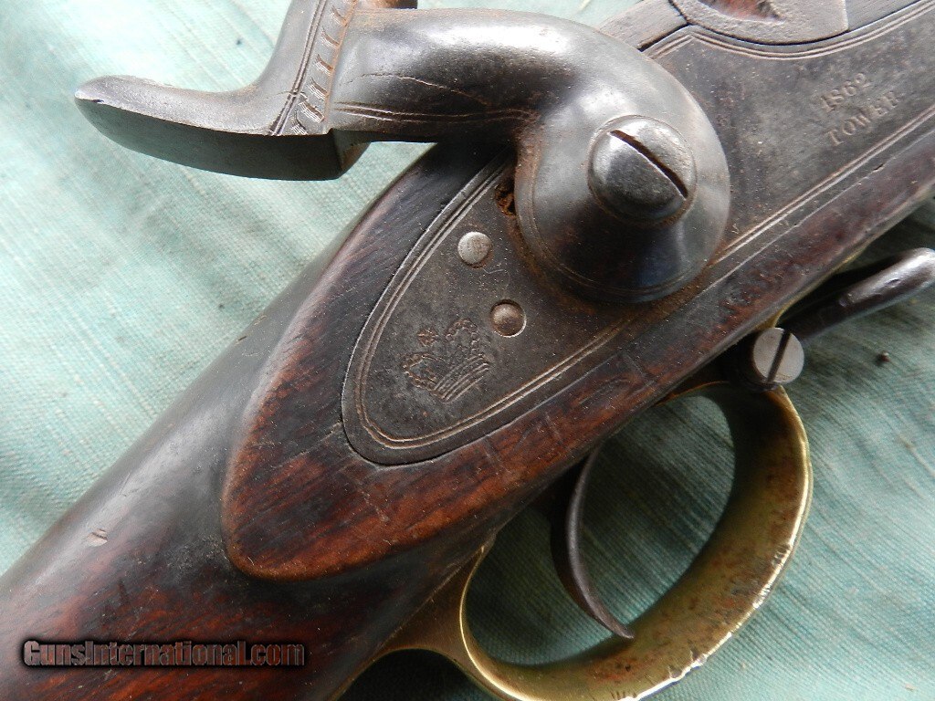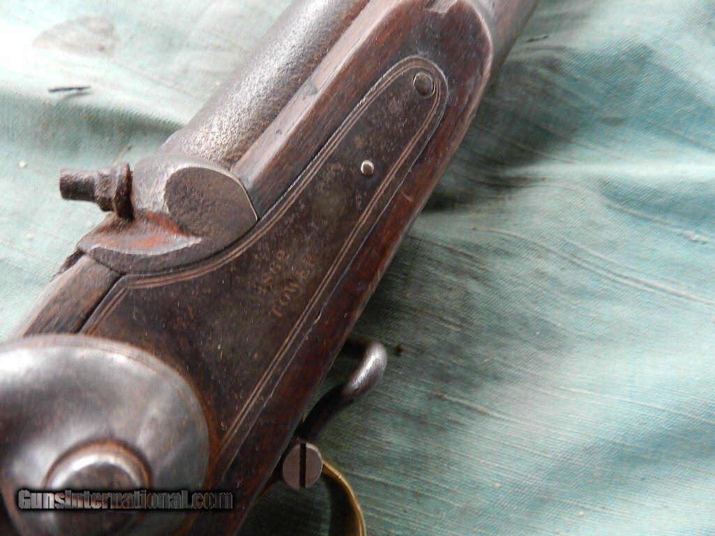 Description: Complete and well working 1862 dated Tower Enfield three band witha 38" round barrel with a fouled not pitted smooth bore. Action works well aaaand the rear long range sight is complete. Top of breech has pitting from continued black powder firing. Has an earkier button type ram~rod. English wlanut wood stock is complete and good. When buying a gun always have it examined by a competent gunsmith before shooting. To buy a gun from me you must get a direct email for me, with details, and shipping cost. We don’t have asite .I prefer money orders or a check. Item ships when funds come in. If you can only pay with a card let me know. I try to keep guns affordable, which means I make less money than most dealers. You won’t get altitude sickness, or nose bleed, with my prices! I consistently have the best selection of older guns If you attempt to buy, you must still contact us for details . Best to email to buy. Sometimes a local person can stop buy and purchase before the gun is removed. Sometimes not home to get calls. Some guns are required shipment to a gun dealer near you for a transfer to you when it arrives. Otherwise many older or black powder guns ship to your door. With the widest selection of older guns at great prices, We don’t have a store, and sell on the internet only. I’m easy to get along with. Thank You. Price: $895.00 Contact Seller |